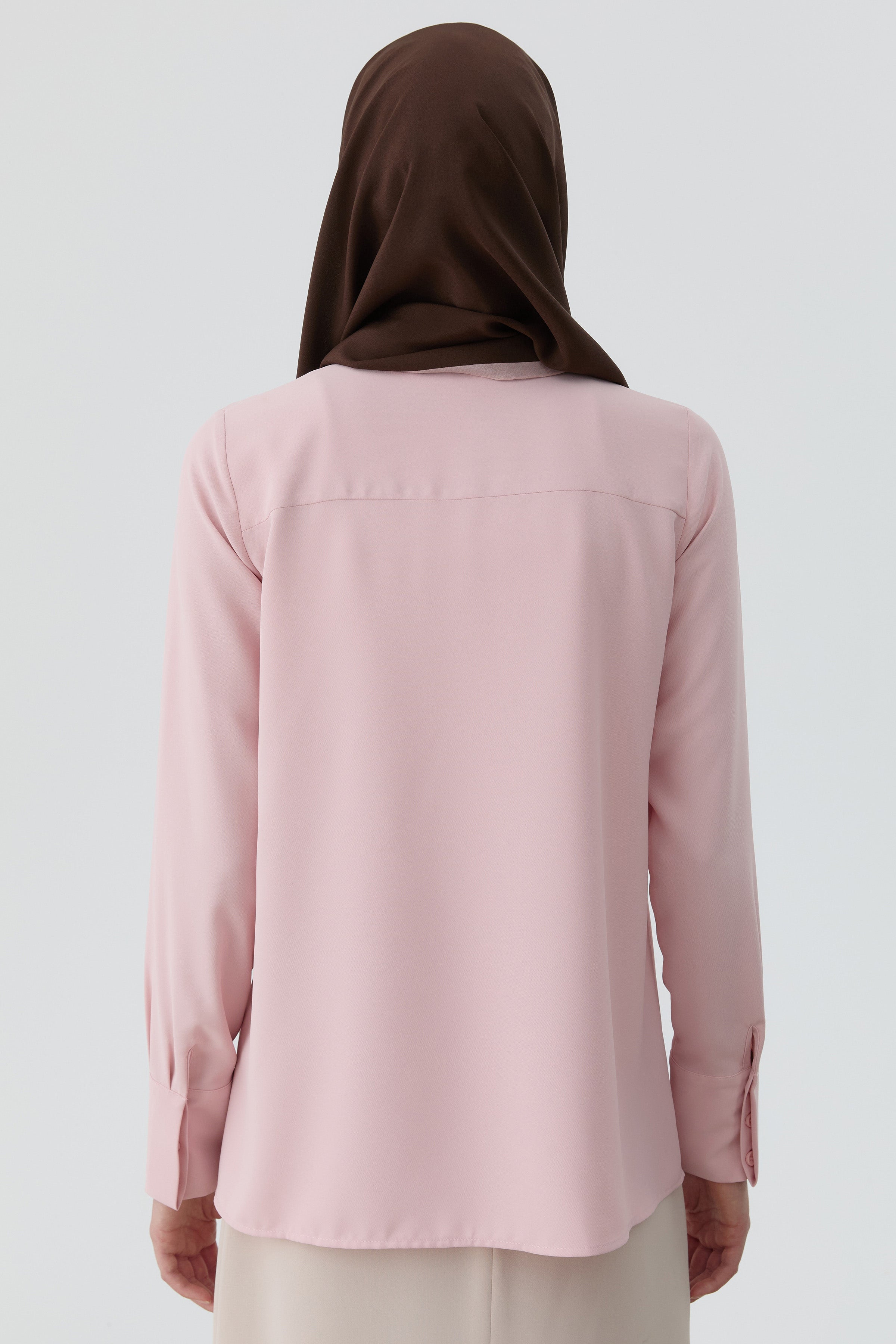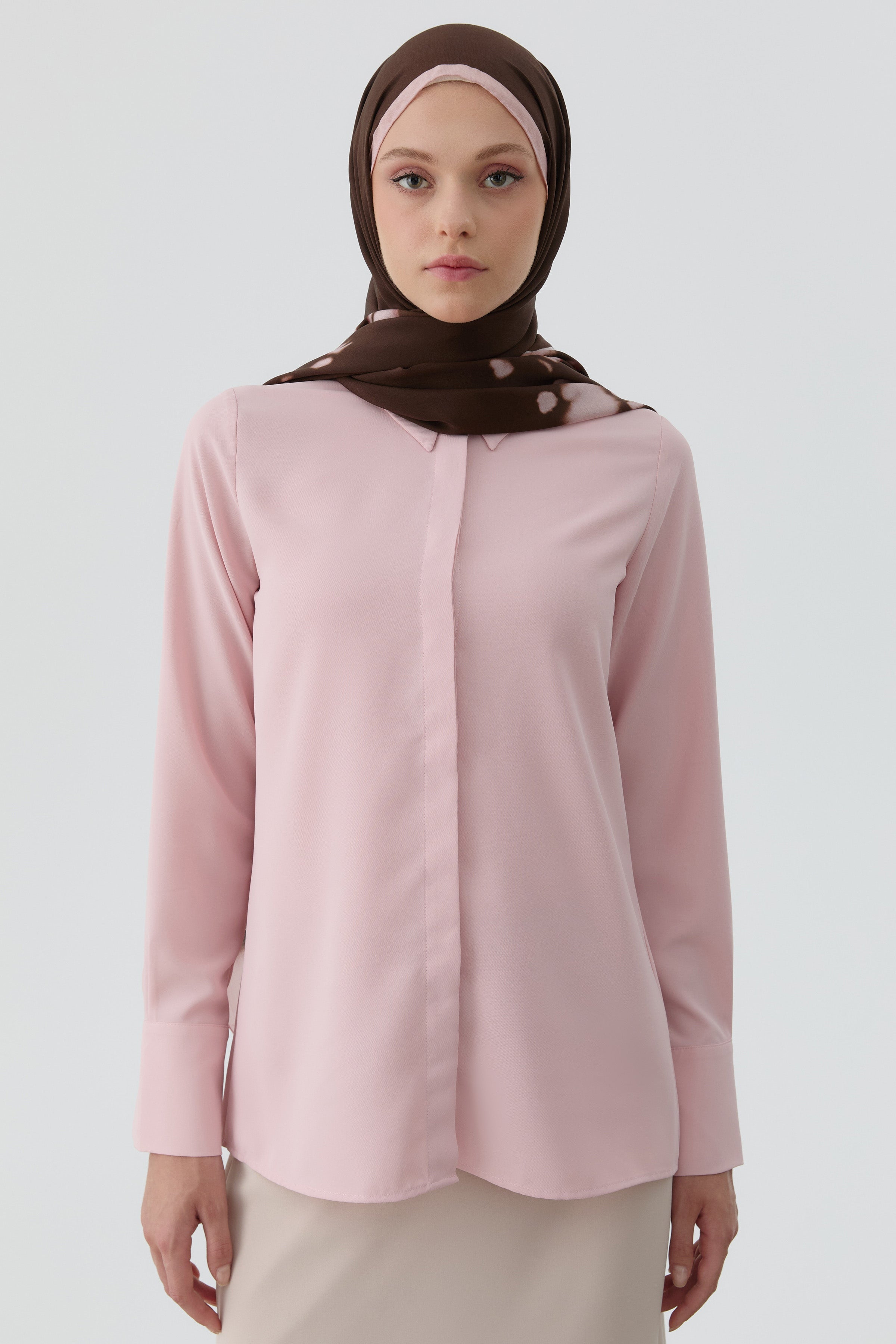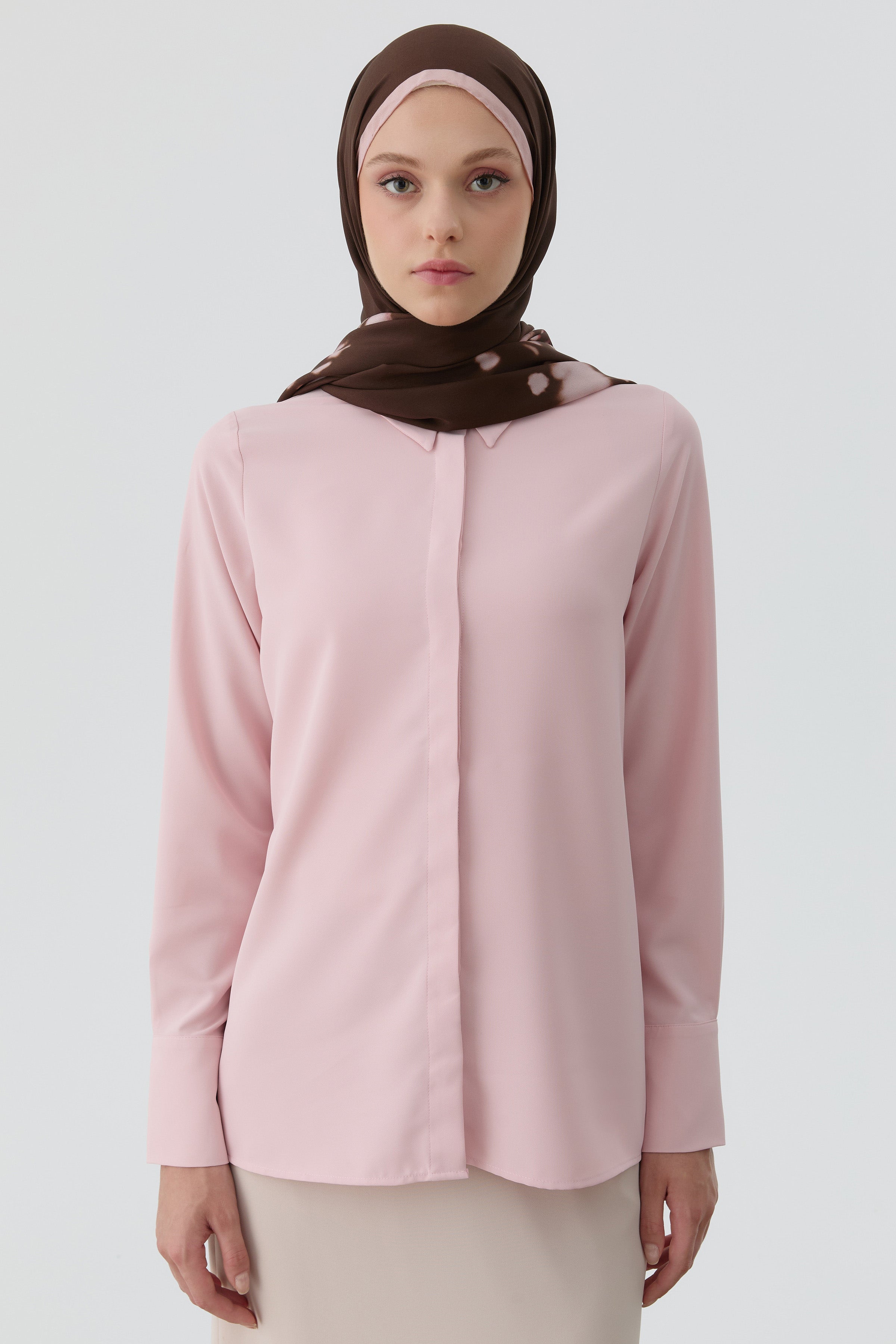 Chemise basique à patte de boutonnage cachée - Rose poudré