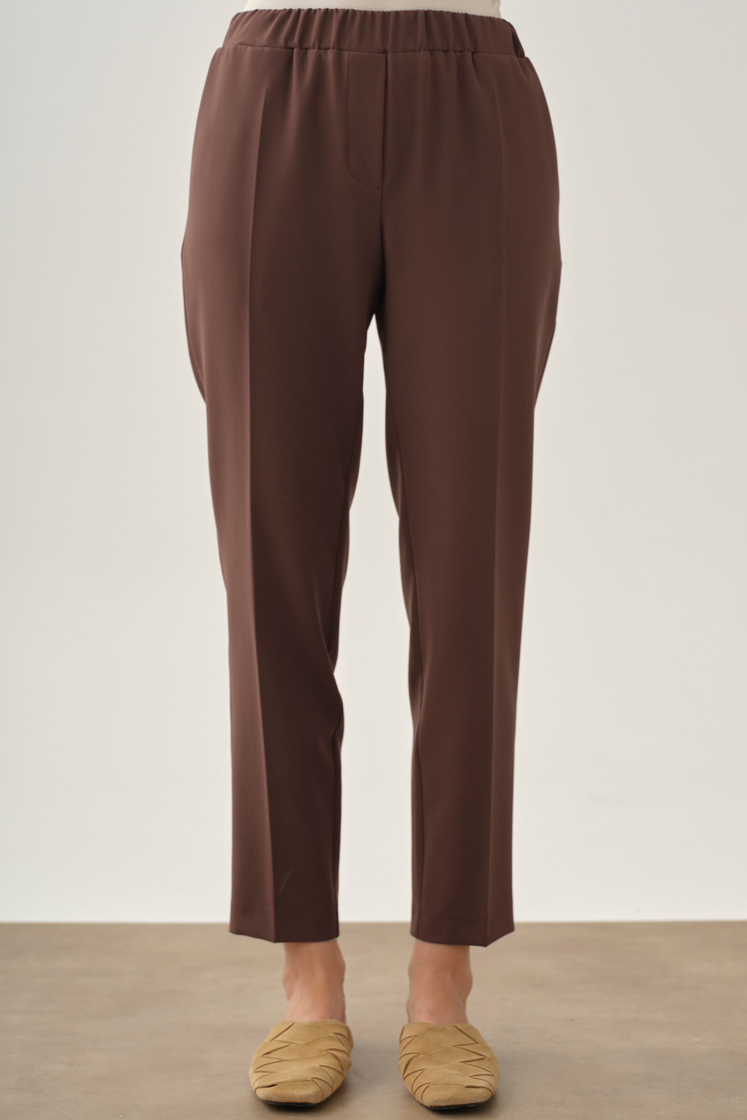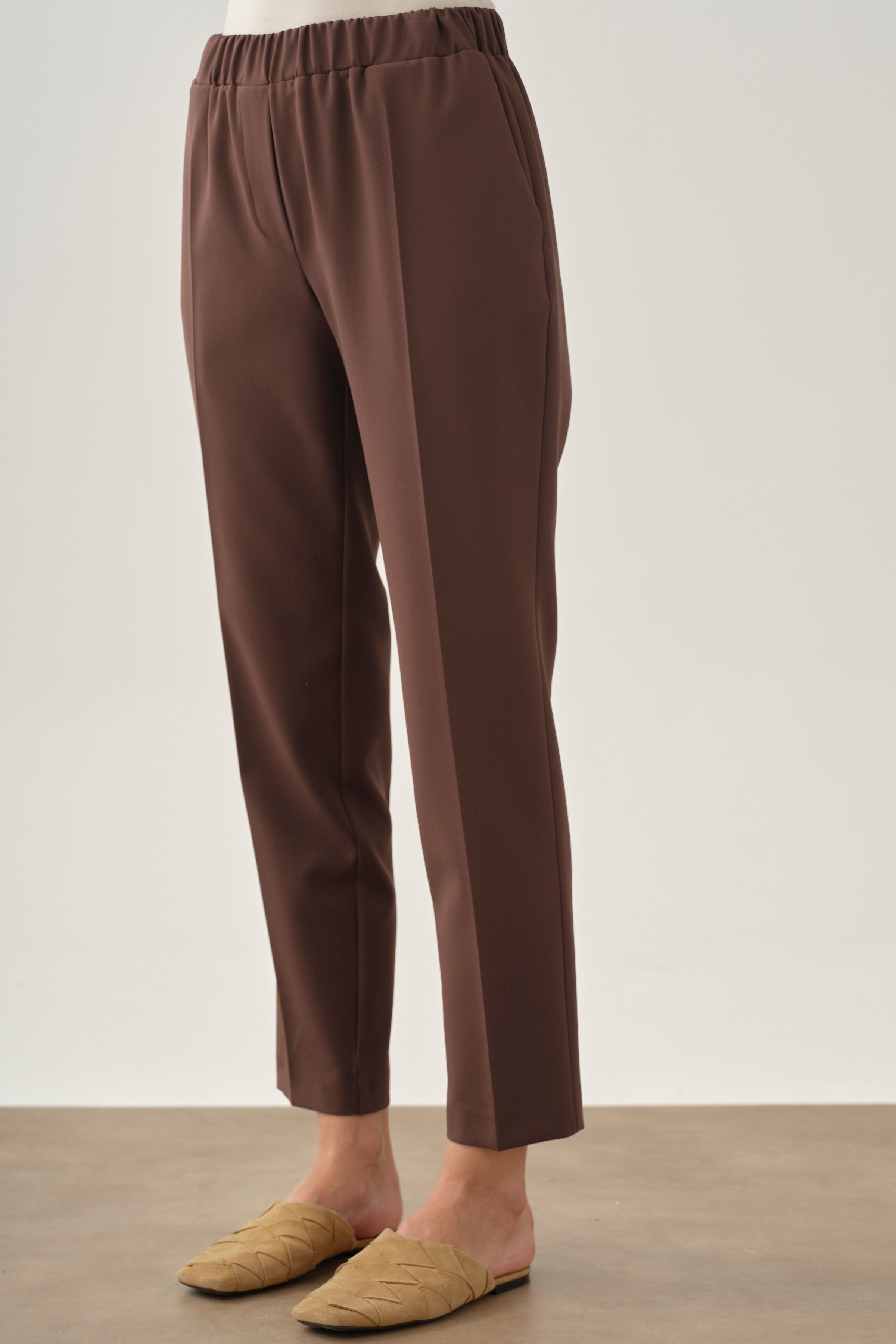 Pantalon carotte à taille élastiquée - Café