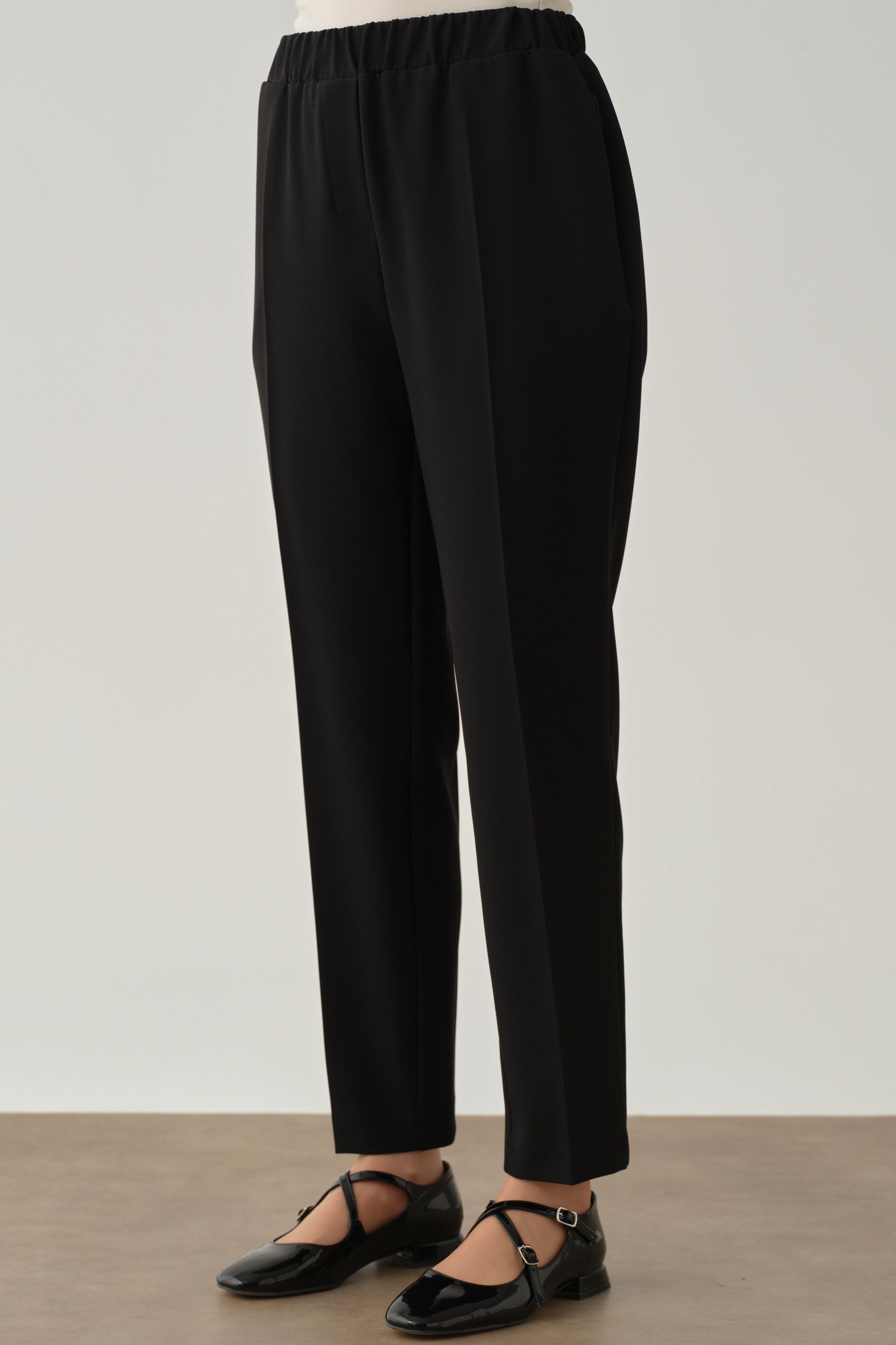 Pantalon carotte à taille élastiquée - Noir