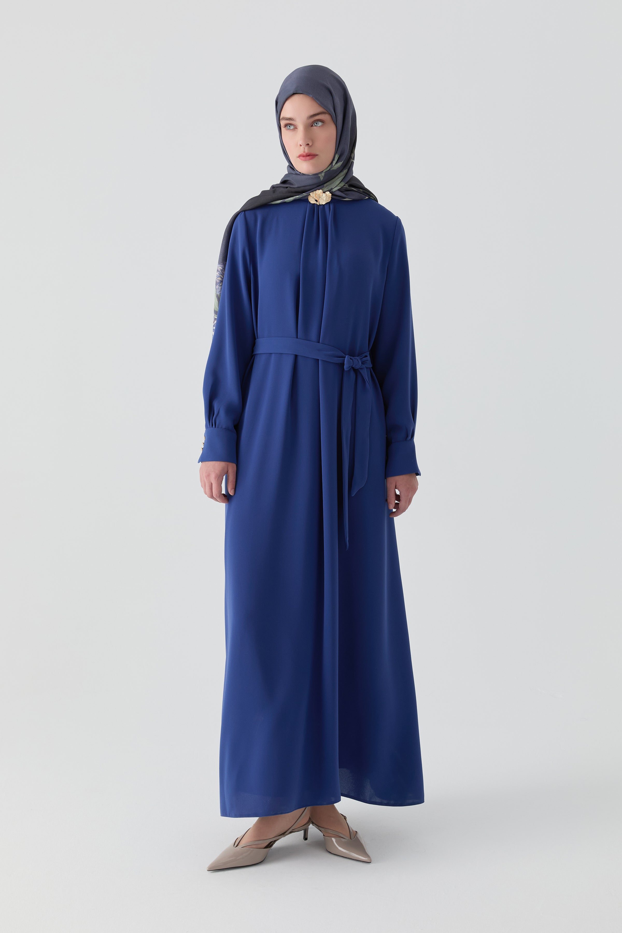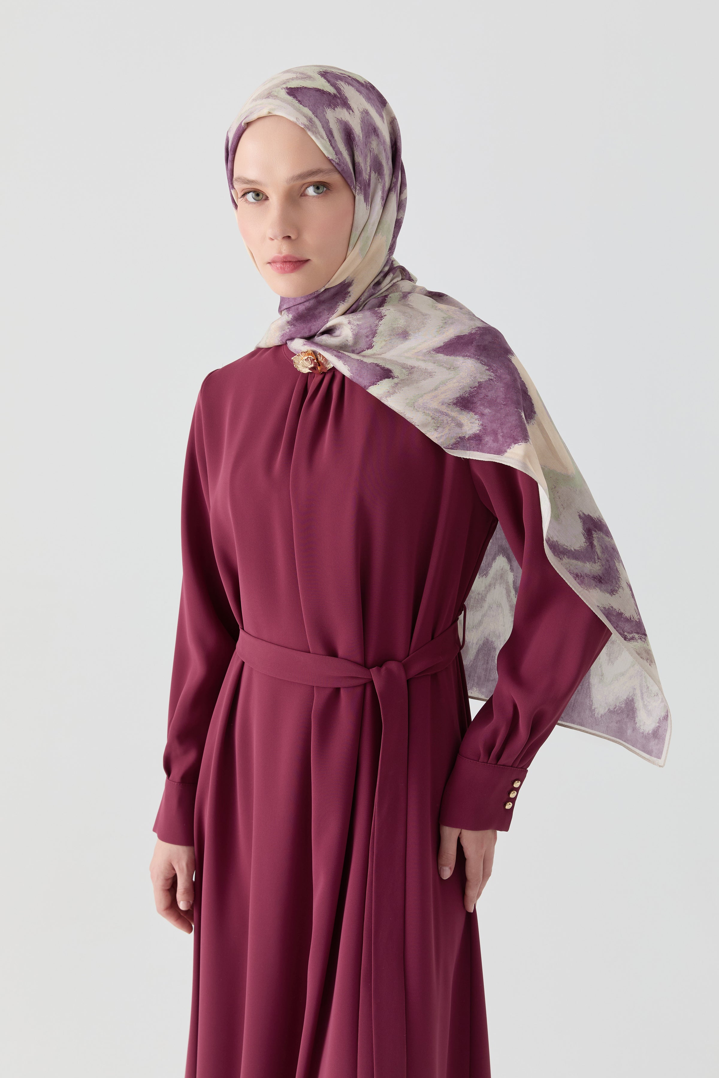 Robe en chiffon à motifs avec ceinture en suédine - Kaki