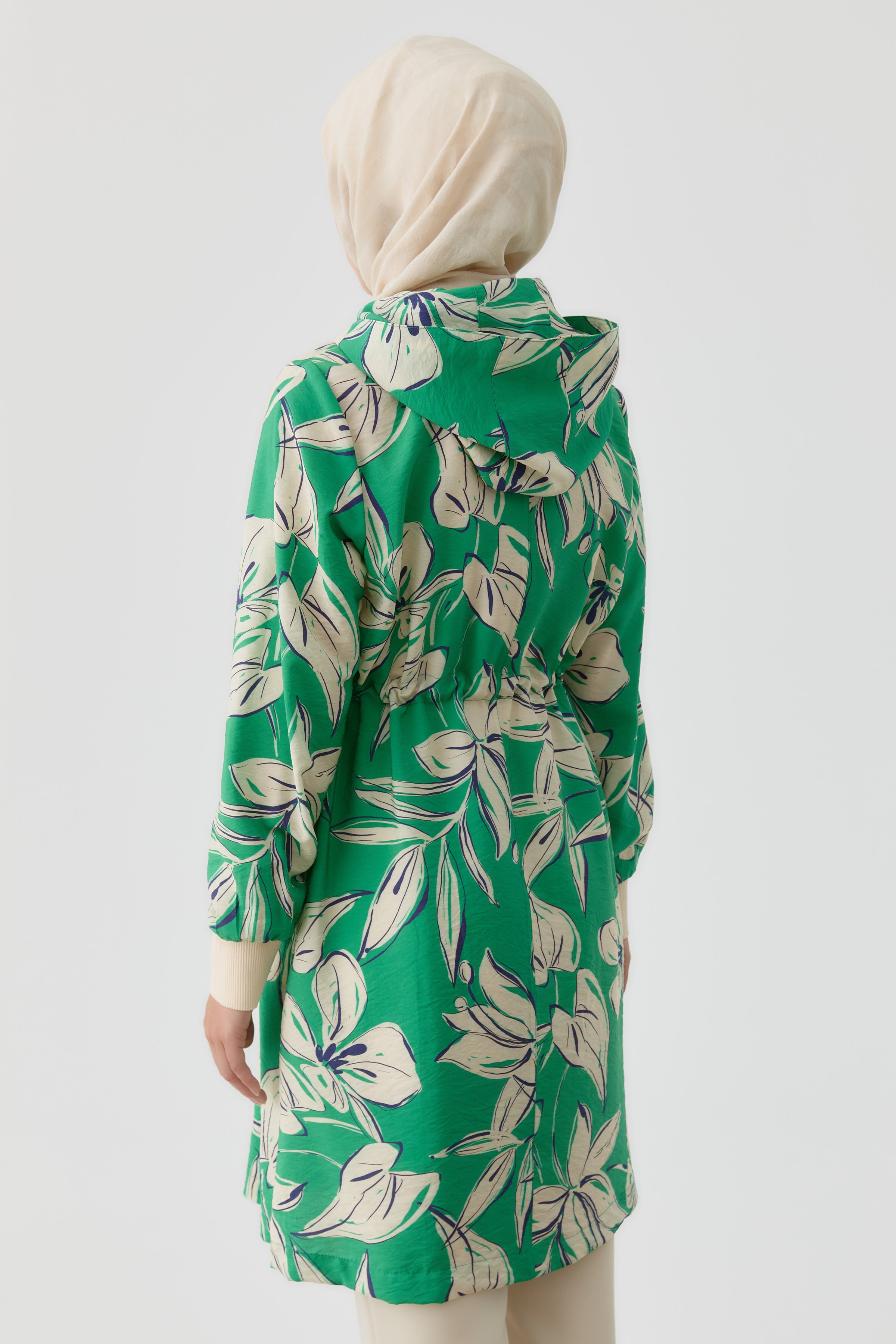 Cap à capuche à motif fleuri - Vert