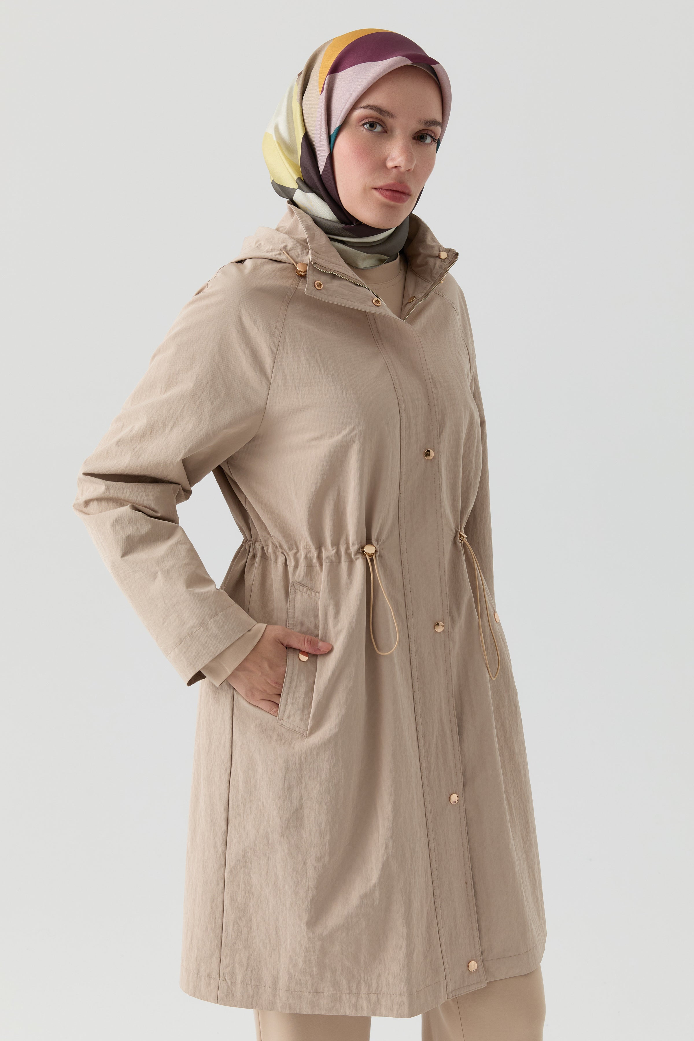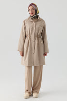 Imperméable court à détails élastiques - Noisette
