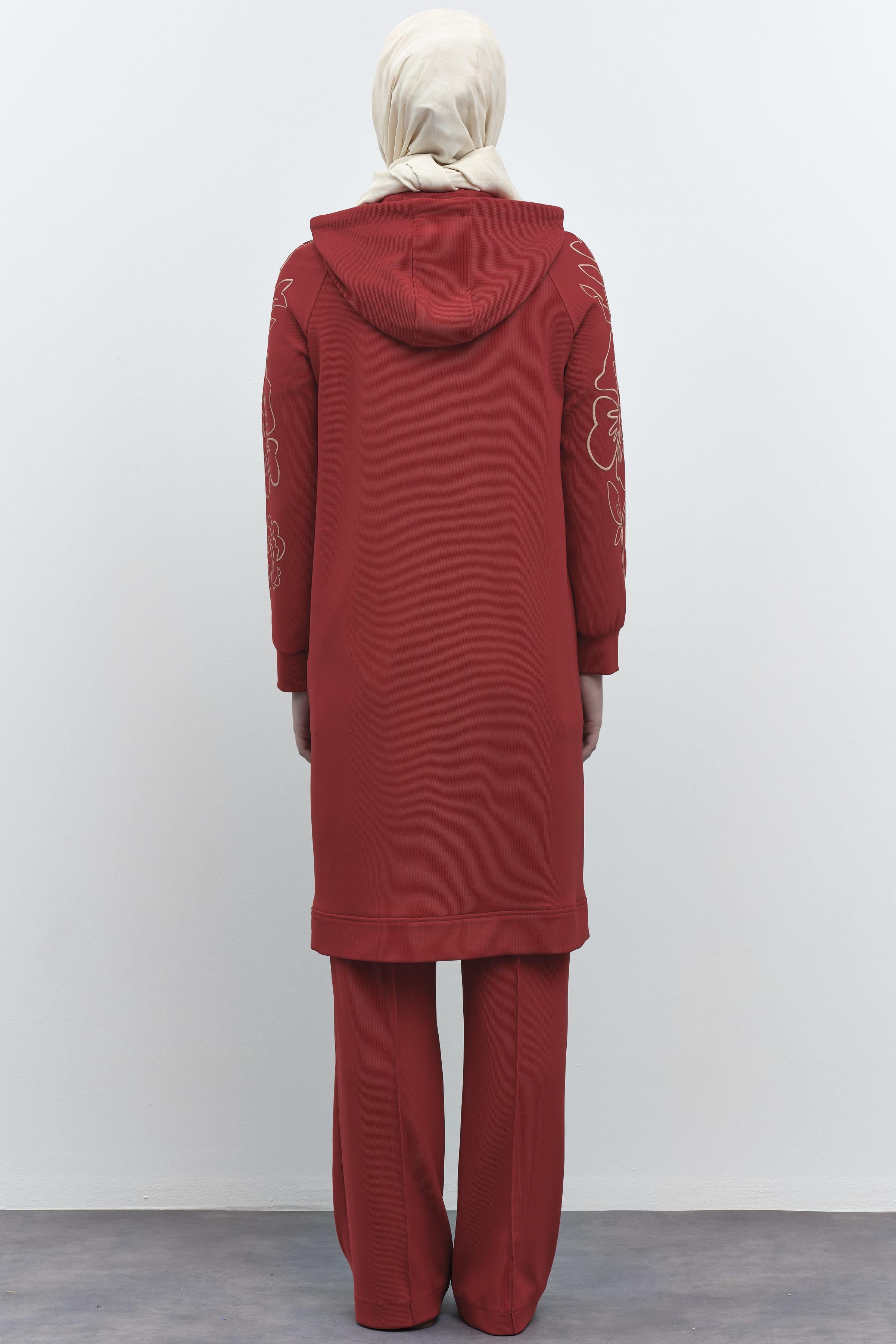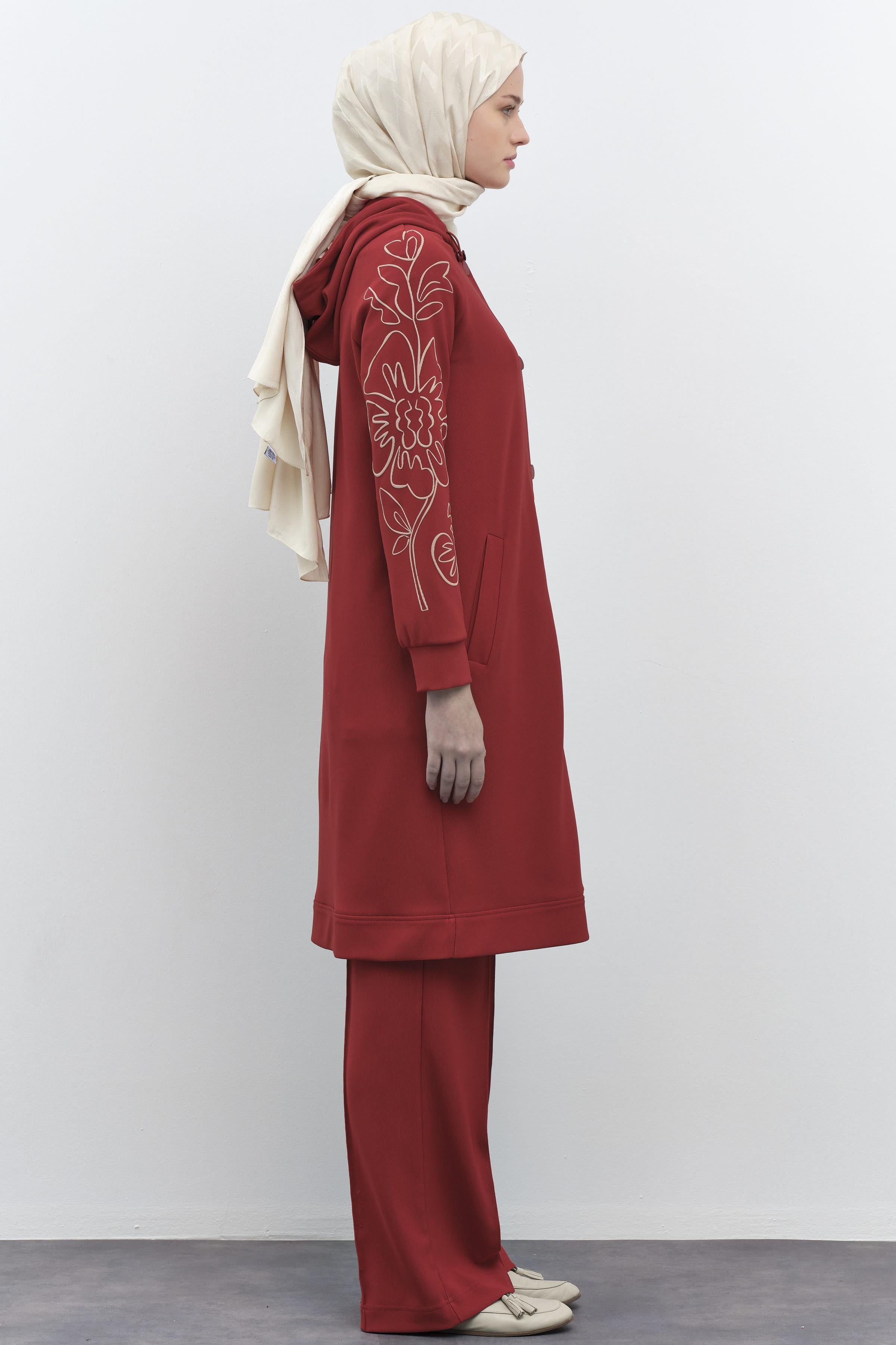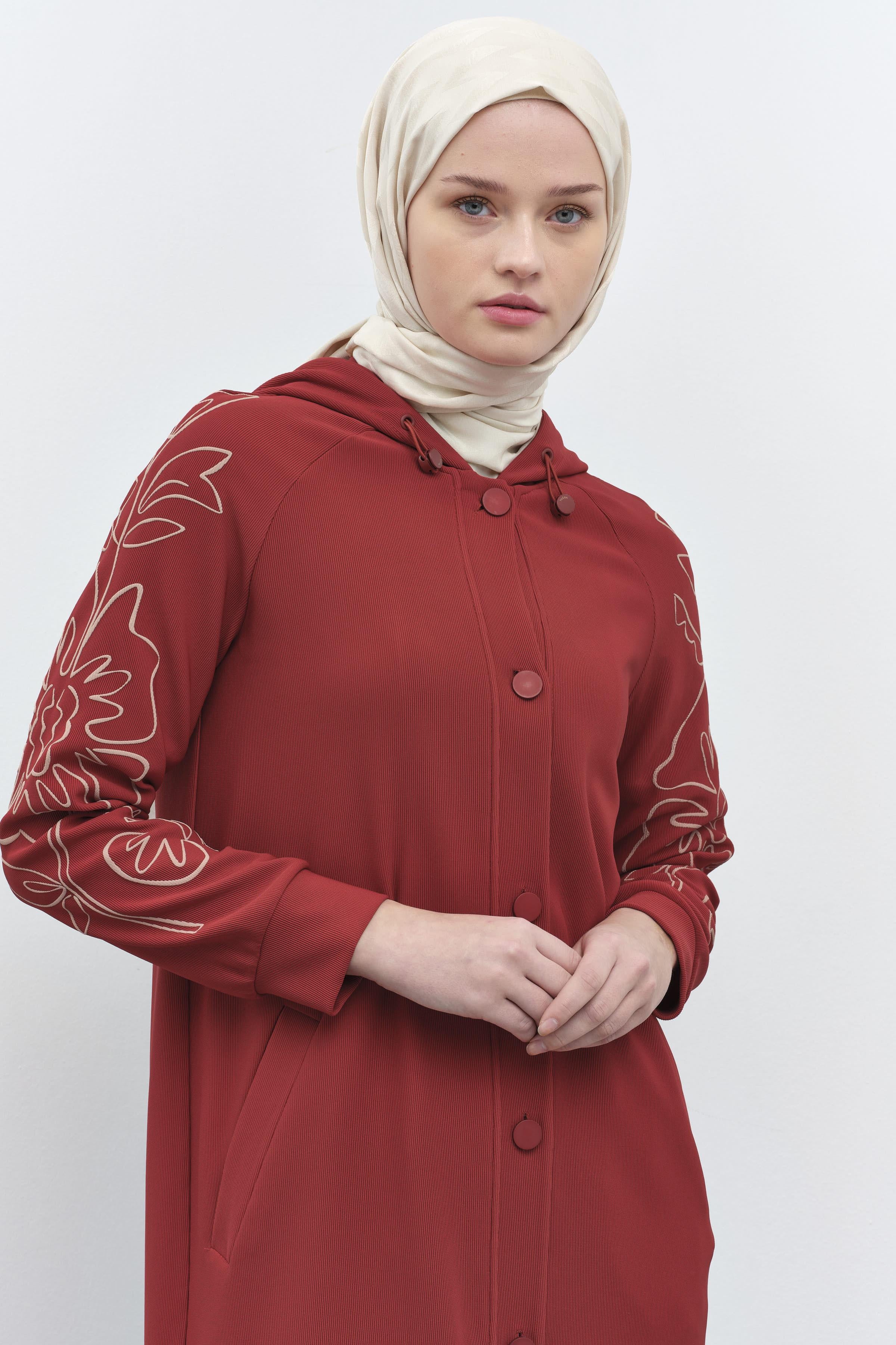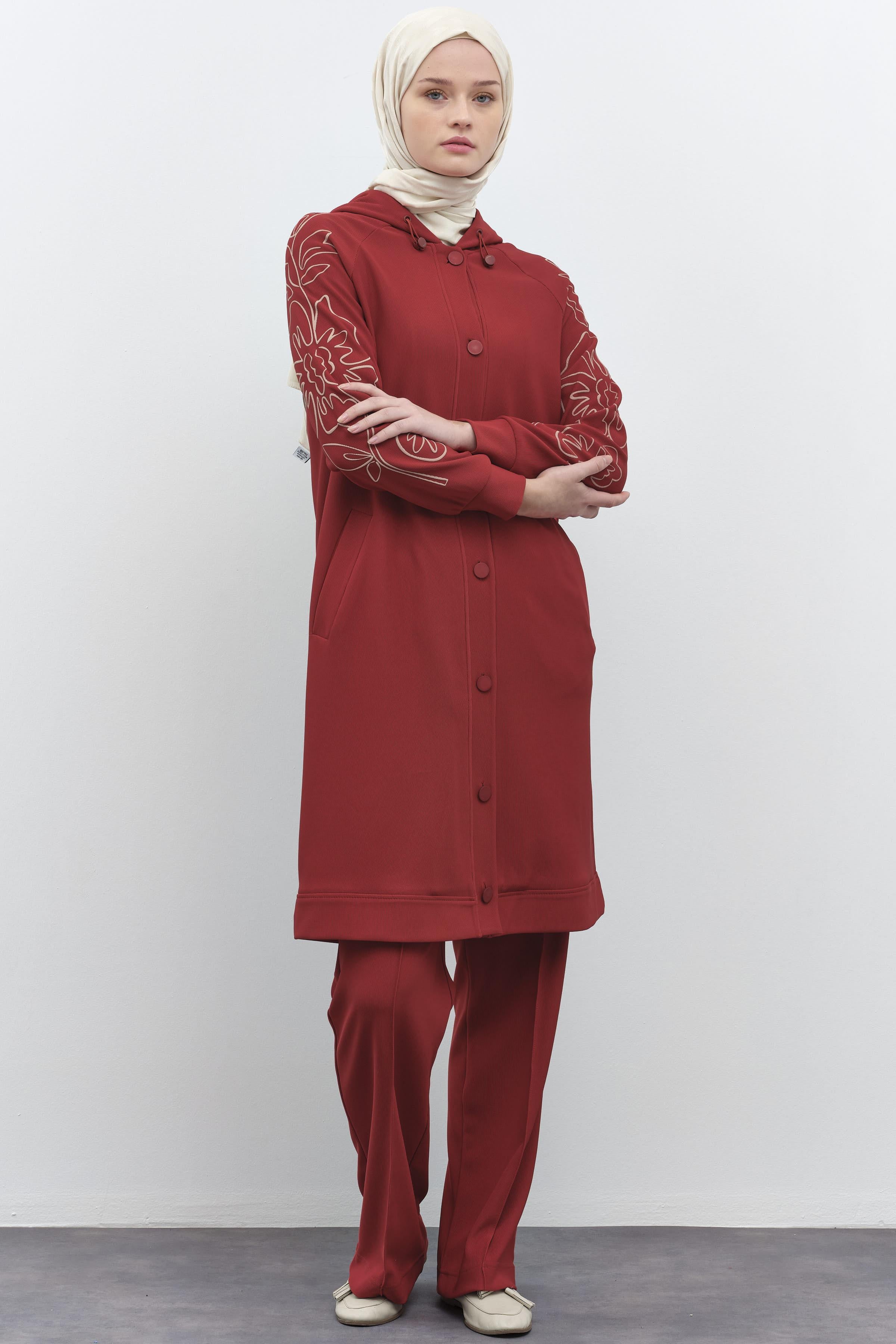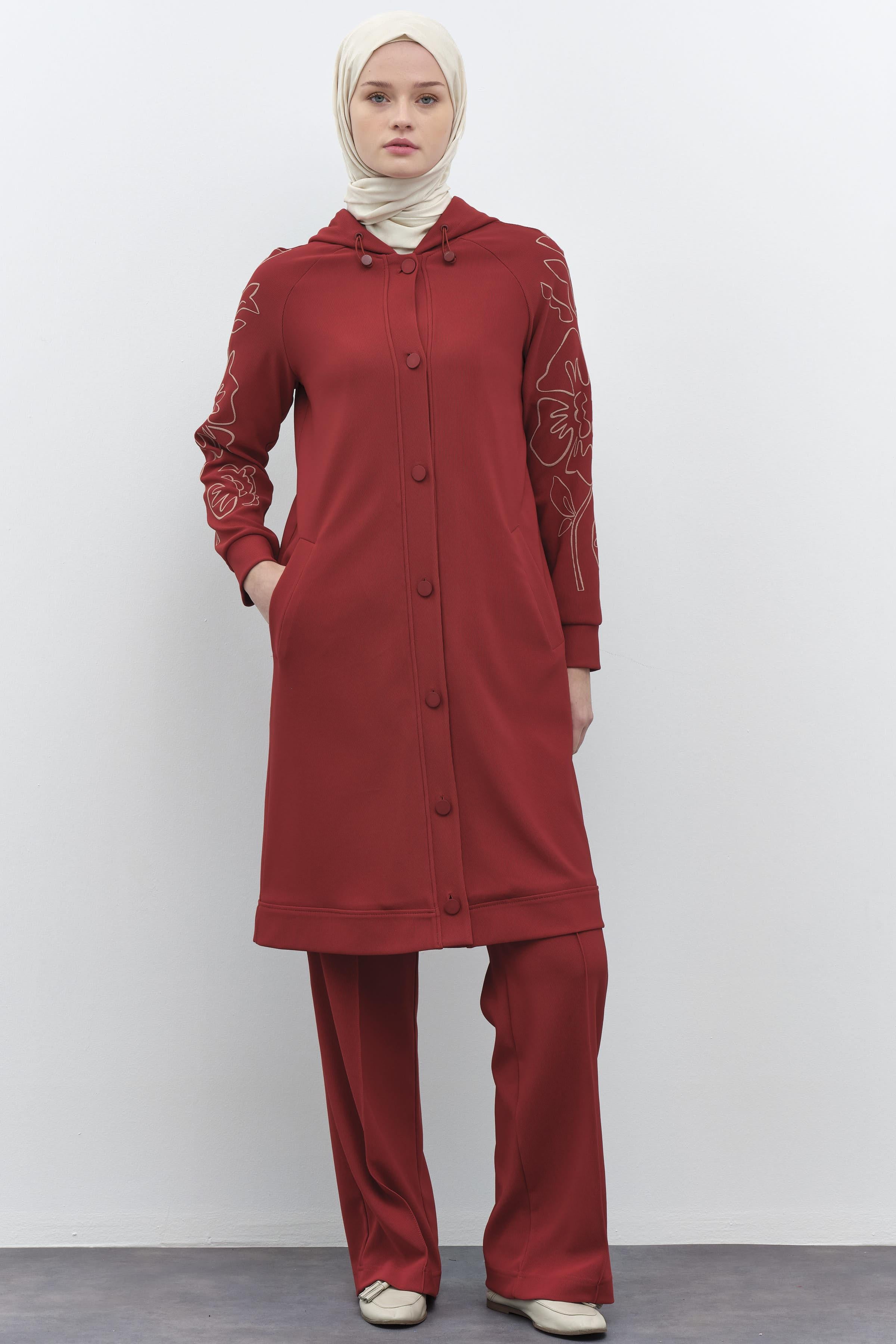 Manteau en tricot avec manches imprimées à motifs - Rouge-brique