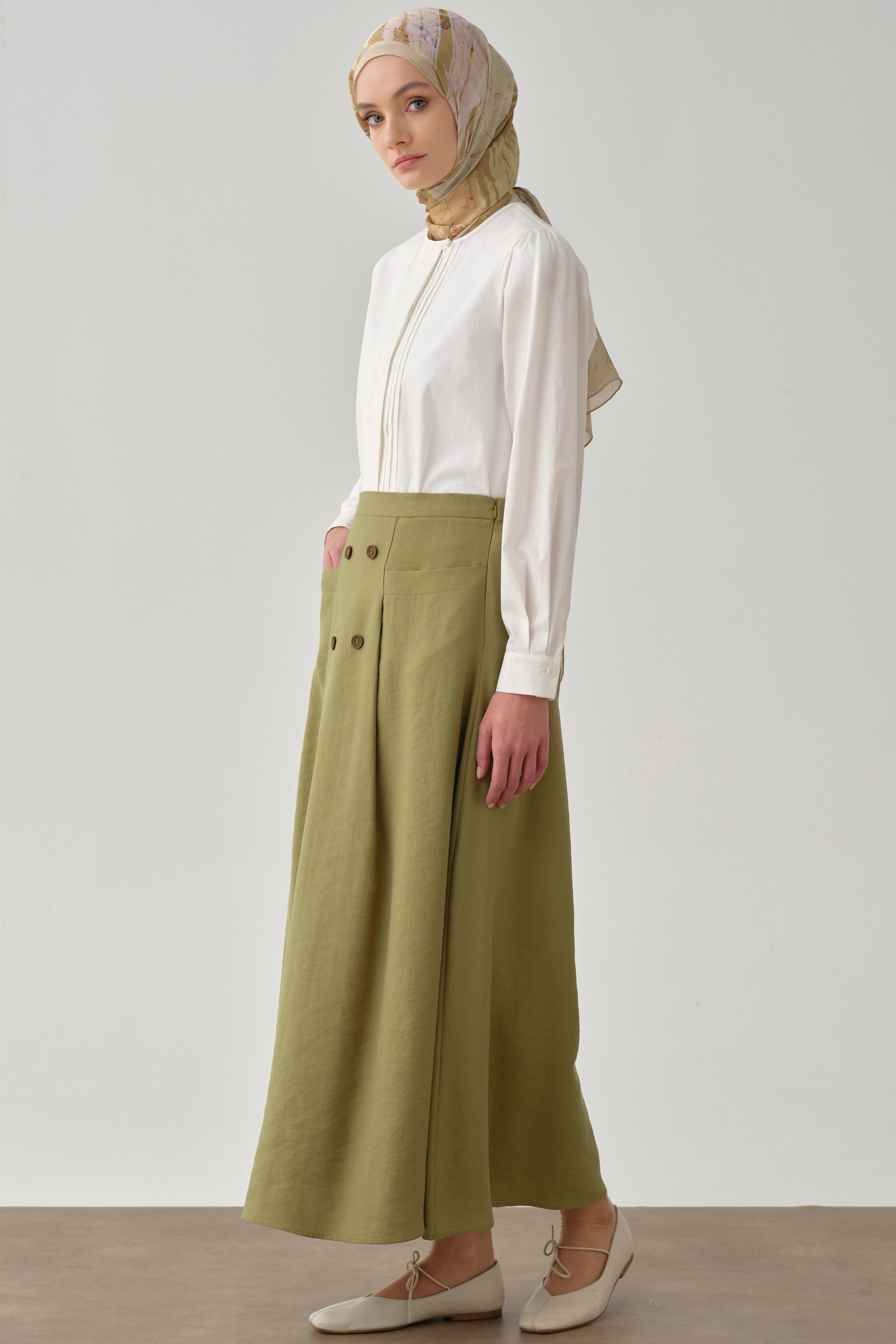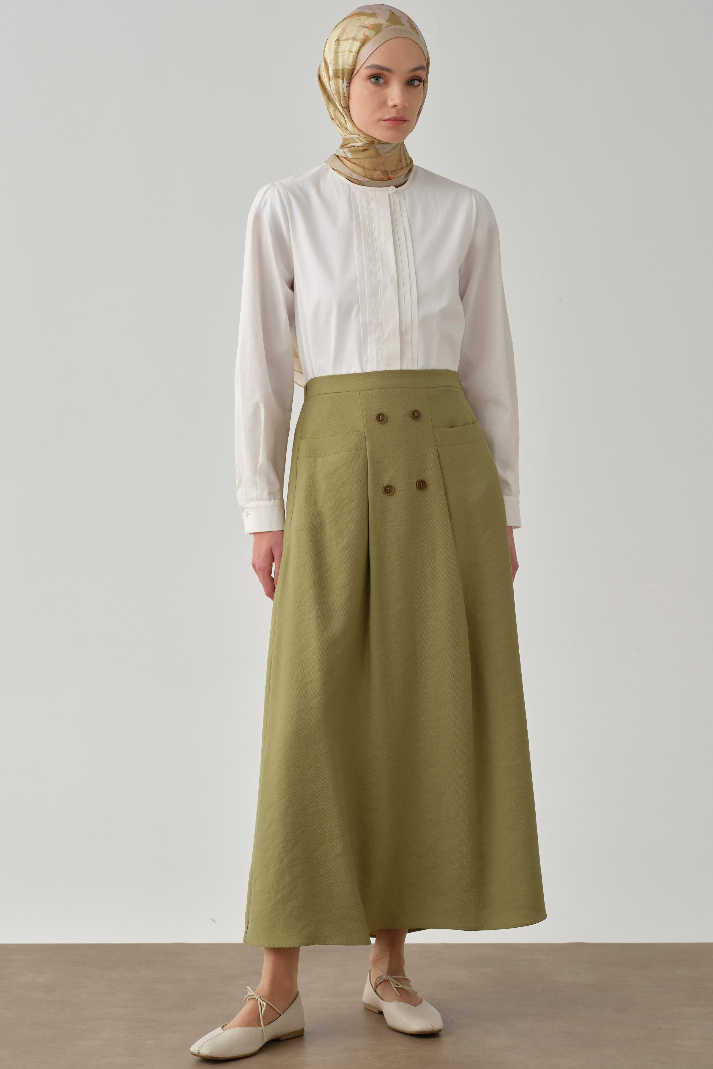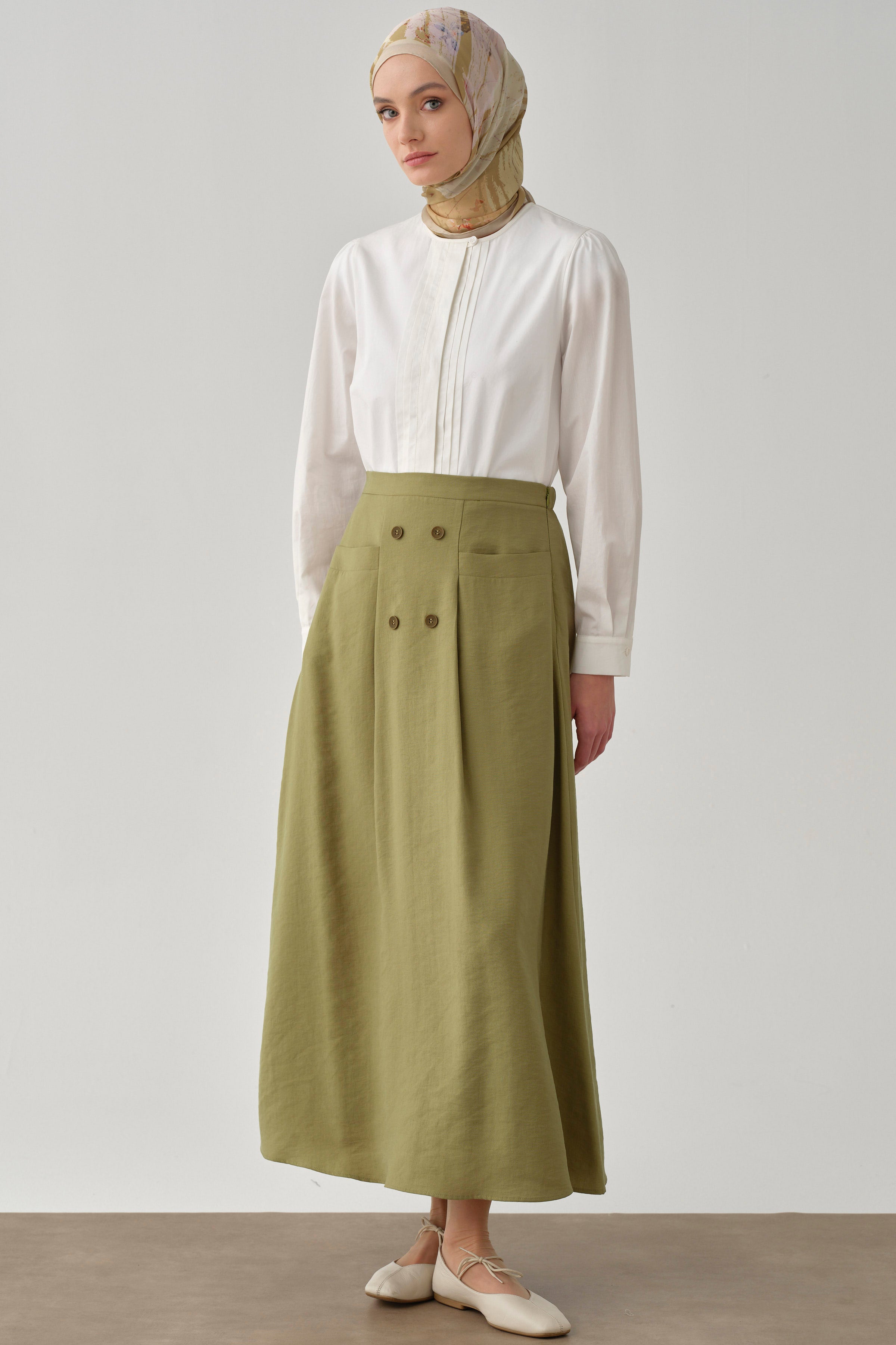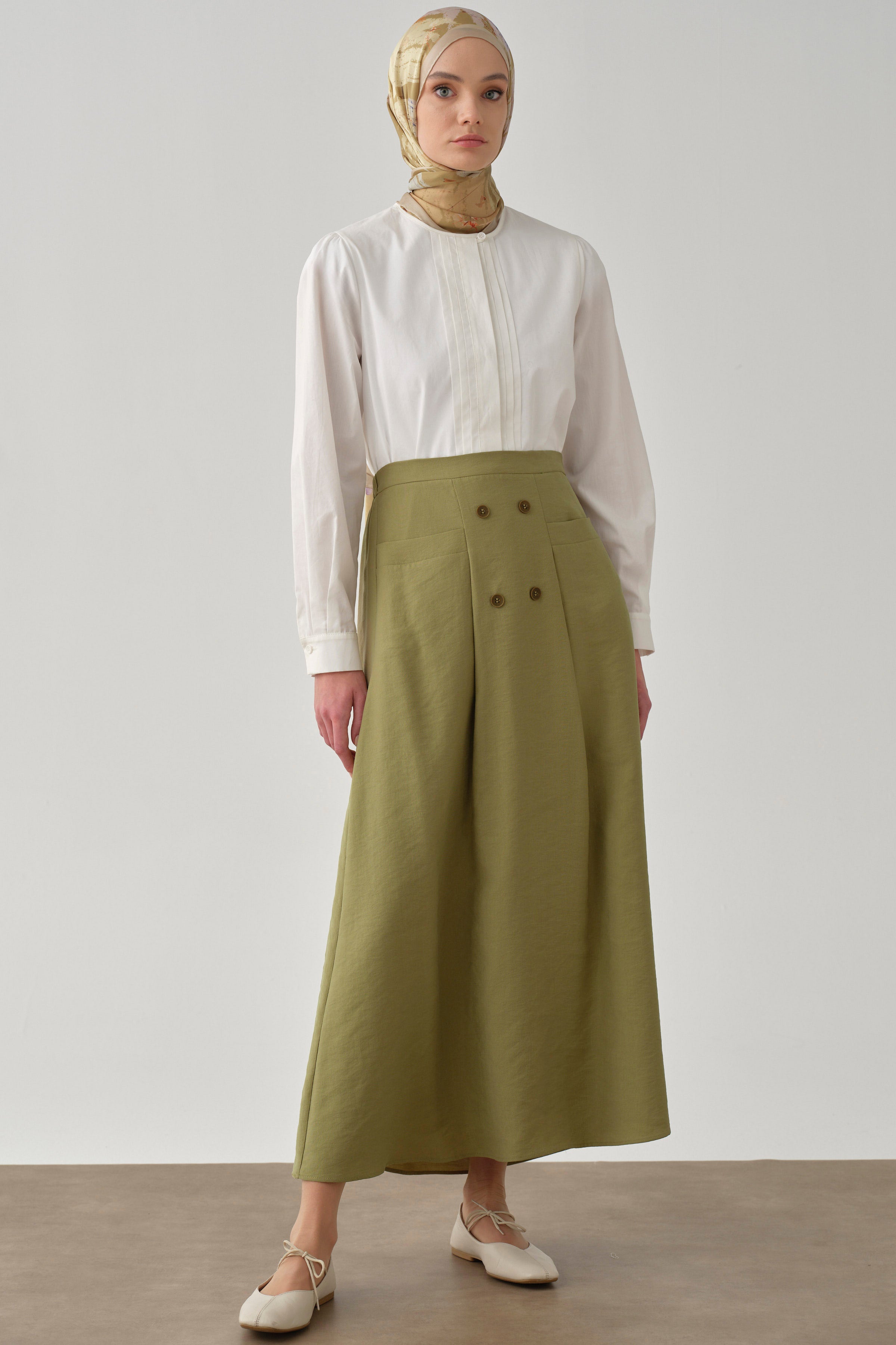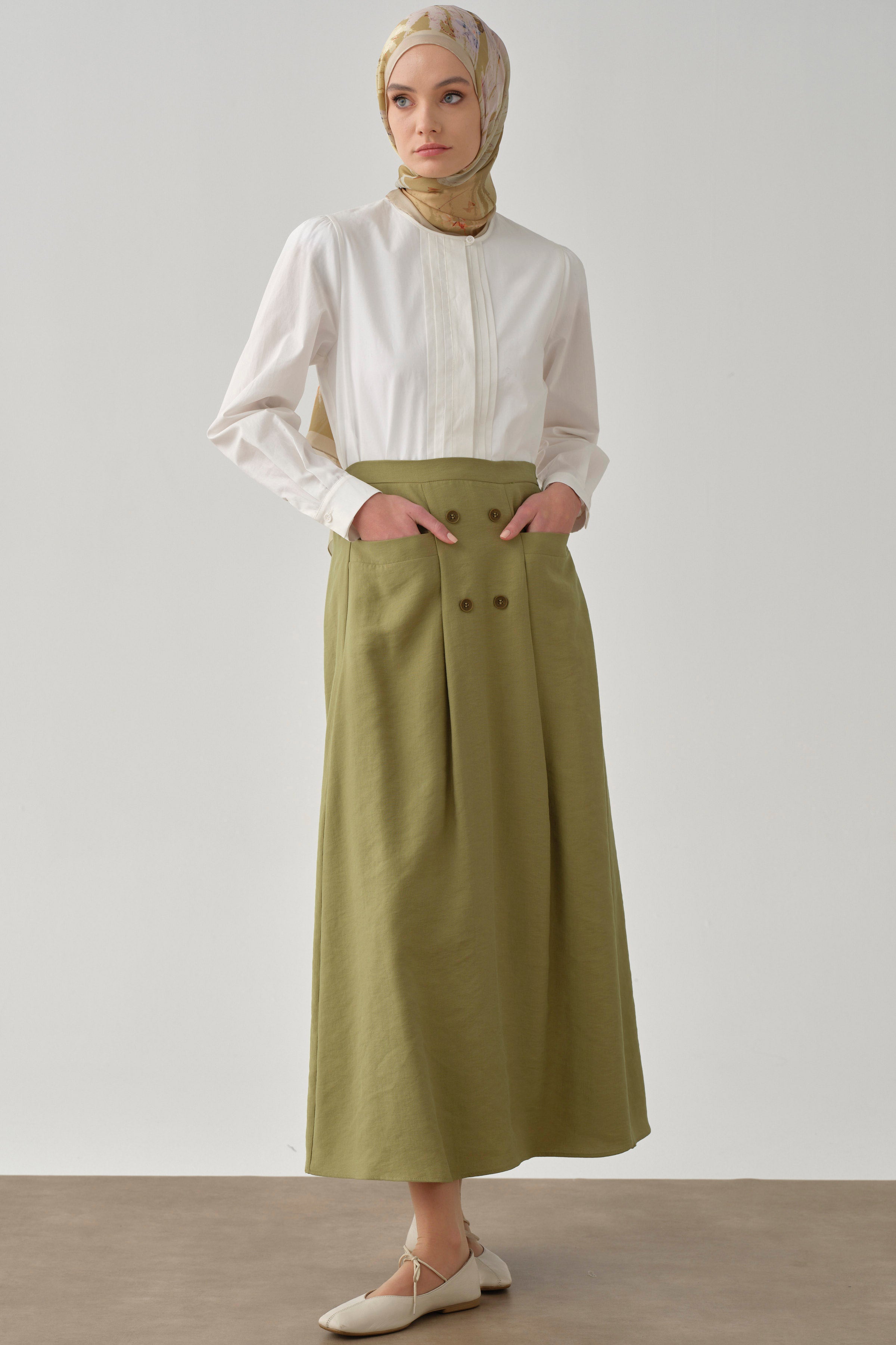 Jupe avec poches et détails de boutons - Olive