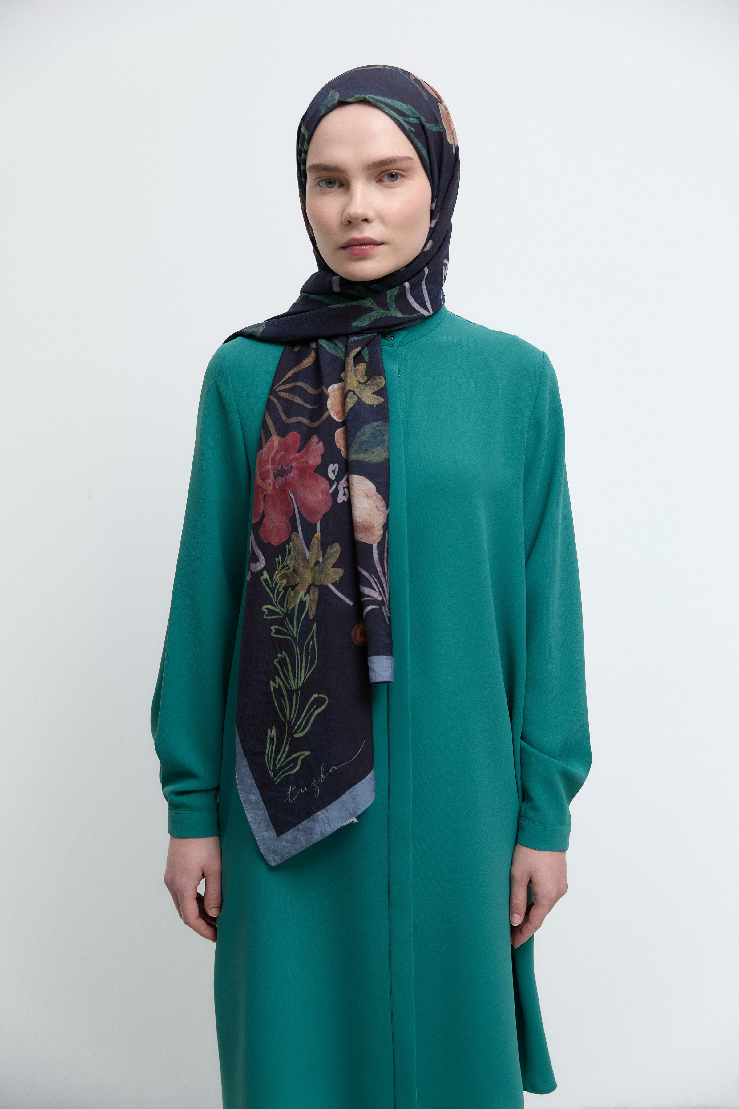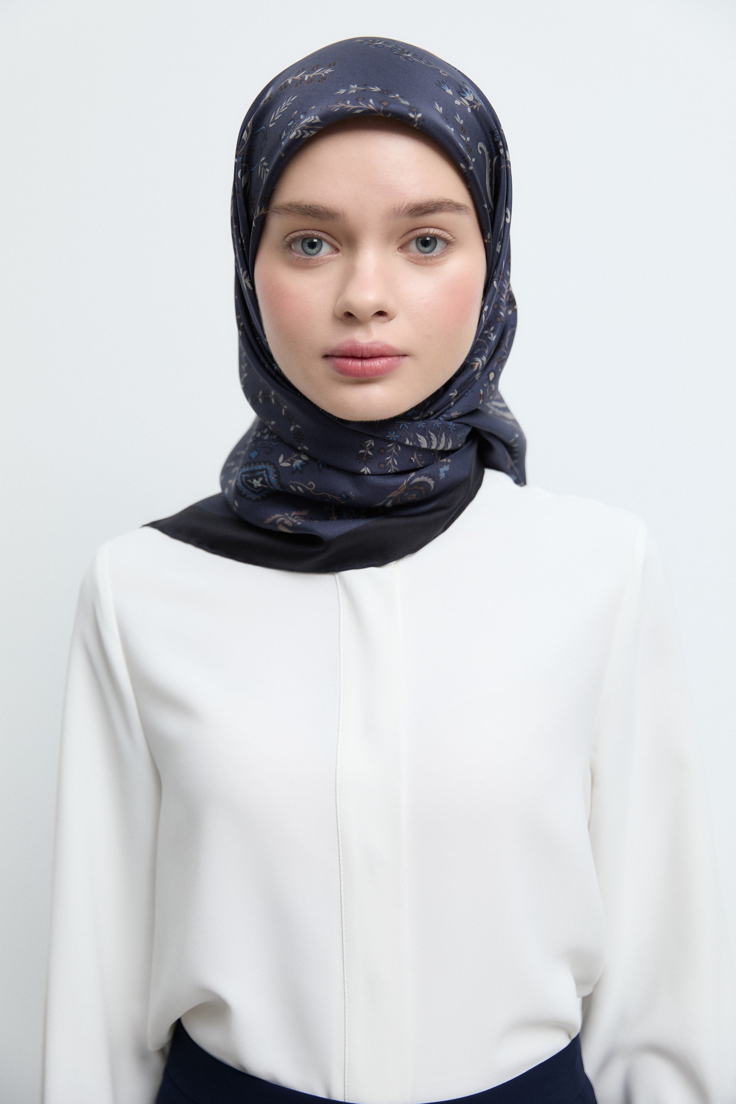 Écharpe en twill de soie Gülşah - Blue marine
