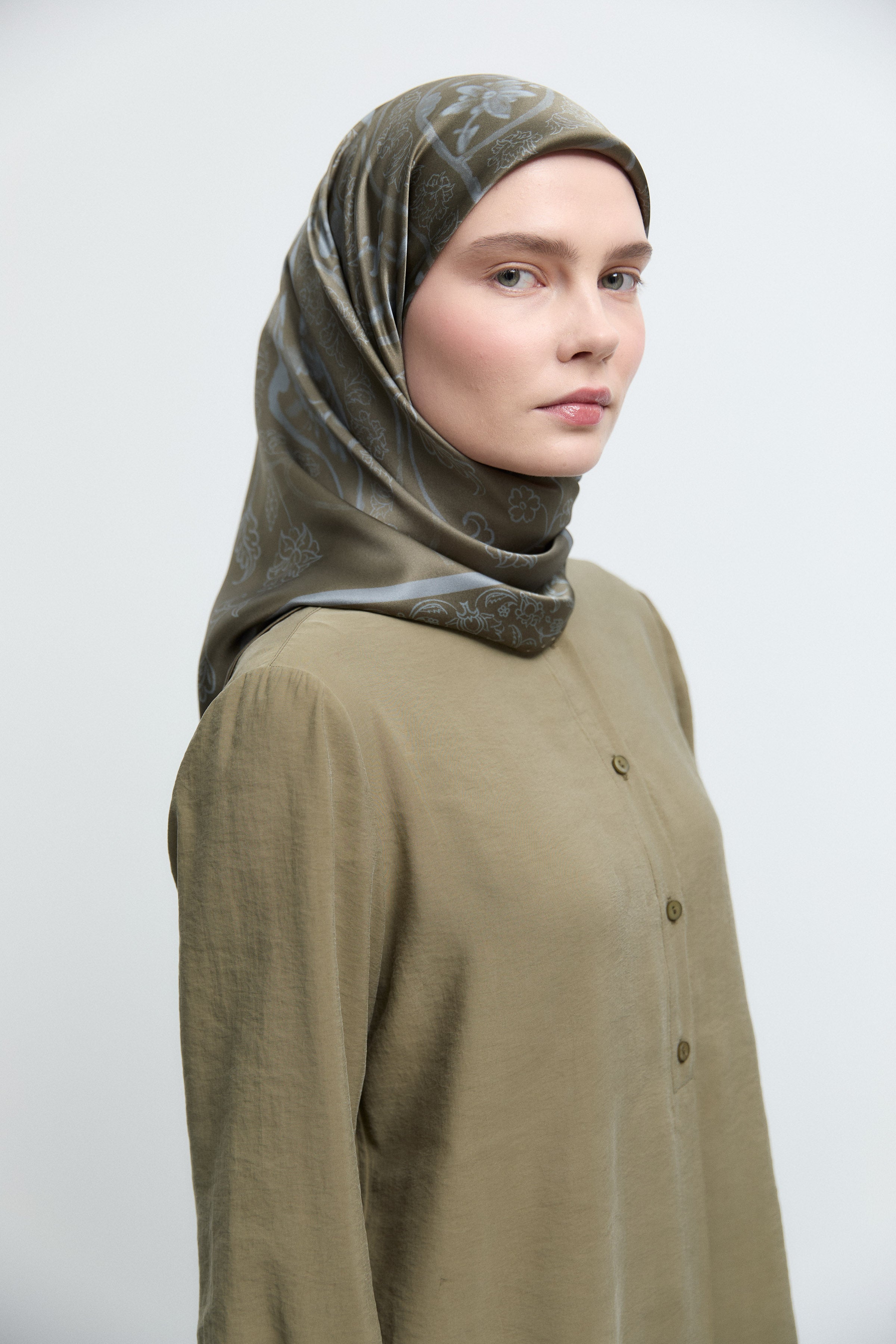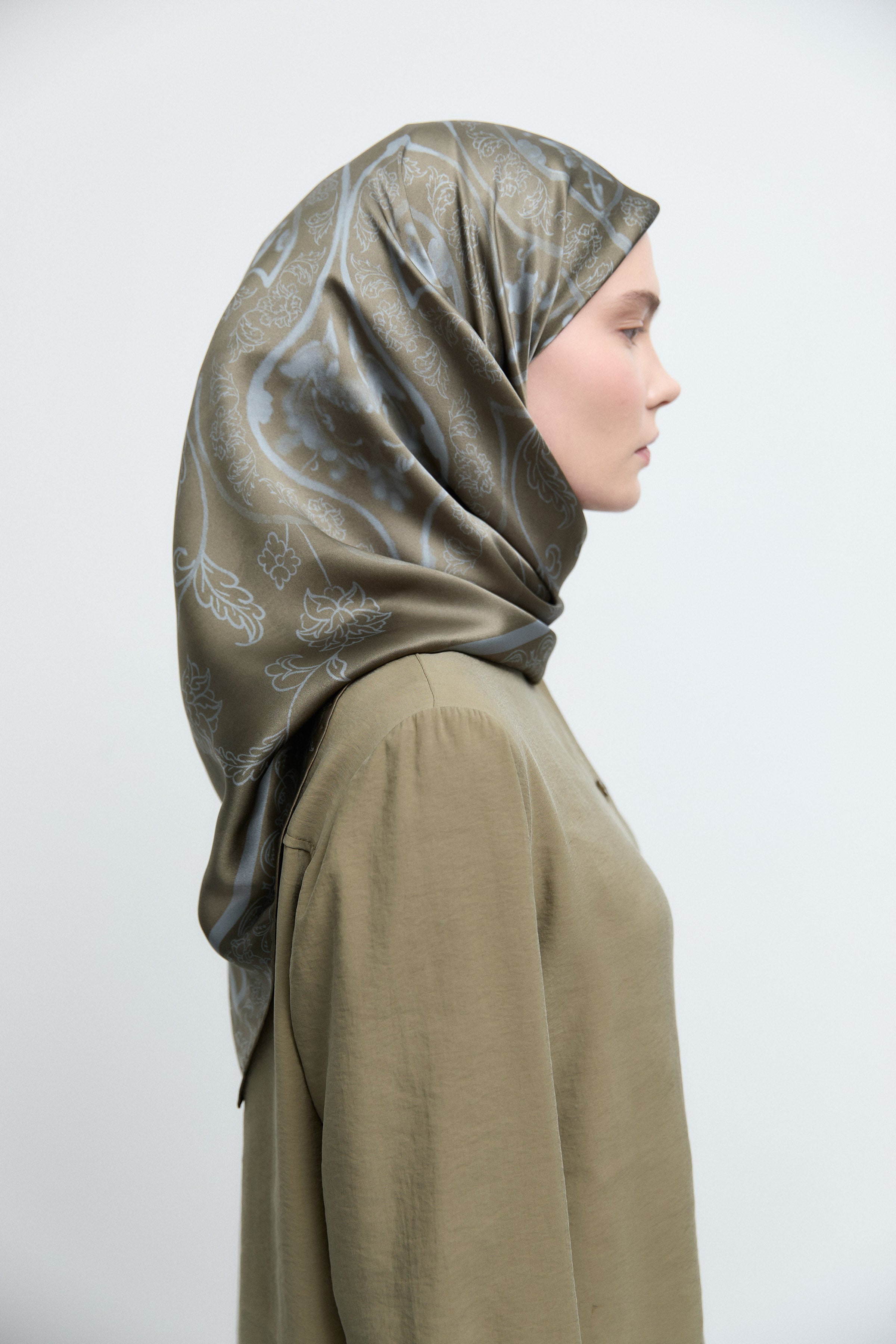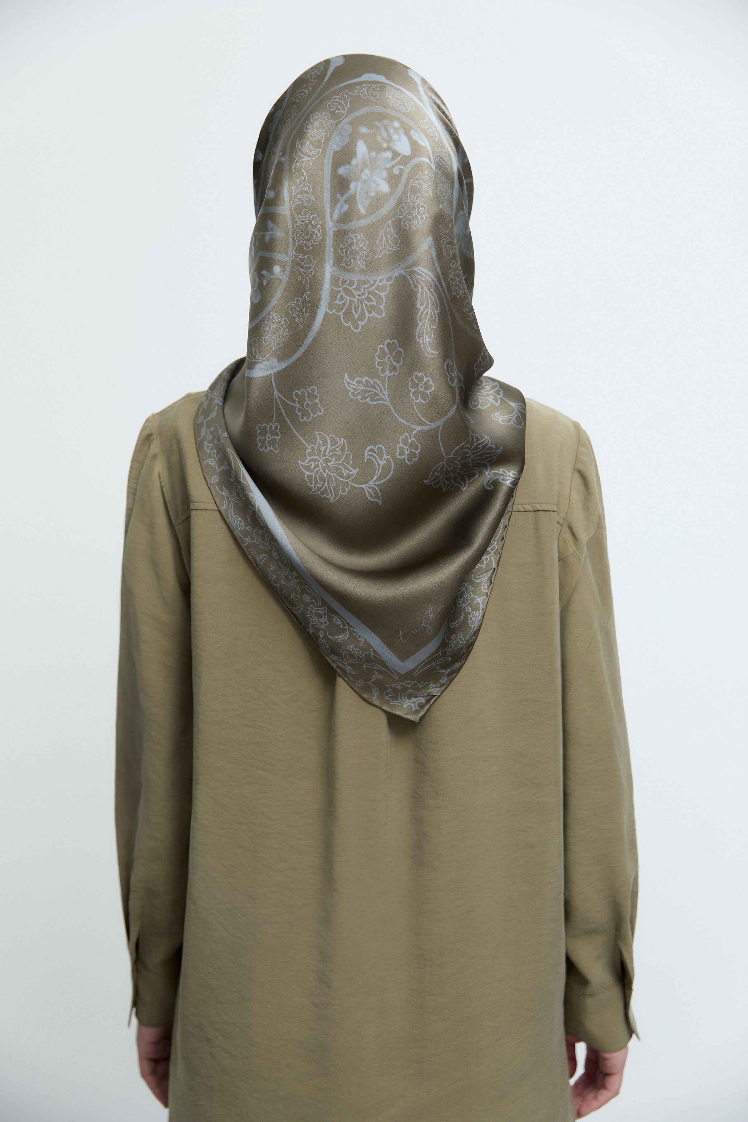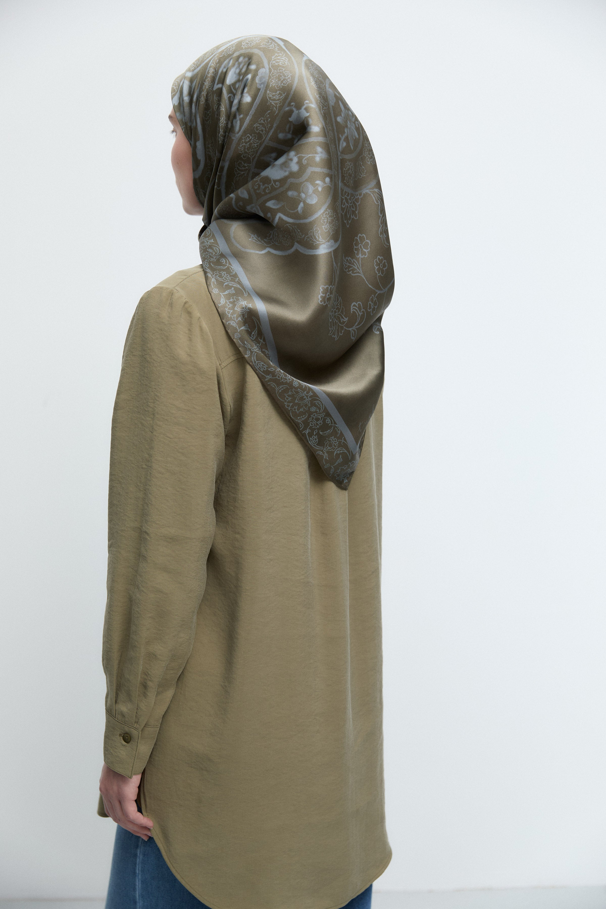 Écharpe en twill de soie Gülşah - Kaki