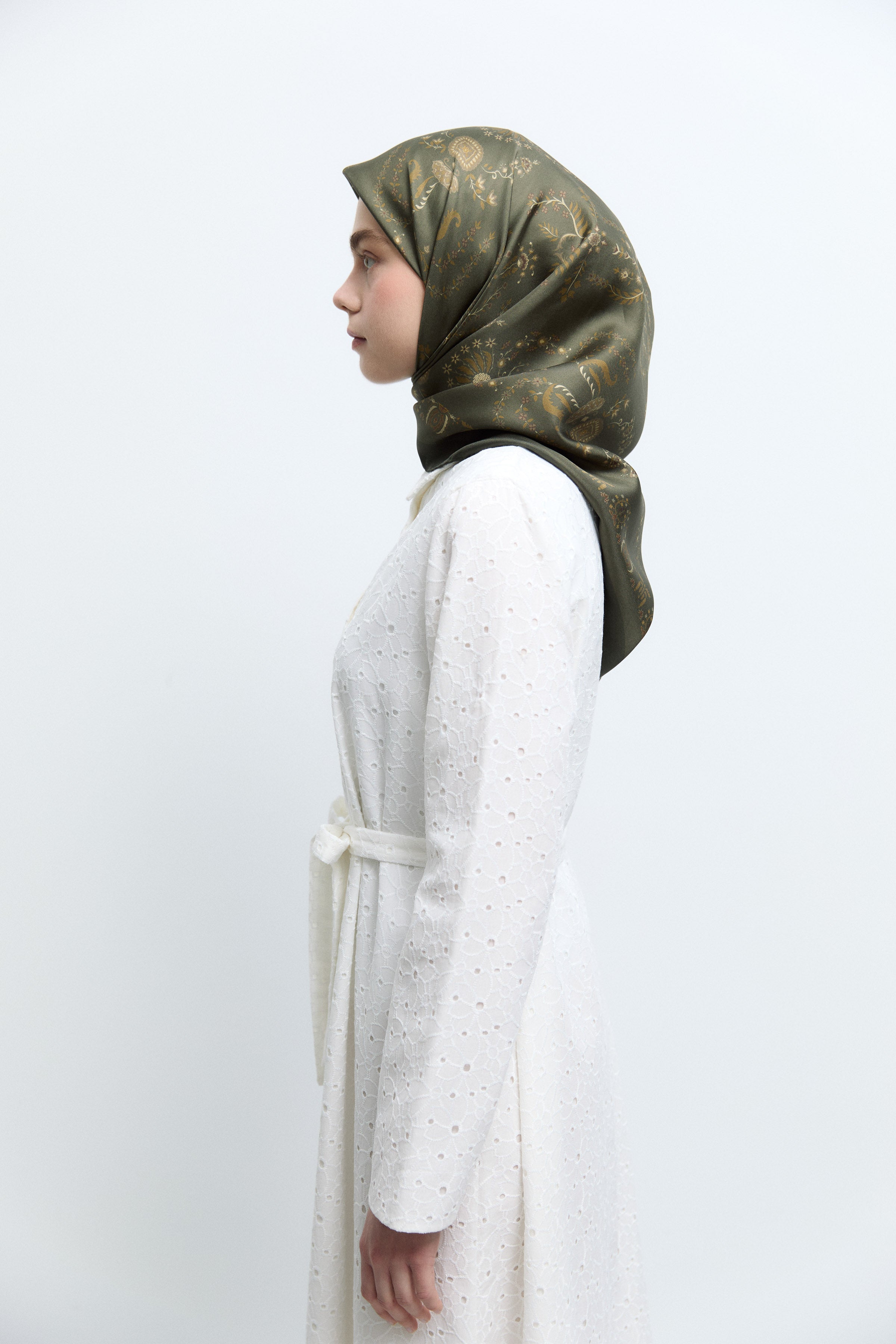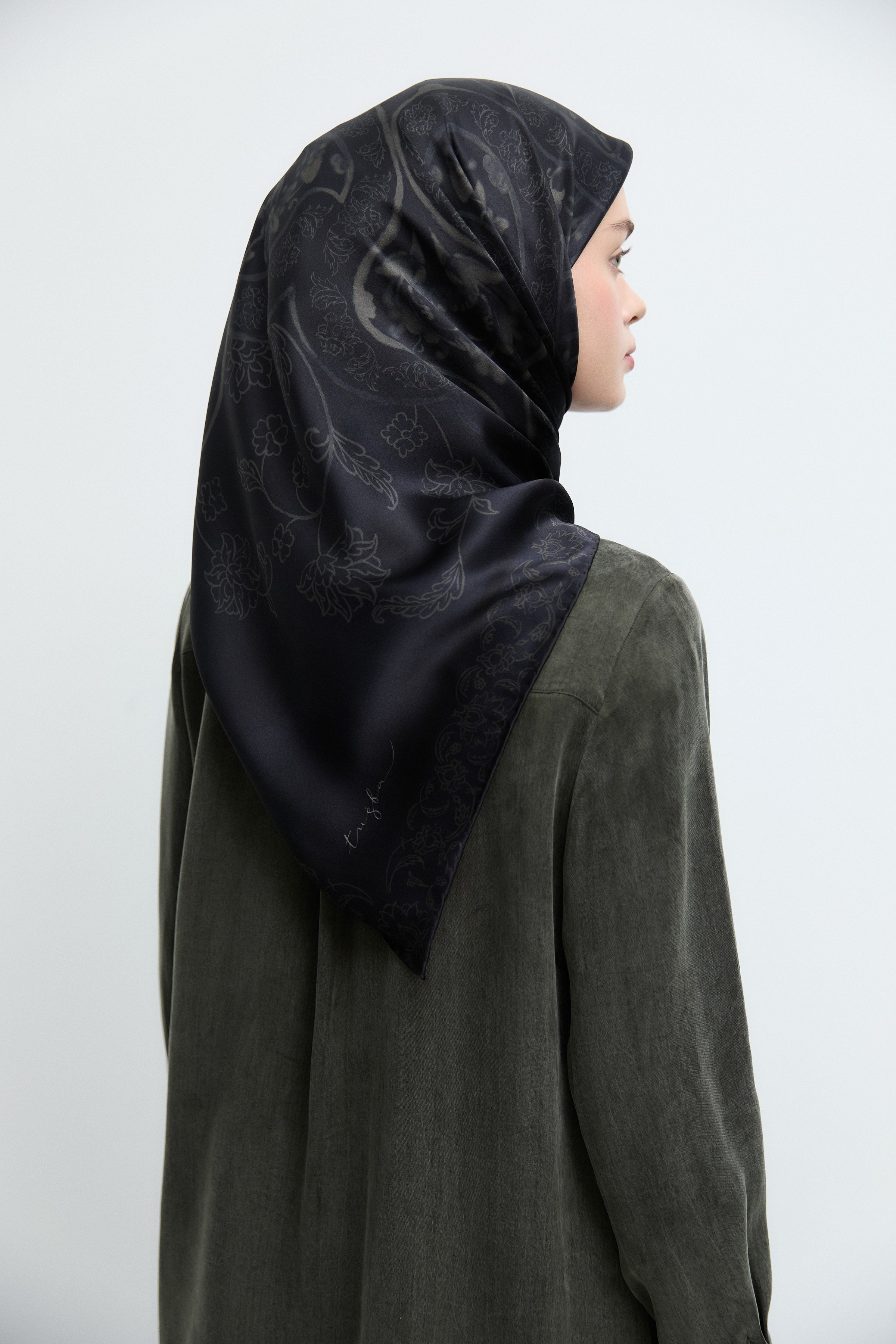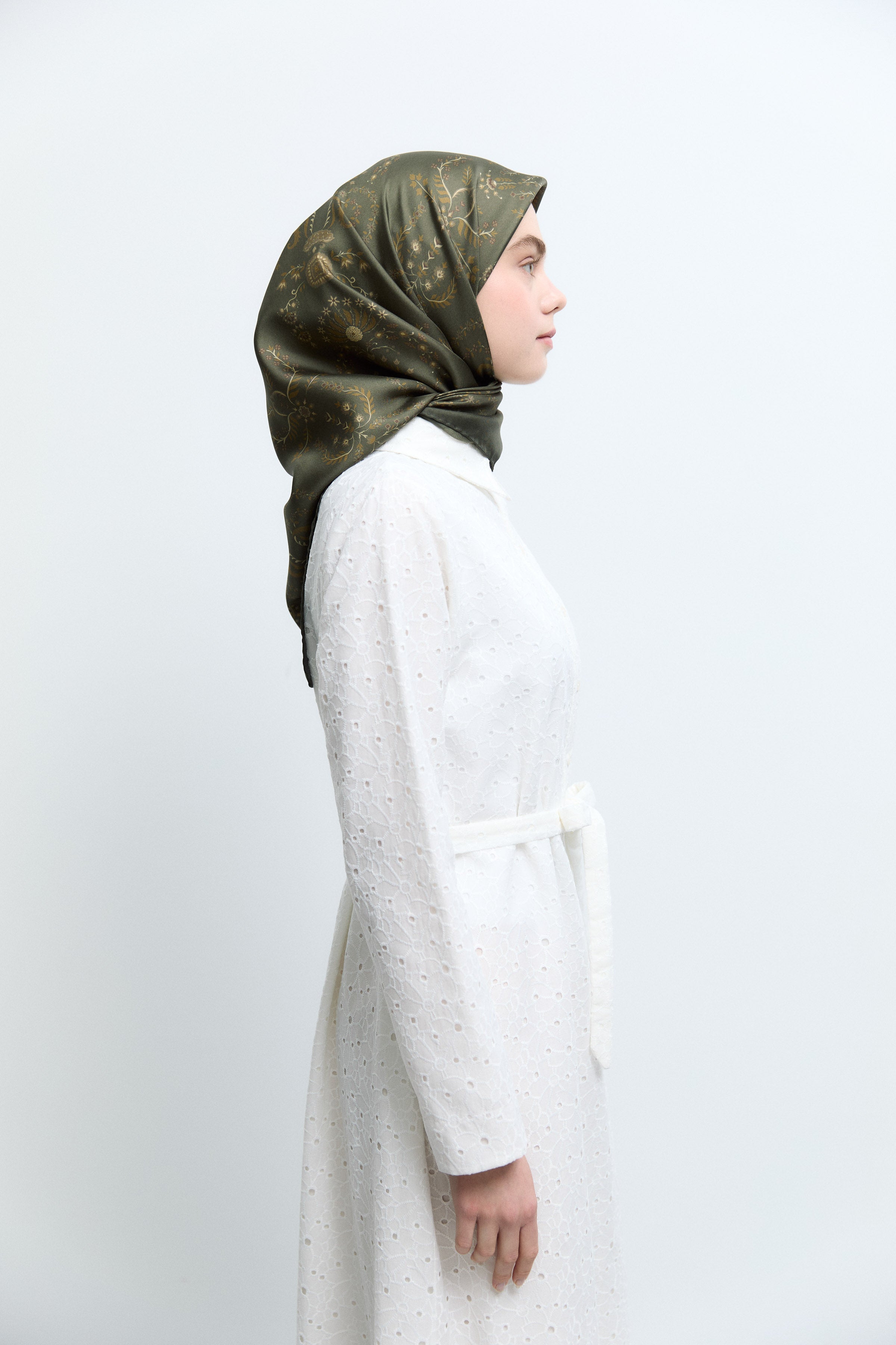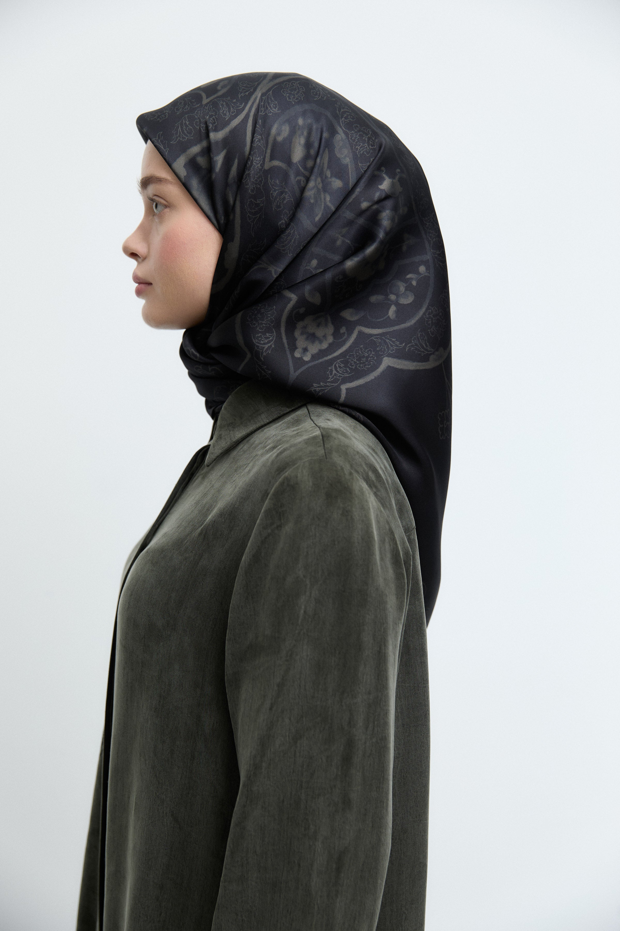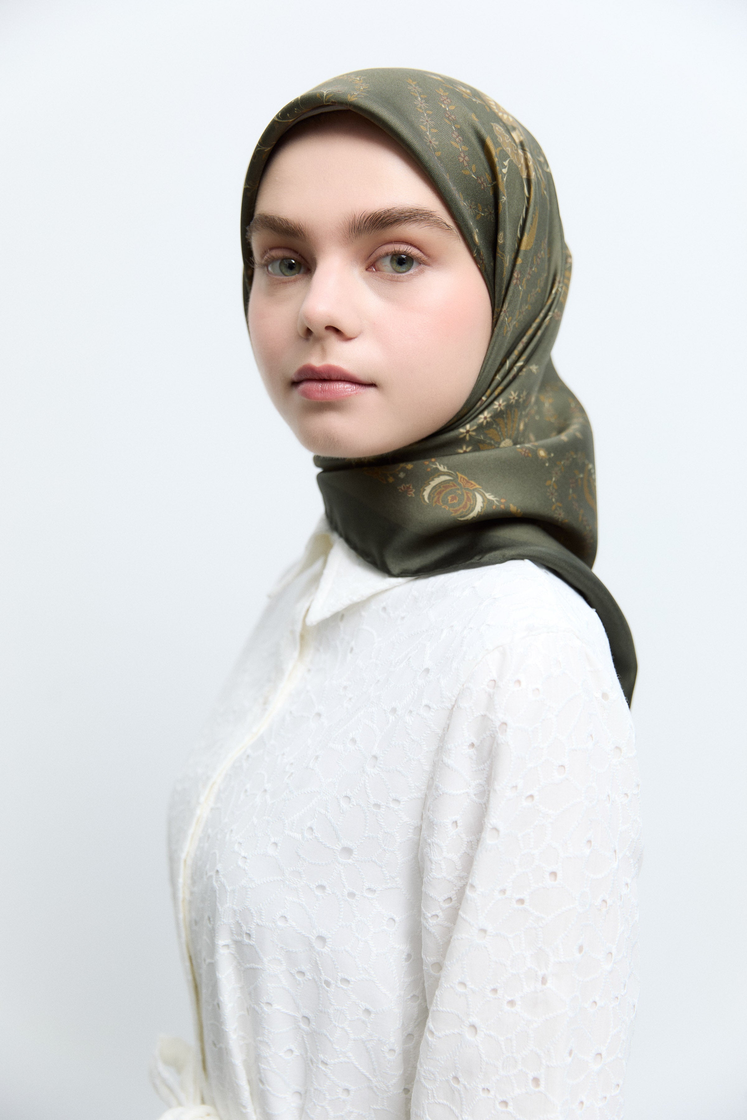 Écharpe en twill de soie Gülşah - Kaki