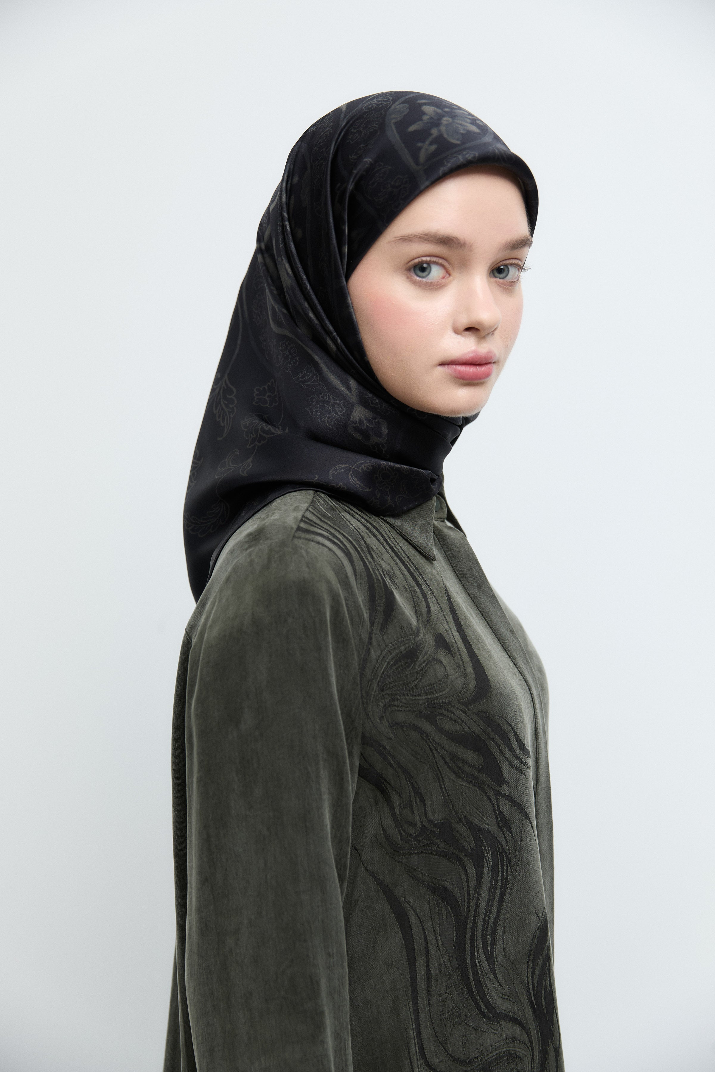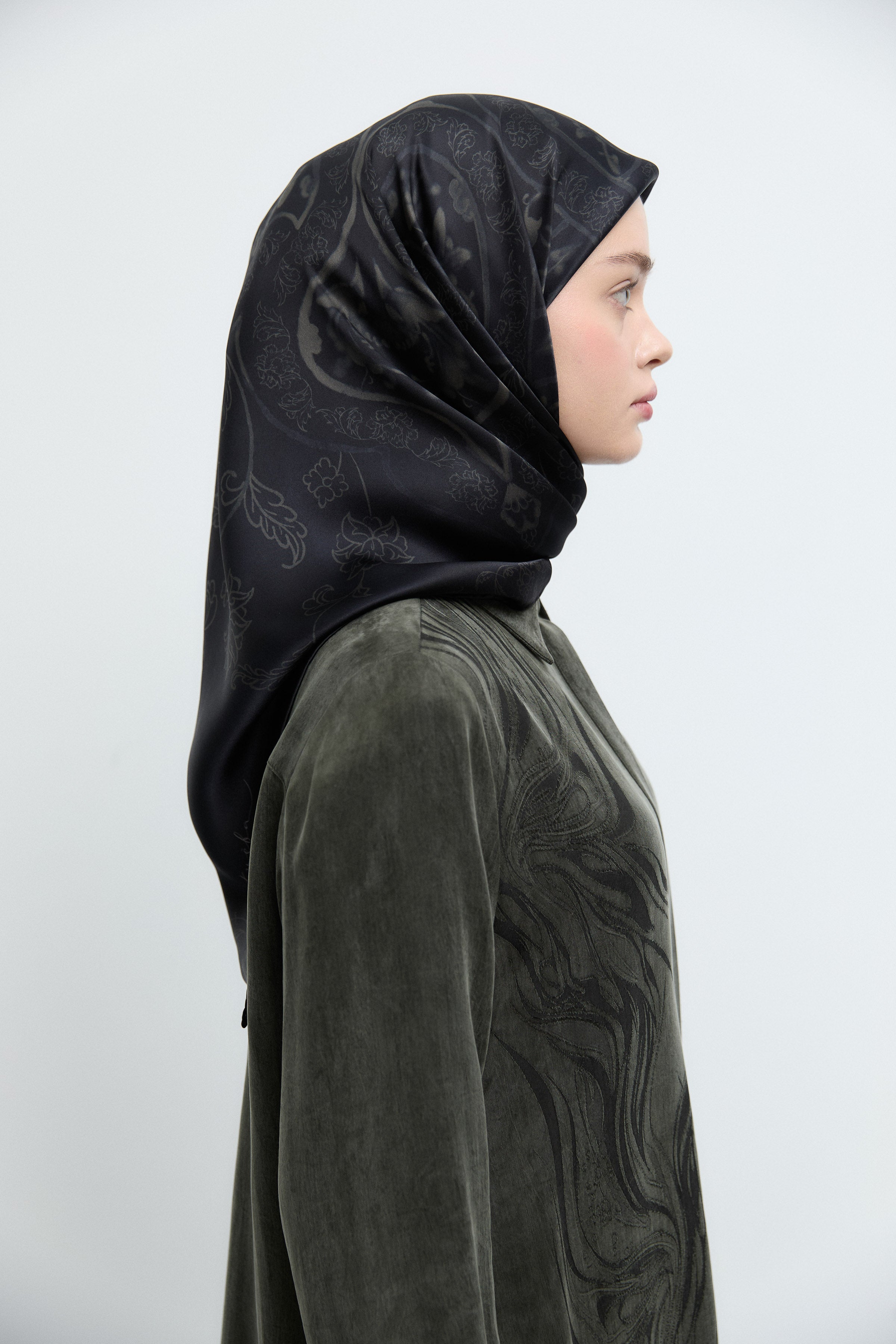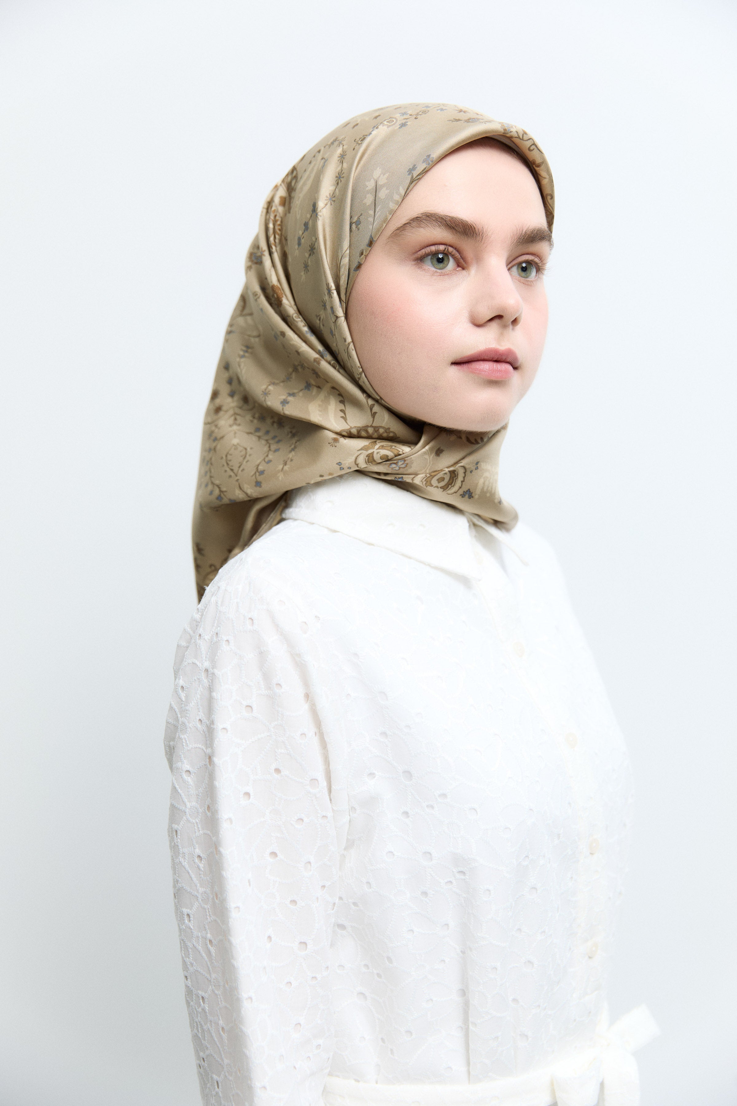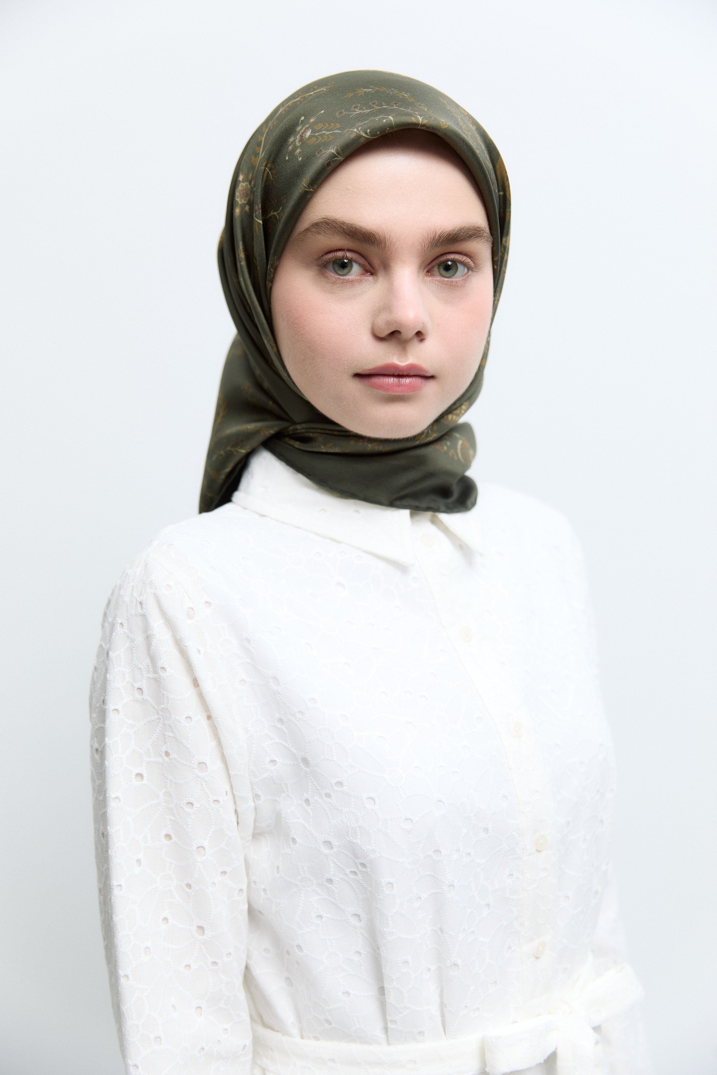 Écharpe en twill de soie Gülşah - Kaki