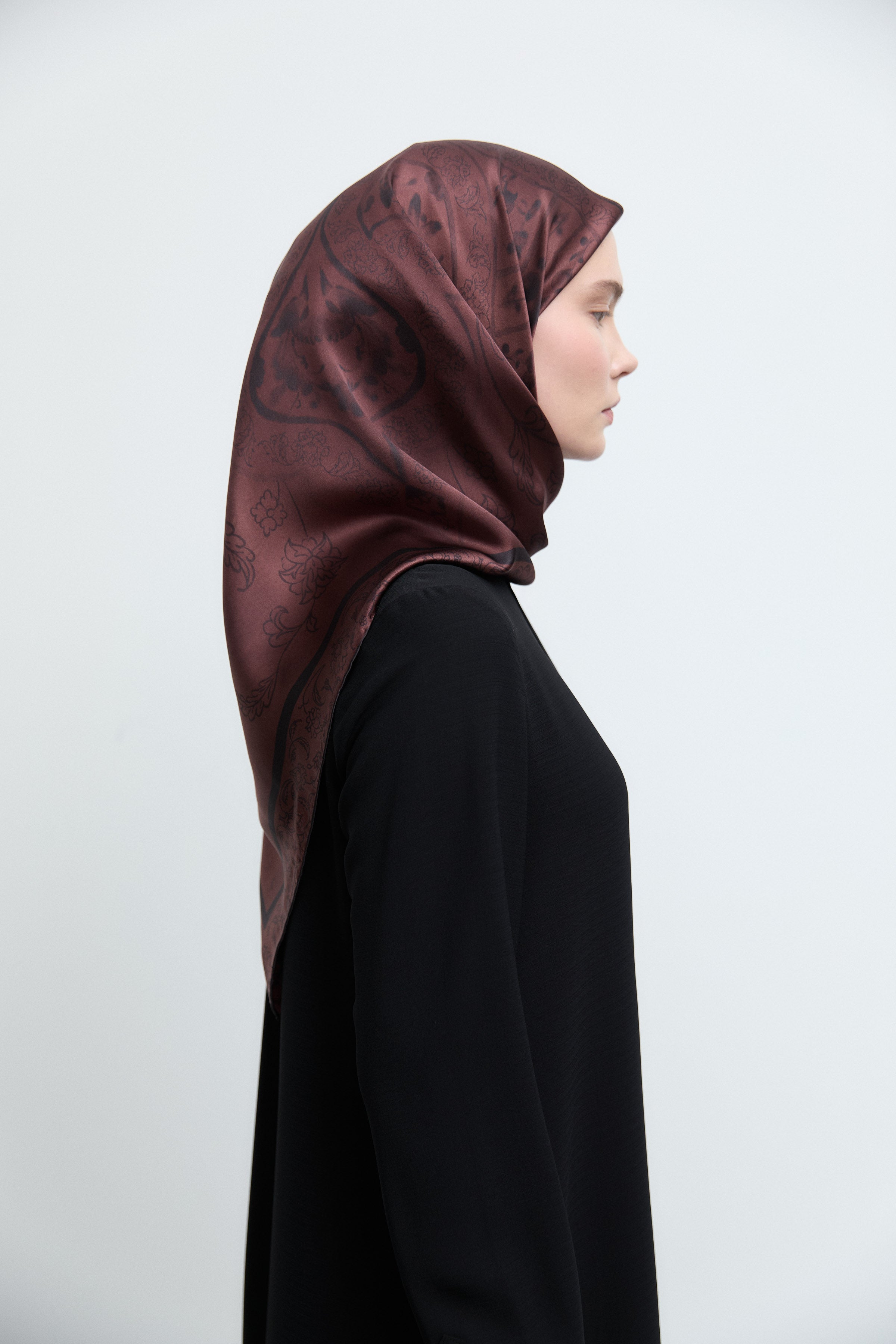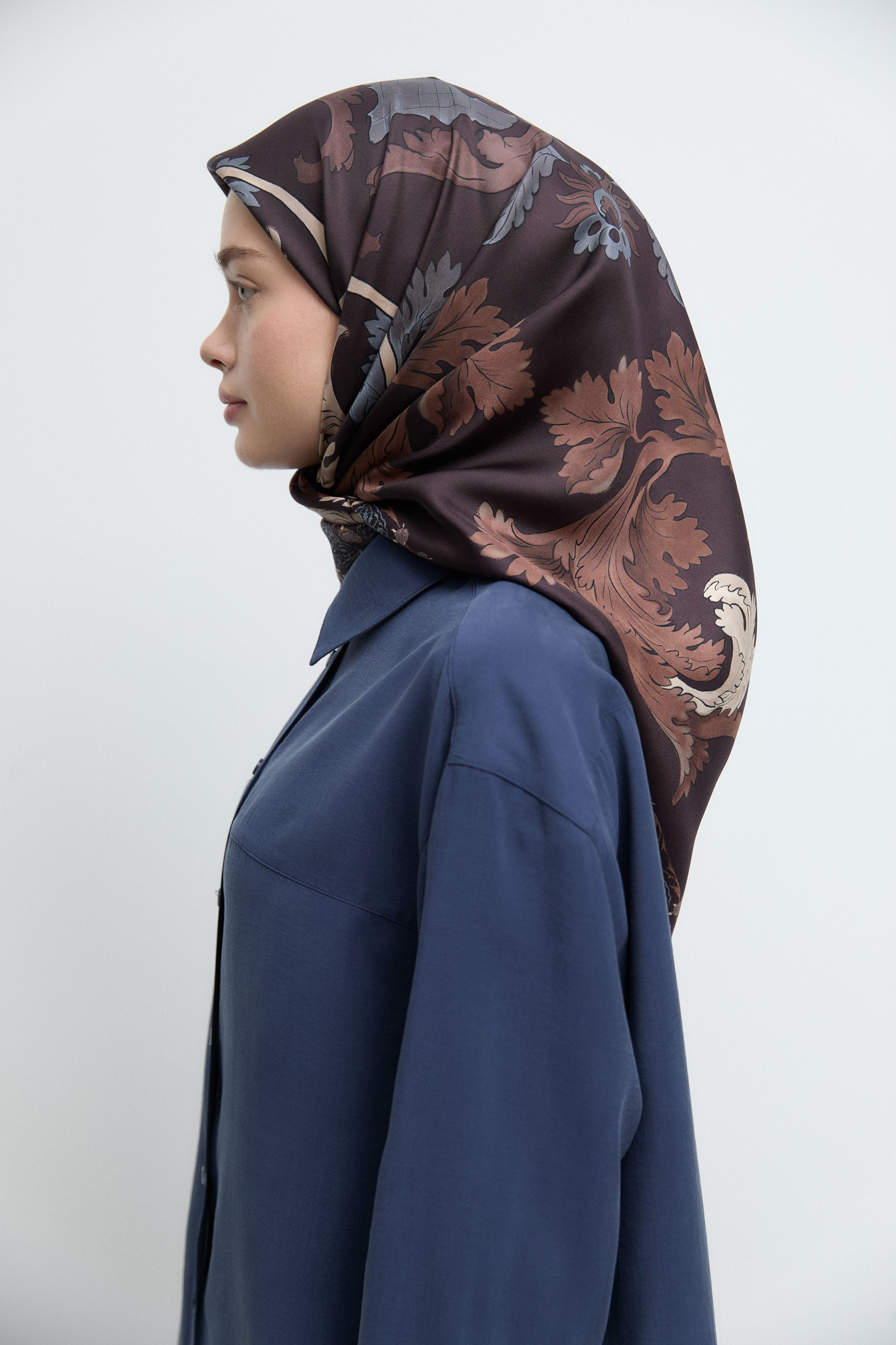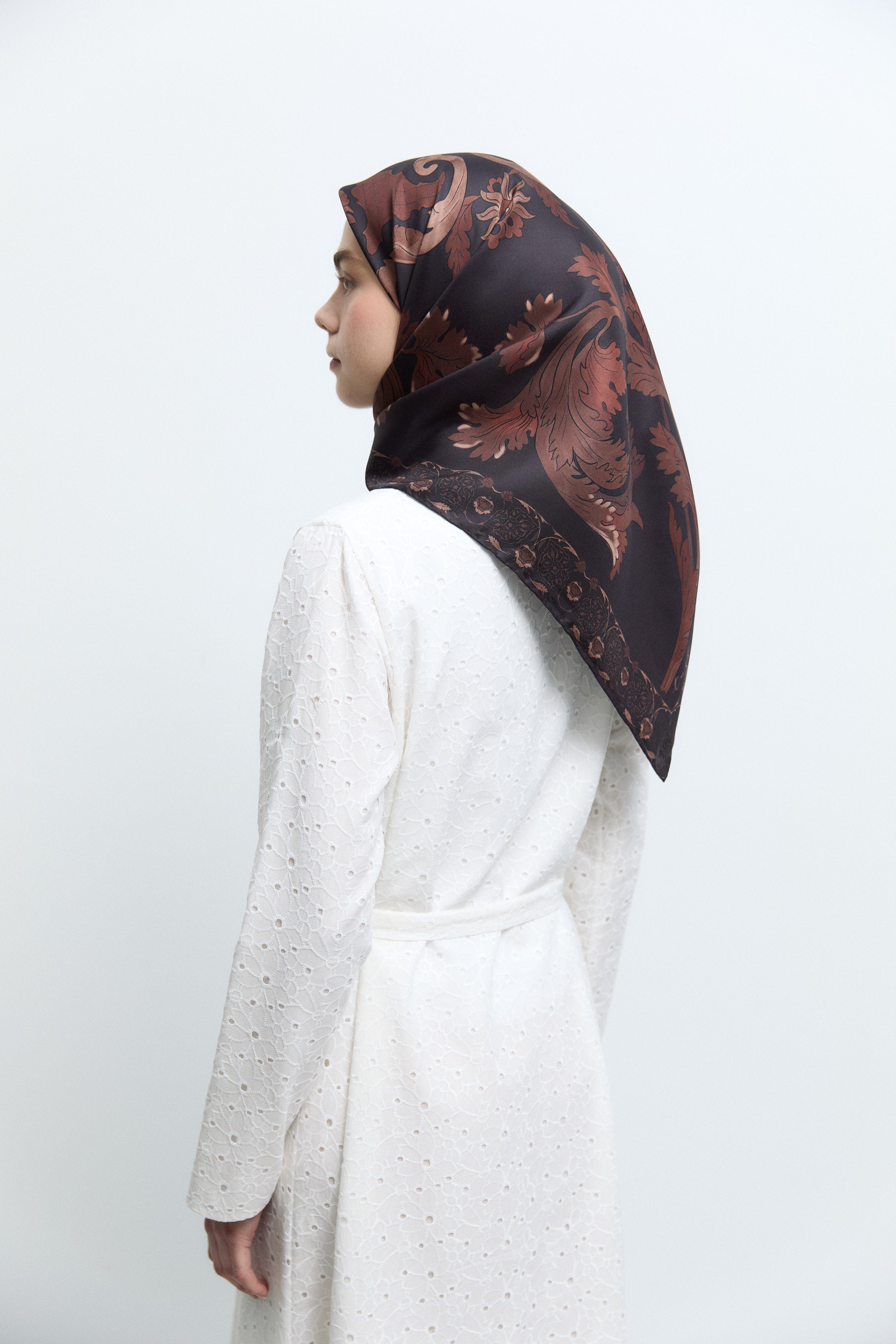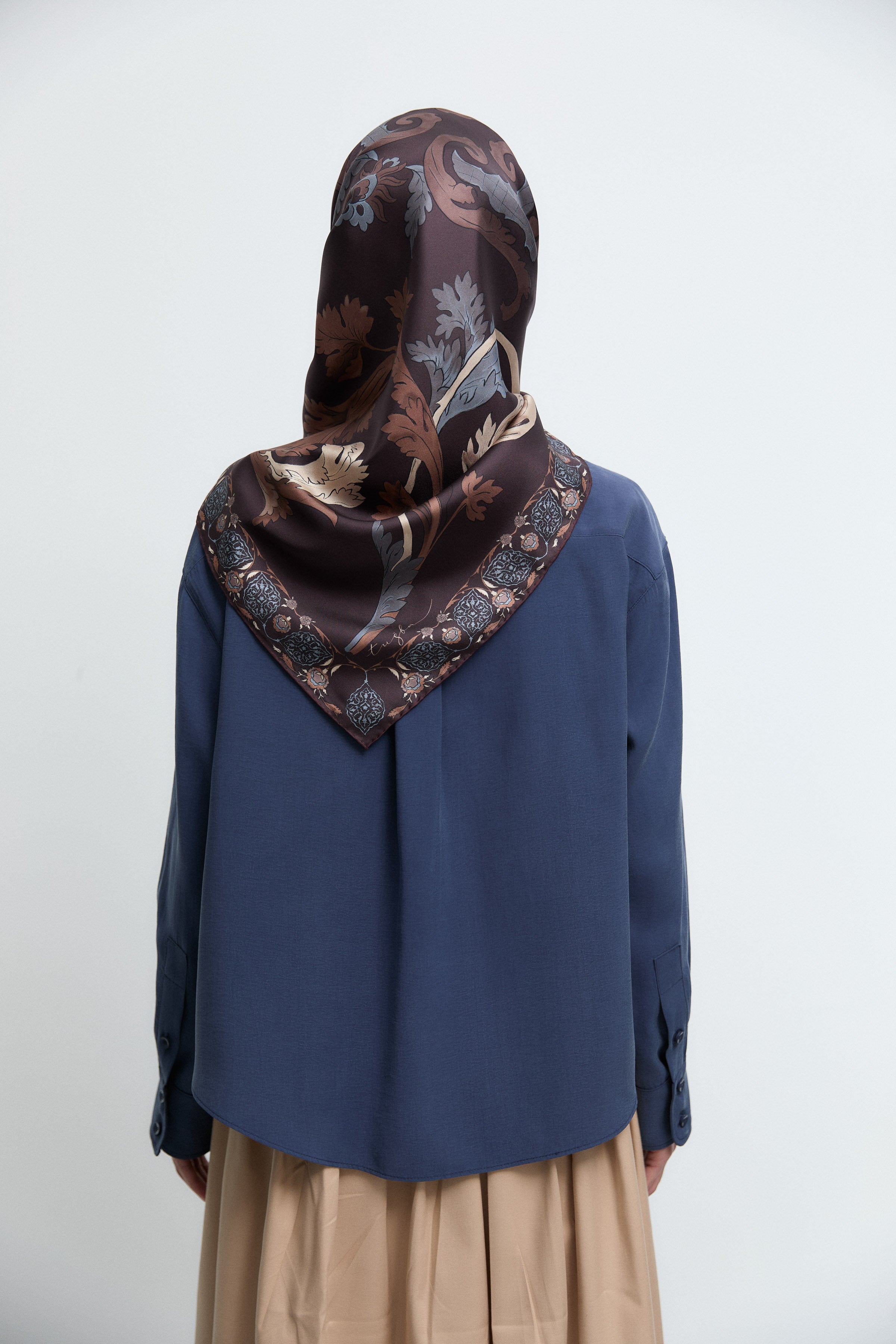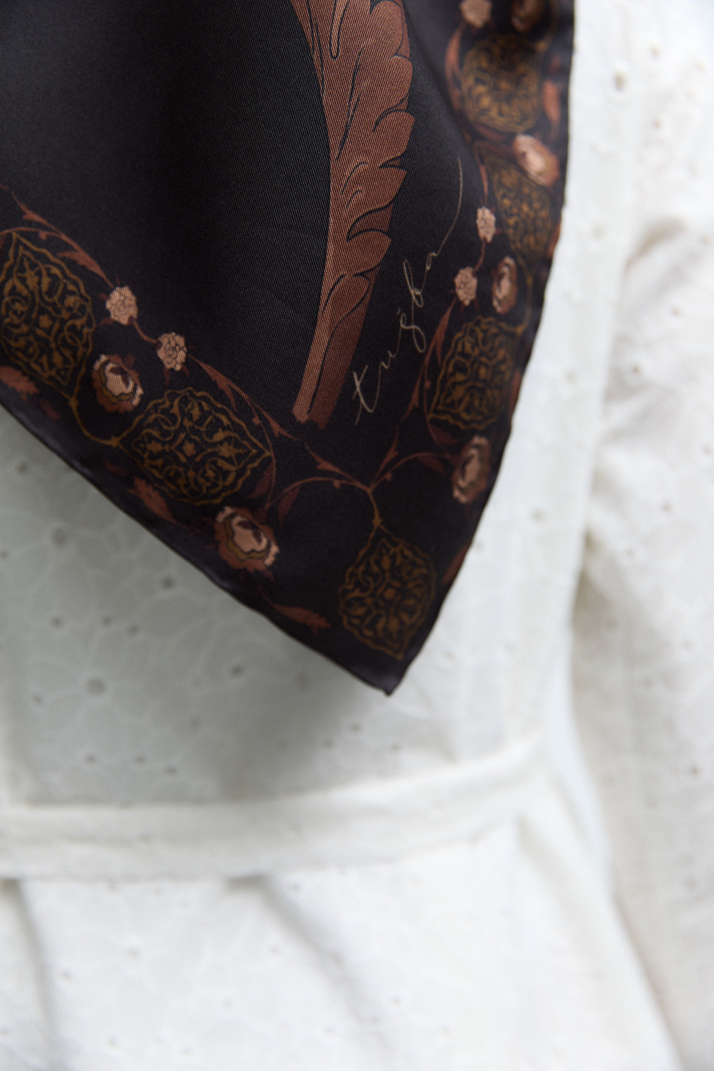 Écharpe en soie twill Taharri - Marron foncé
