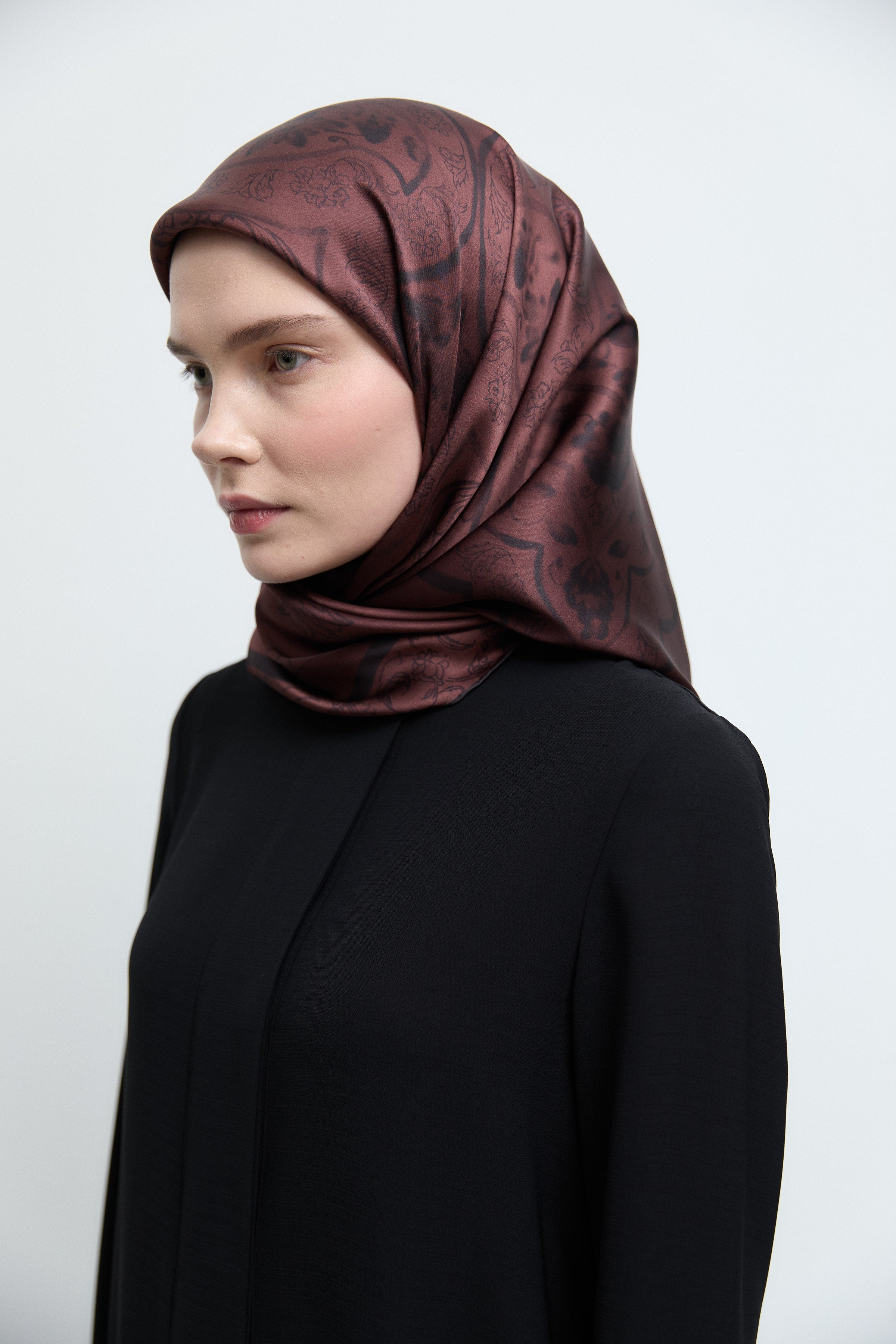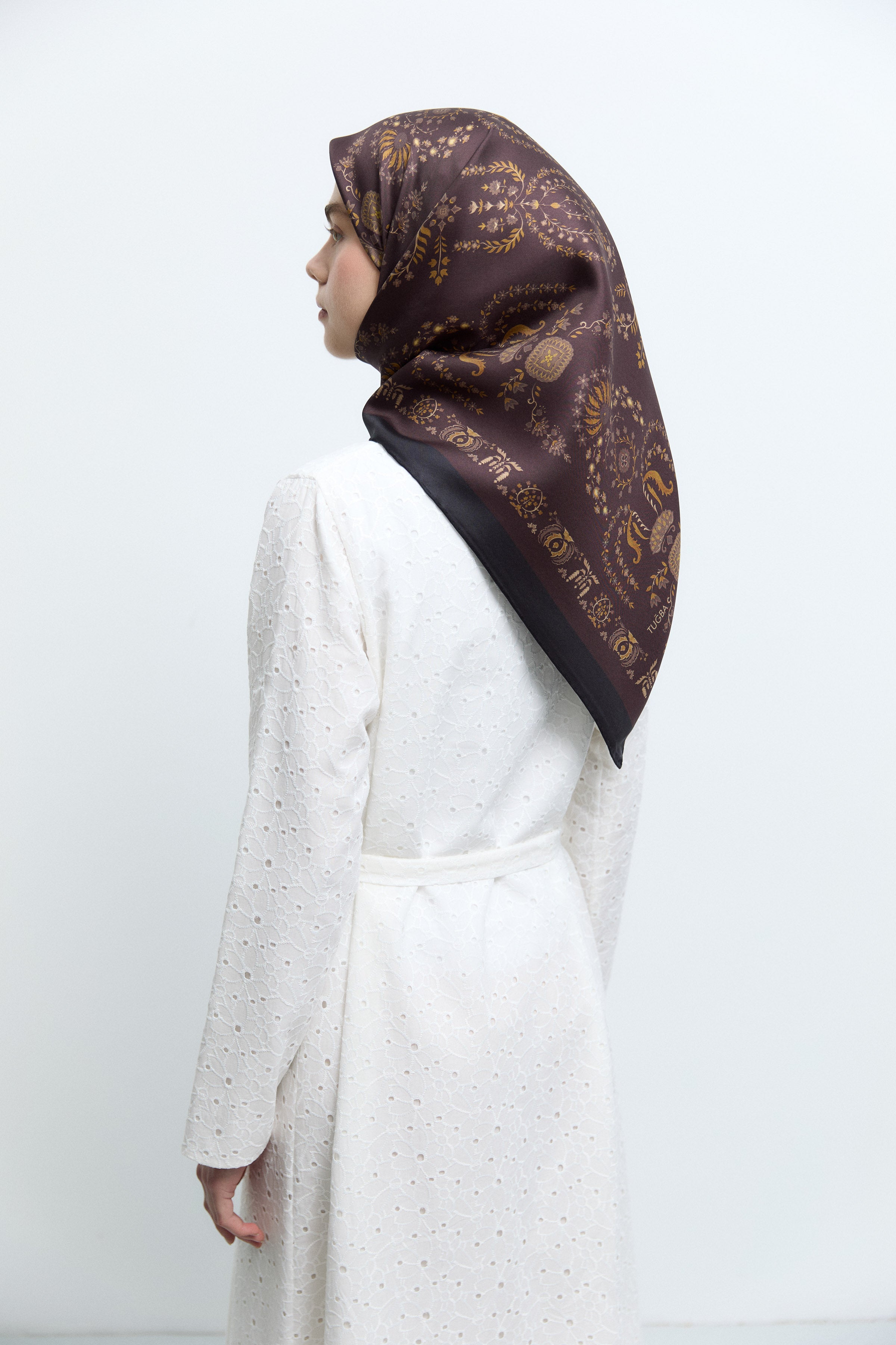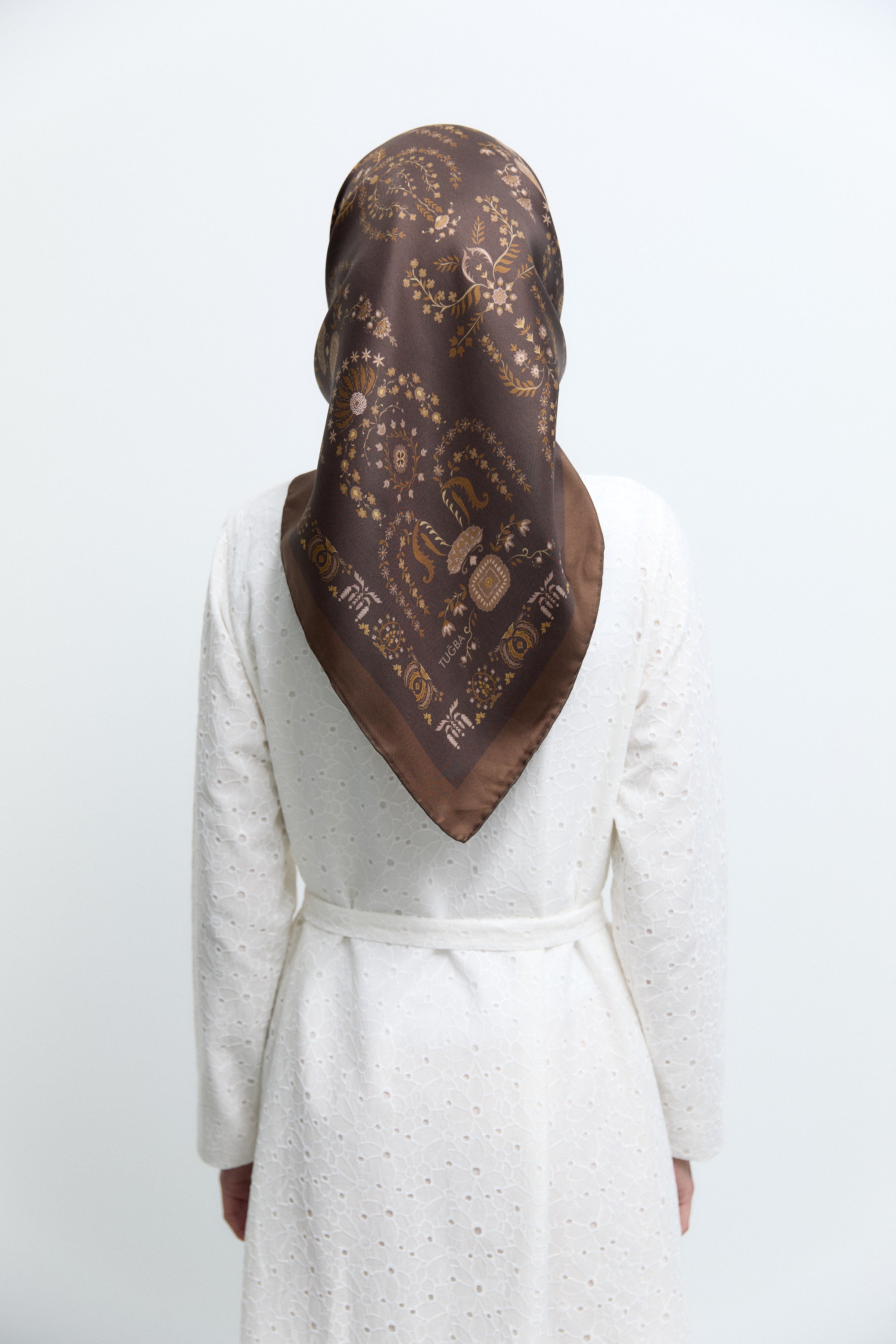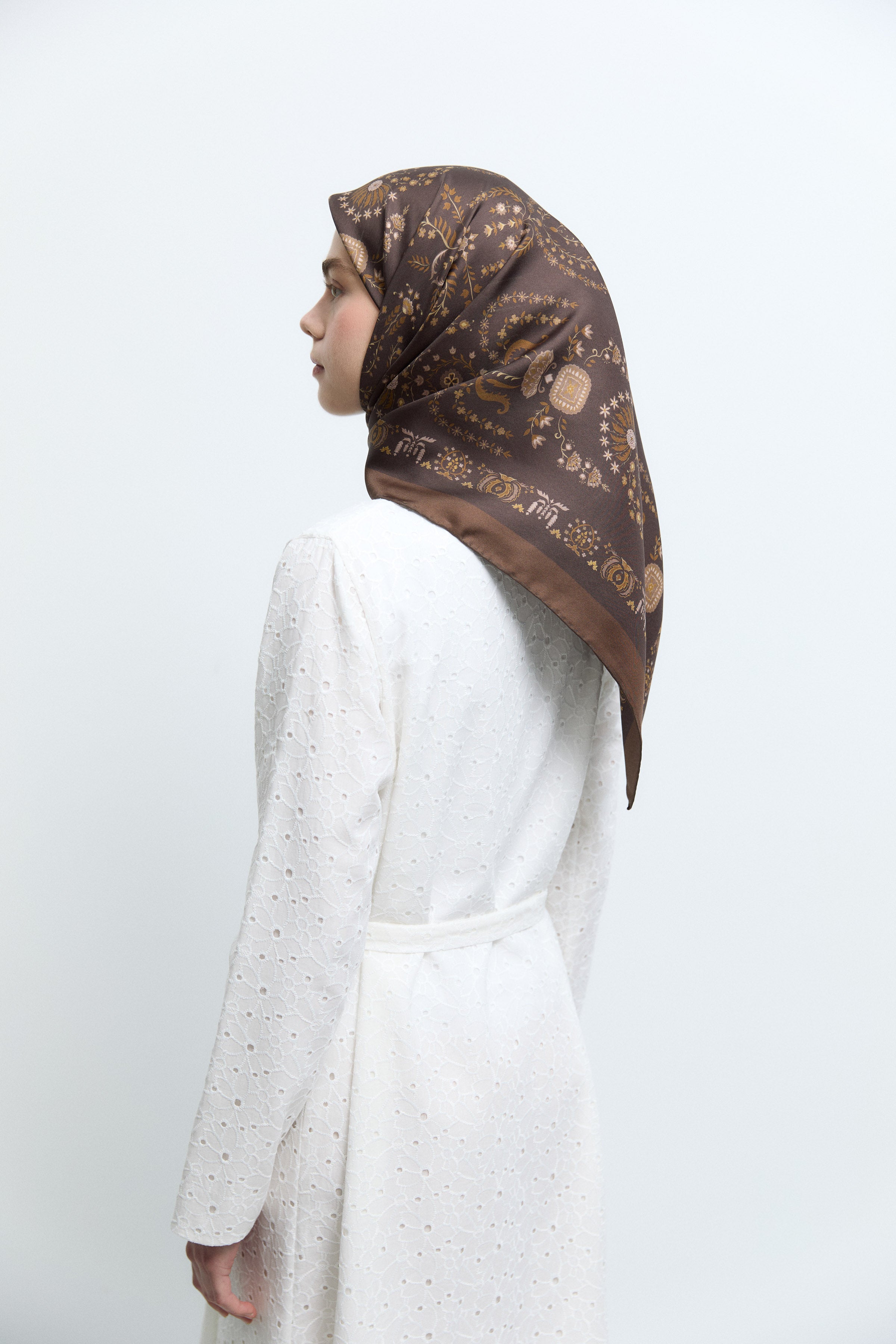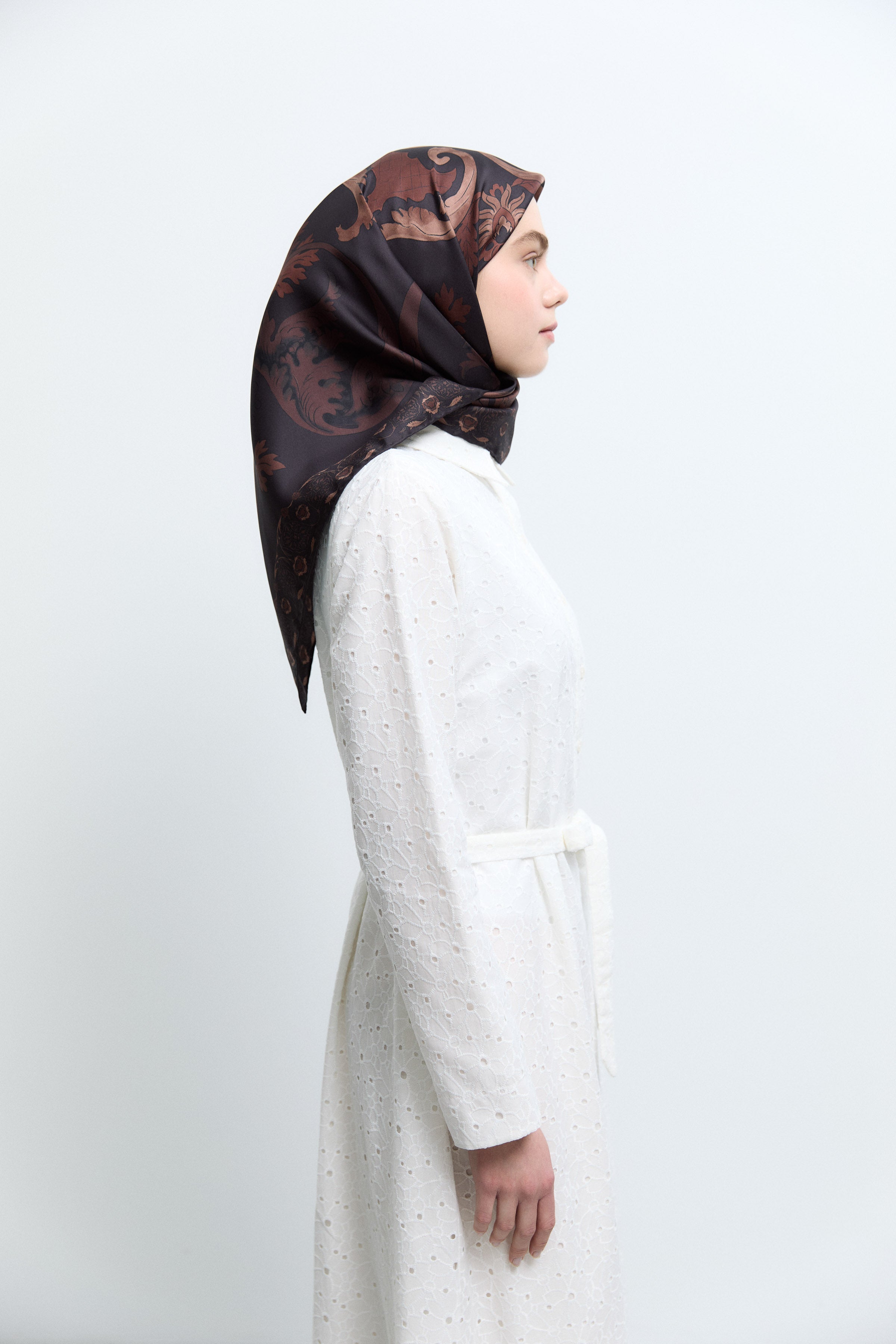 Écharpe en soie twill Taharri - Marron foncé