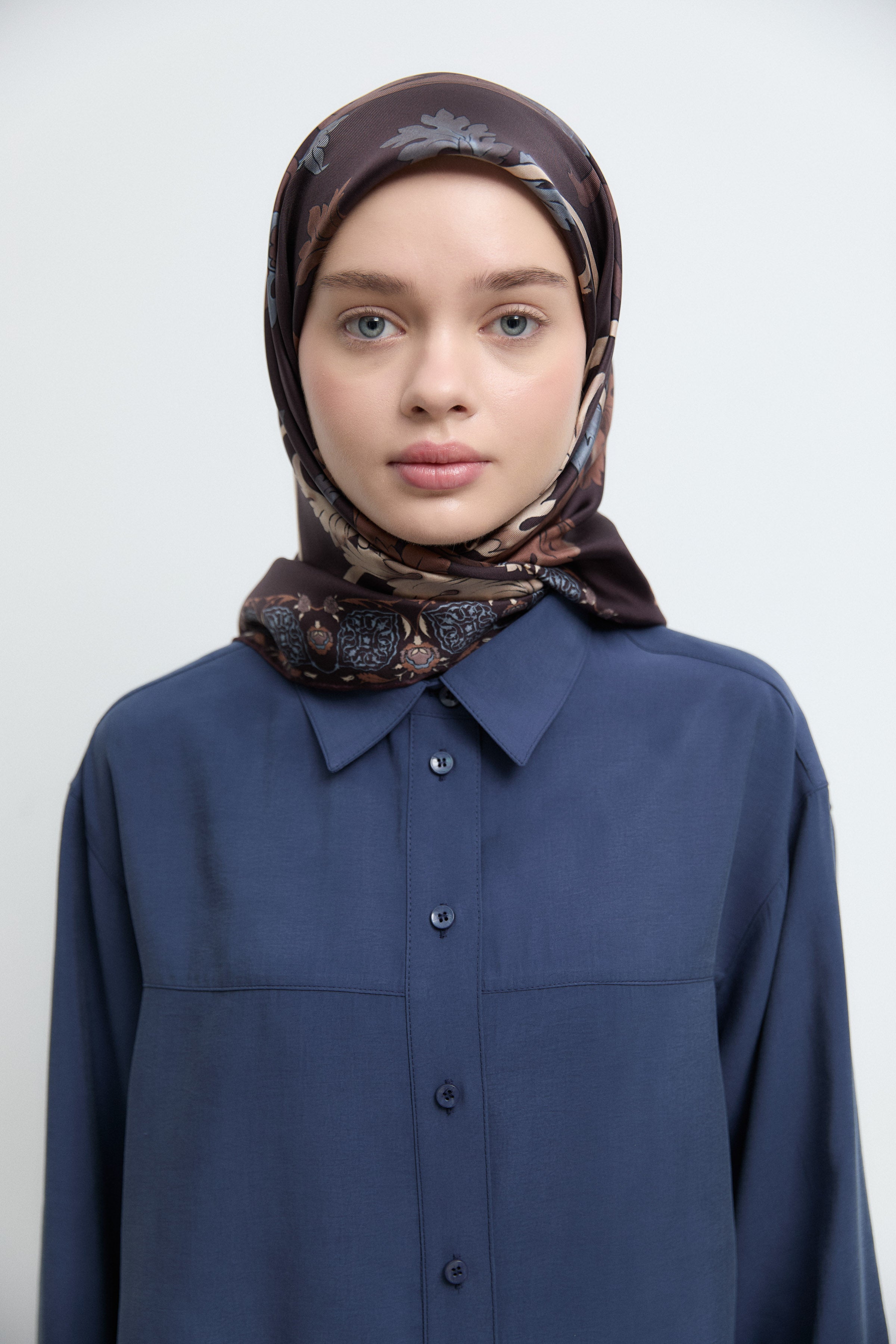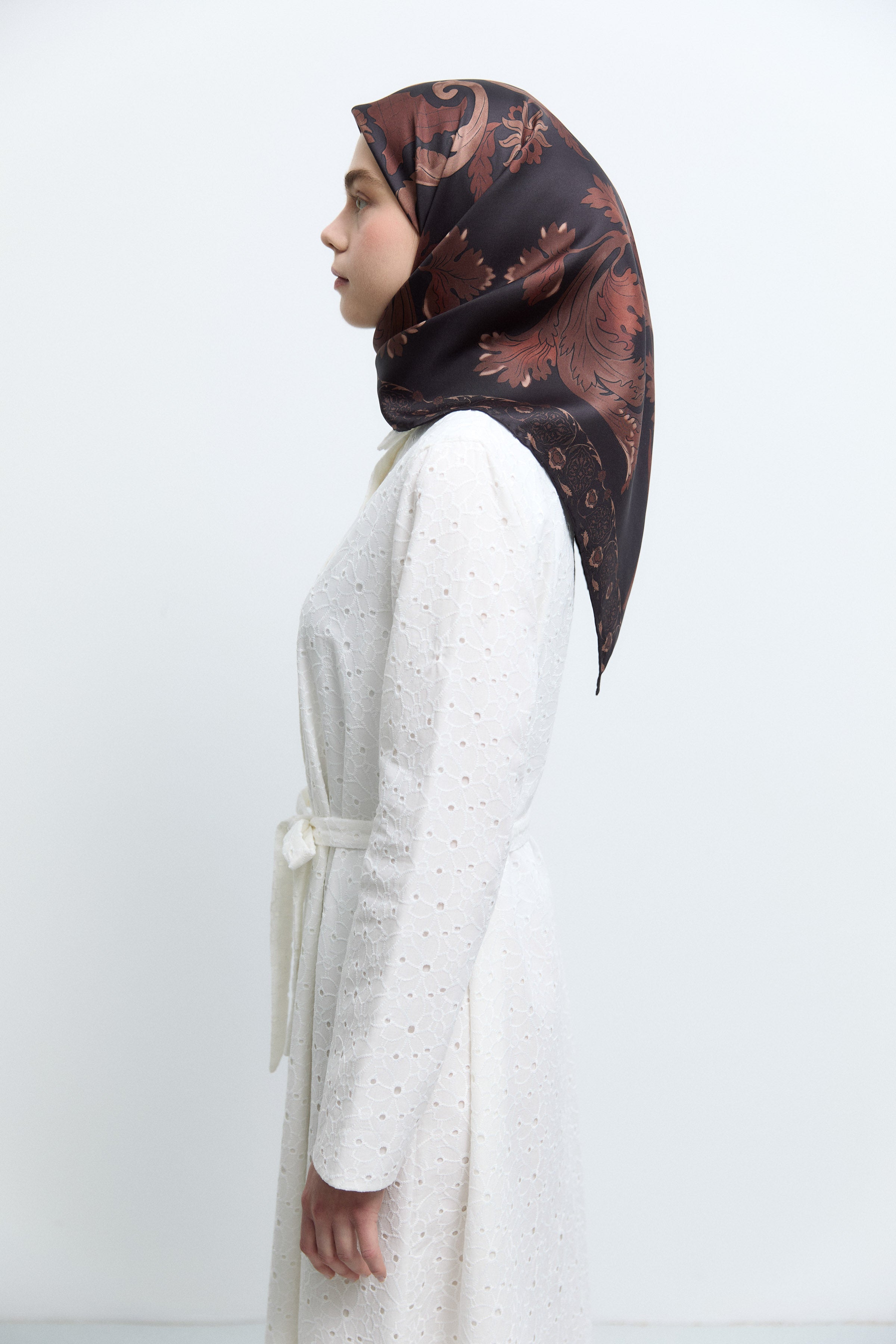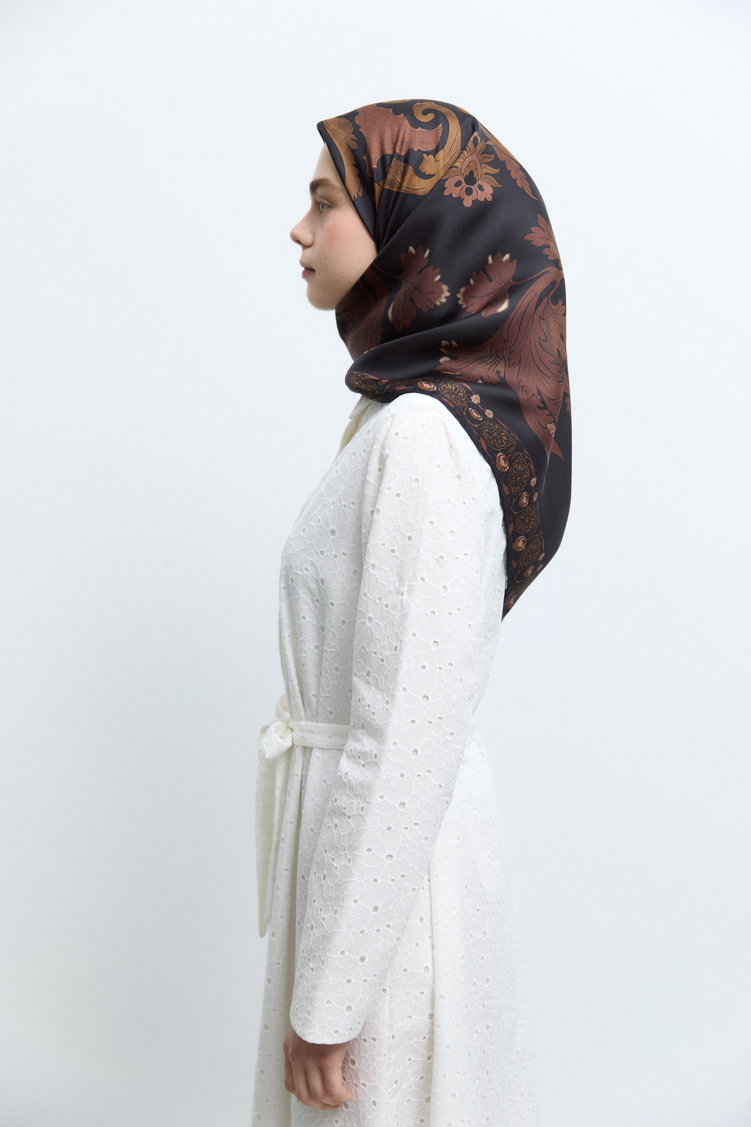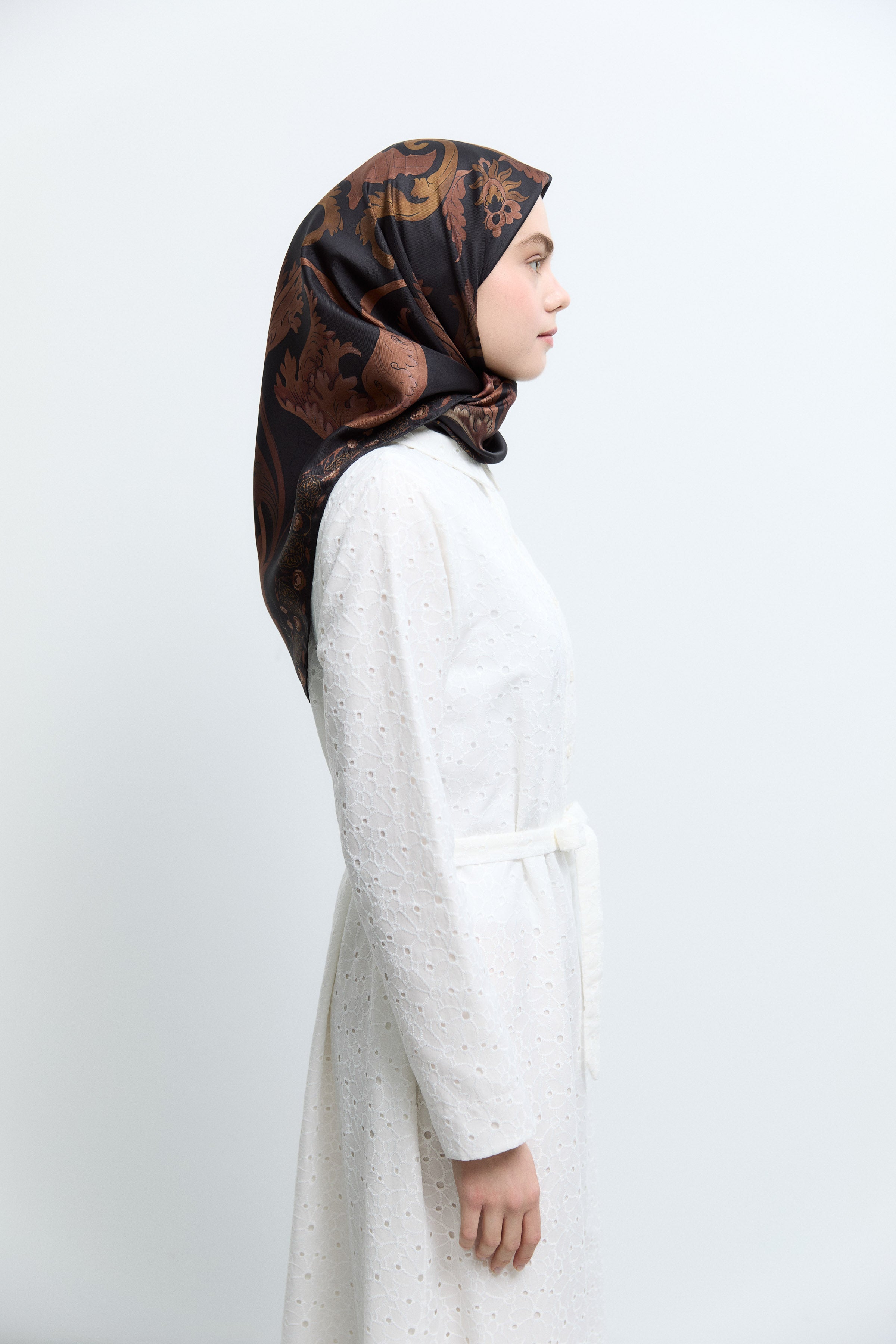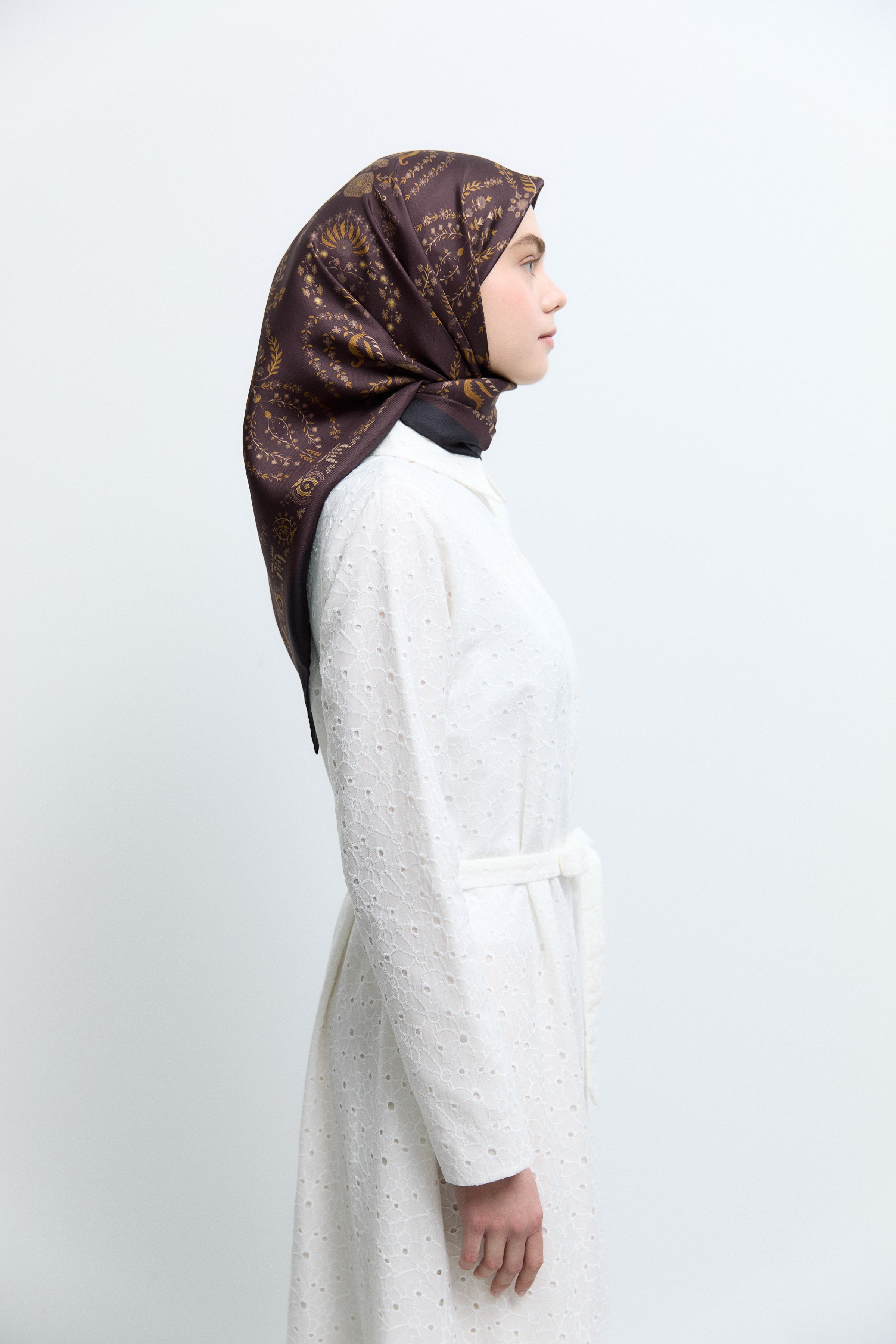 Écharpe en soie twill Taharri - Marron foncé
