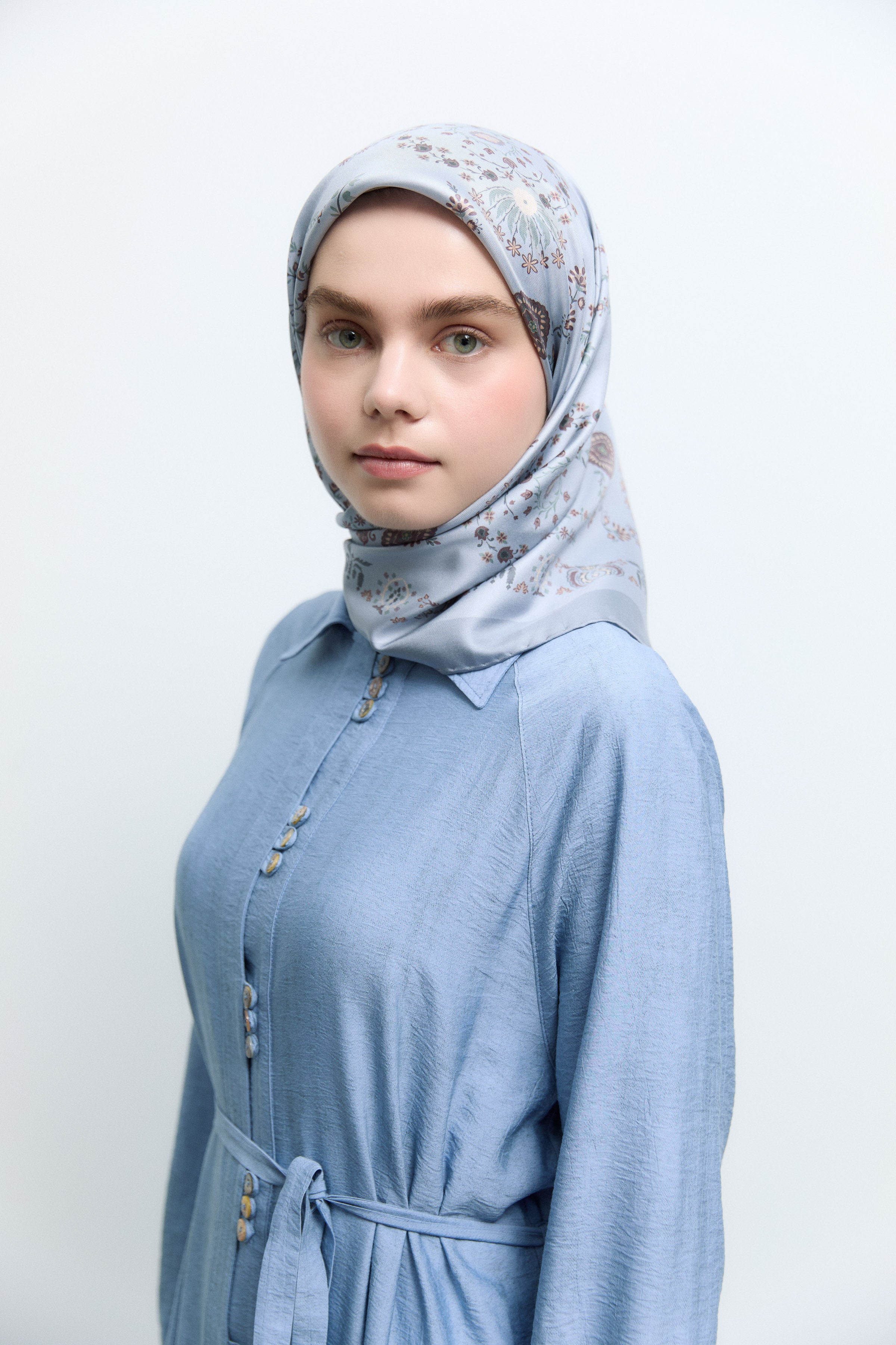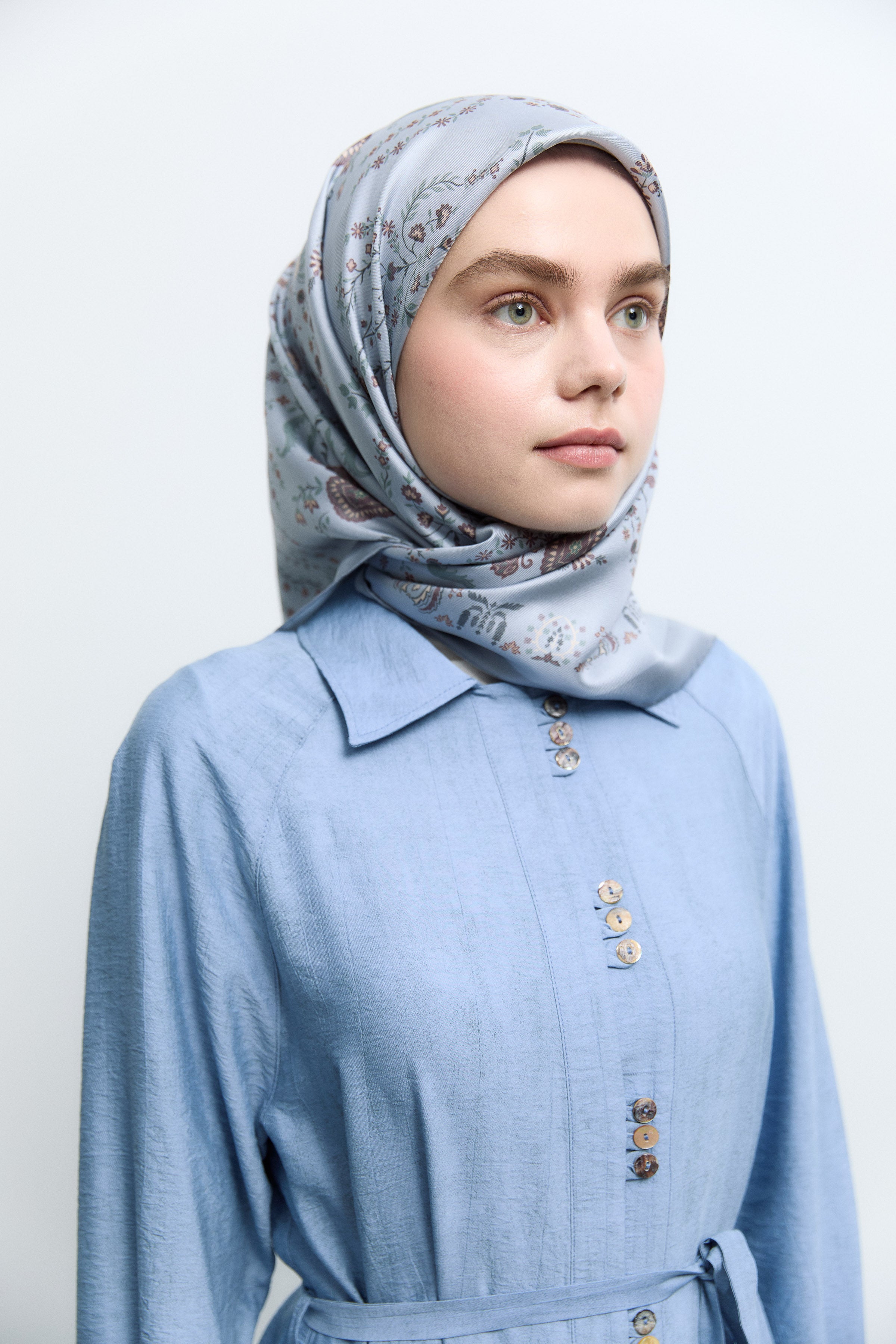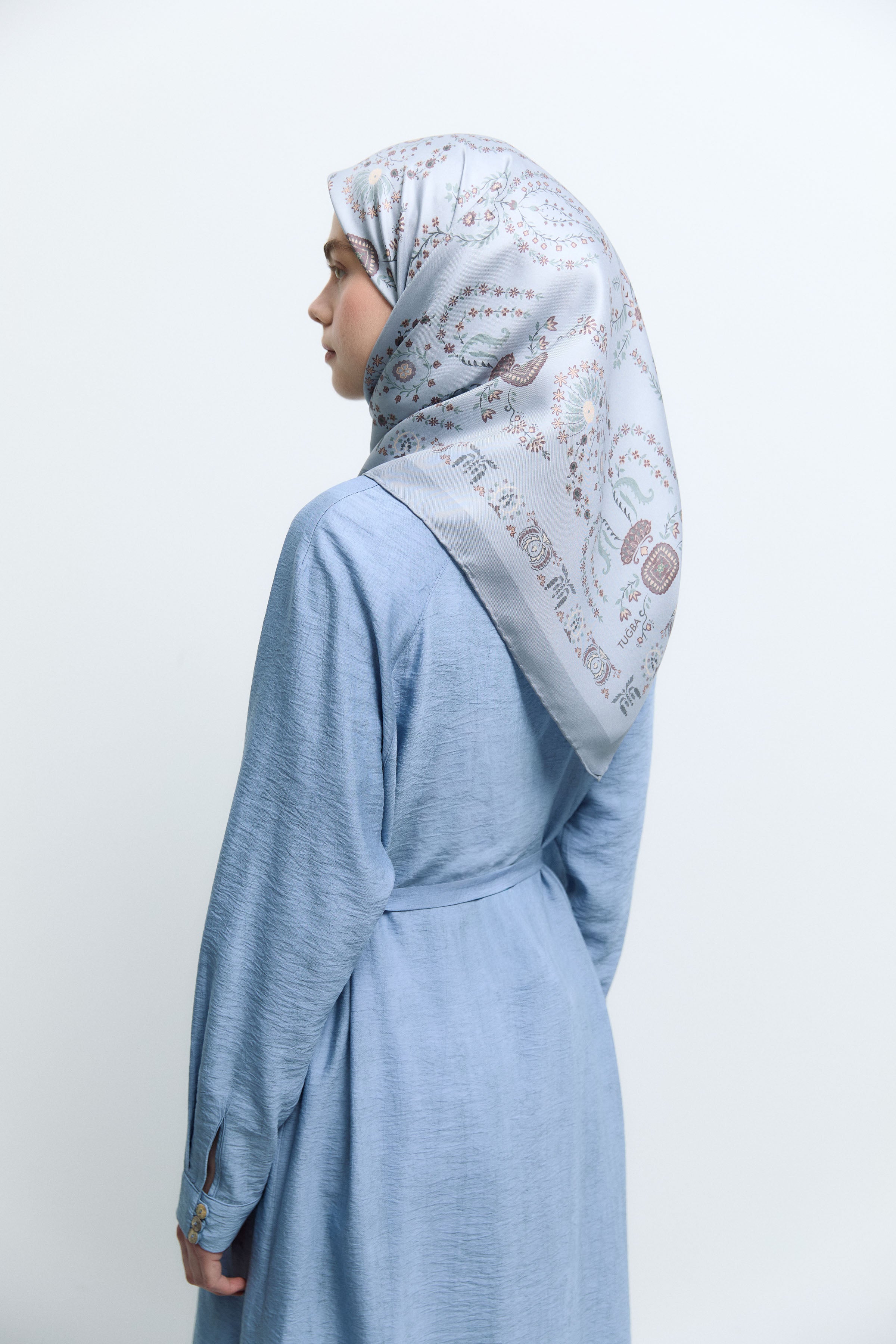 Écharpe en twill de soie Gülşah - Bleu clair