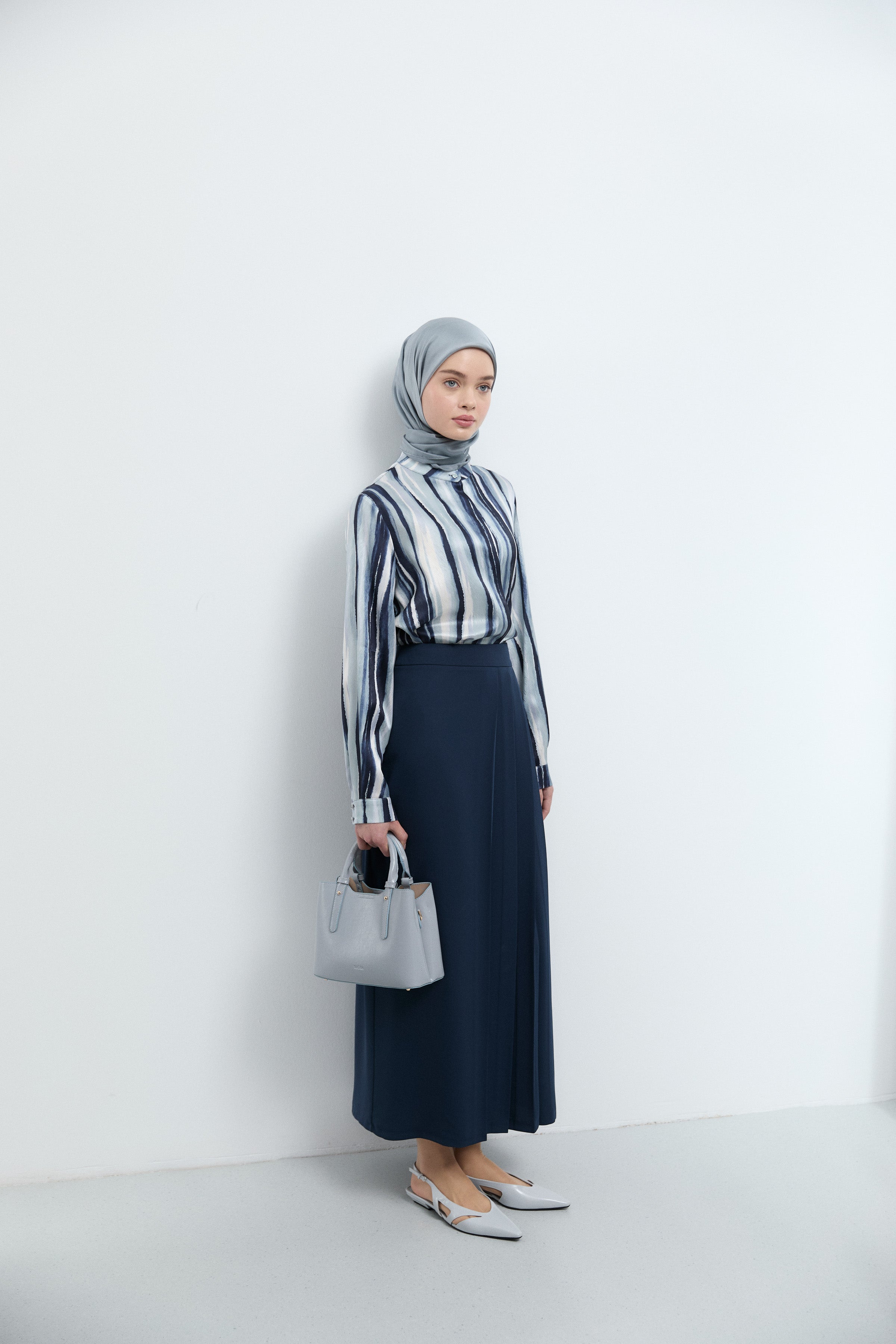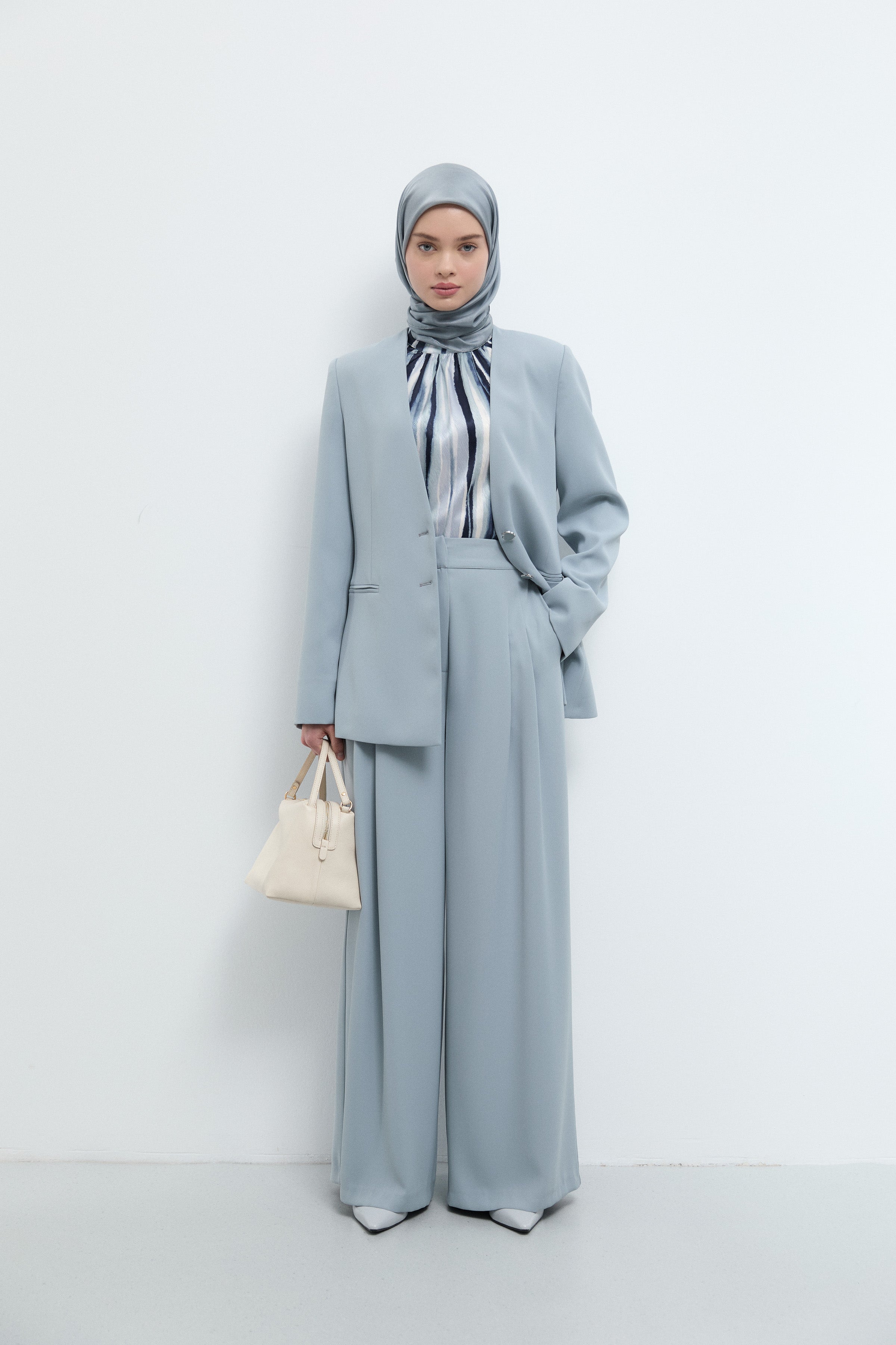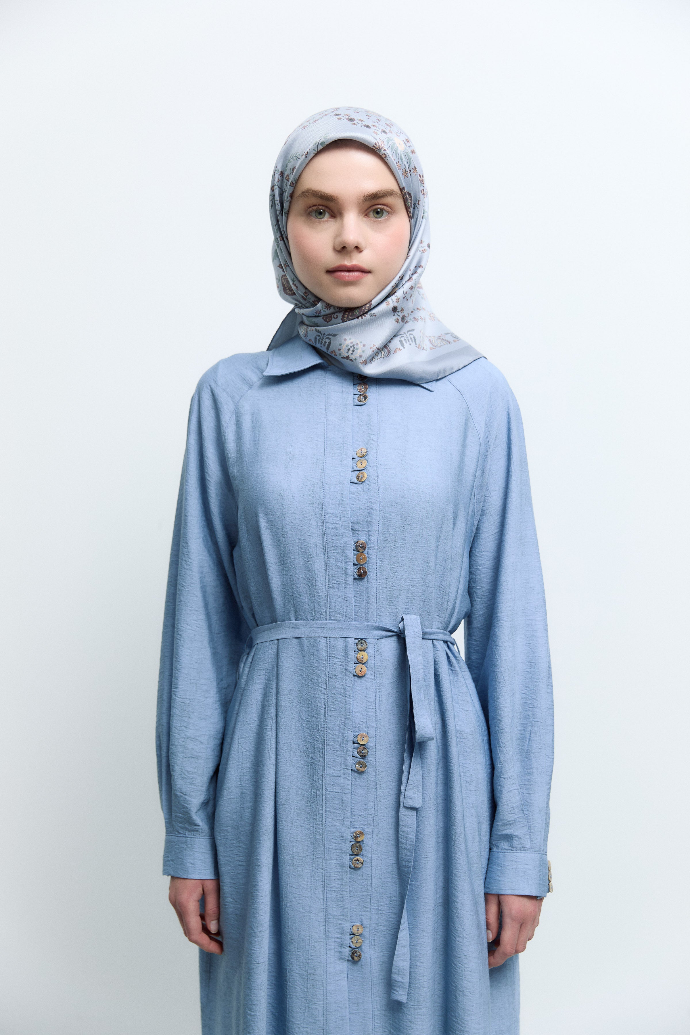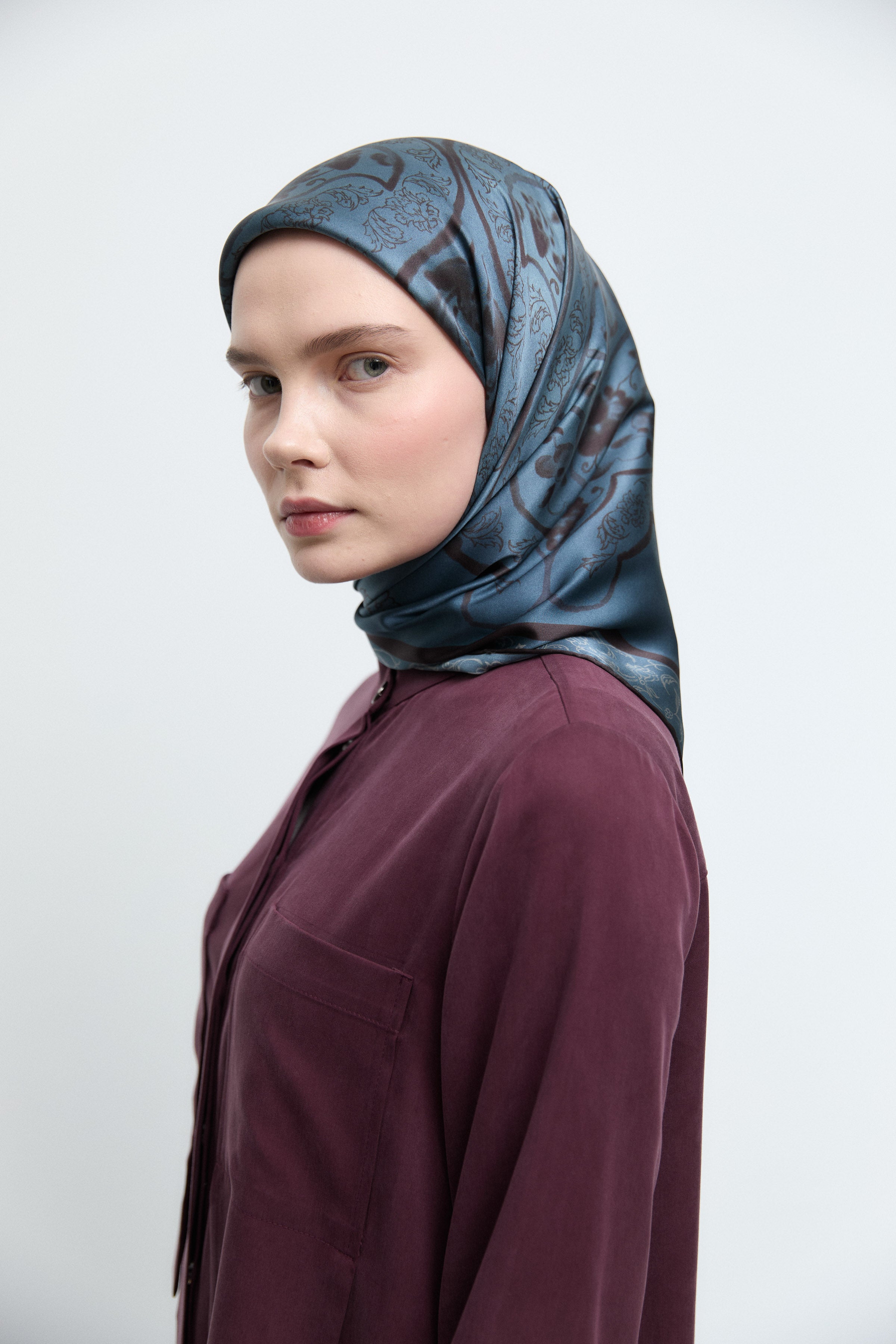 Écharpe en twill de soie Gülşah - Bleu clair