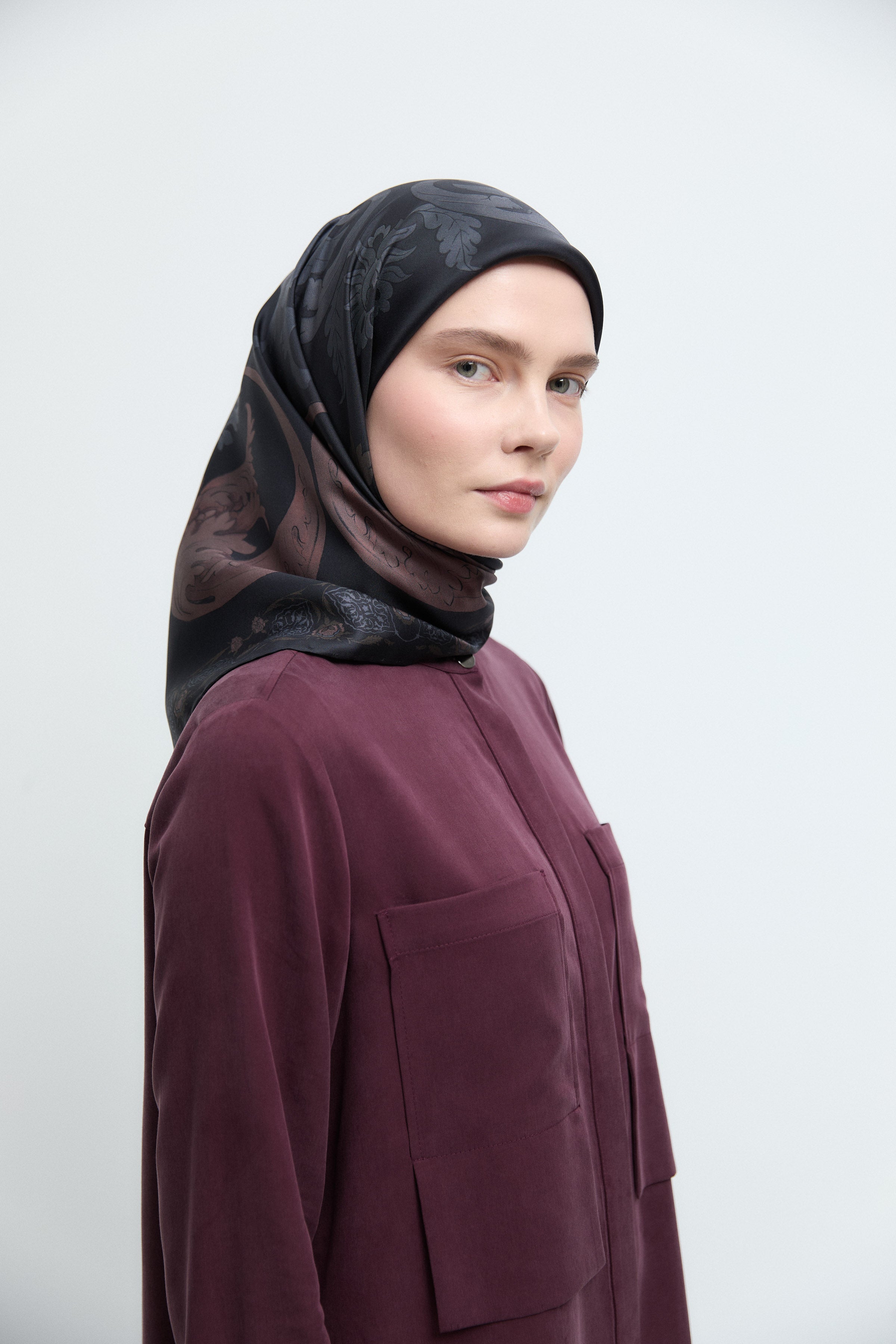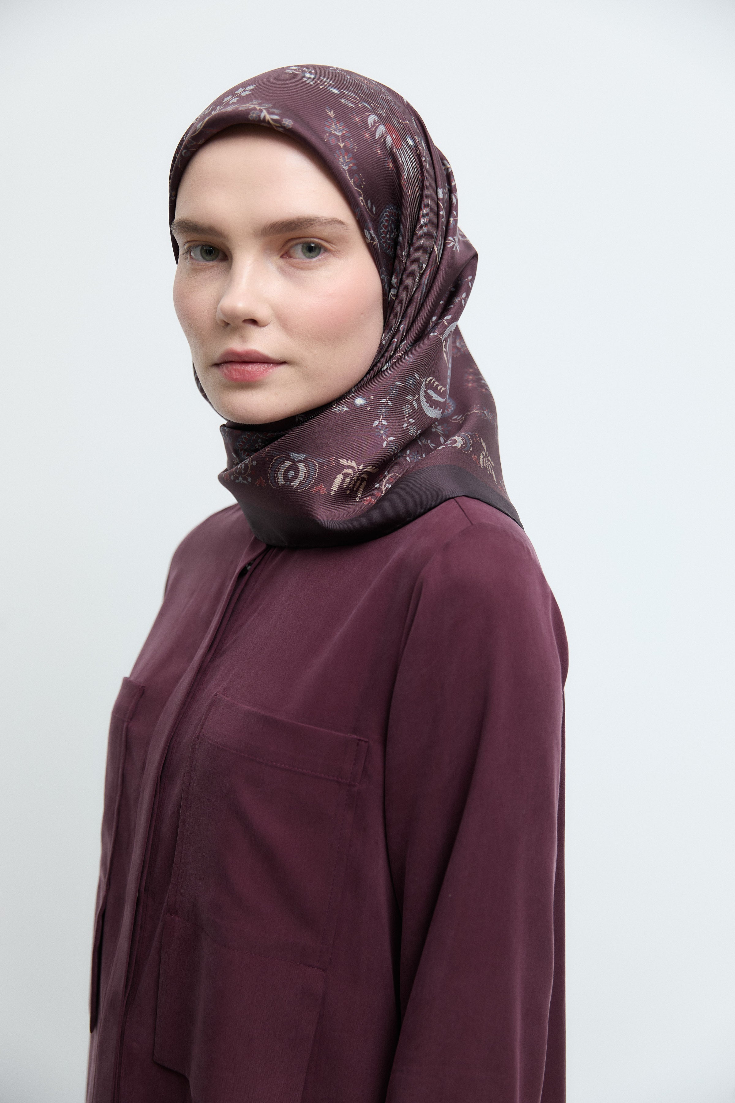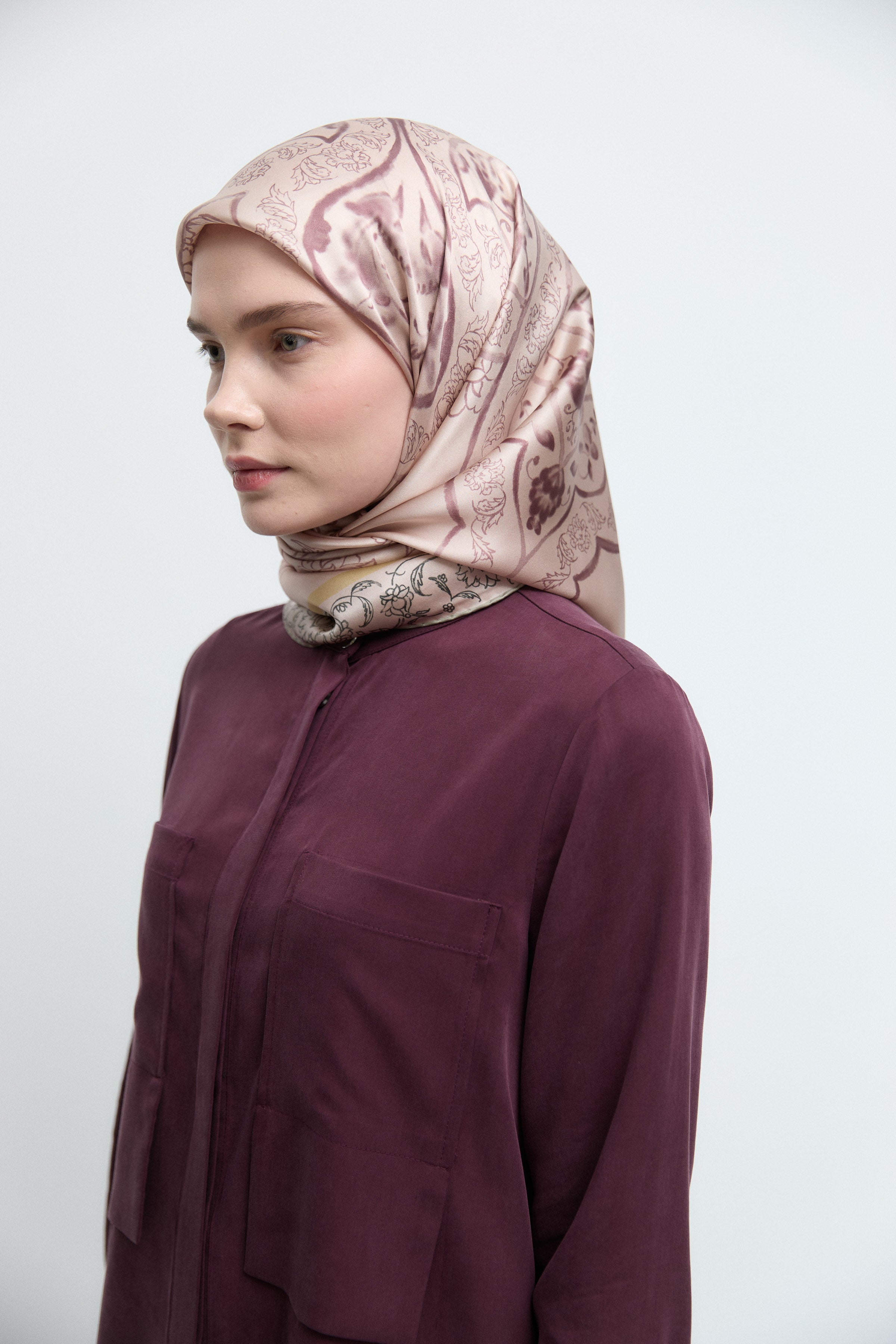 Écharpe en twill de soie Gülşah - Prune