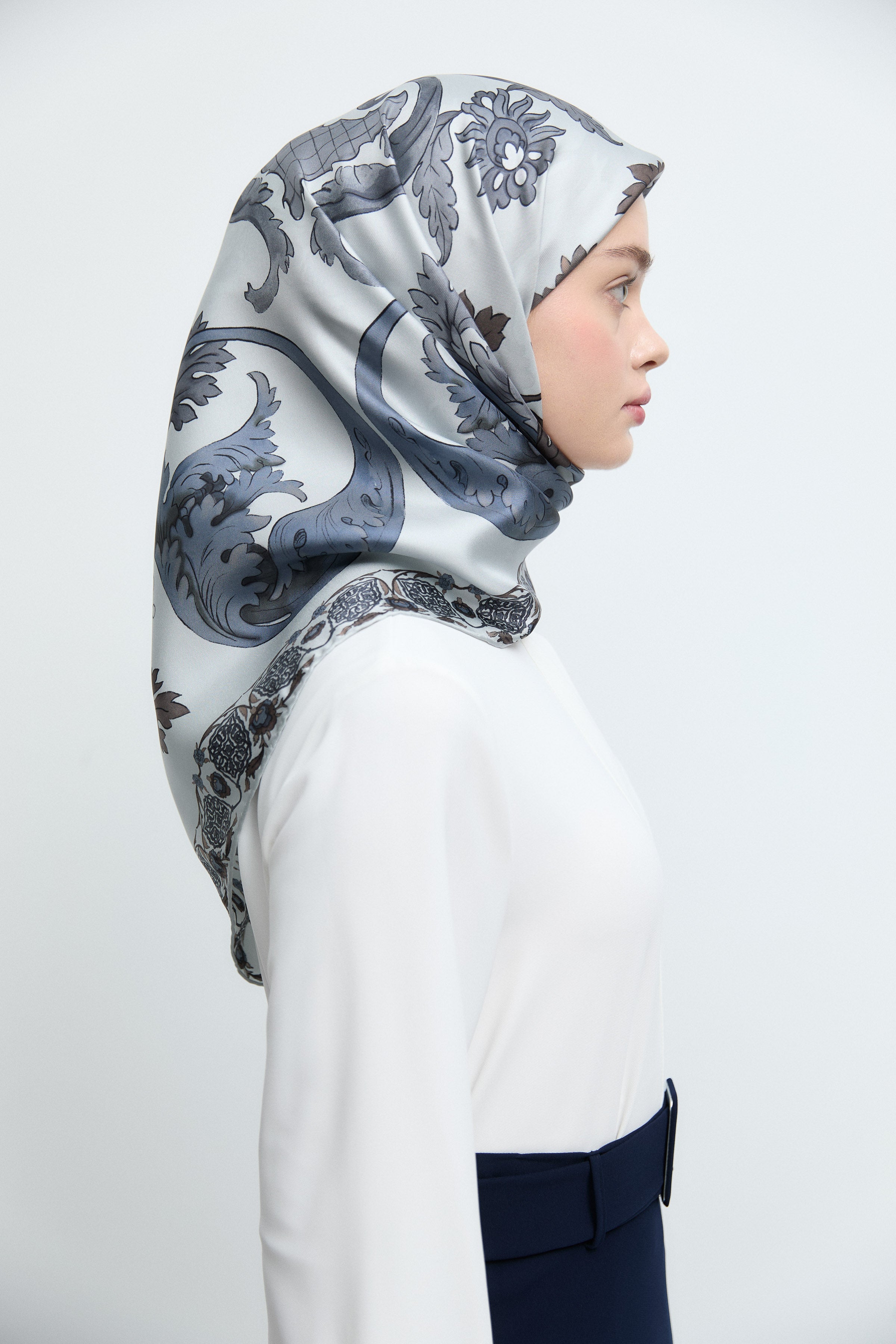 Écharpe en twill de soie Gülşah - Argent