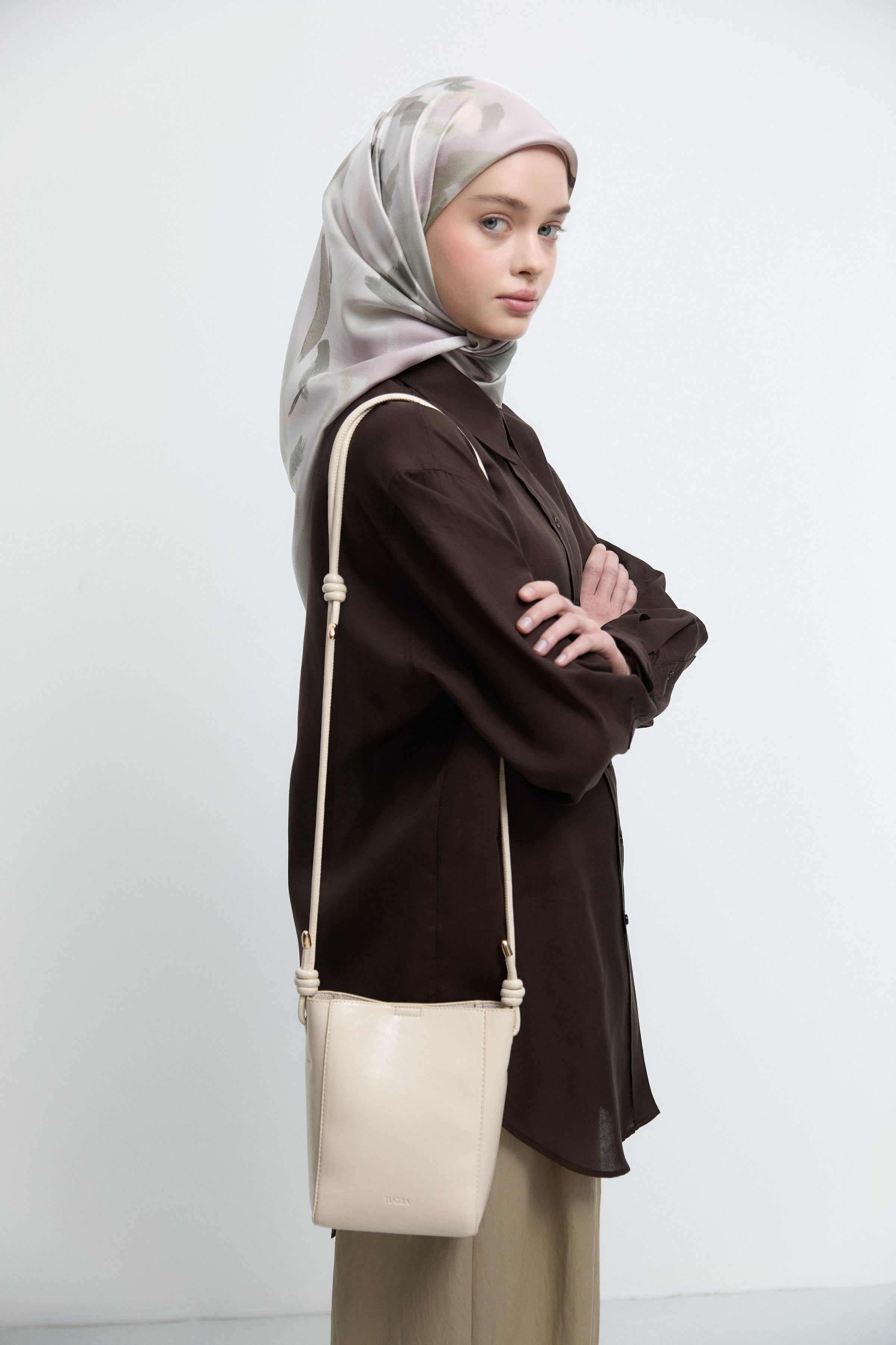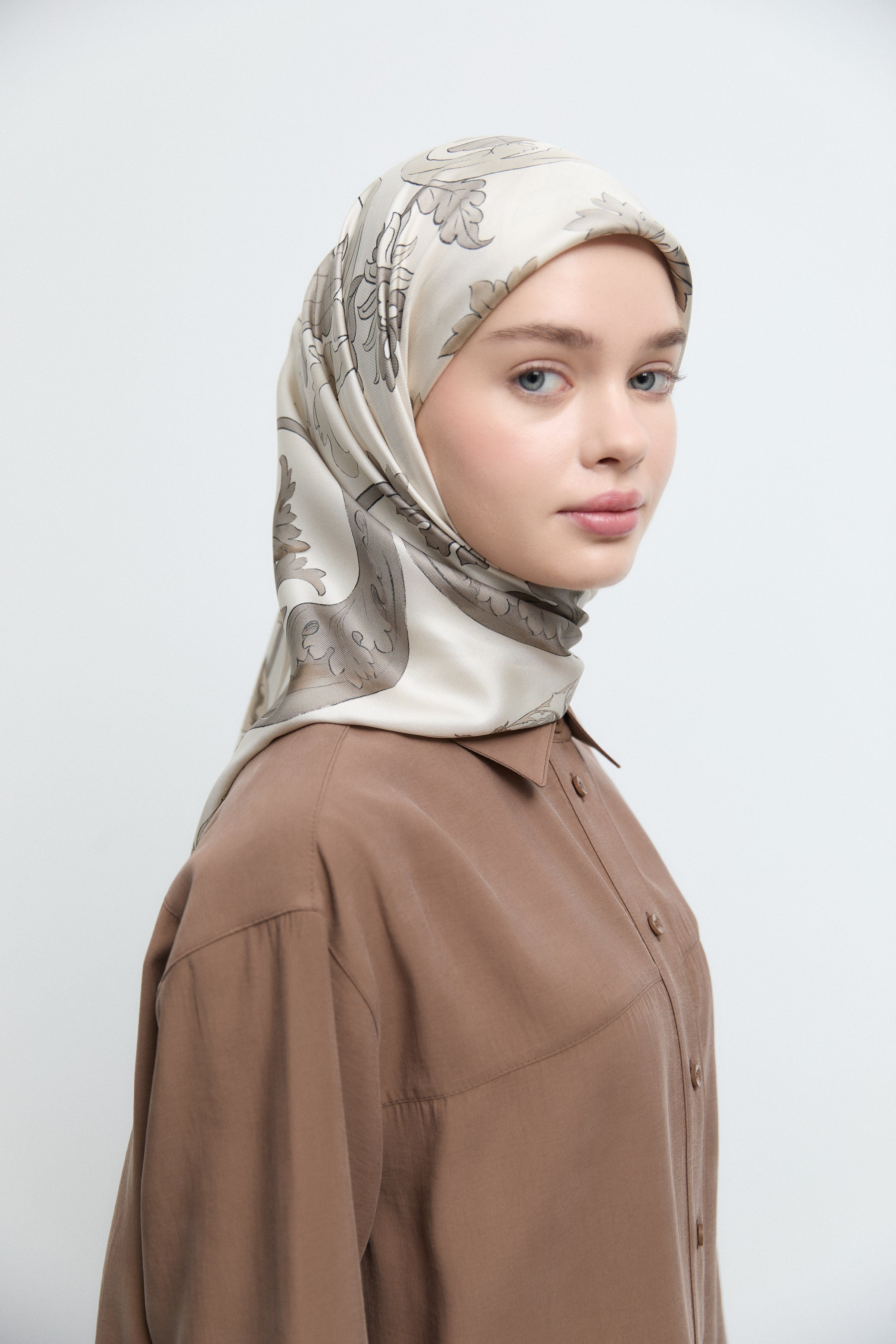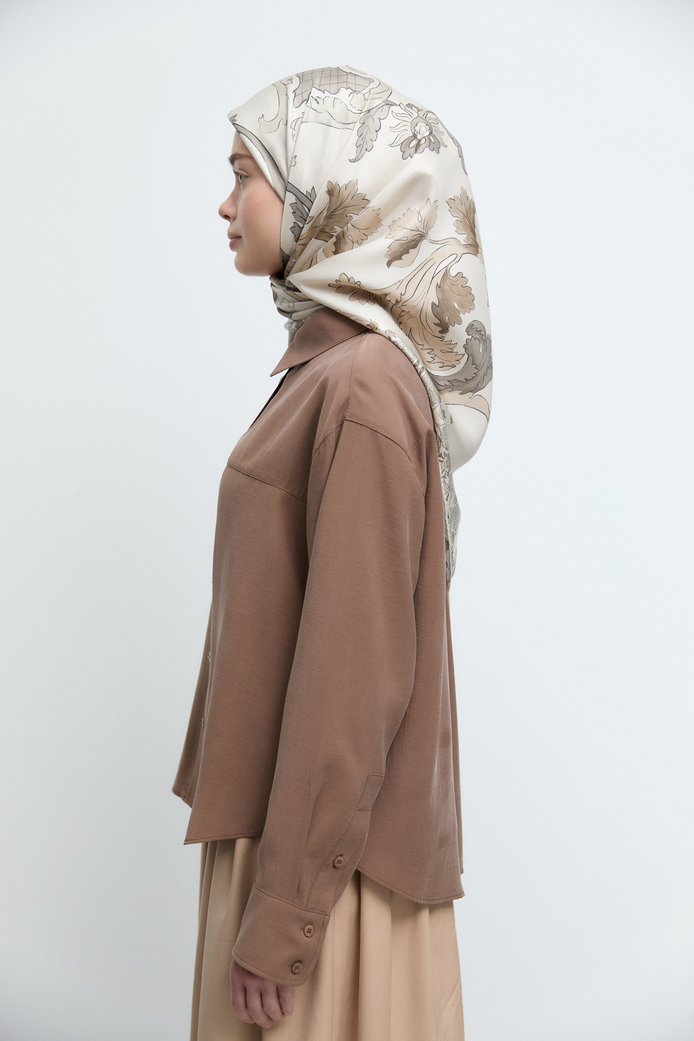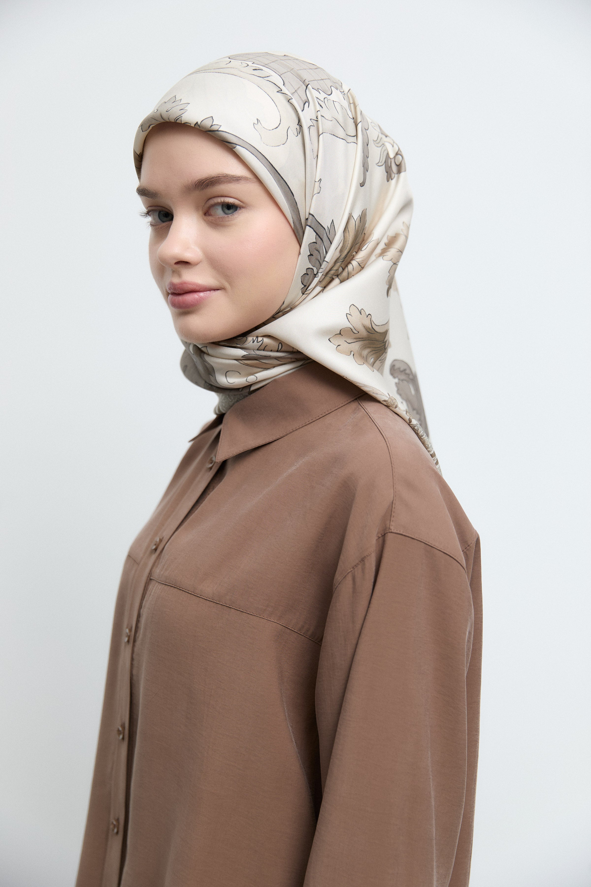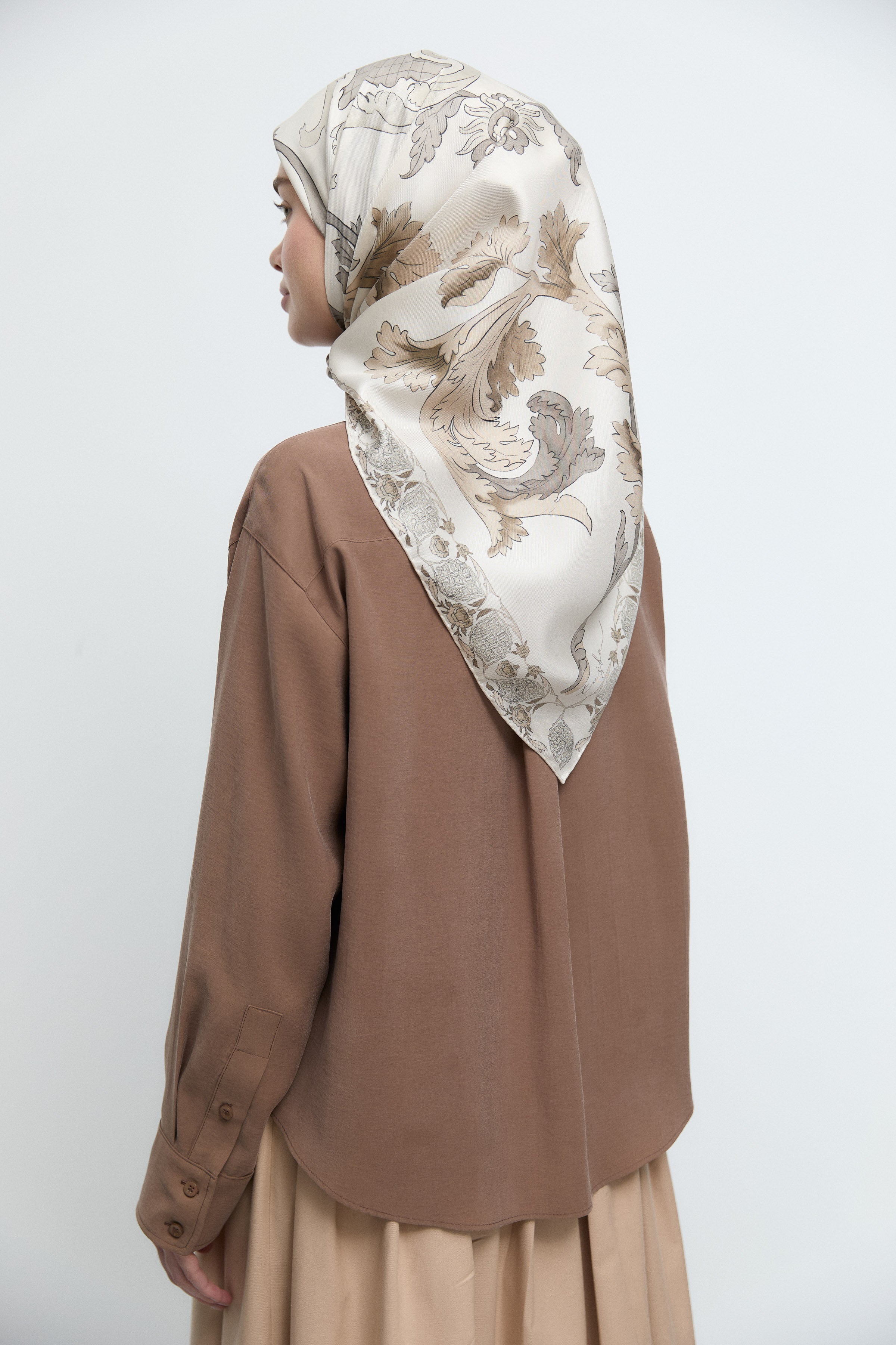 Écharpe en twill de soie Gülşah - Café léger