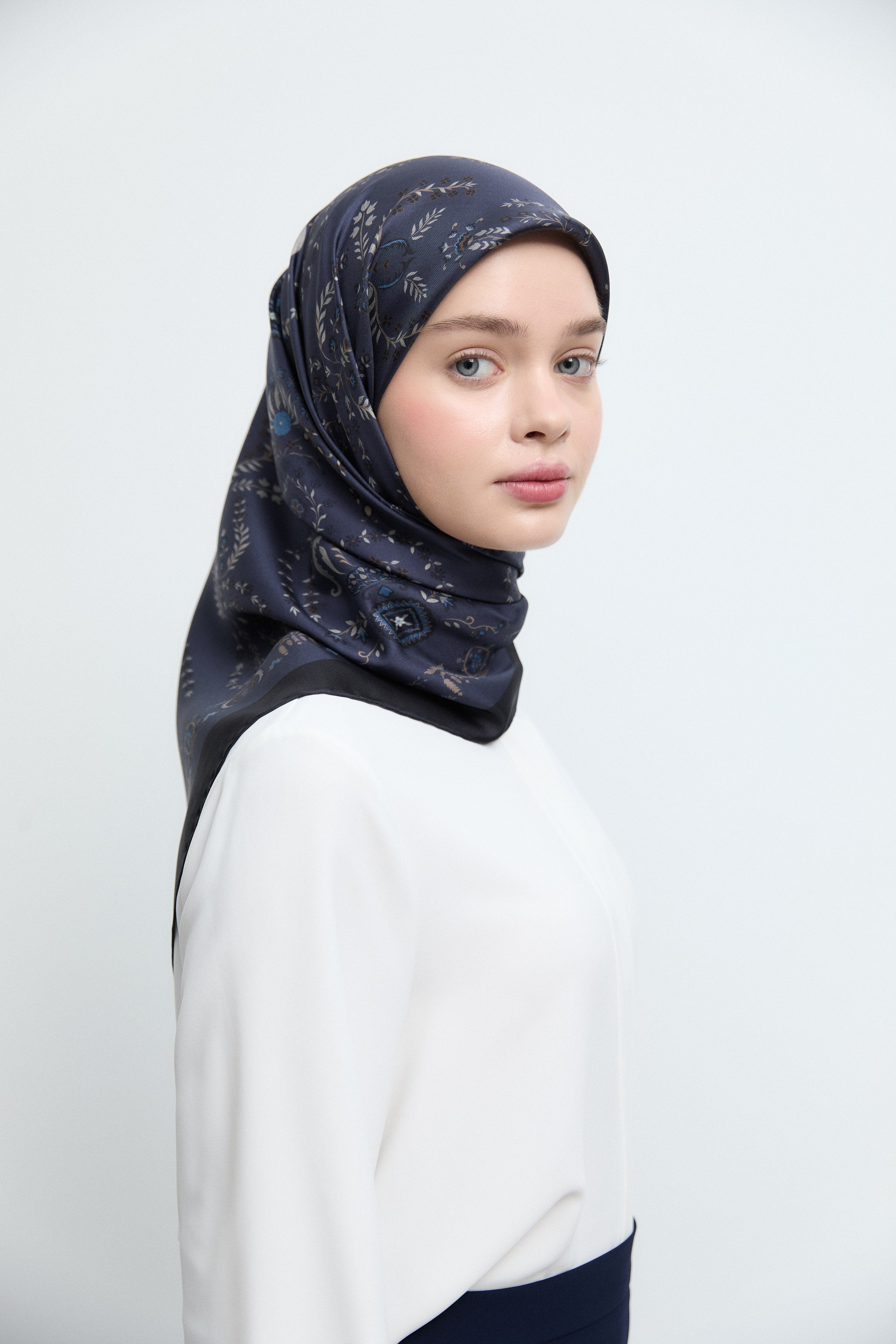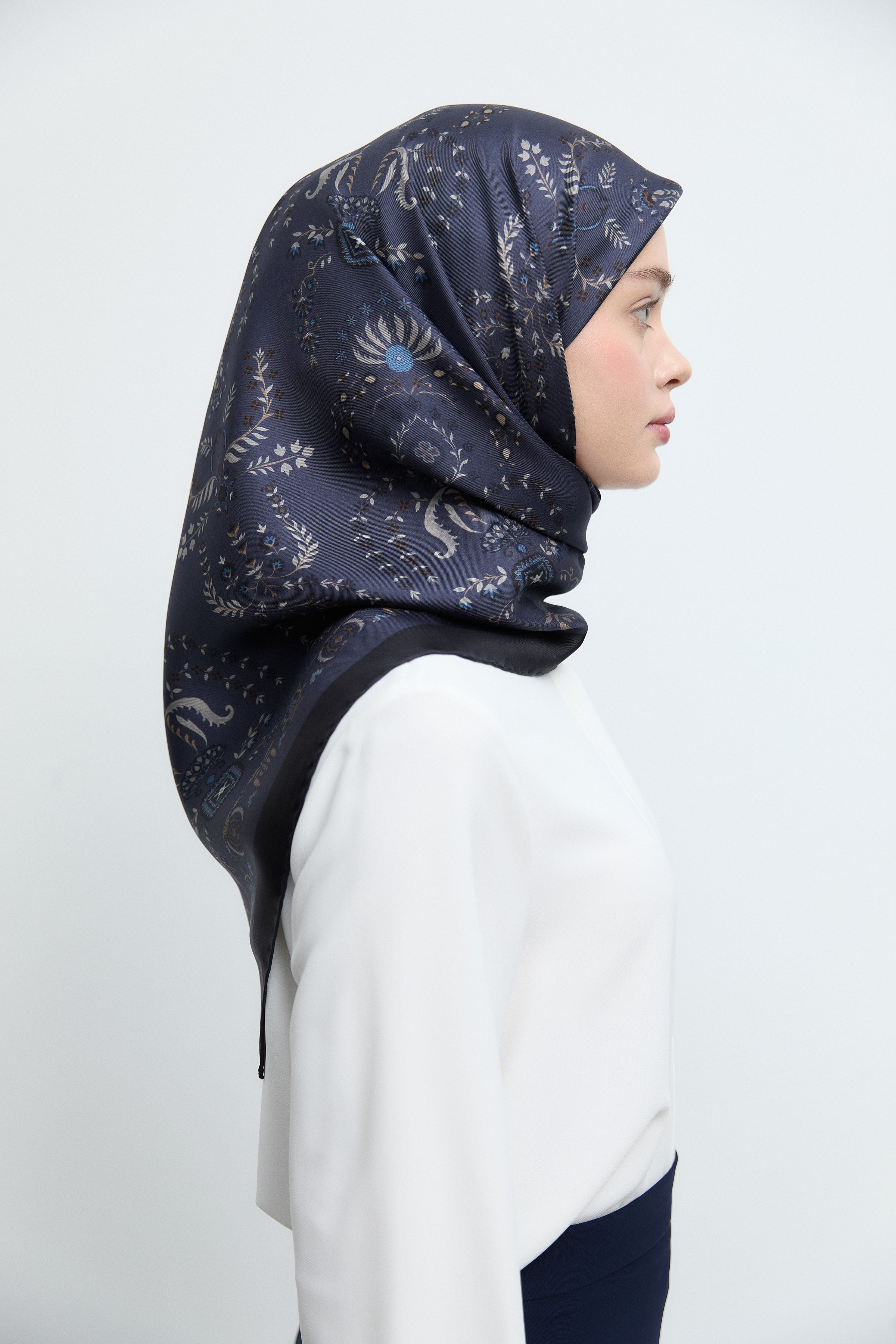 Écharpe en soie satinée Hatai - Blue marine