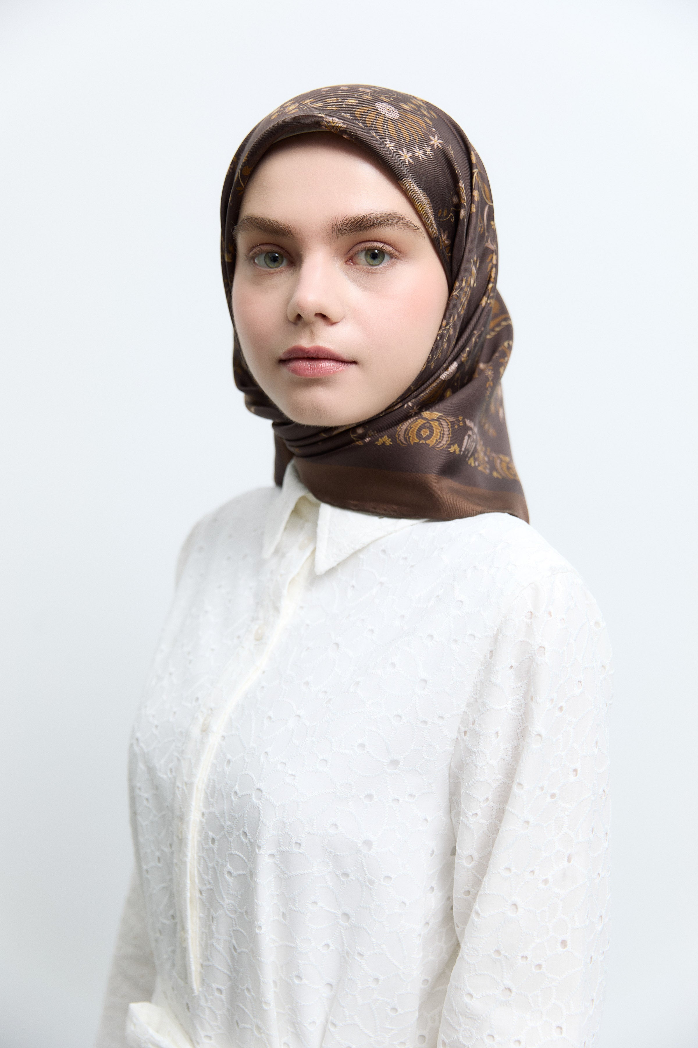 Écharpe en twill de soie Gülşah - Café