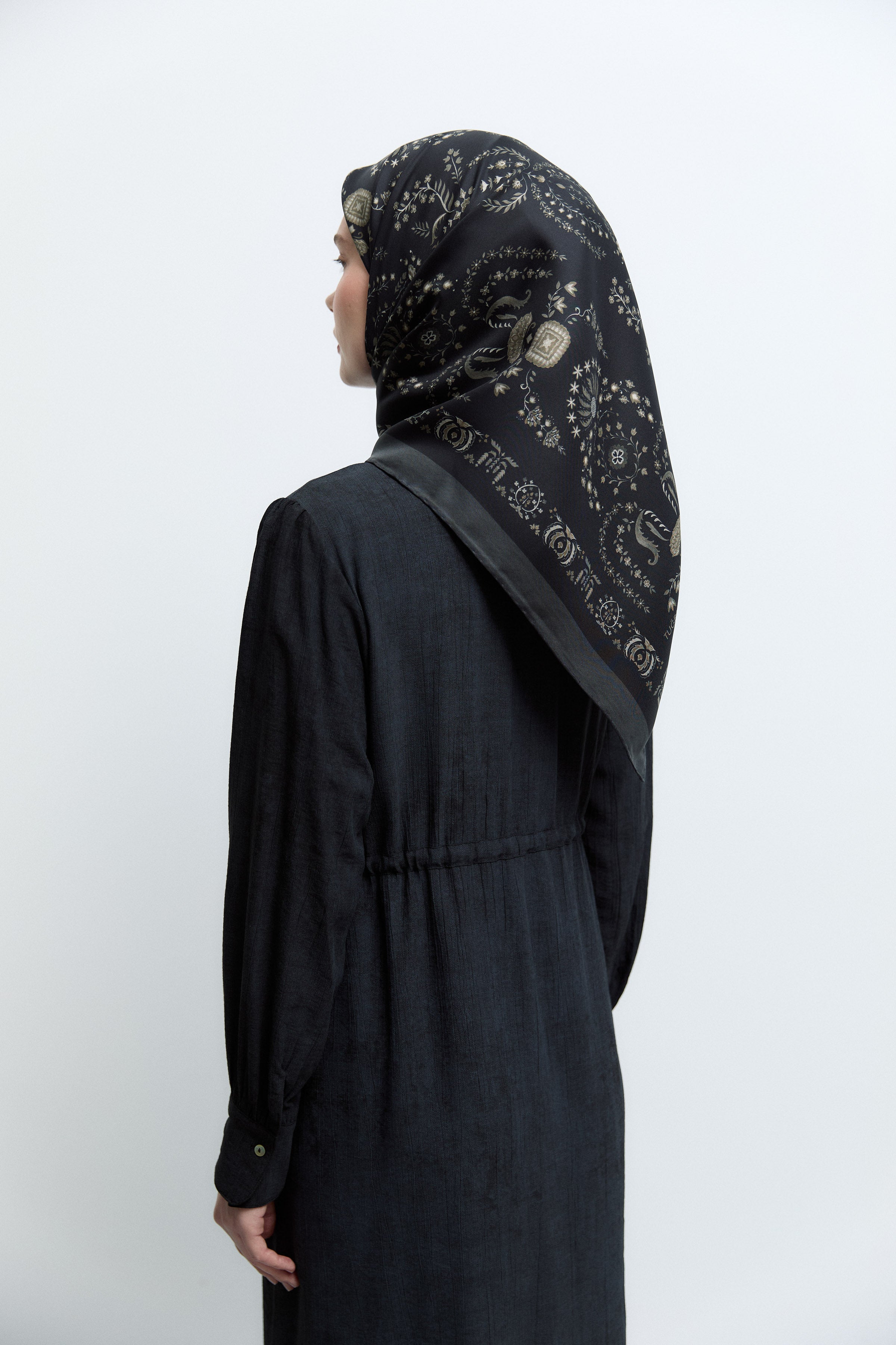 Écharpe en twill de soie Gülşah - Noir