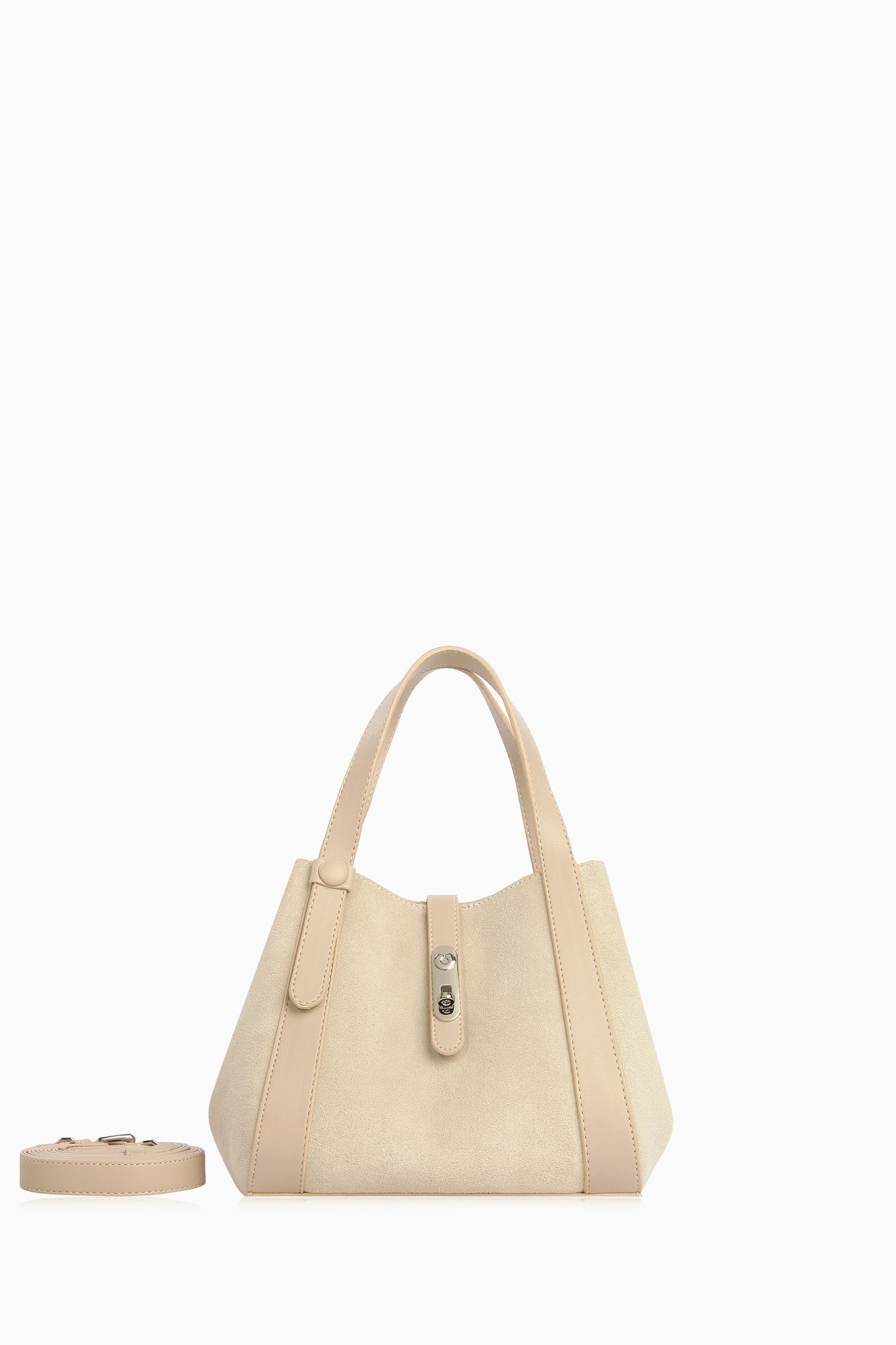 Sac en daim avec ceinture centrale en cuir - Beige