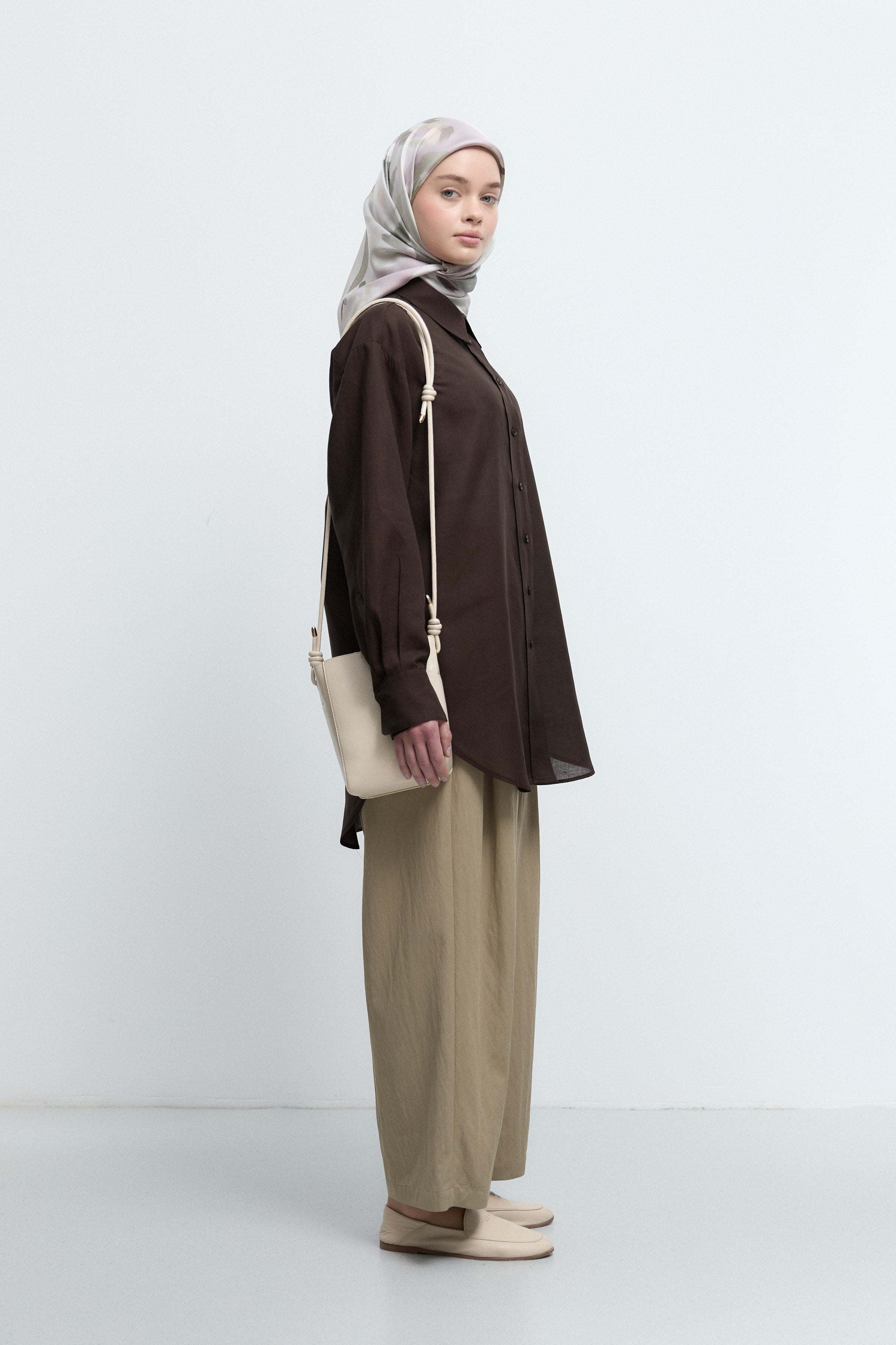 Écharpe en soie twill Taharri - Café
