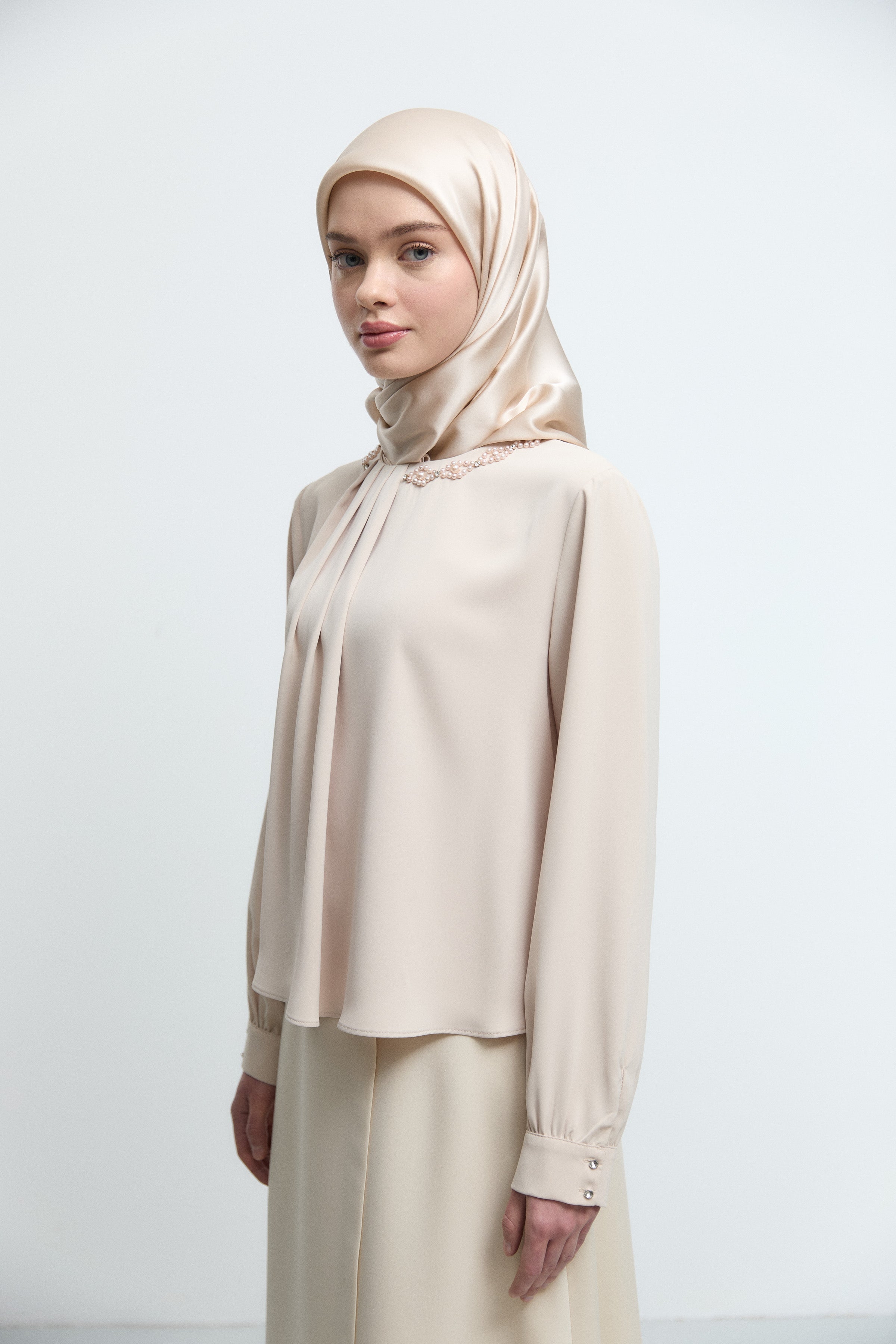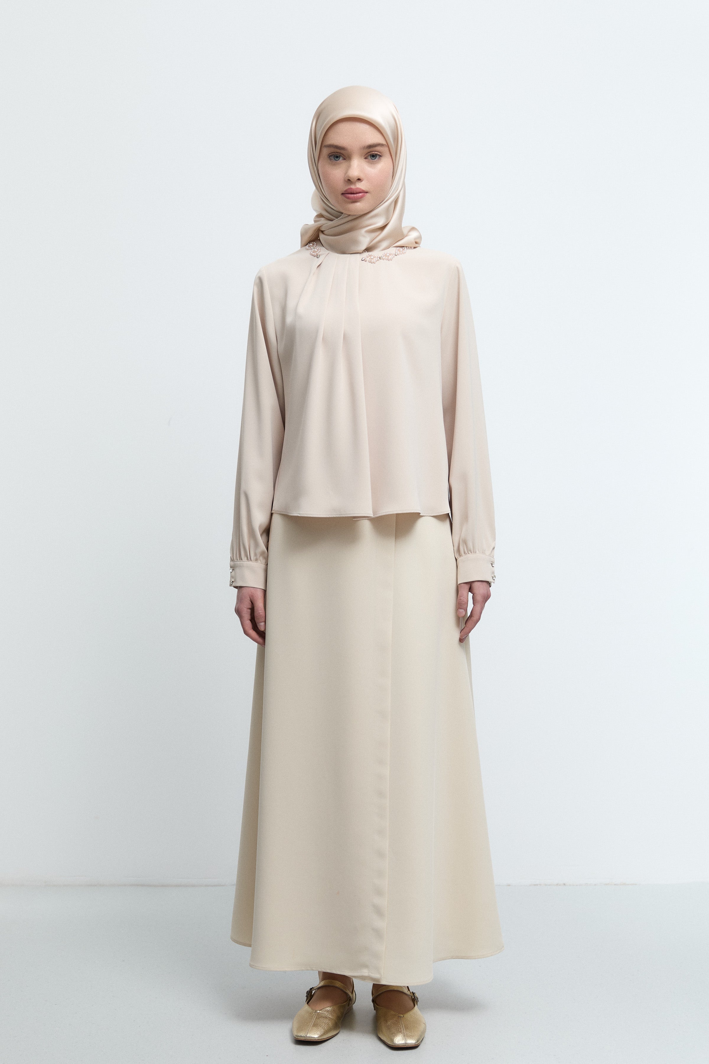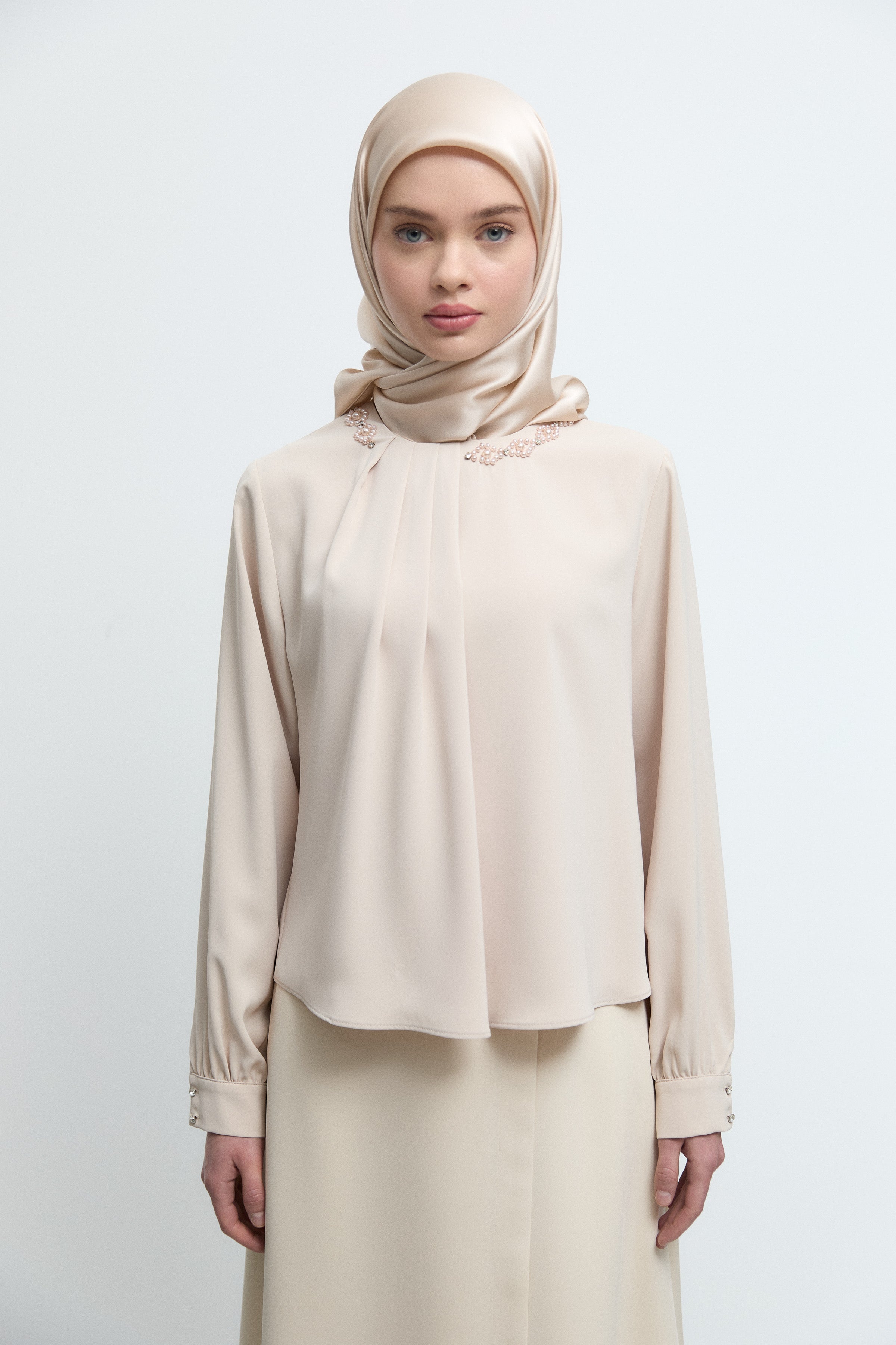 Chemisier avec détail cassé au col - Beige