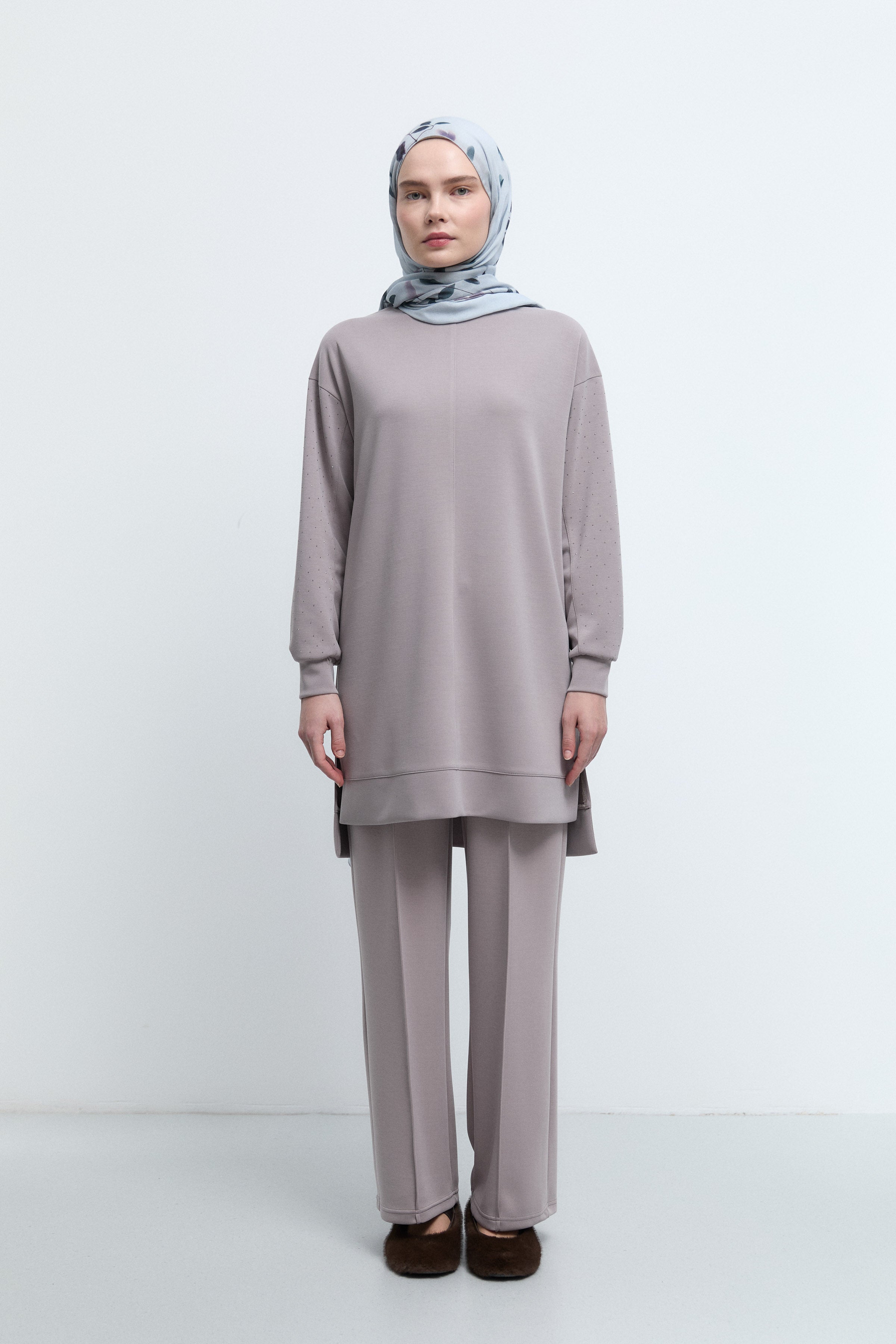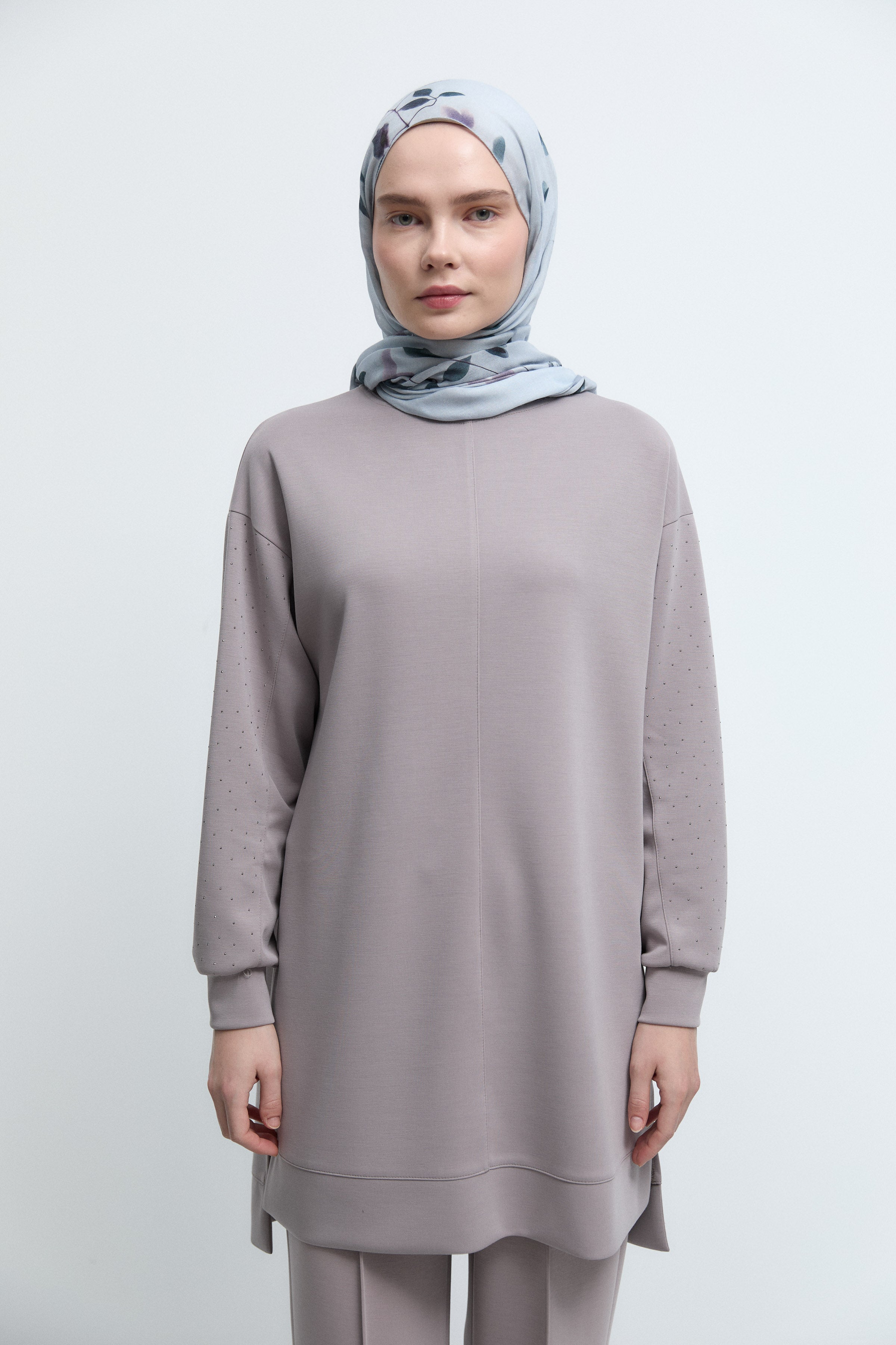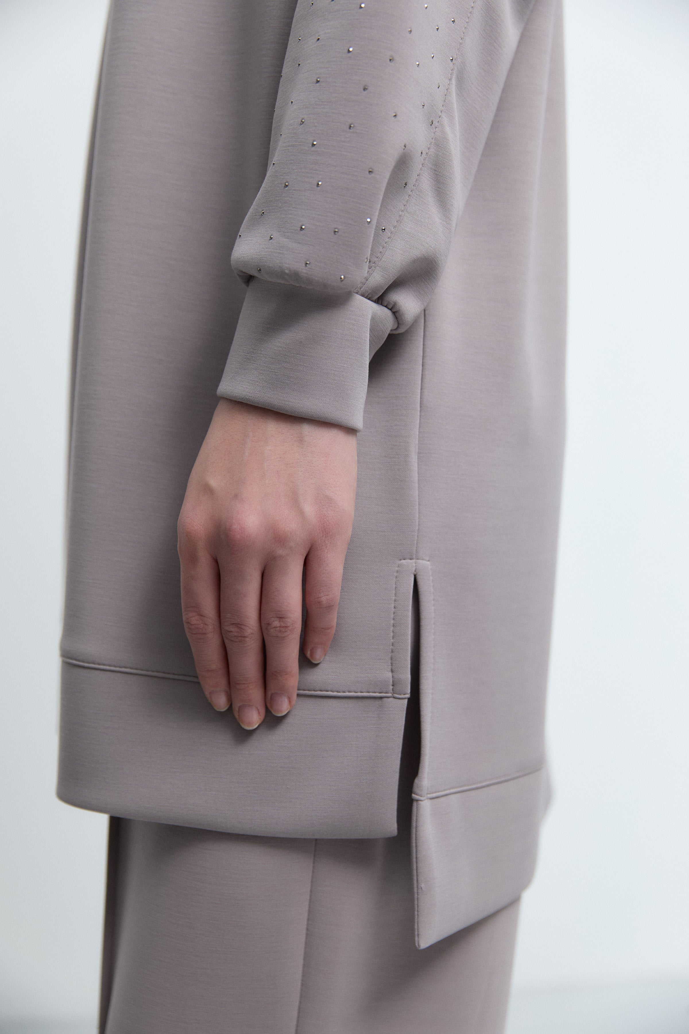 Tunique à manches ornées de strass - Taupe