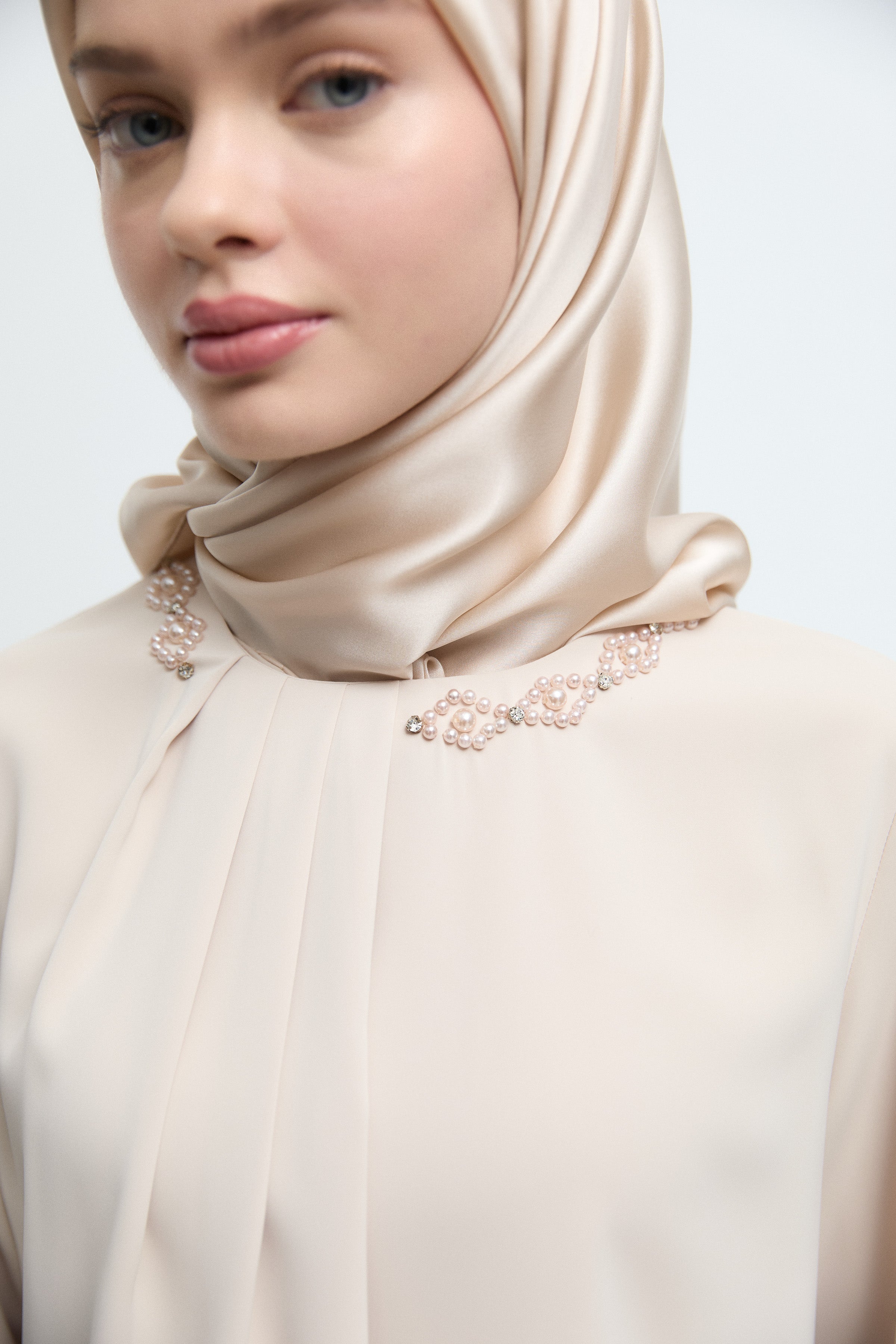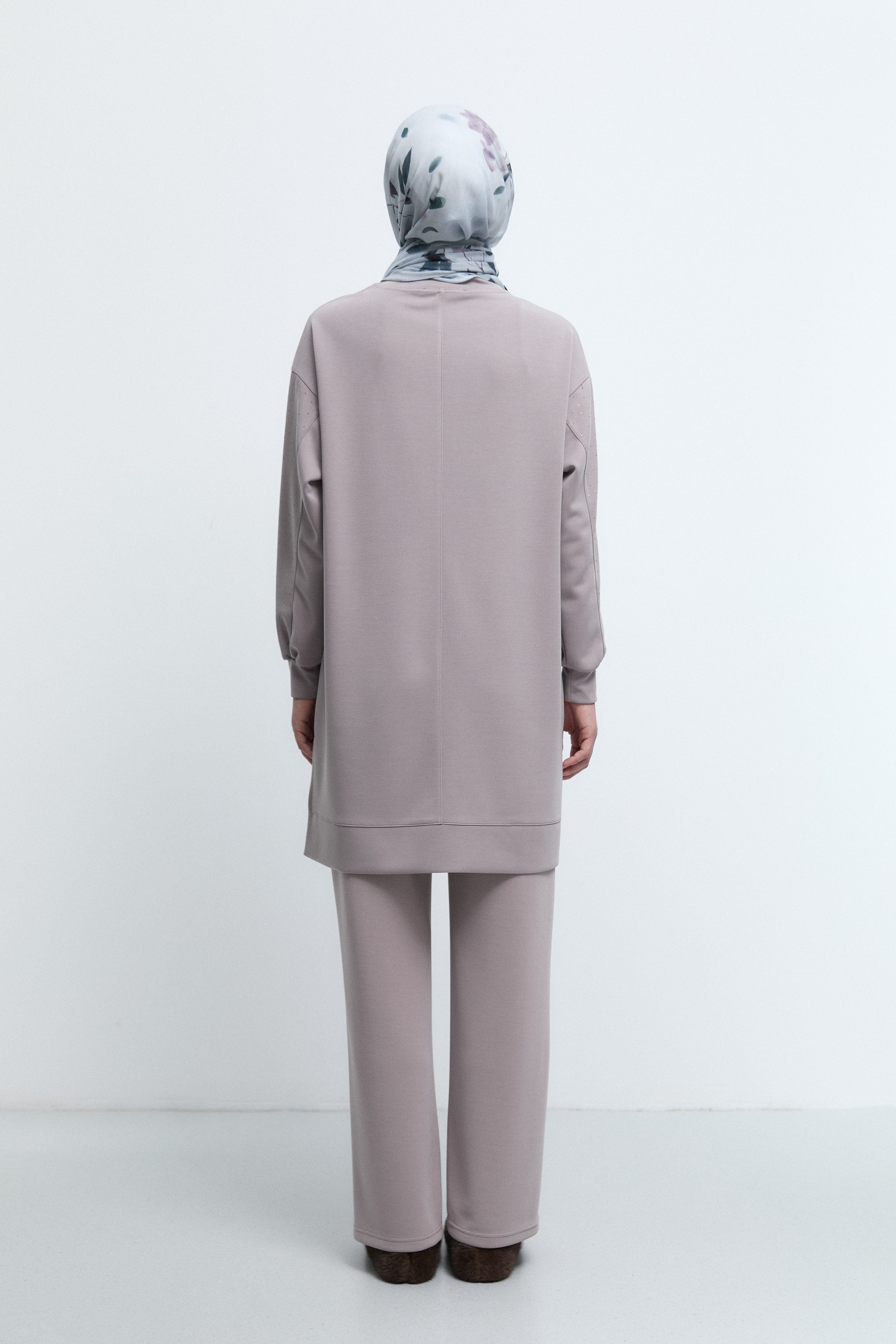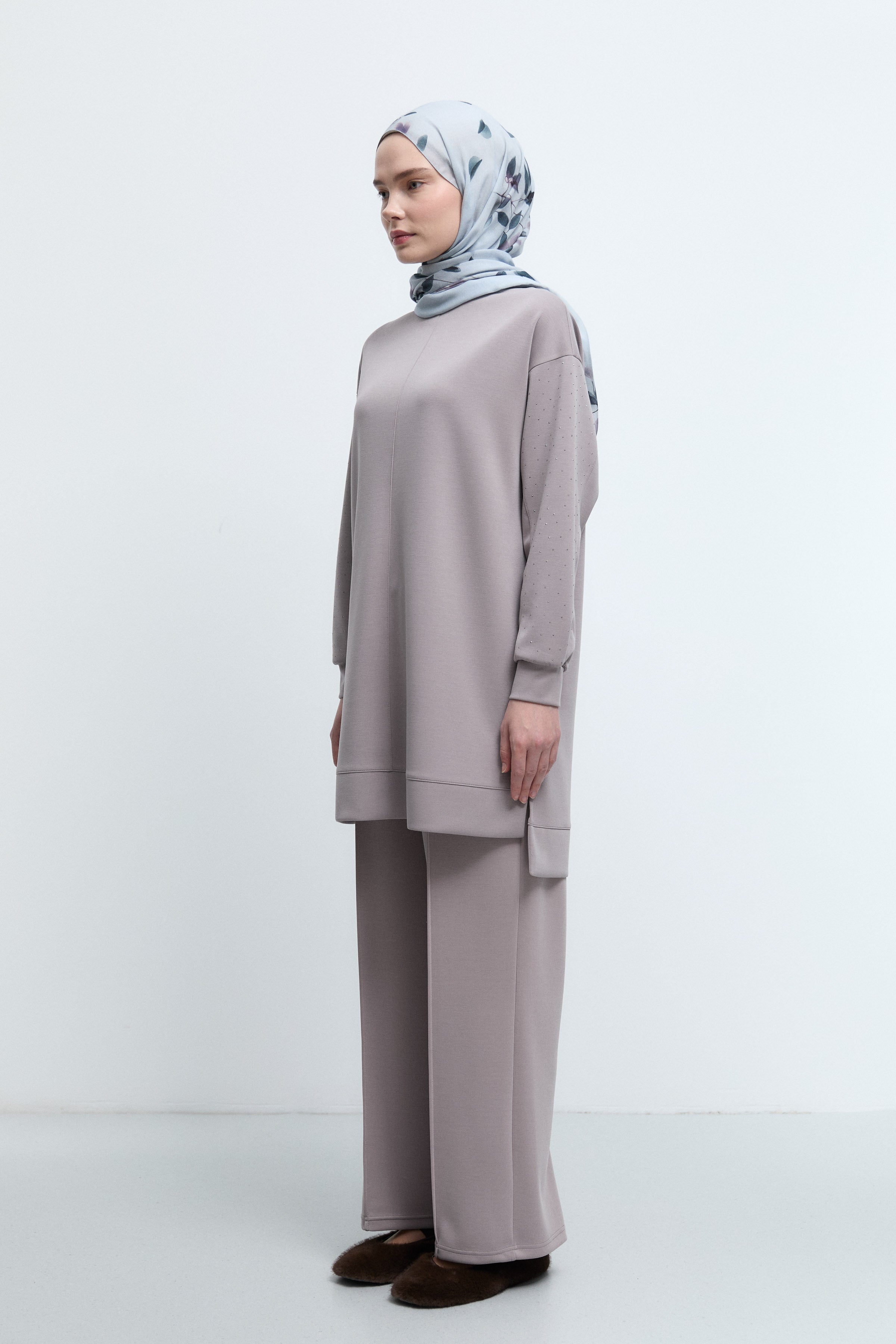 Tunique à manches ornées de strass - Taupe
