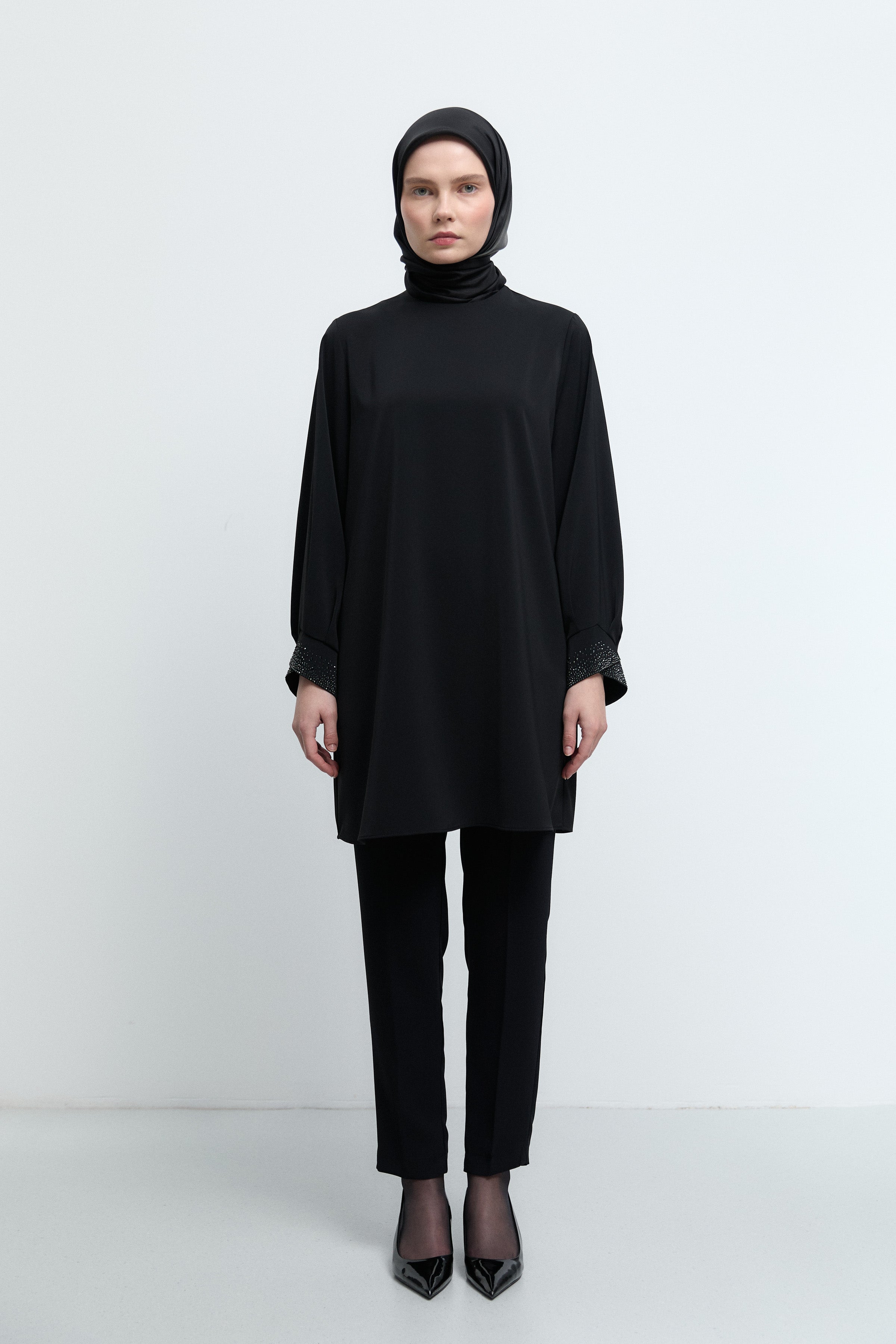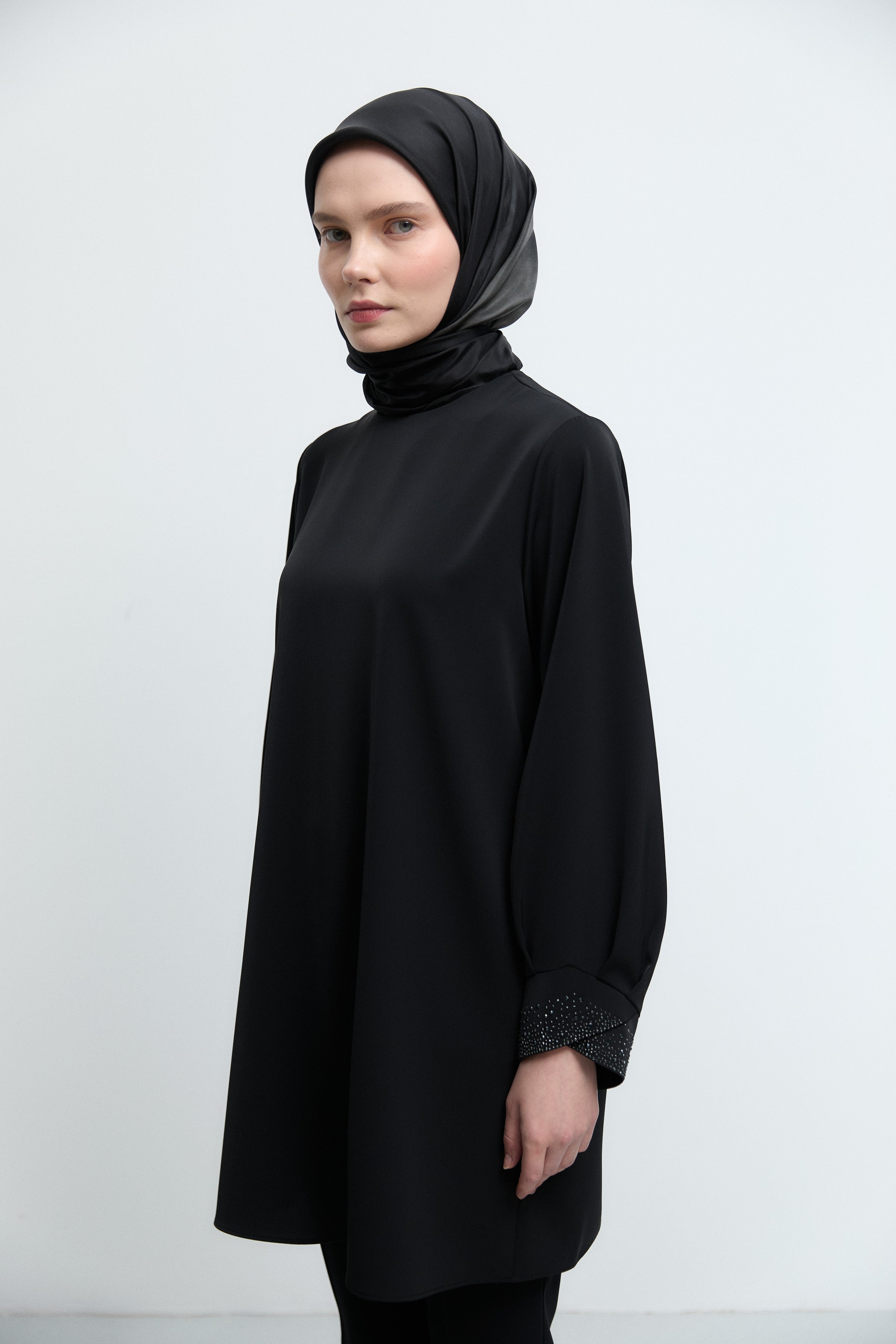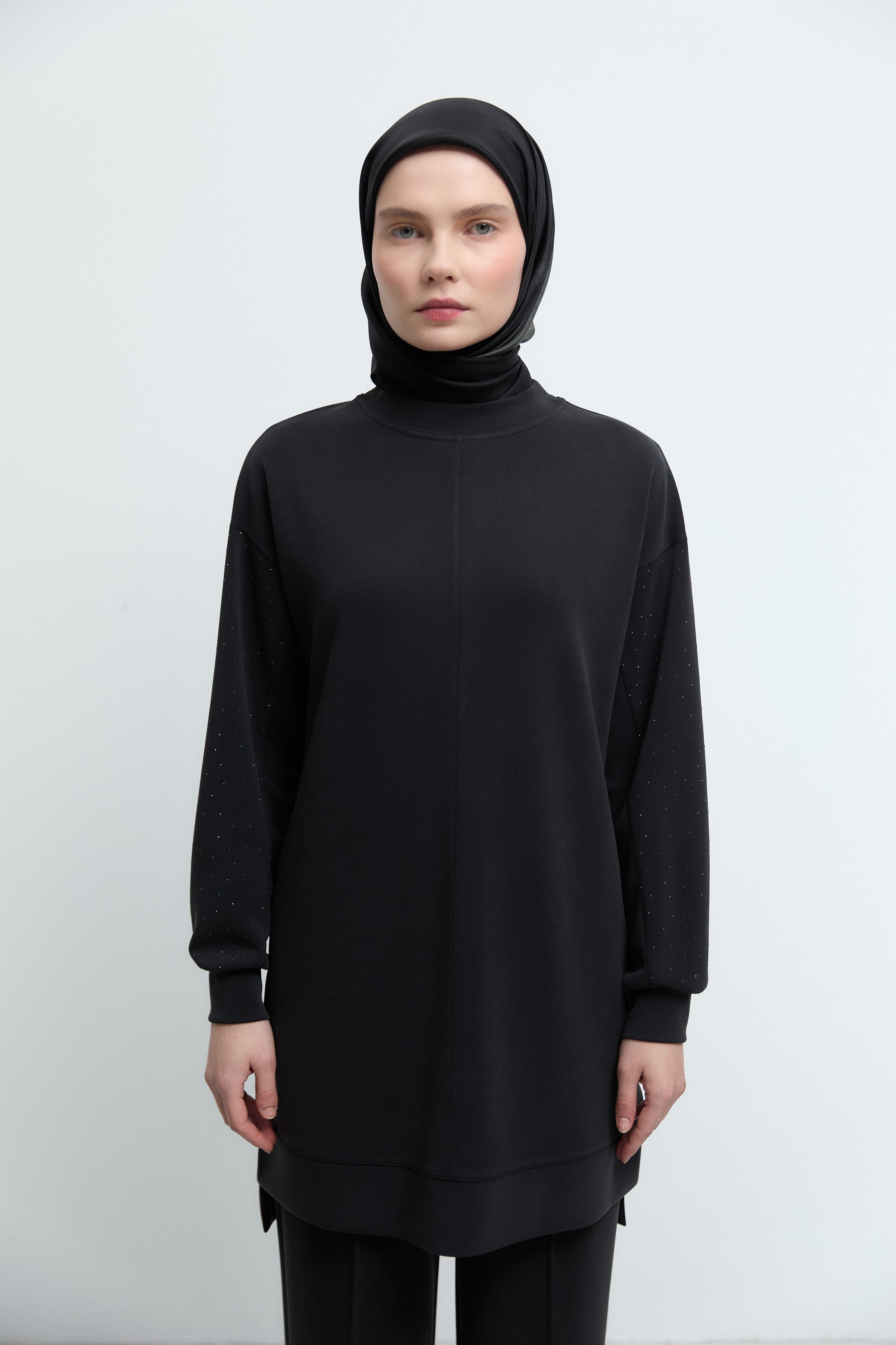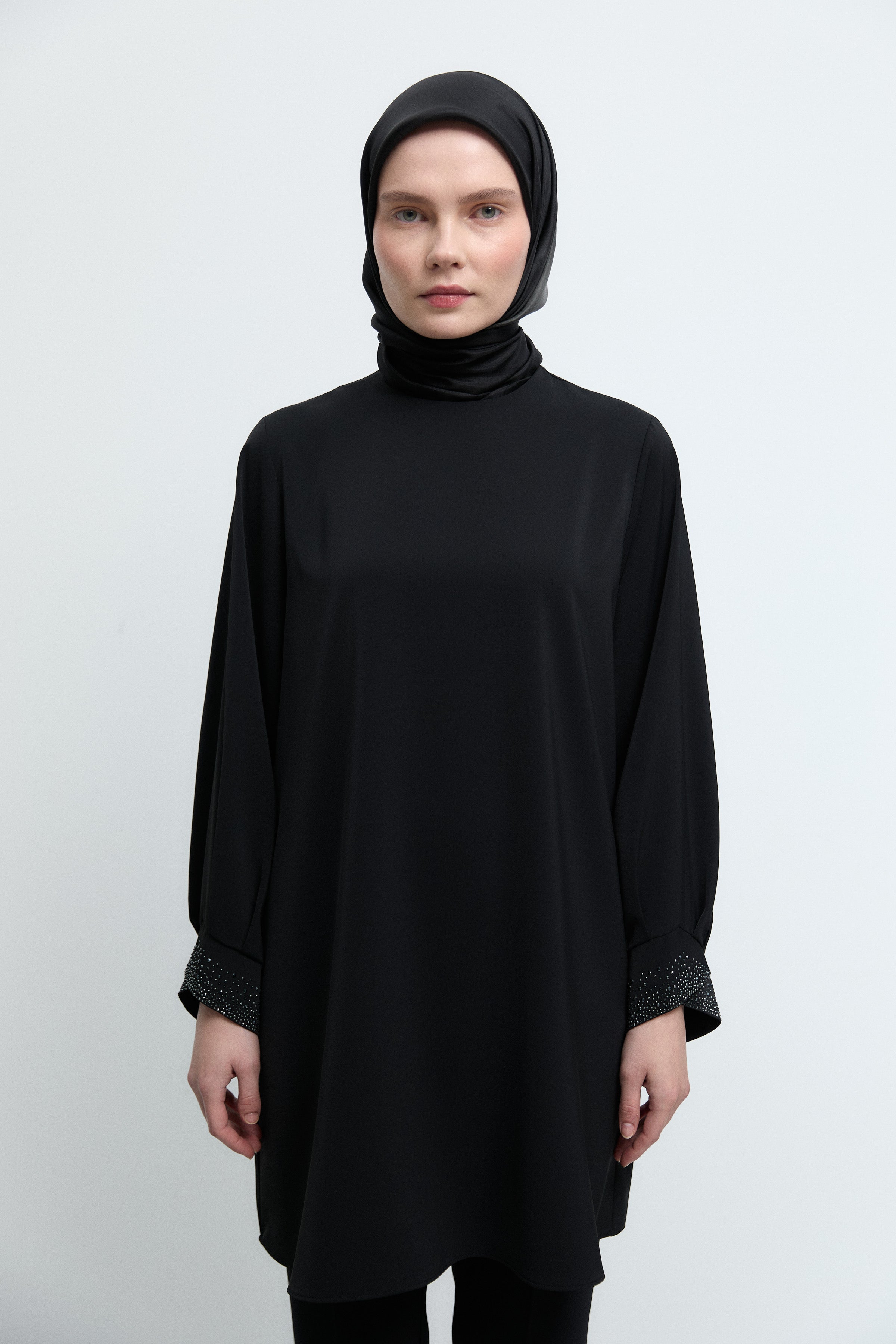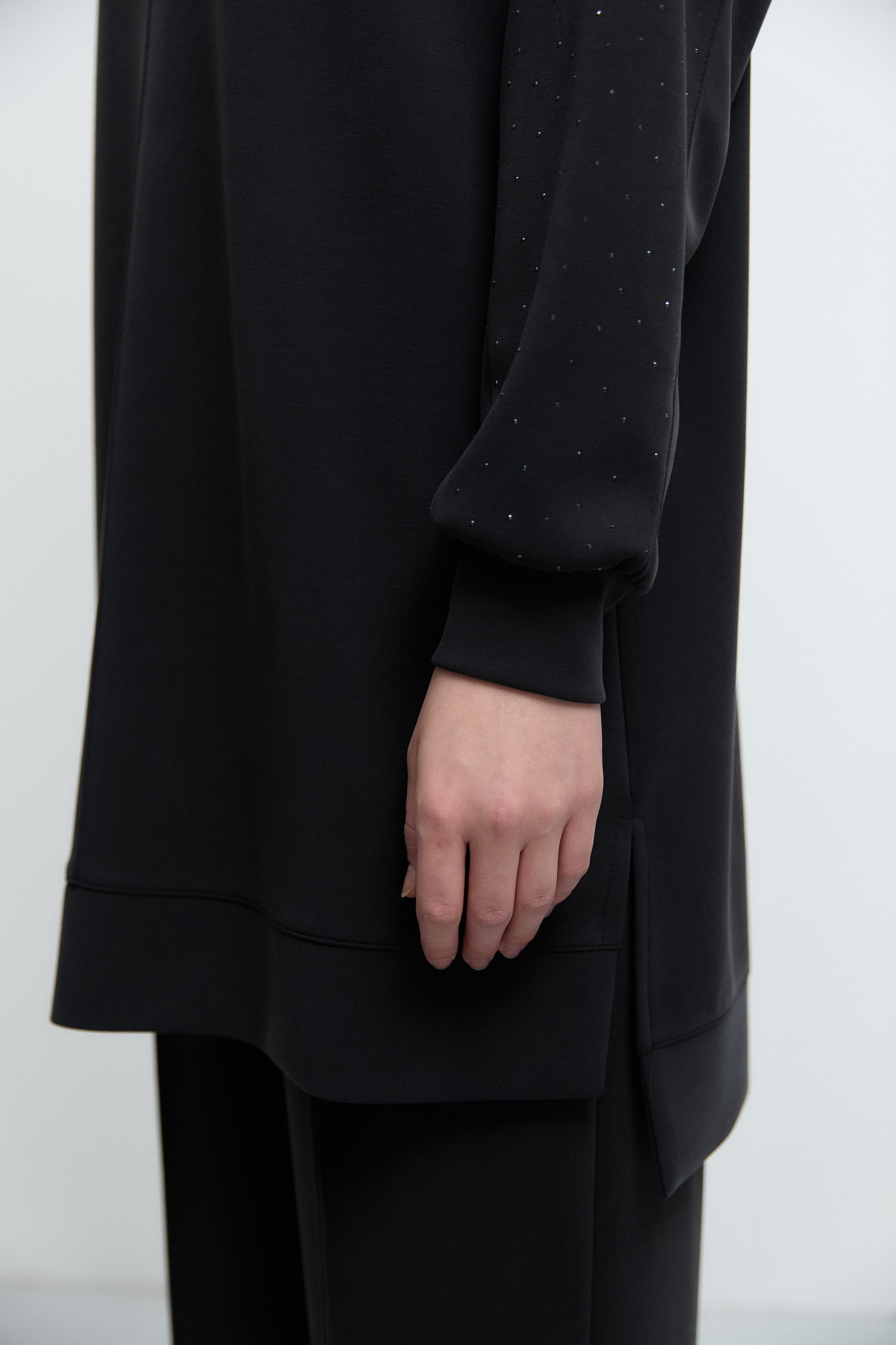 Tunique à poignets ornés de strass - Noir