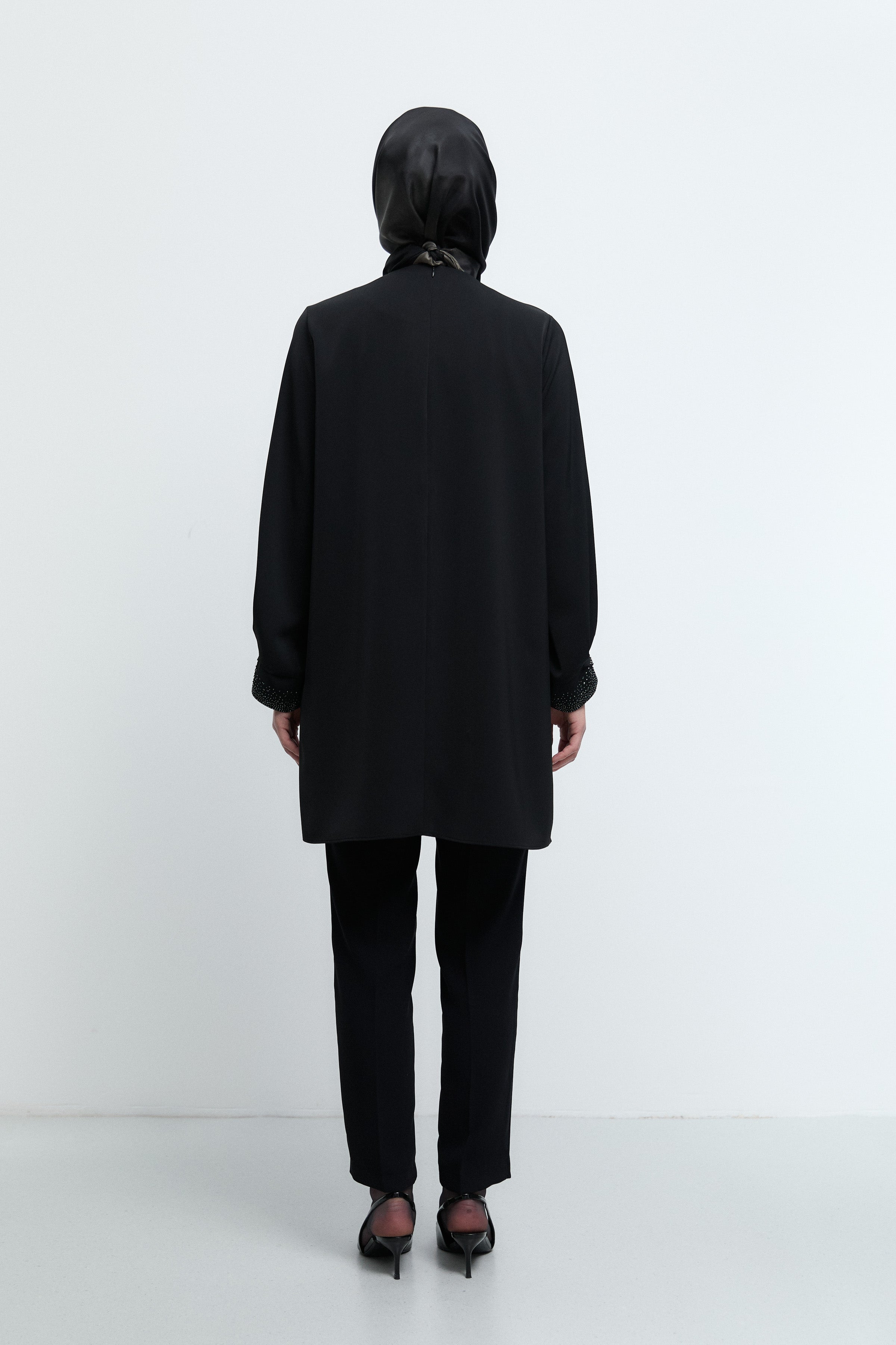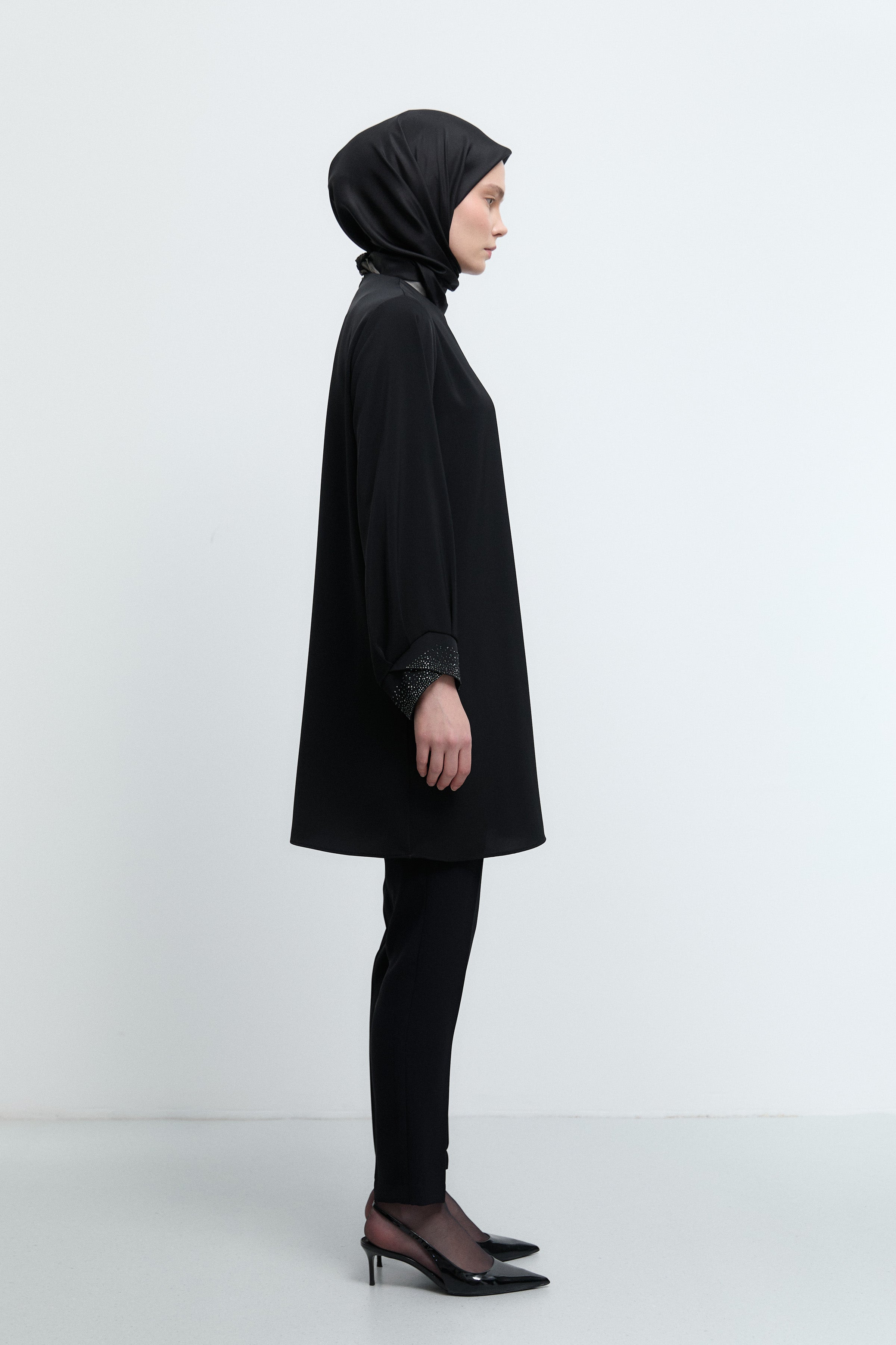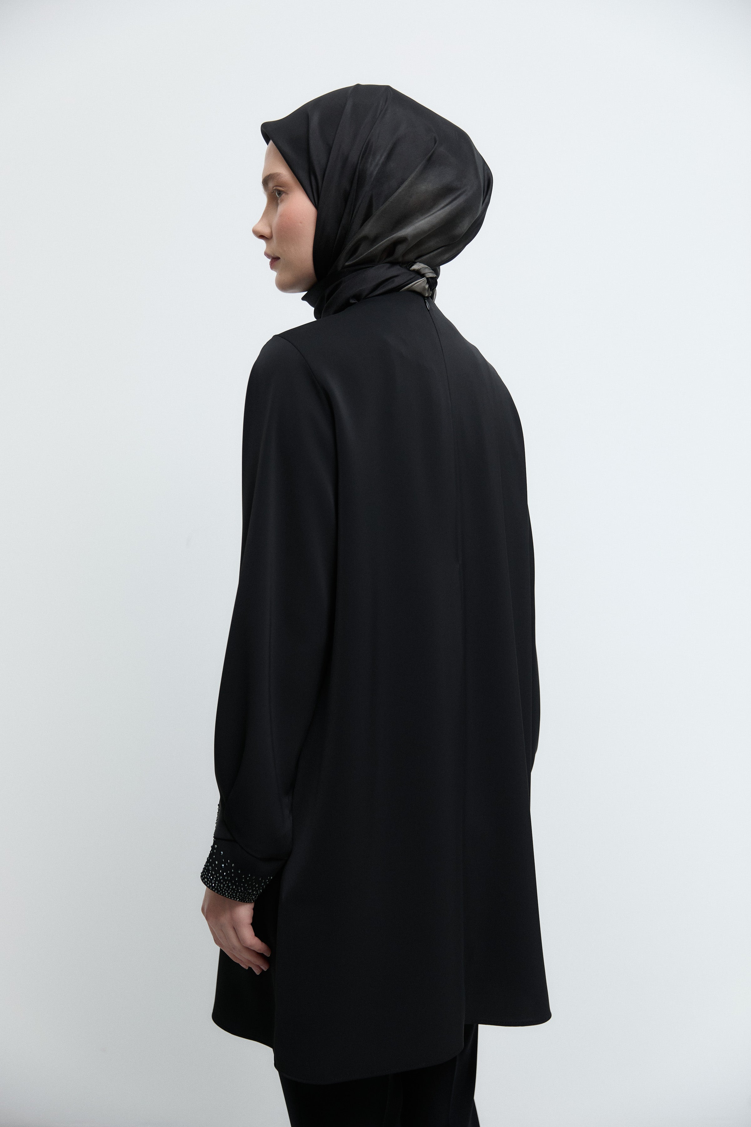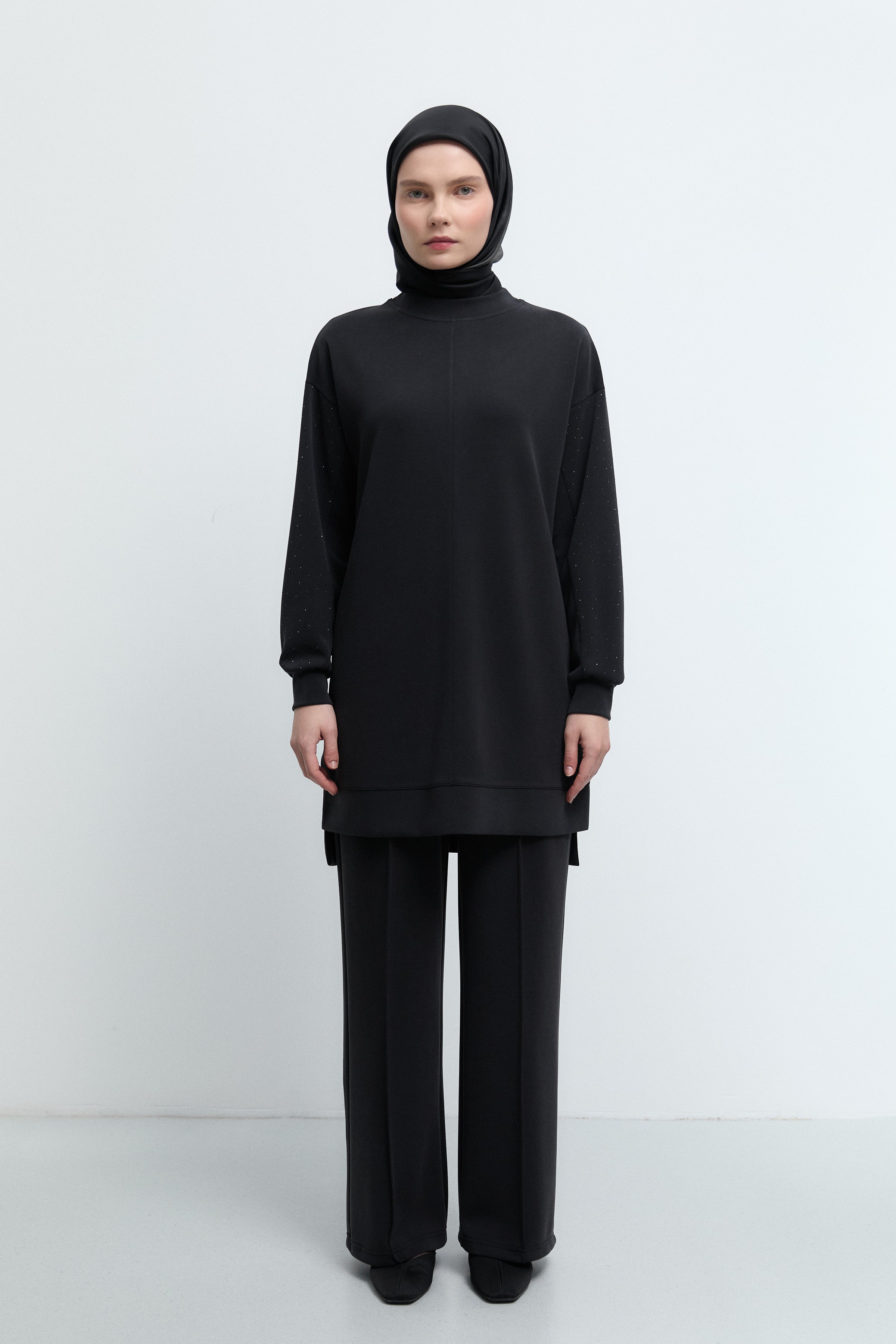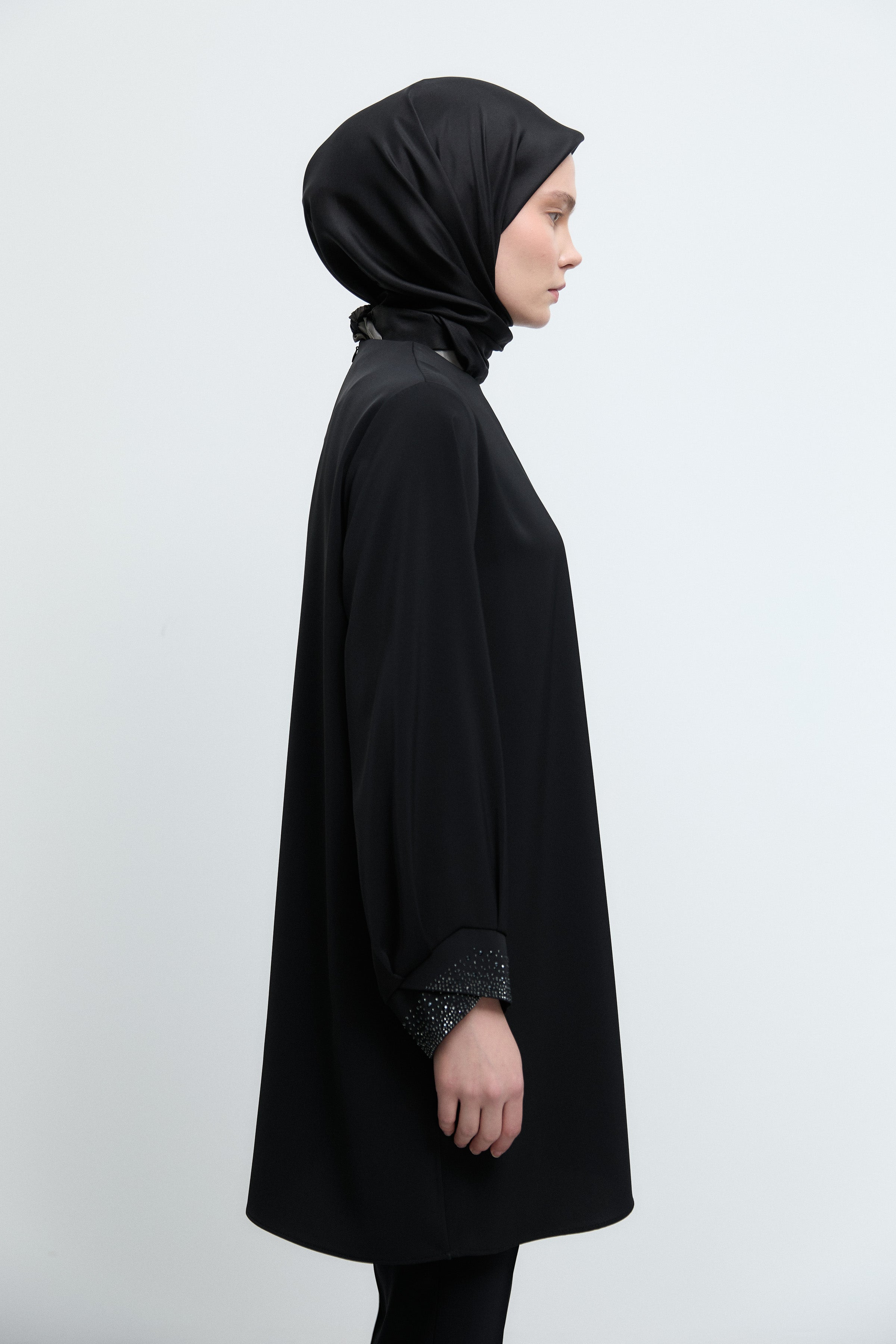 Tunique à poignets ornés de strass - Noir