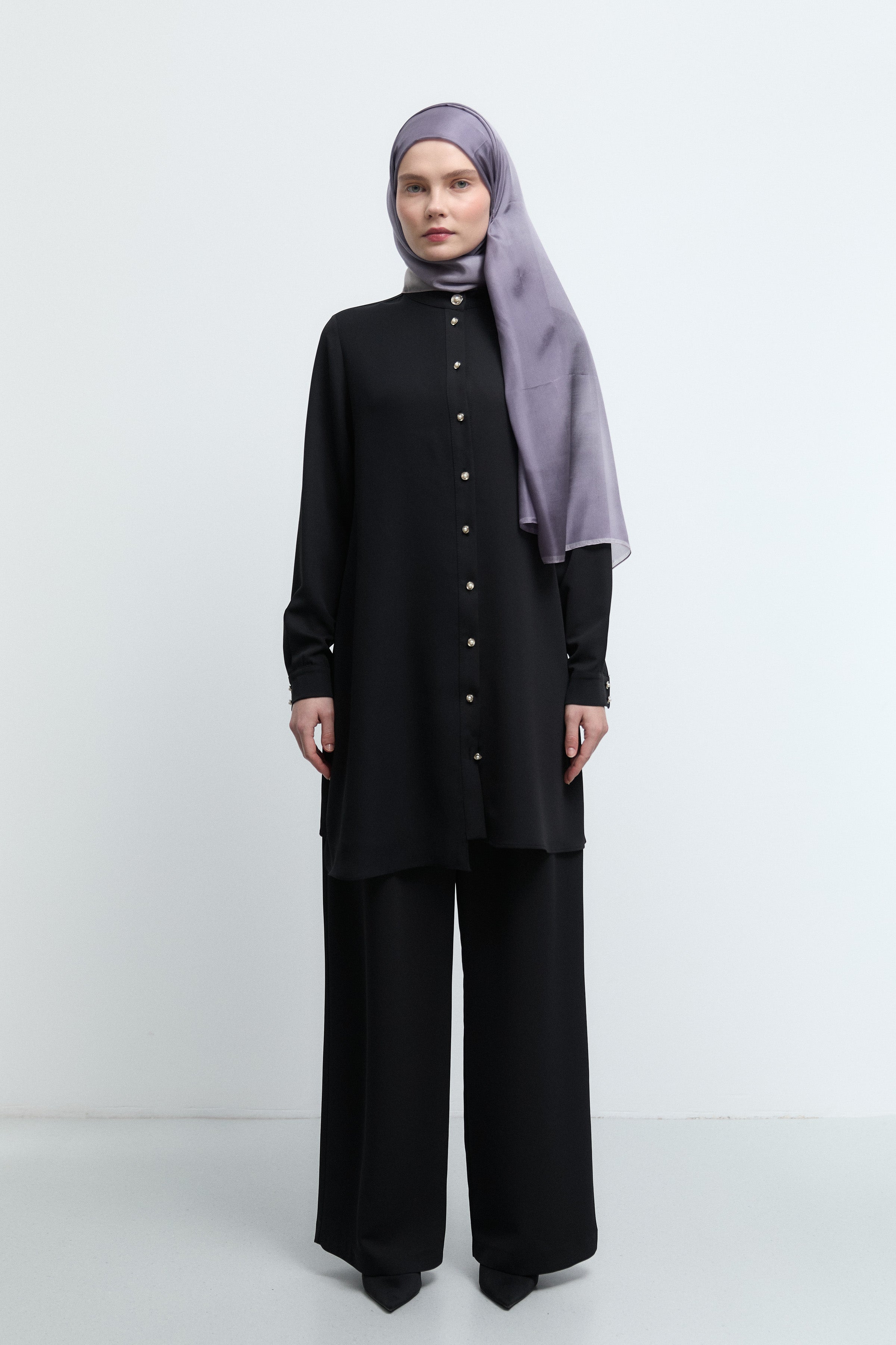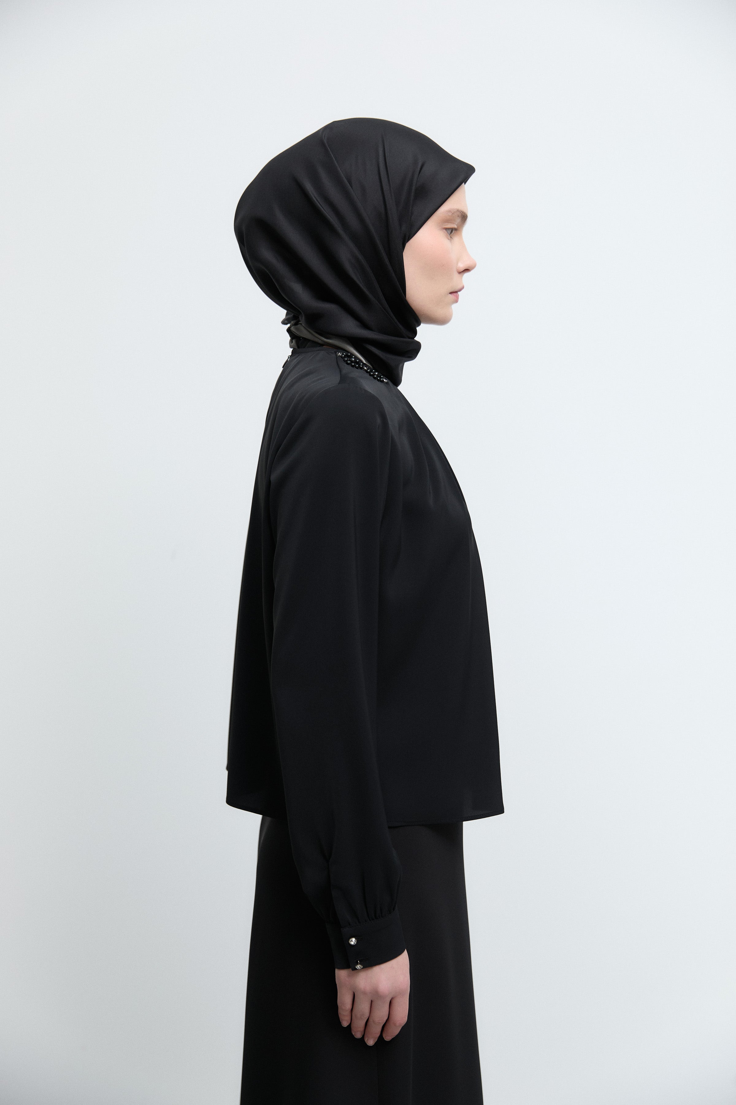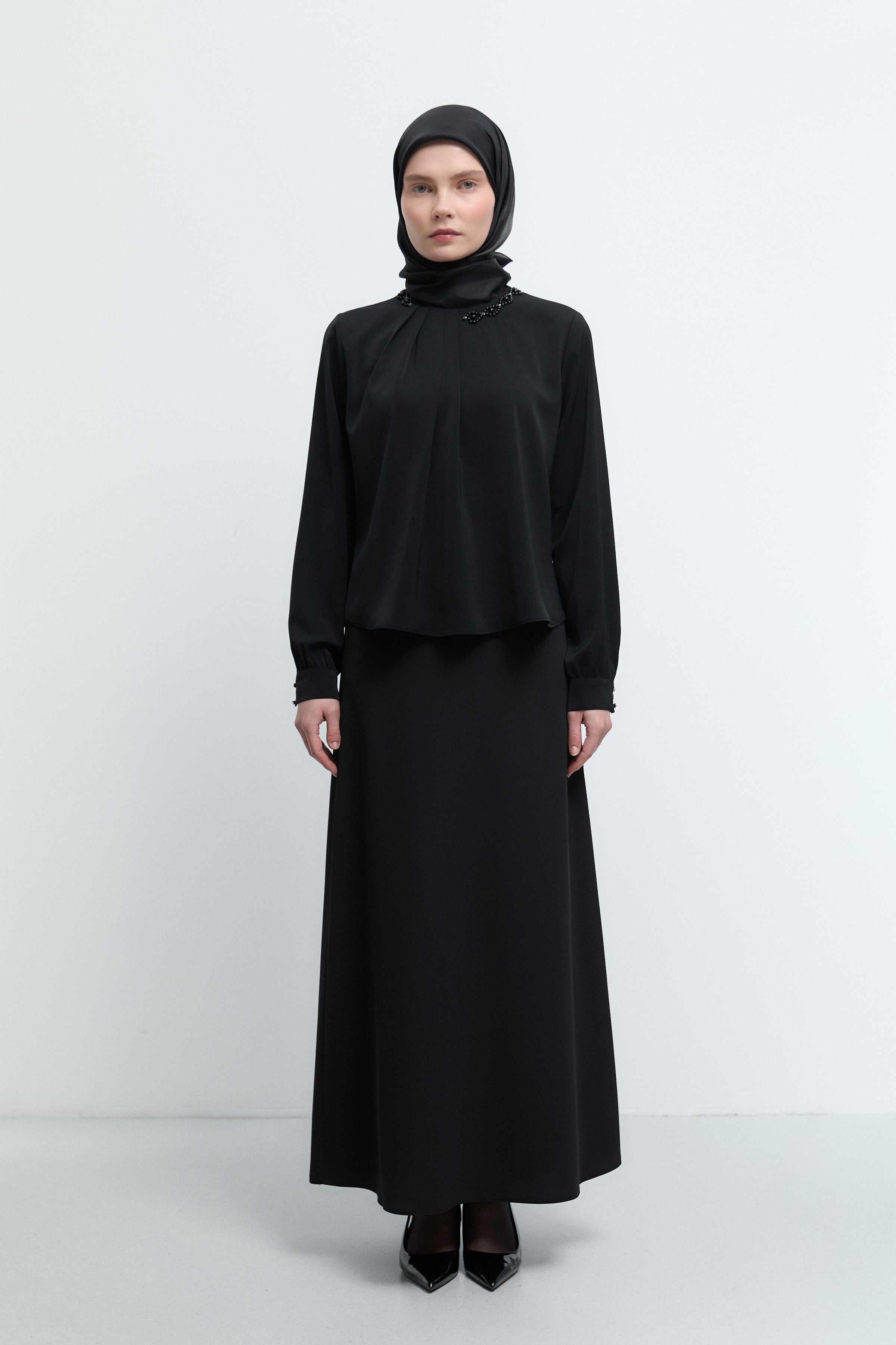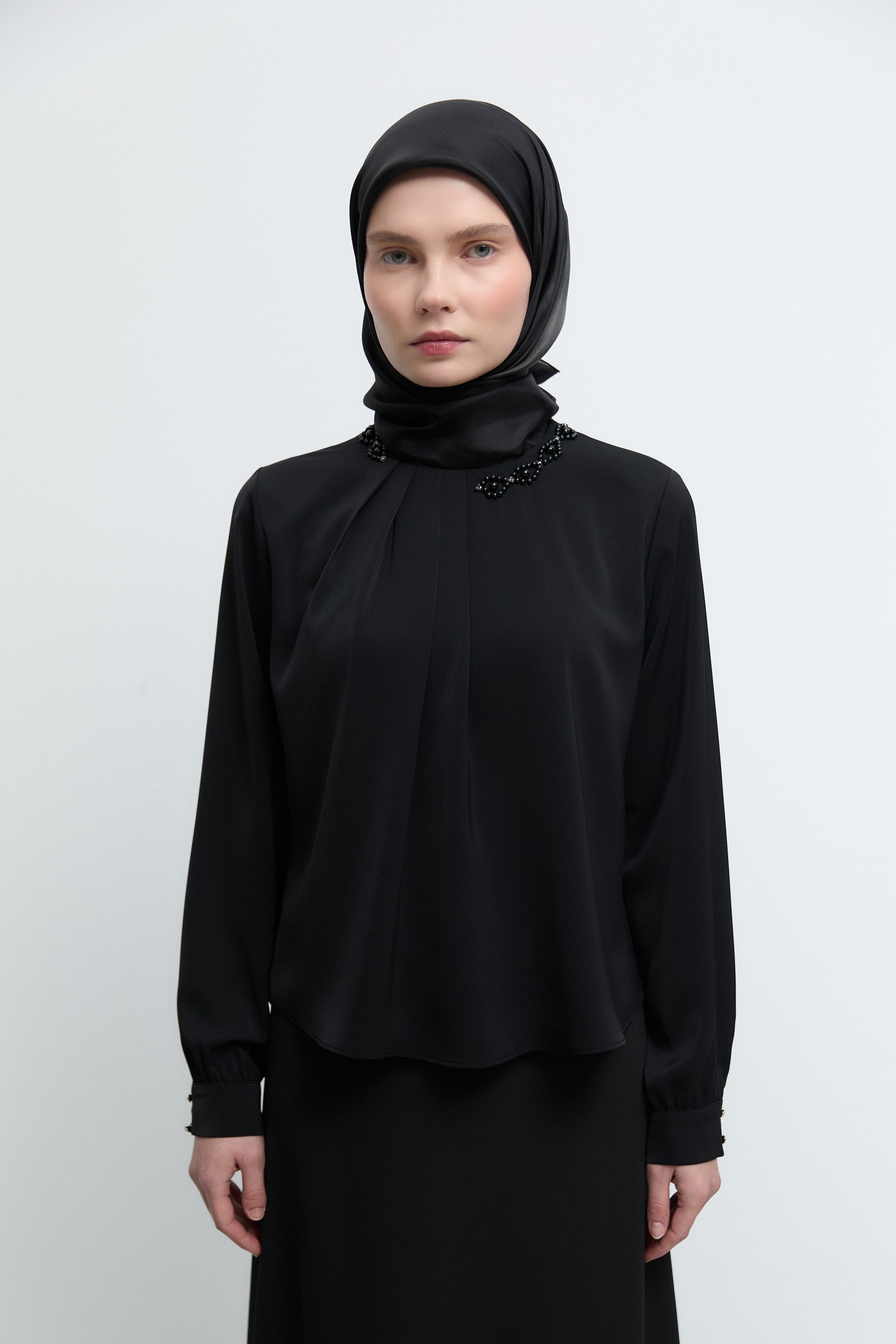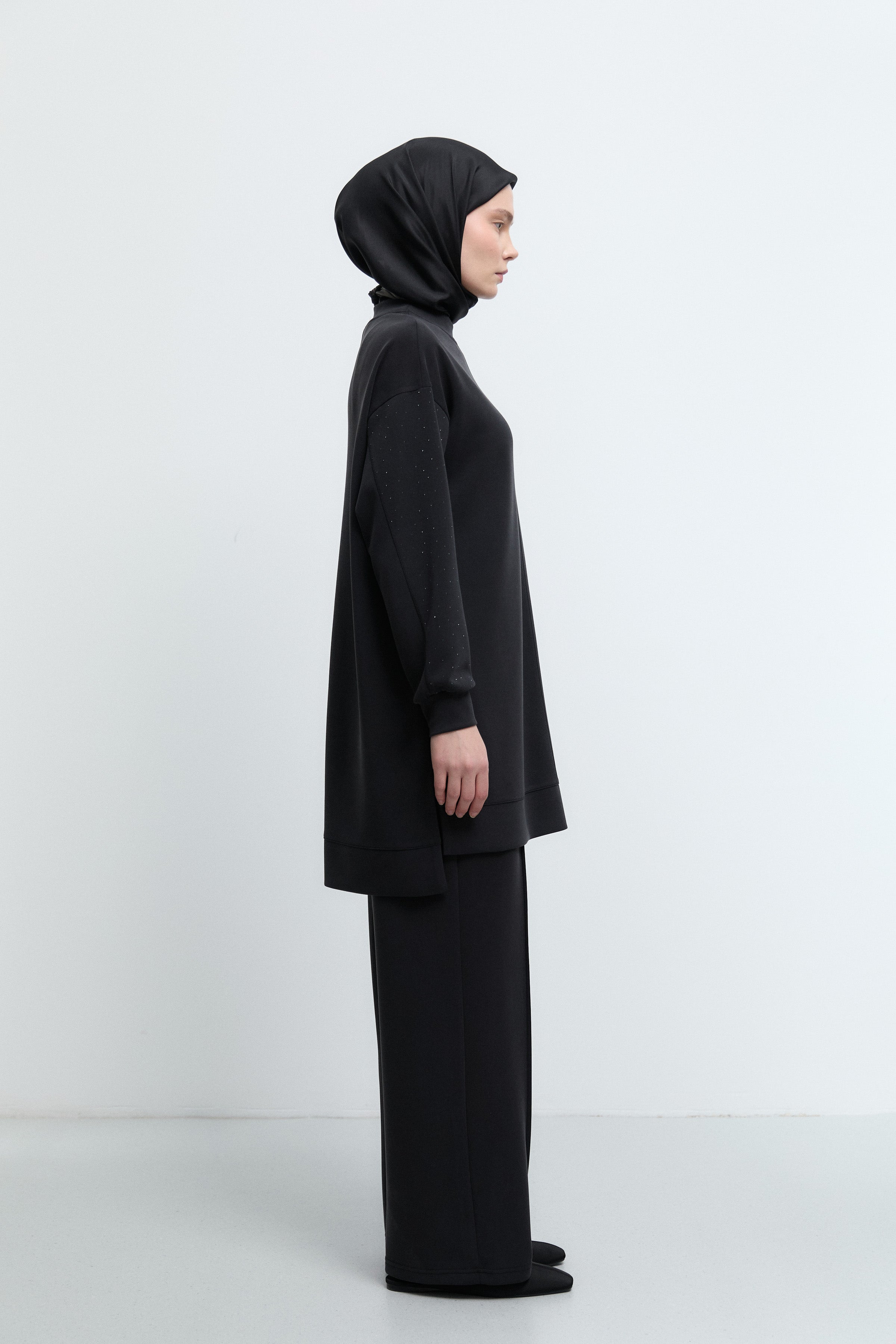 Tunique à poignets ornés de strass - Noir