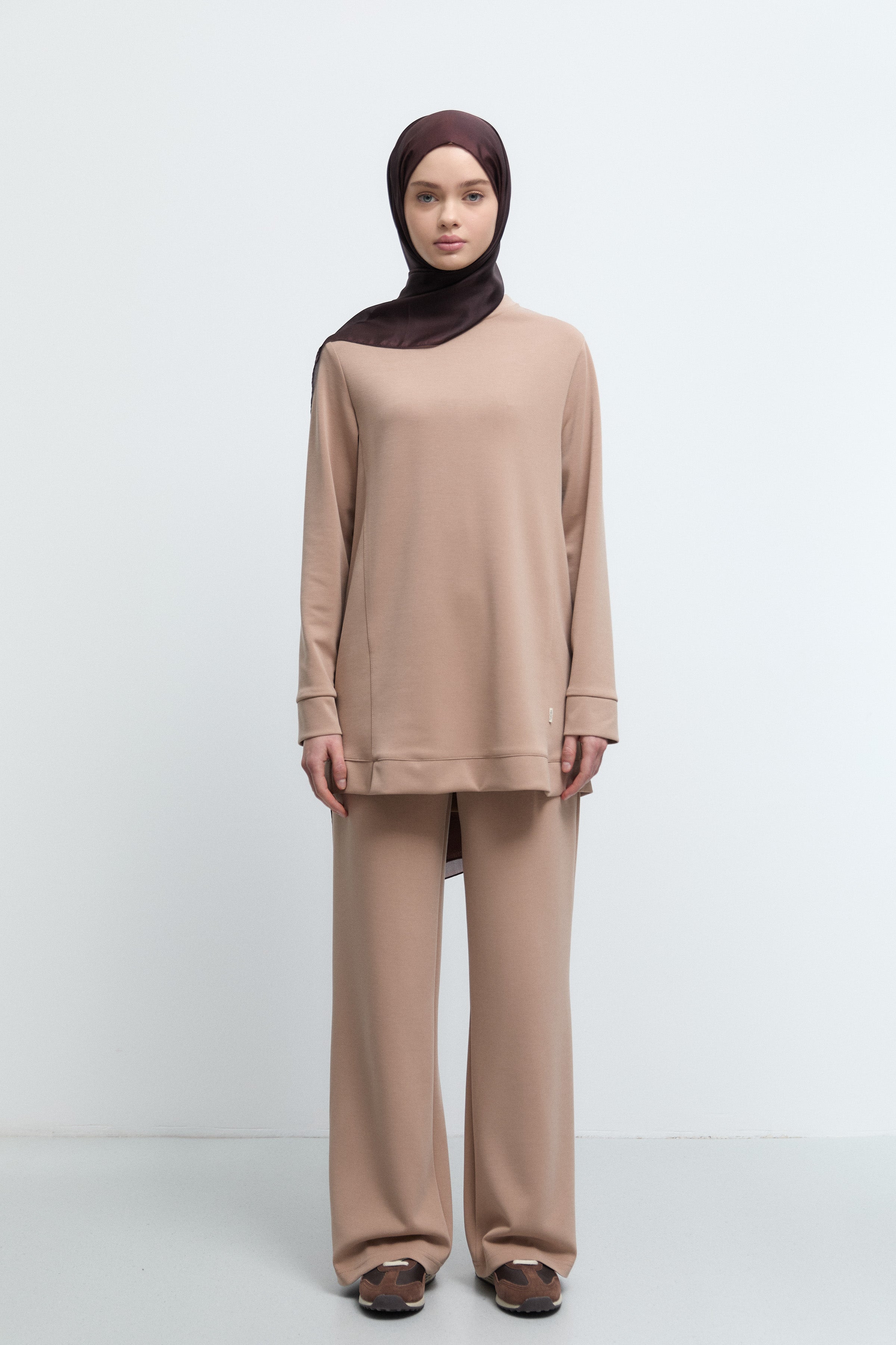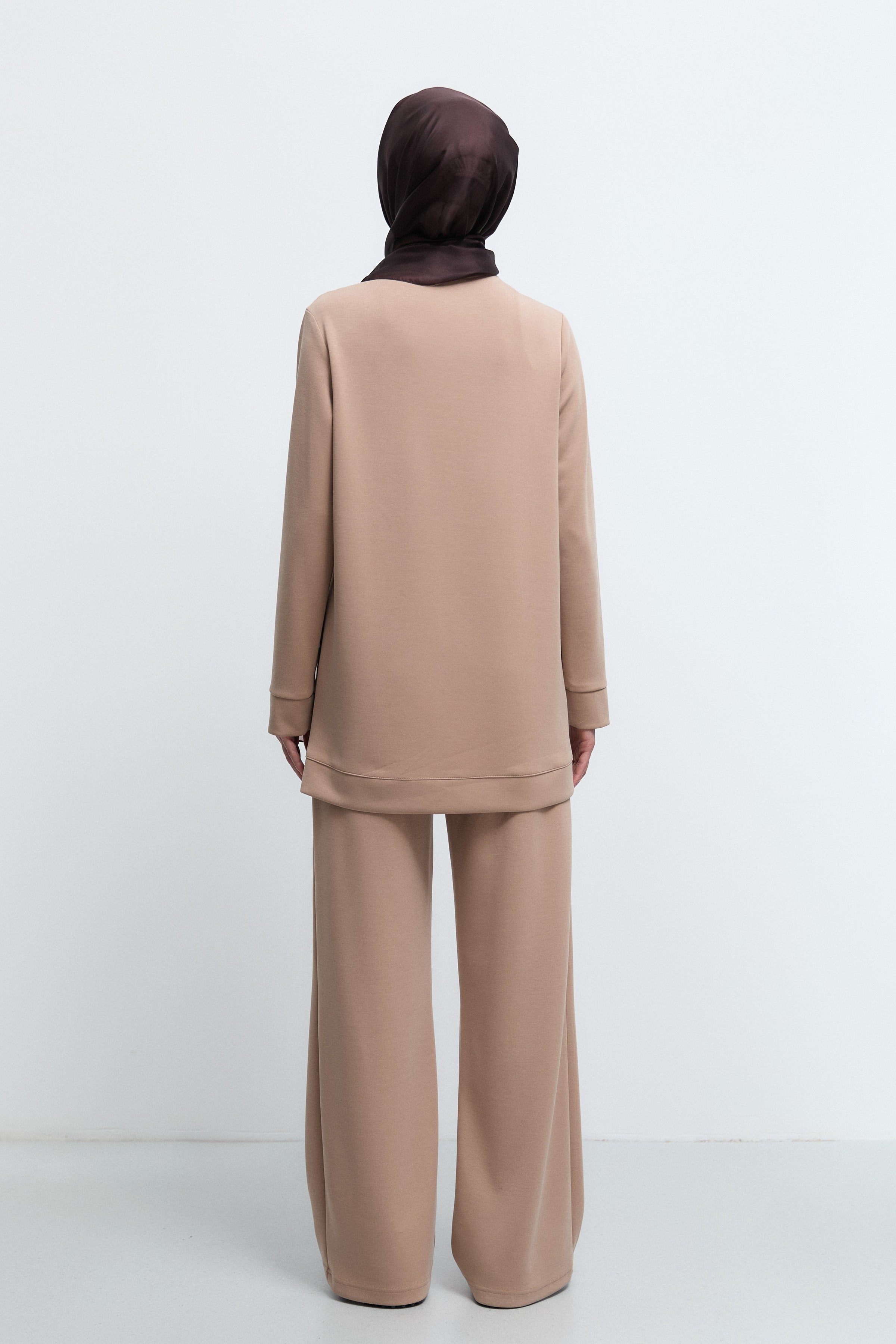 Ensemble tricoté à col rond - Noisette