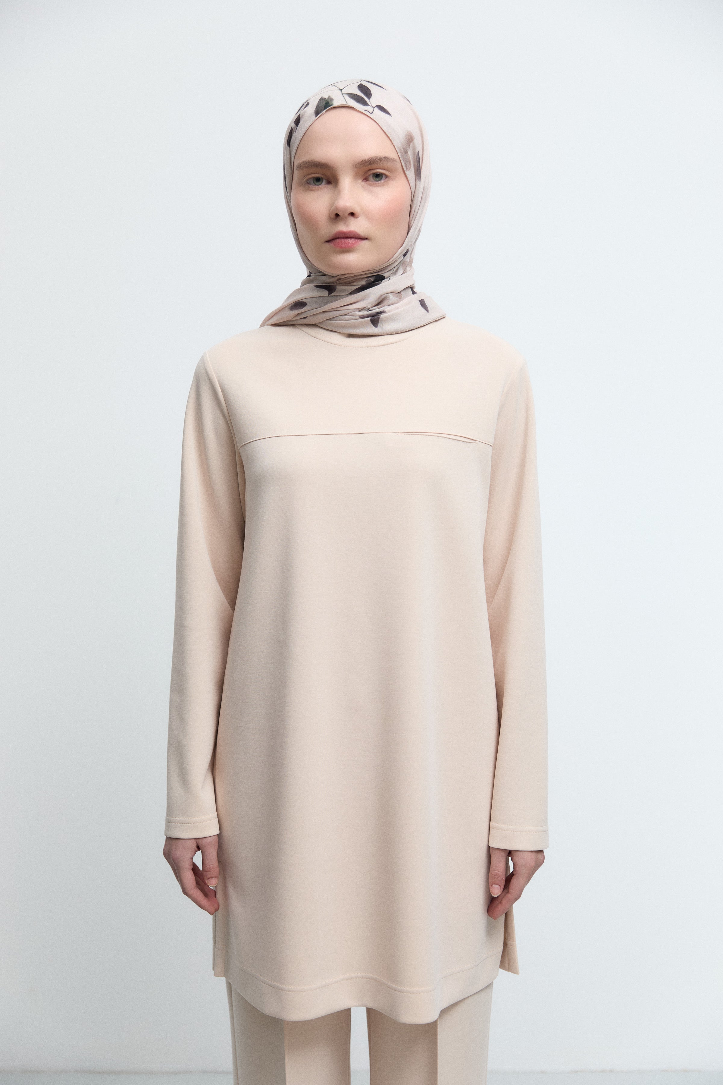 Tunique à empiècement en tulle frontal - Beige