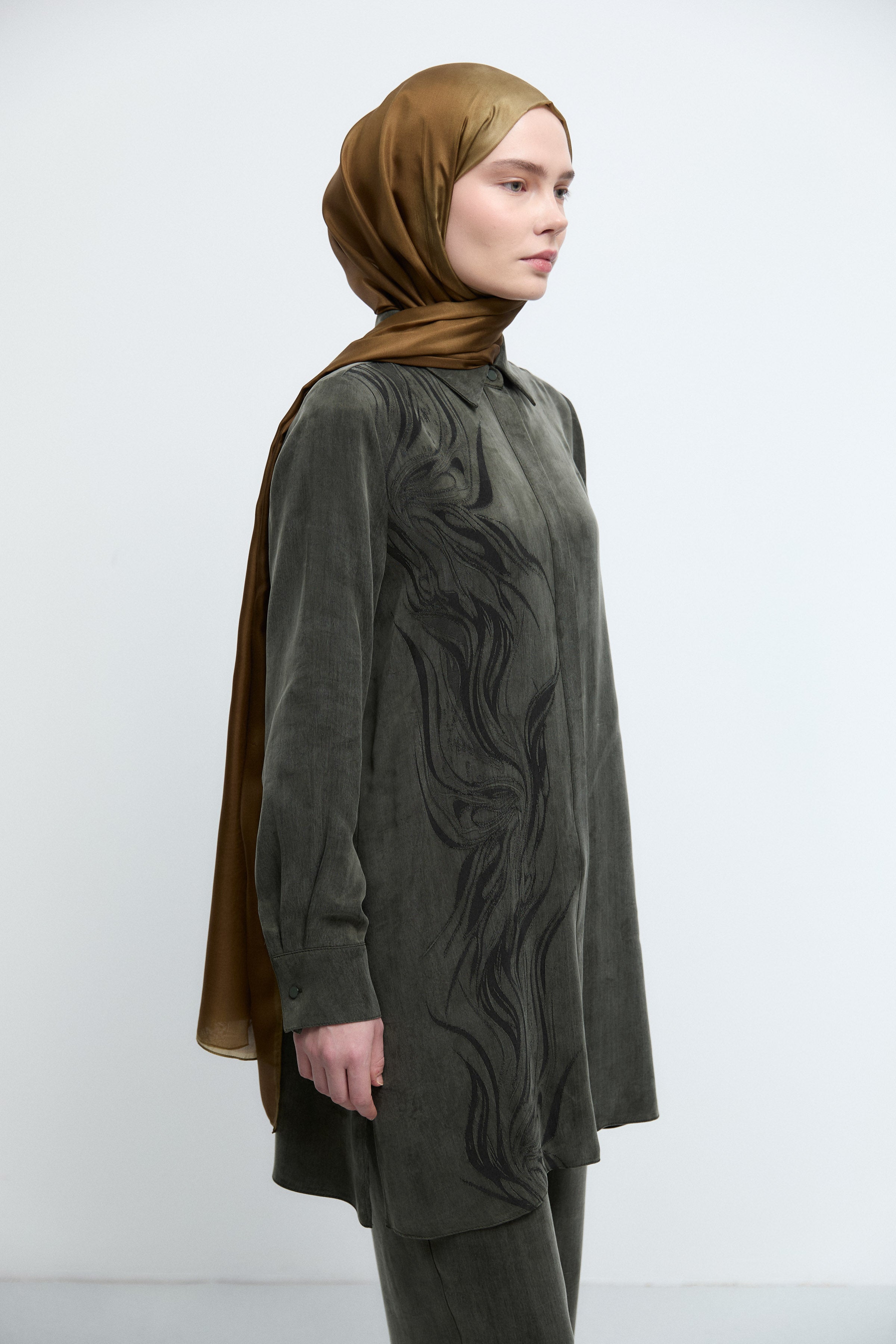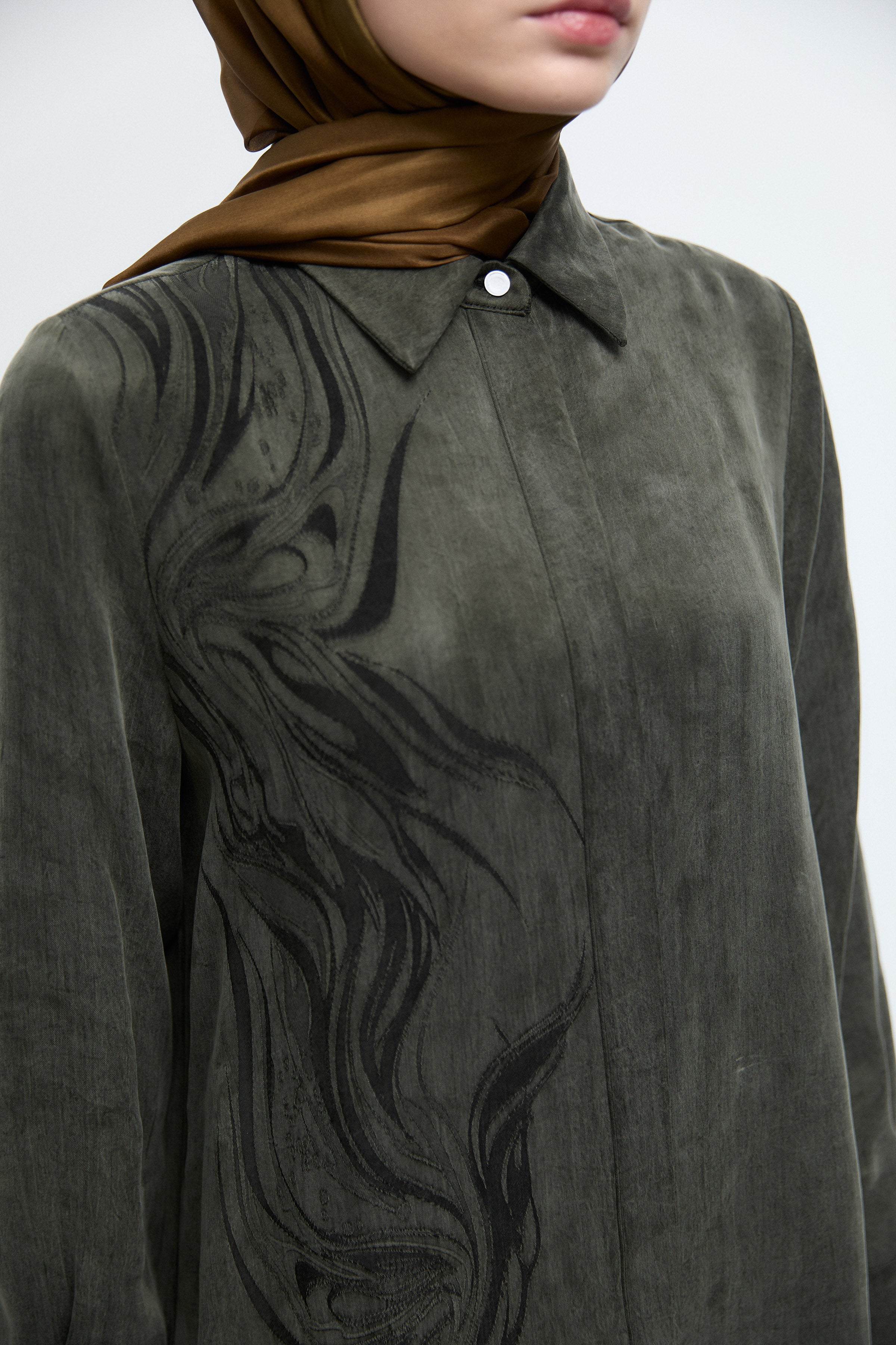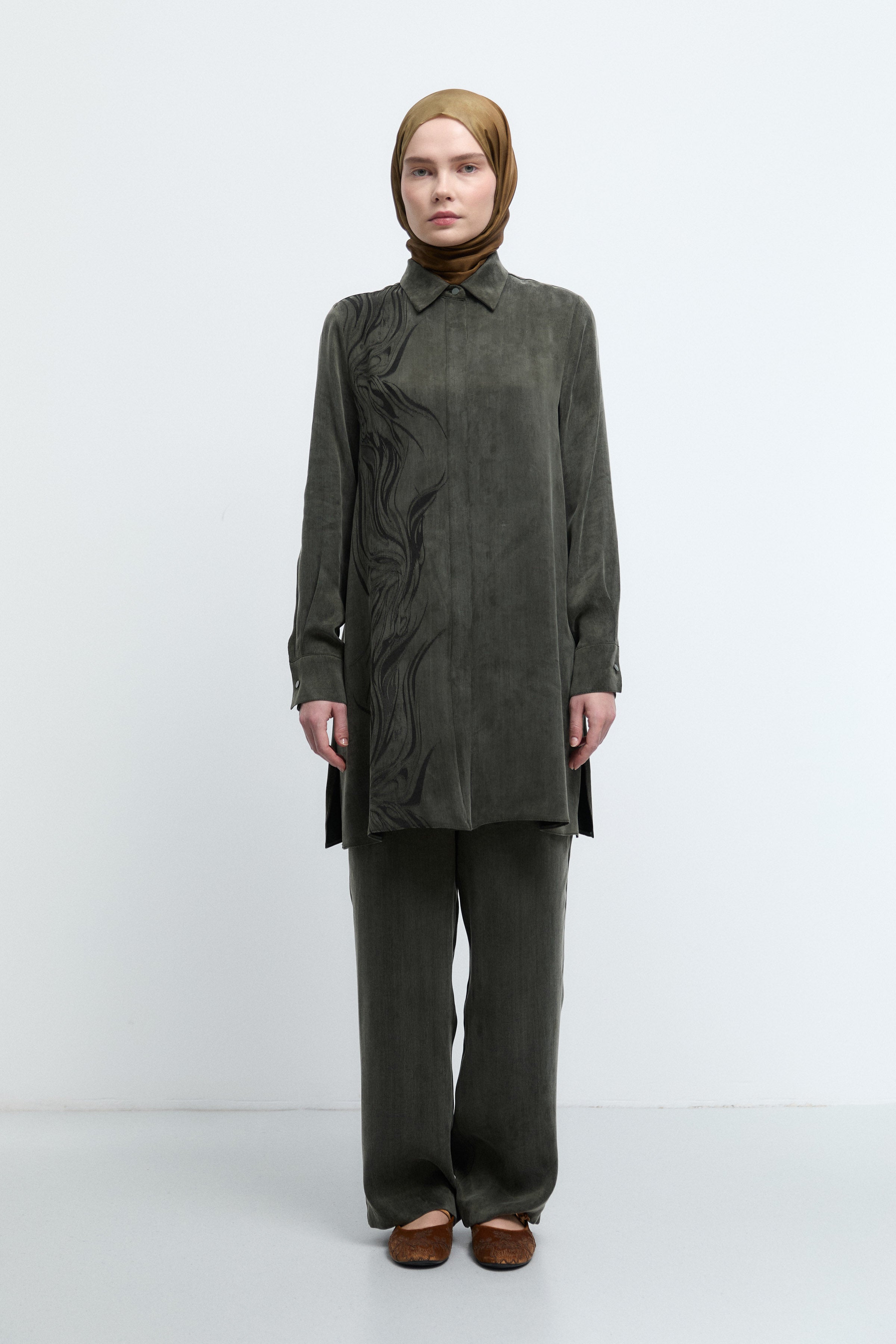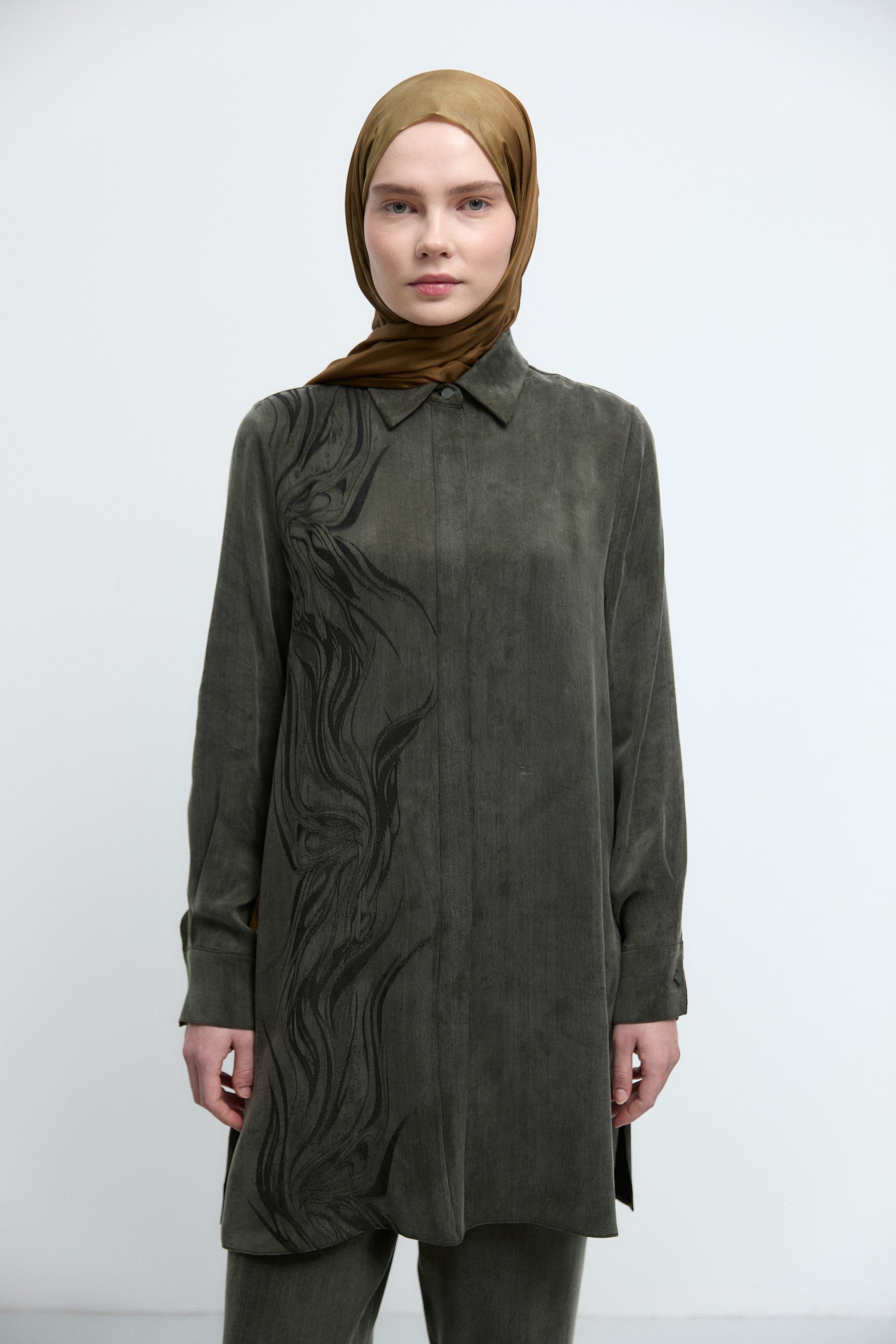 Tunique à boutonnage dissimulé à motif - Kaki
