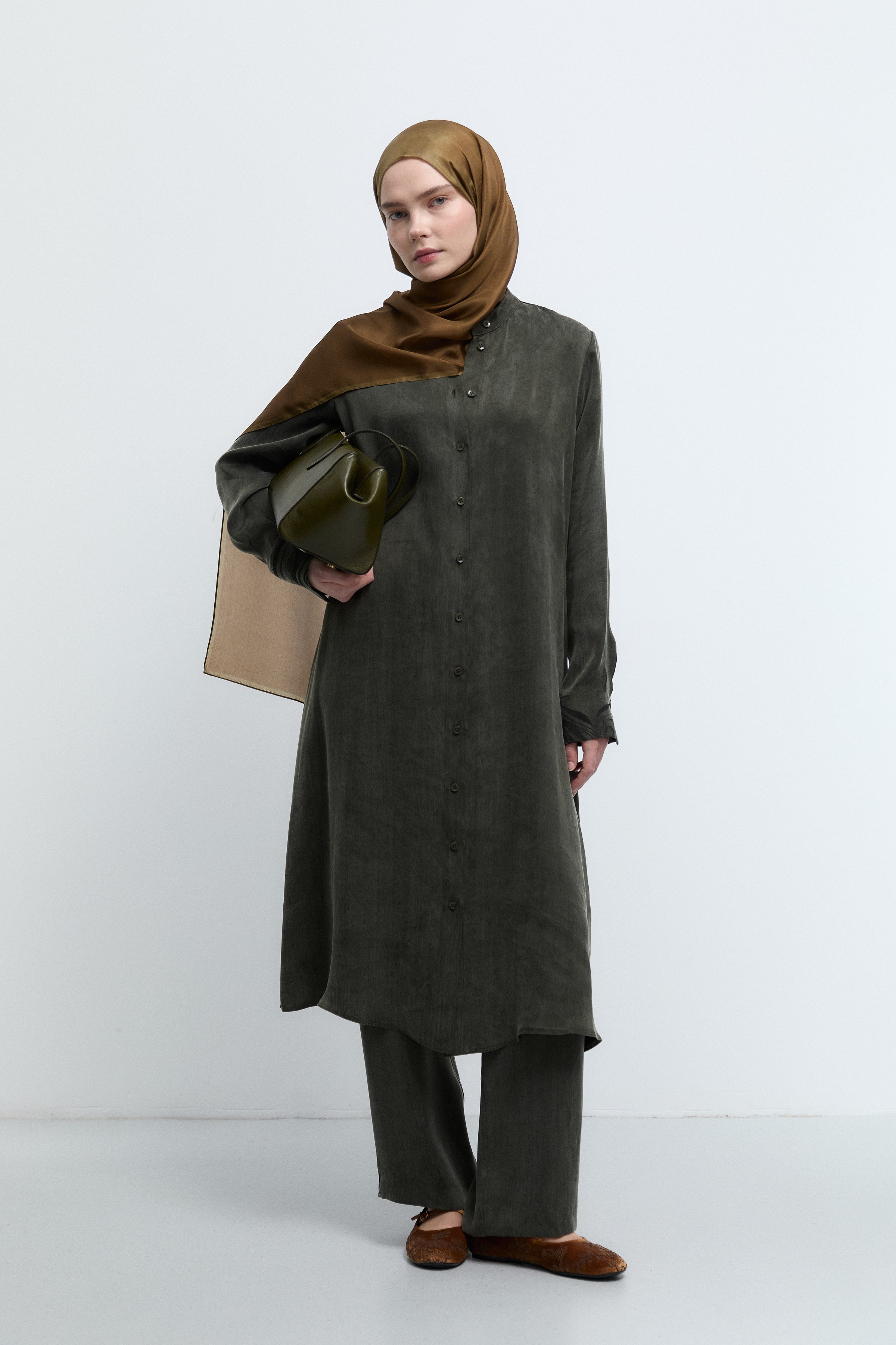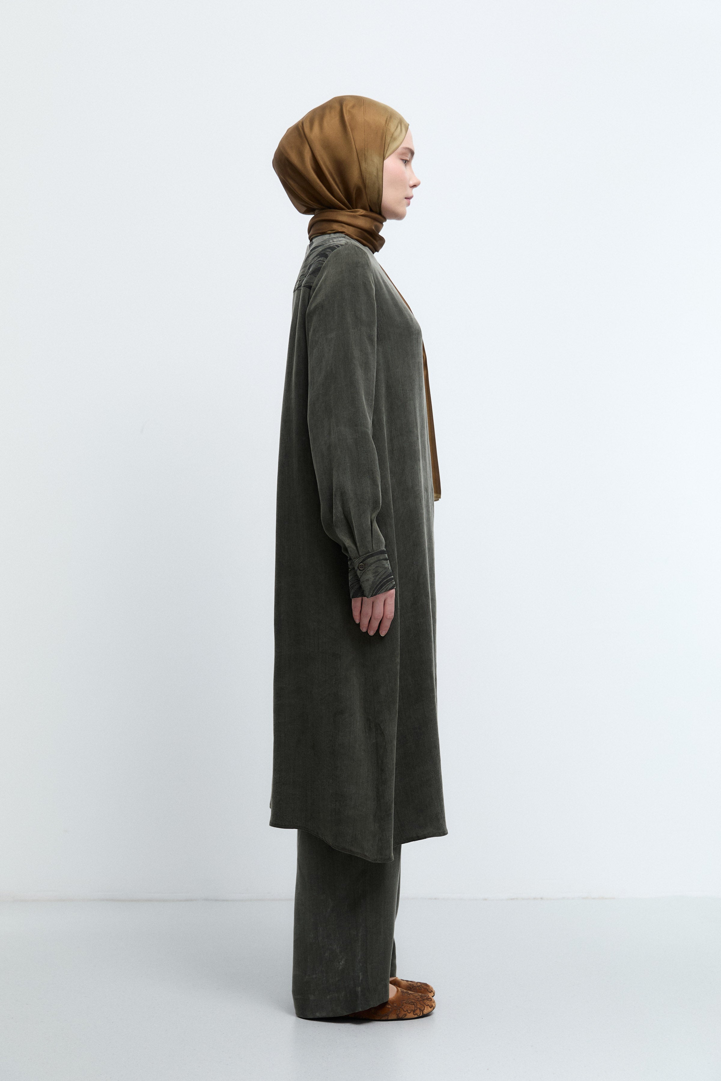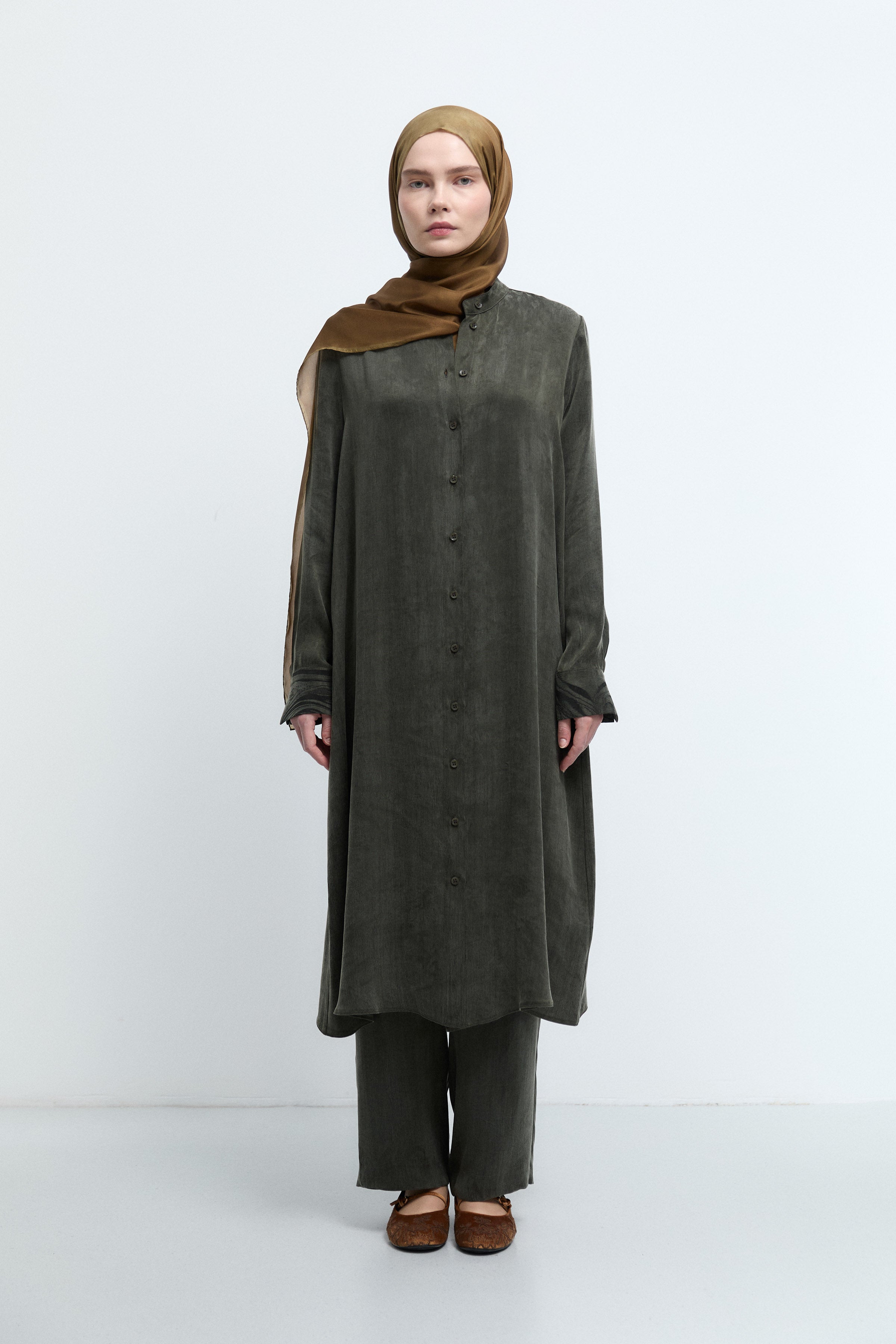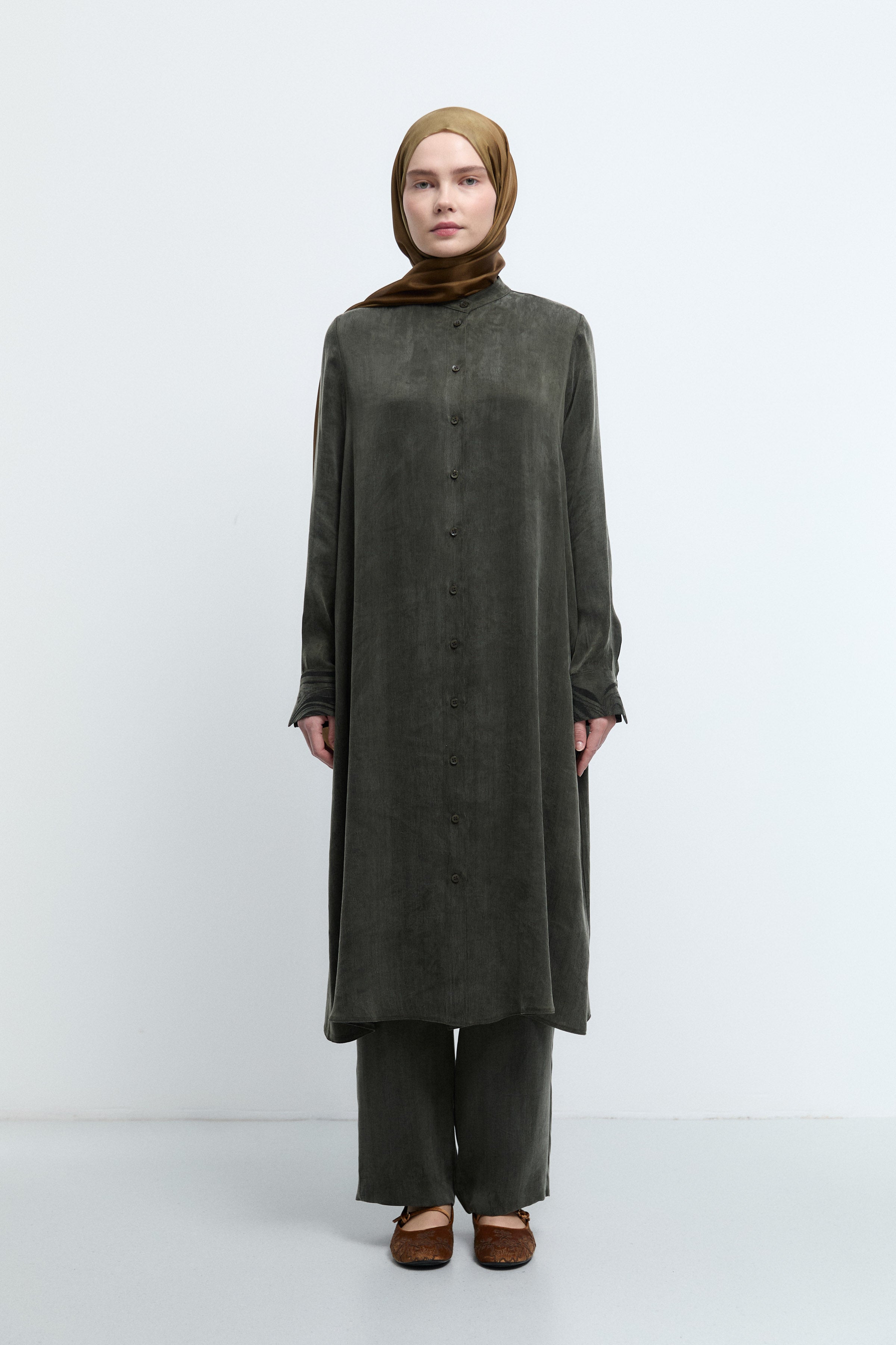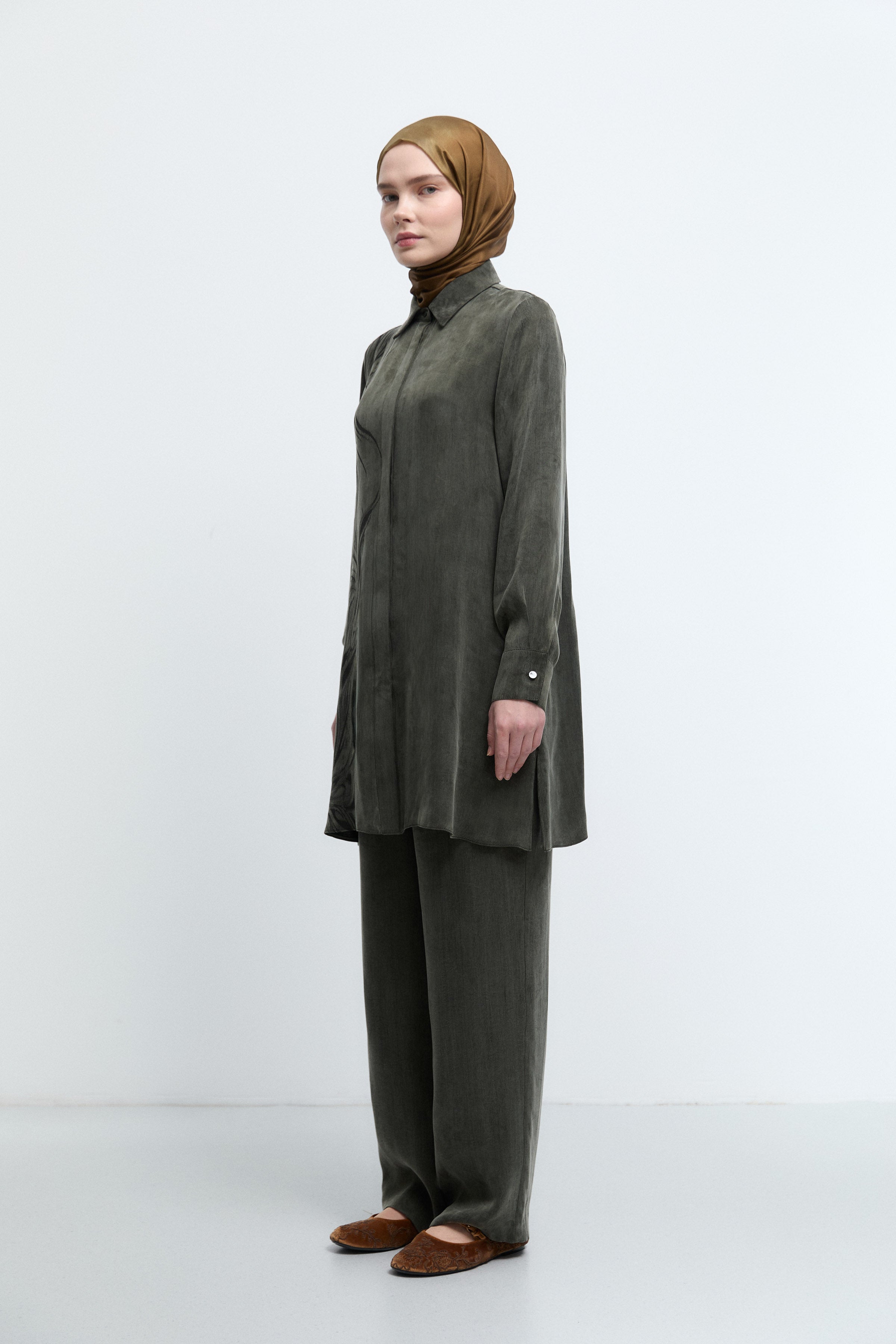 Tunique à boutonnage dissimulé à motif - Kaki