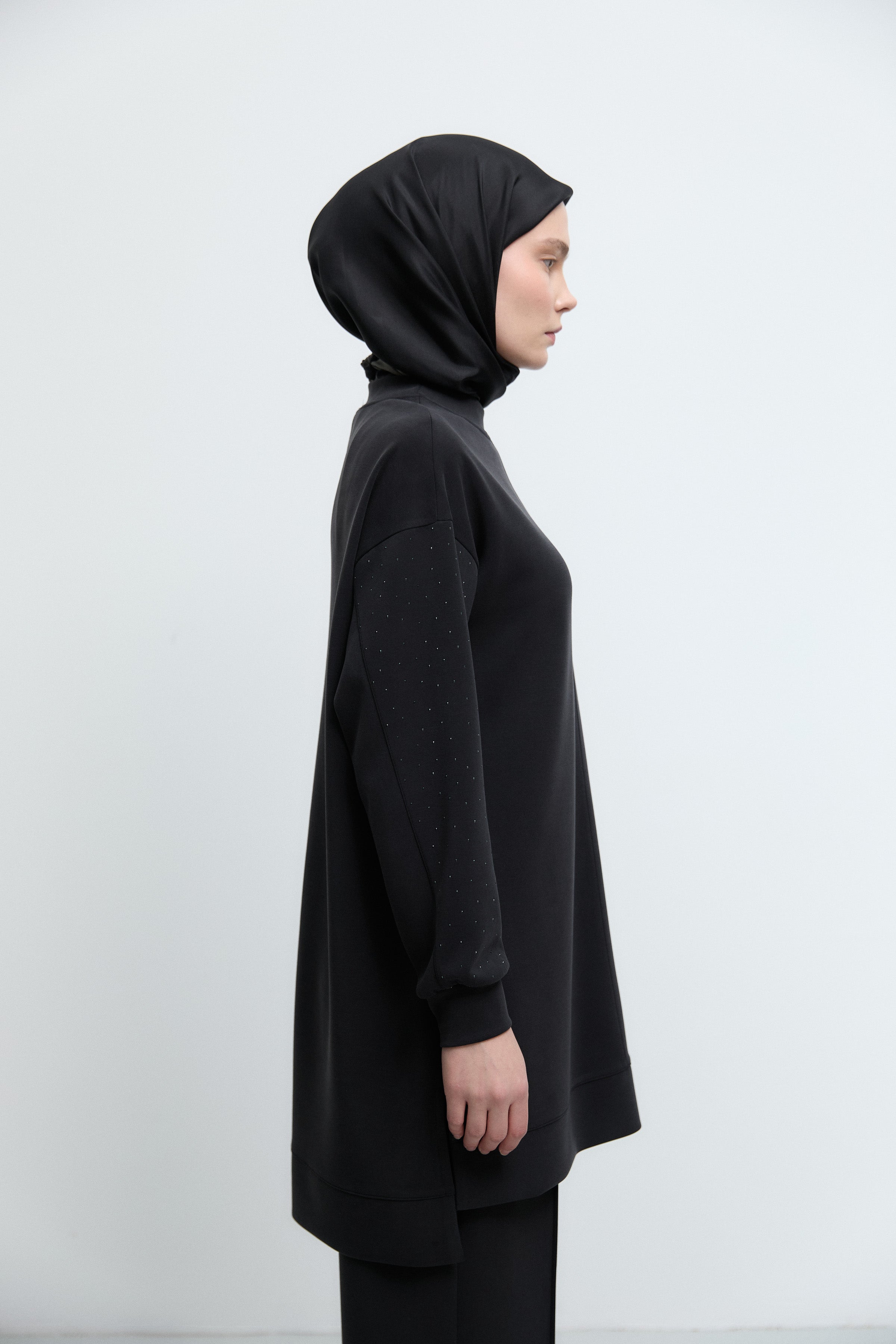 Tunique à manches ornées de strass - Noir