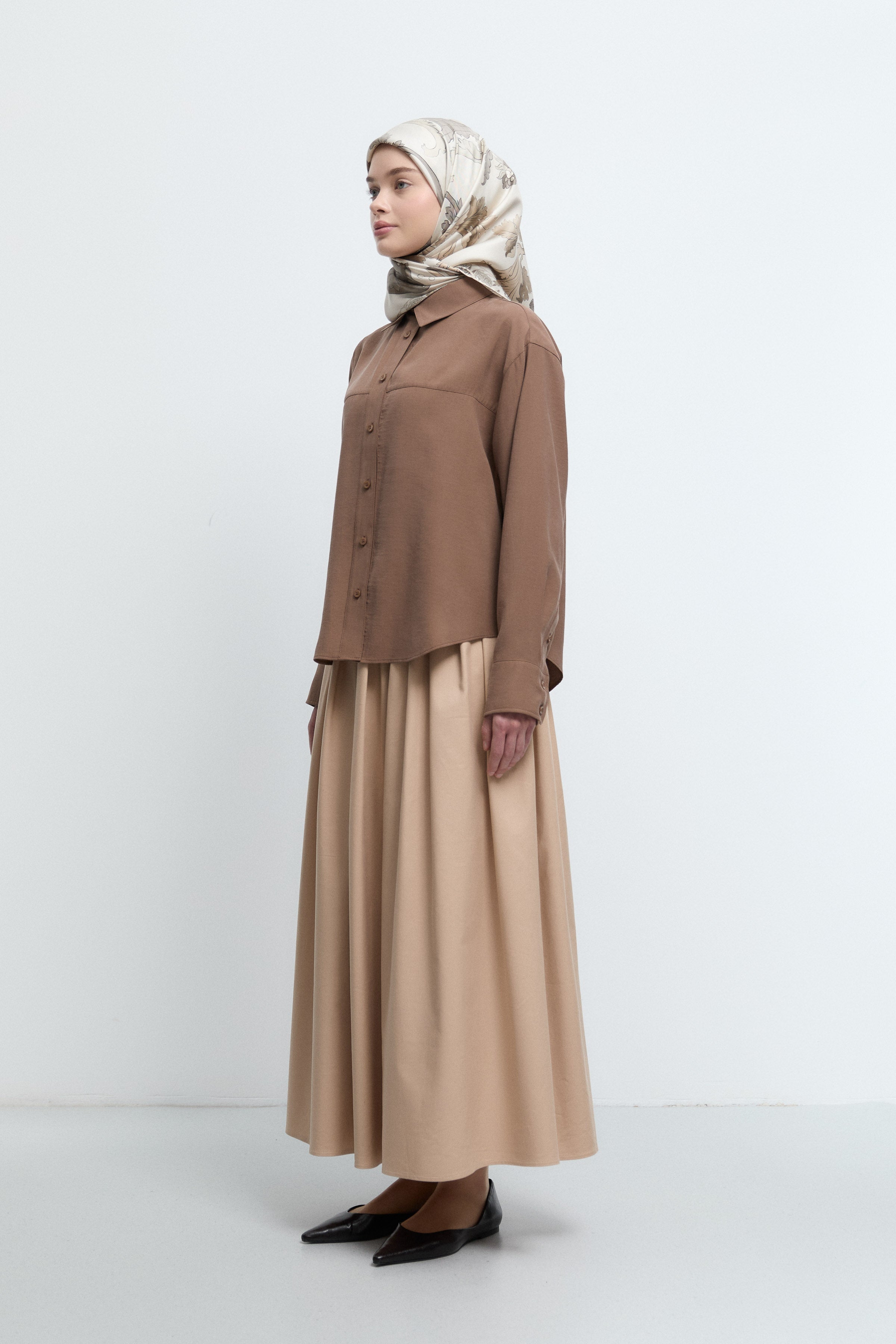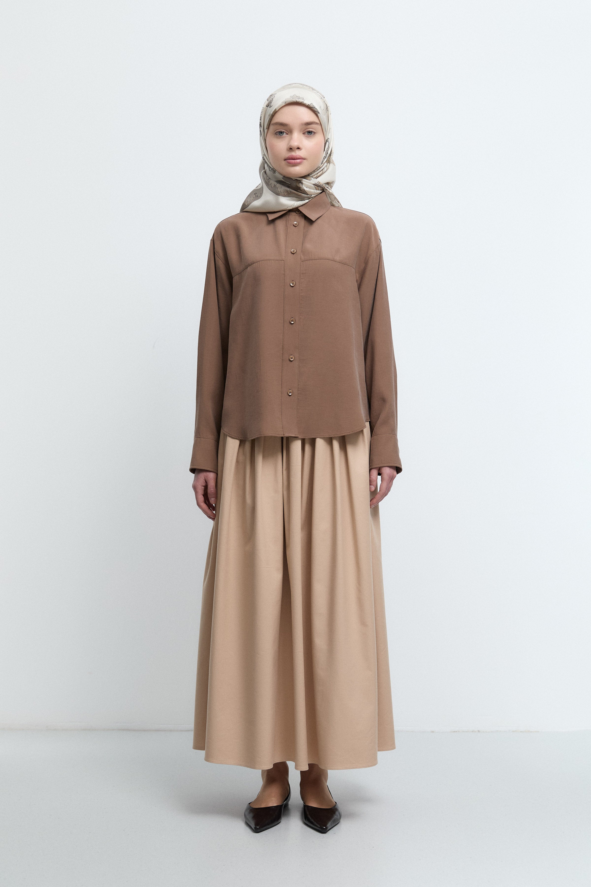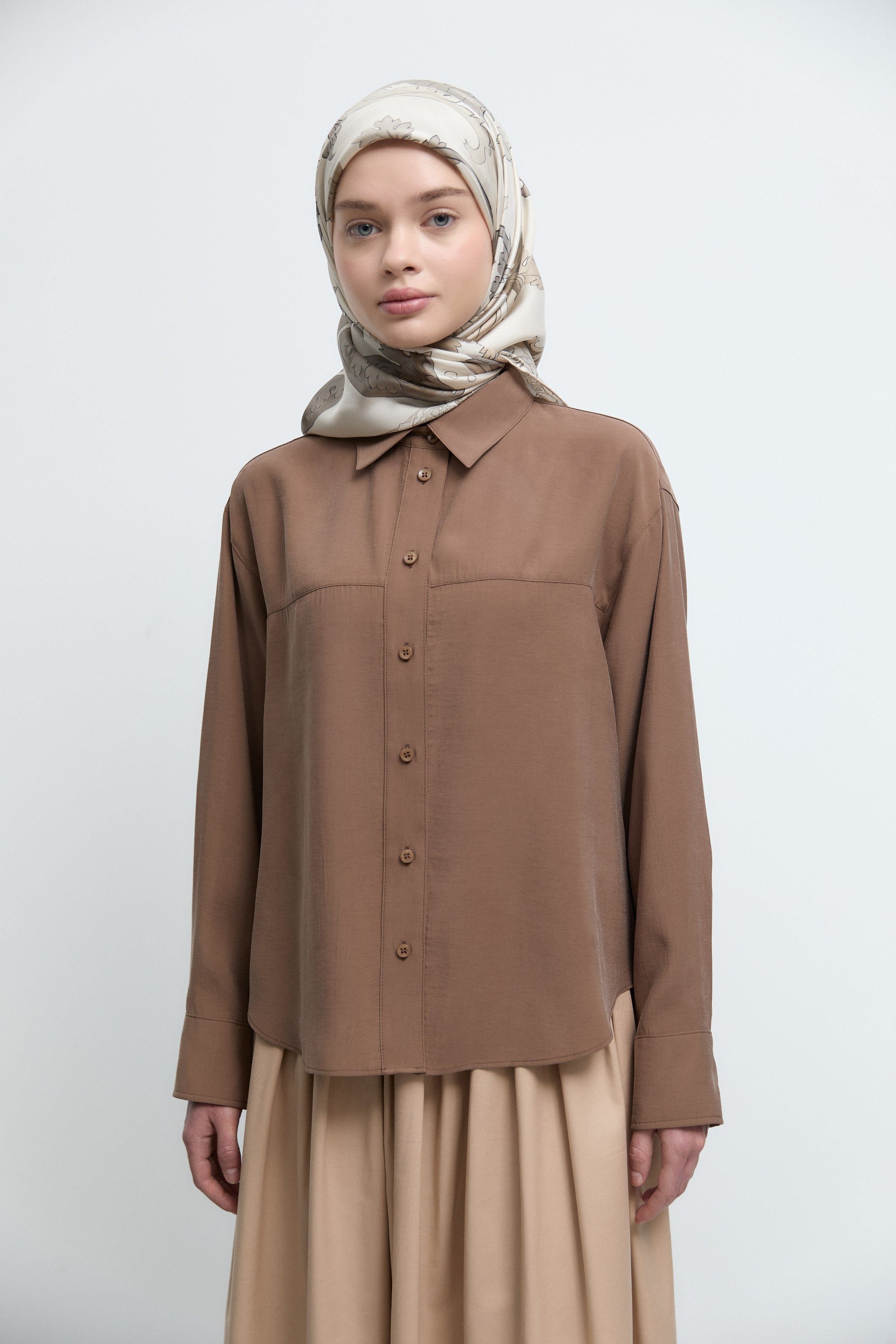 Chemise à manches tombantes - Noisette