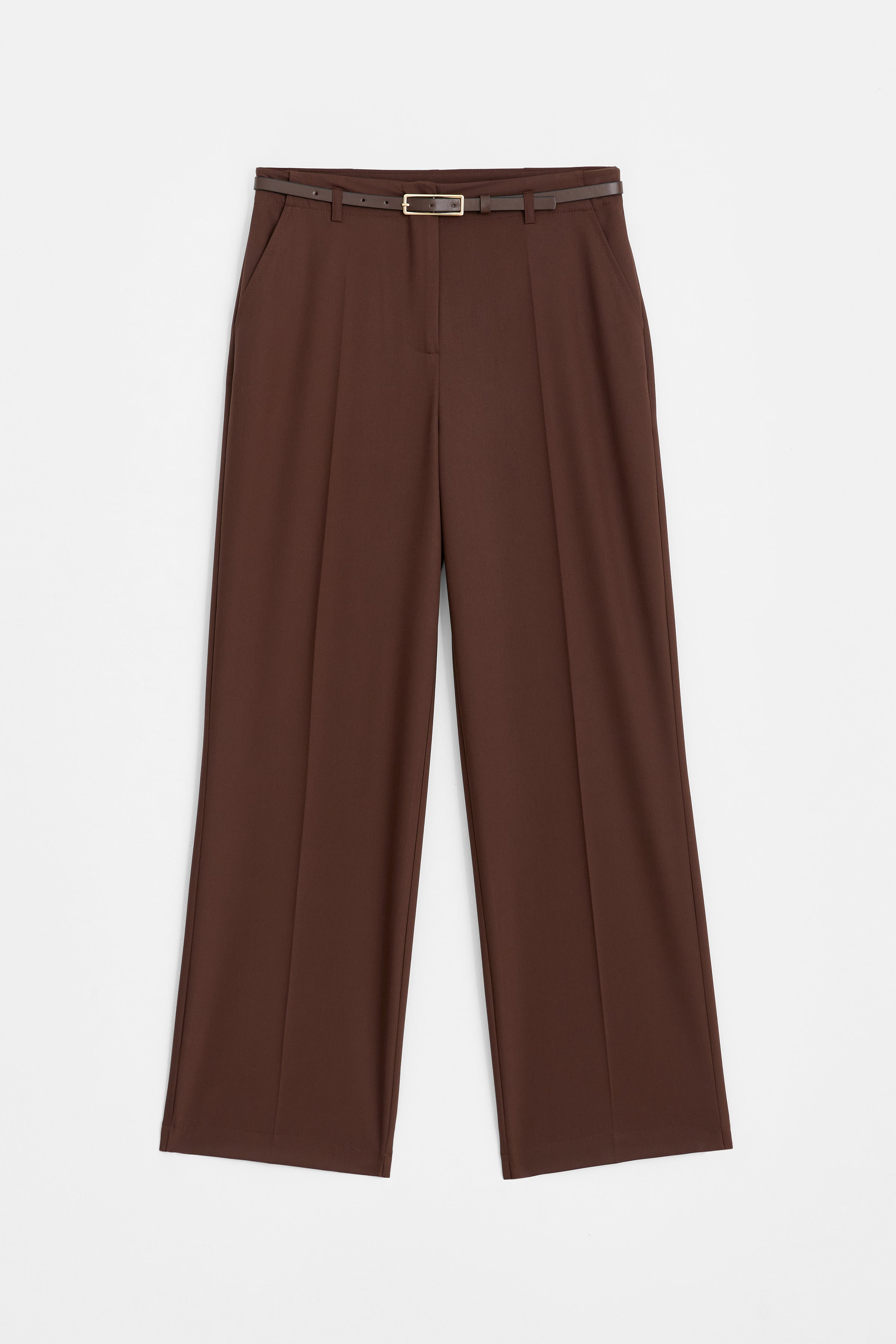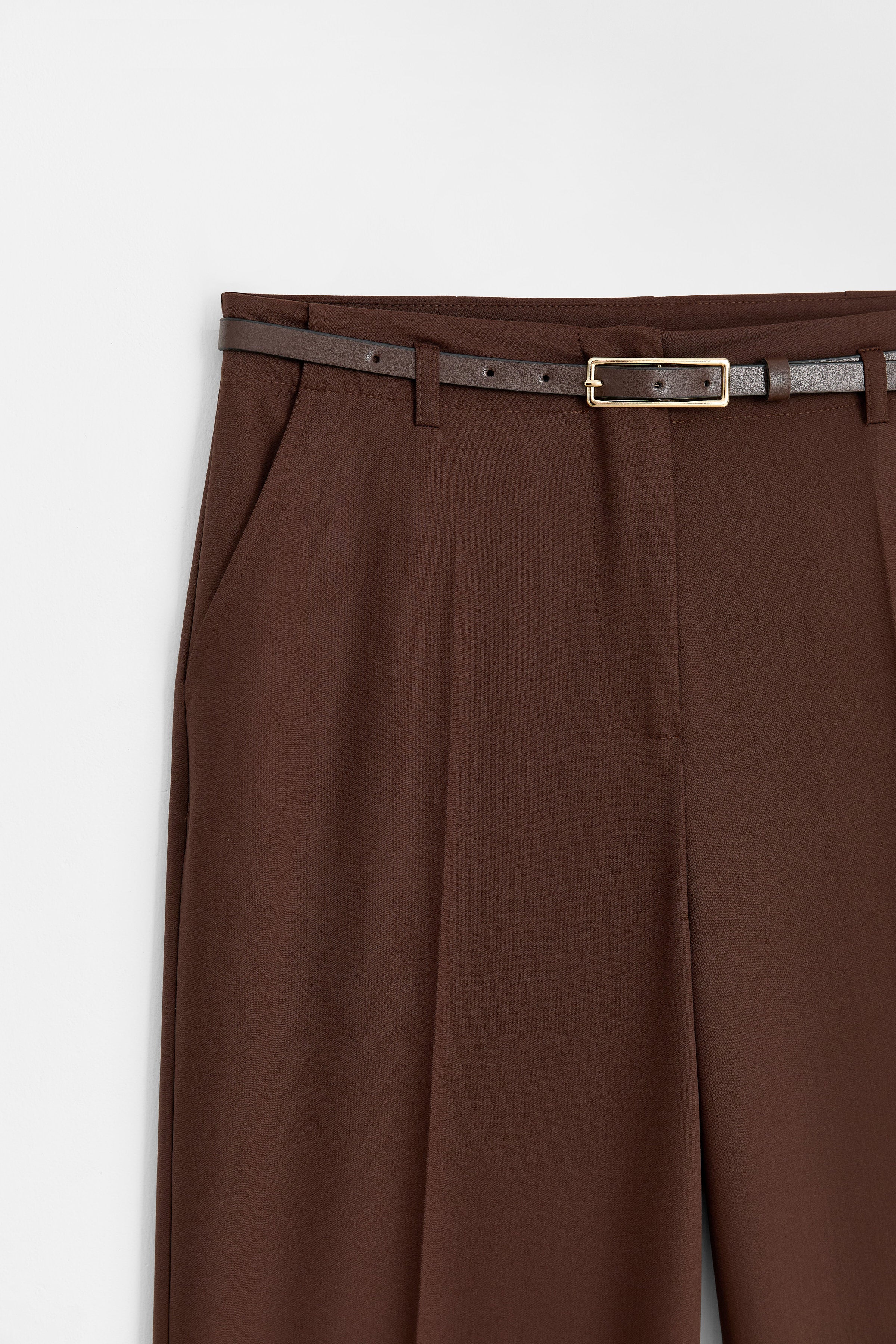 Pantalon avec ceinture et fermeture éclair sur le côté - Café