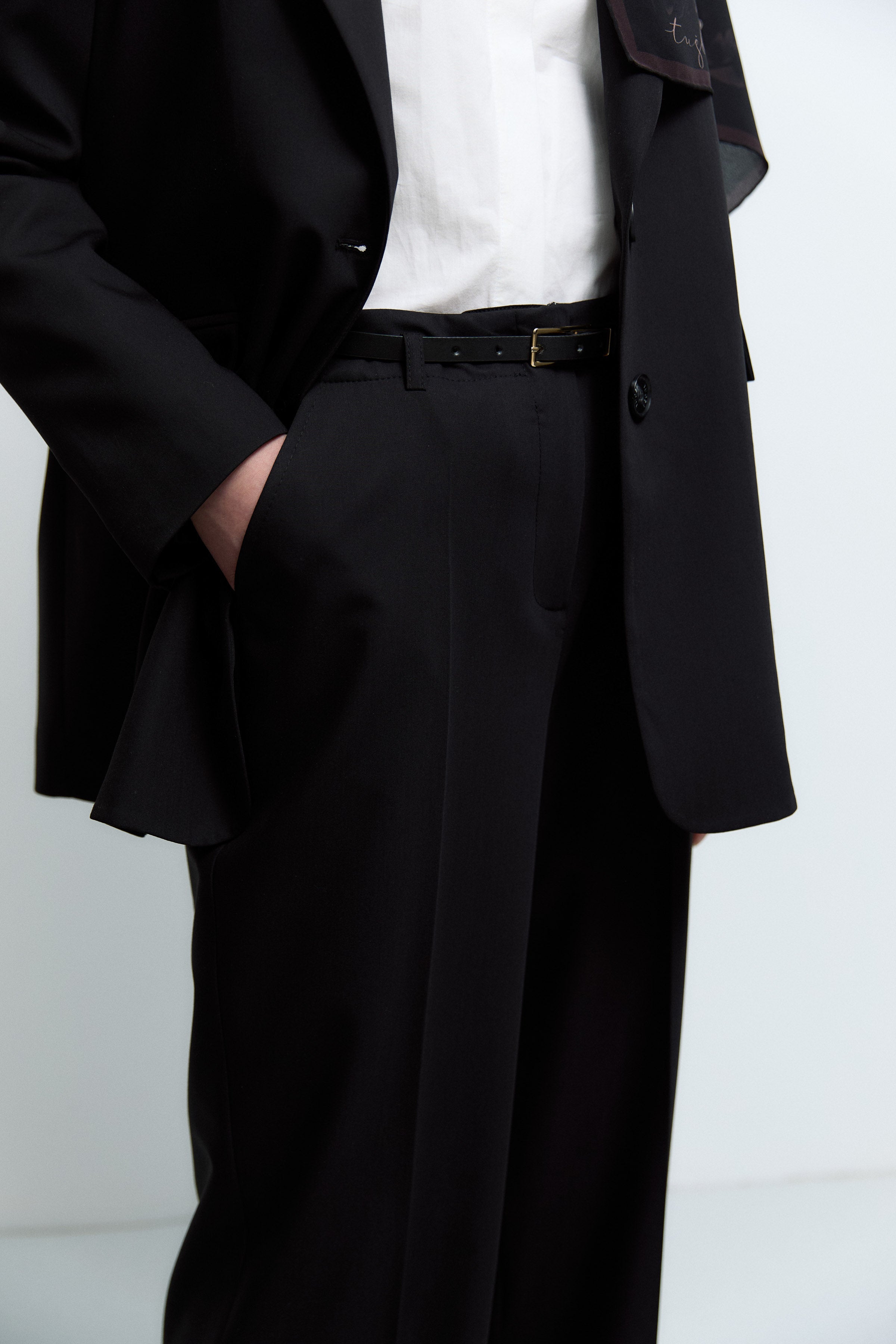 Pantalon avec ceinture et fermeture éclair sur le côté - Noir