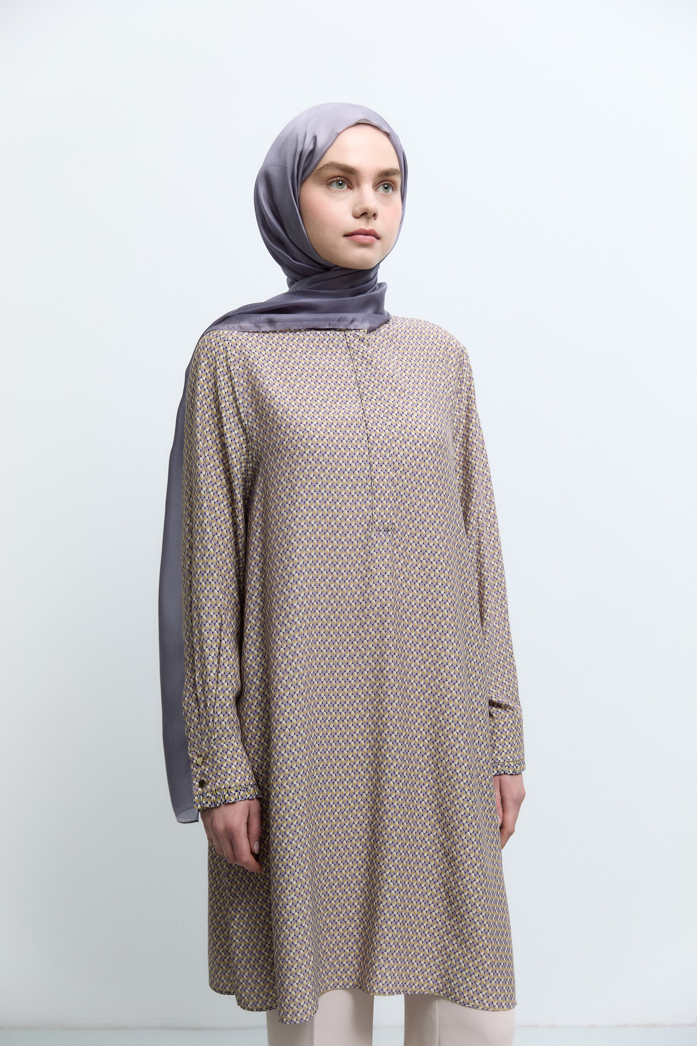 Tunique à col officier imprimée - Violet