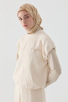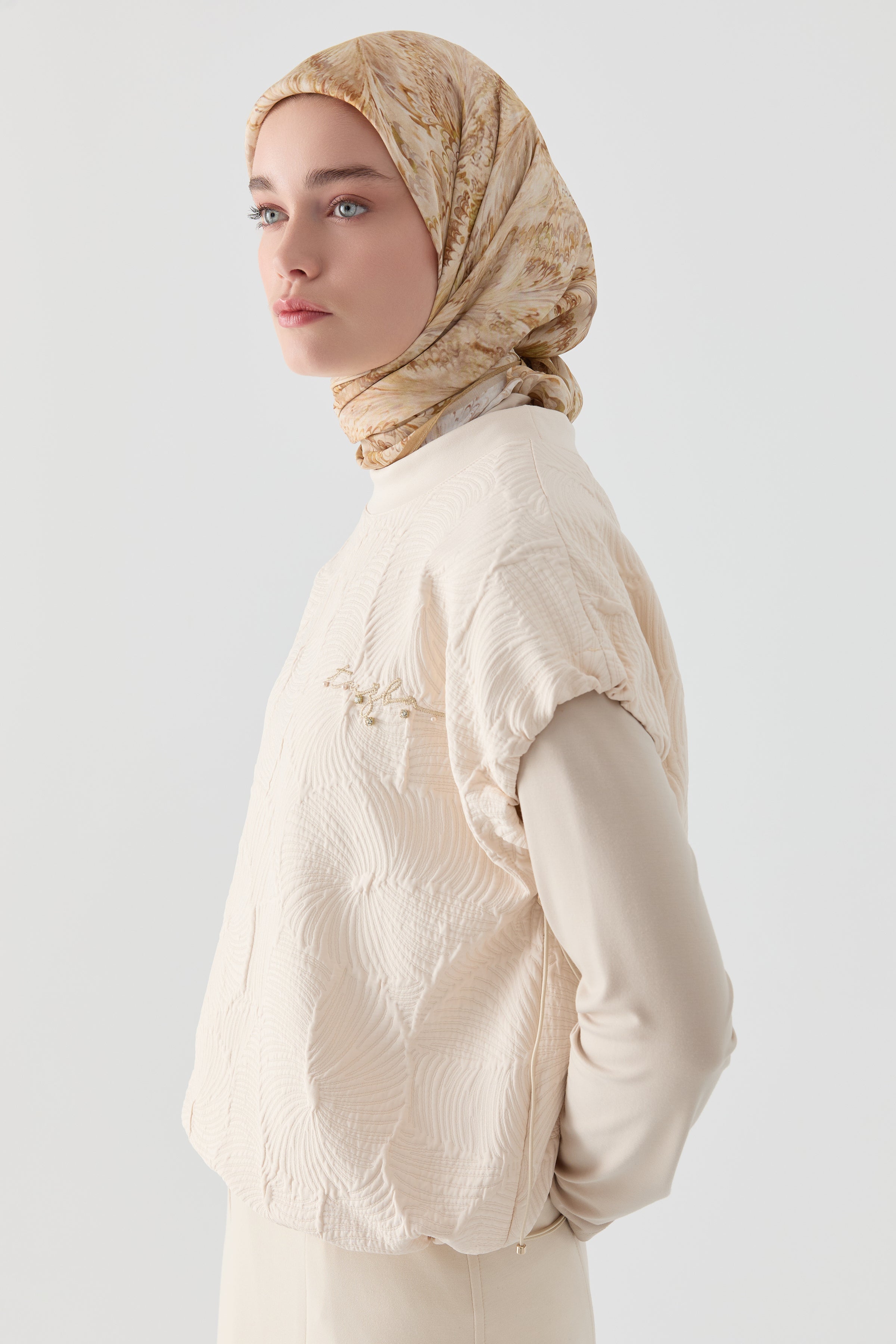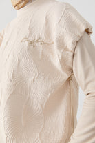 Pull sans manches matelassé brodé avec détail élastique - Écru