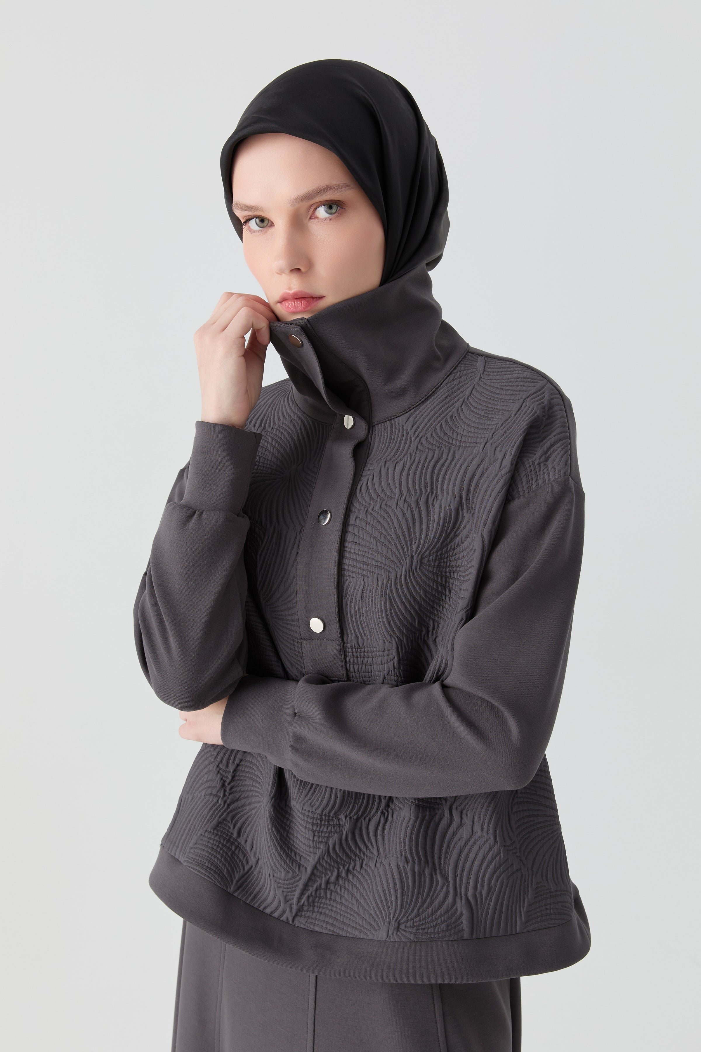 Sweatshirt en tricot avec combinaison matelassée - Anthracite