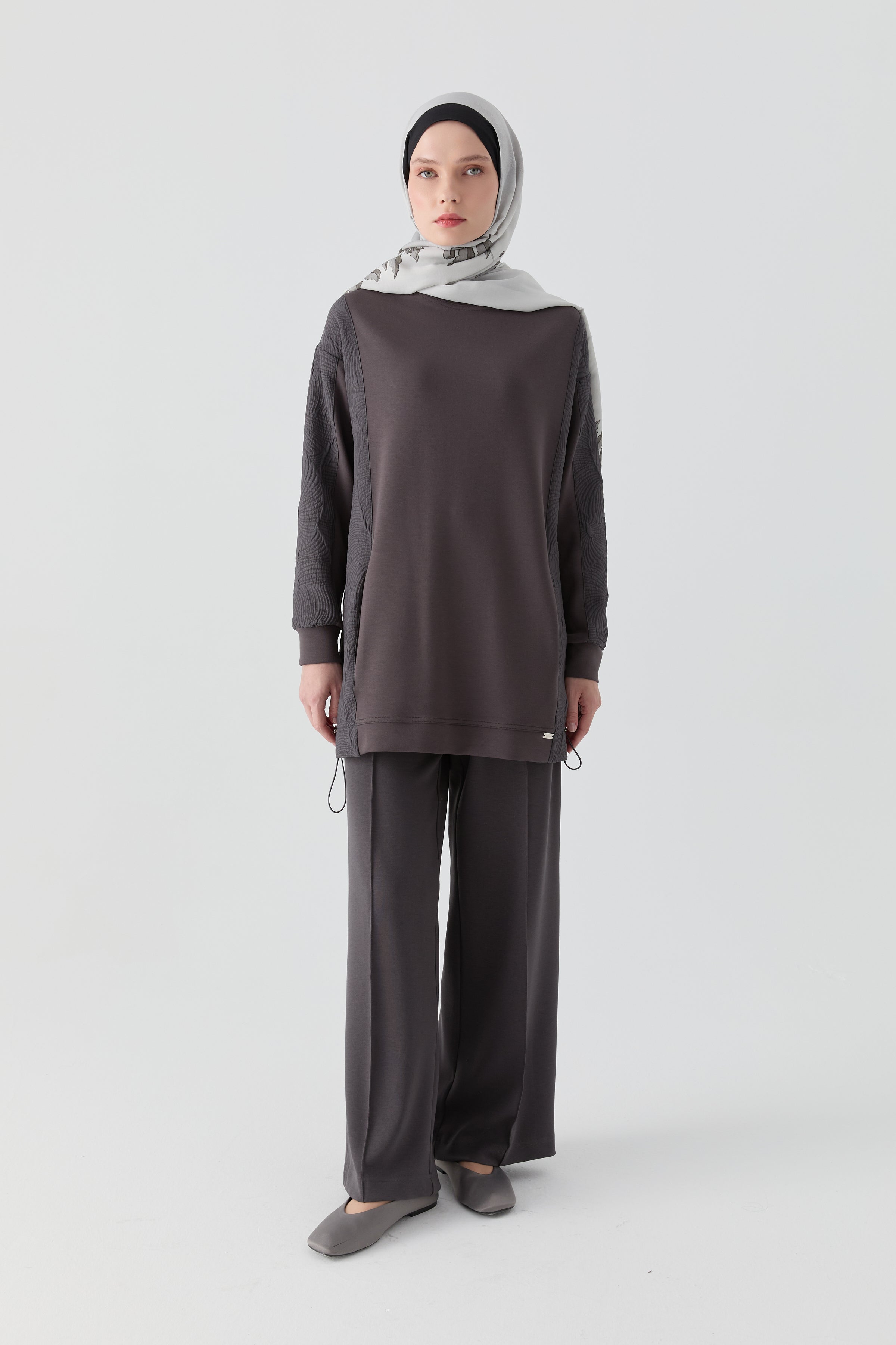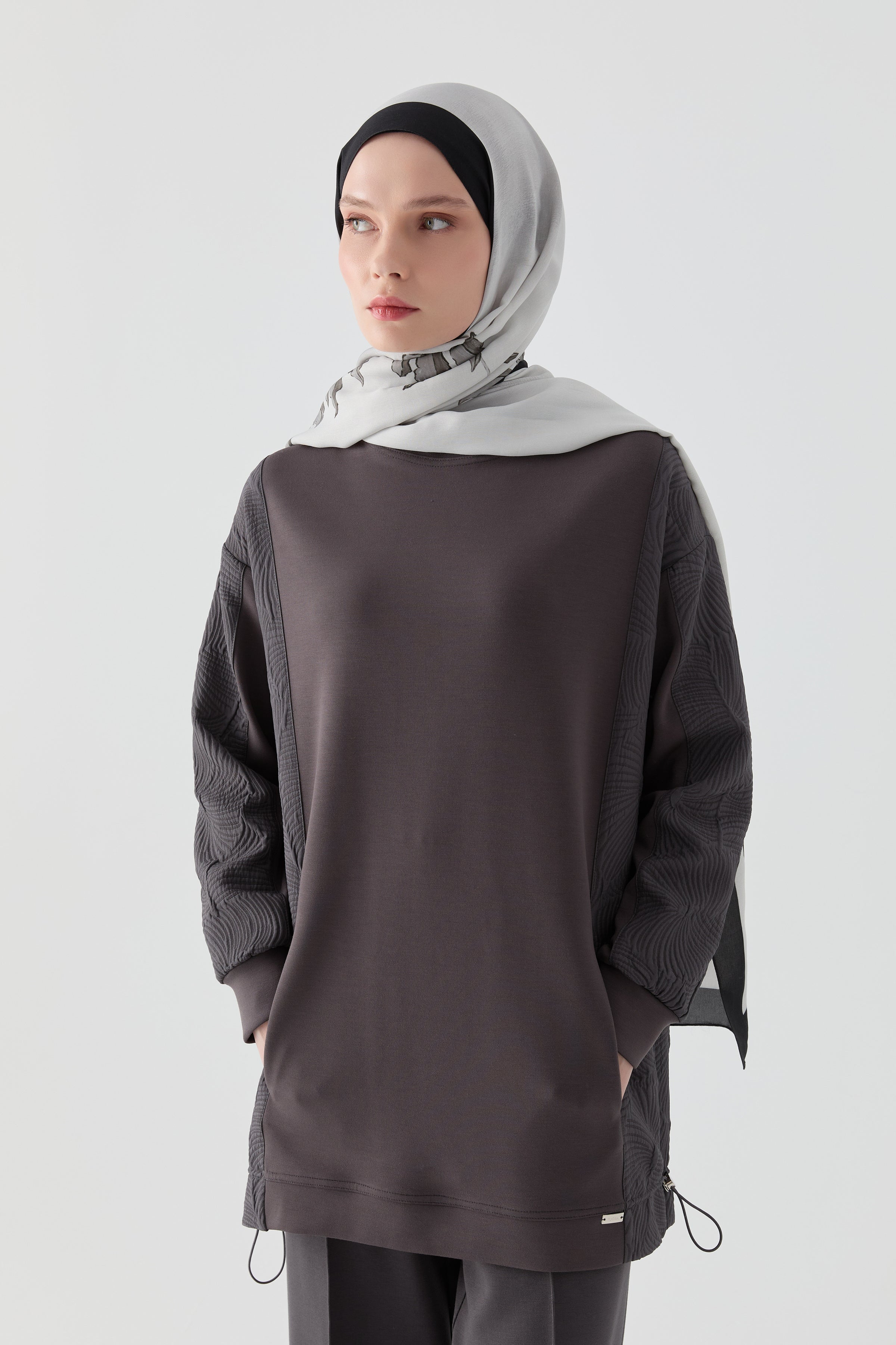 Sweatshirt matelassé avec combinaison en tricot - Anthracite