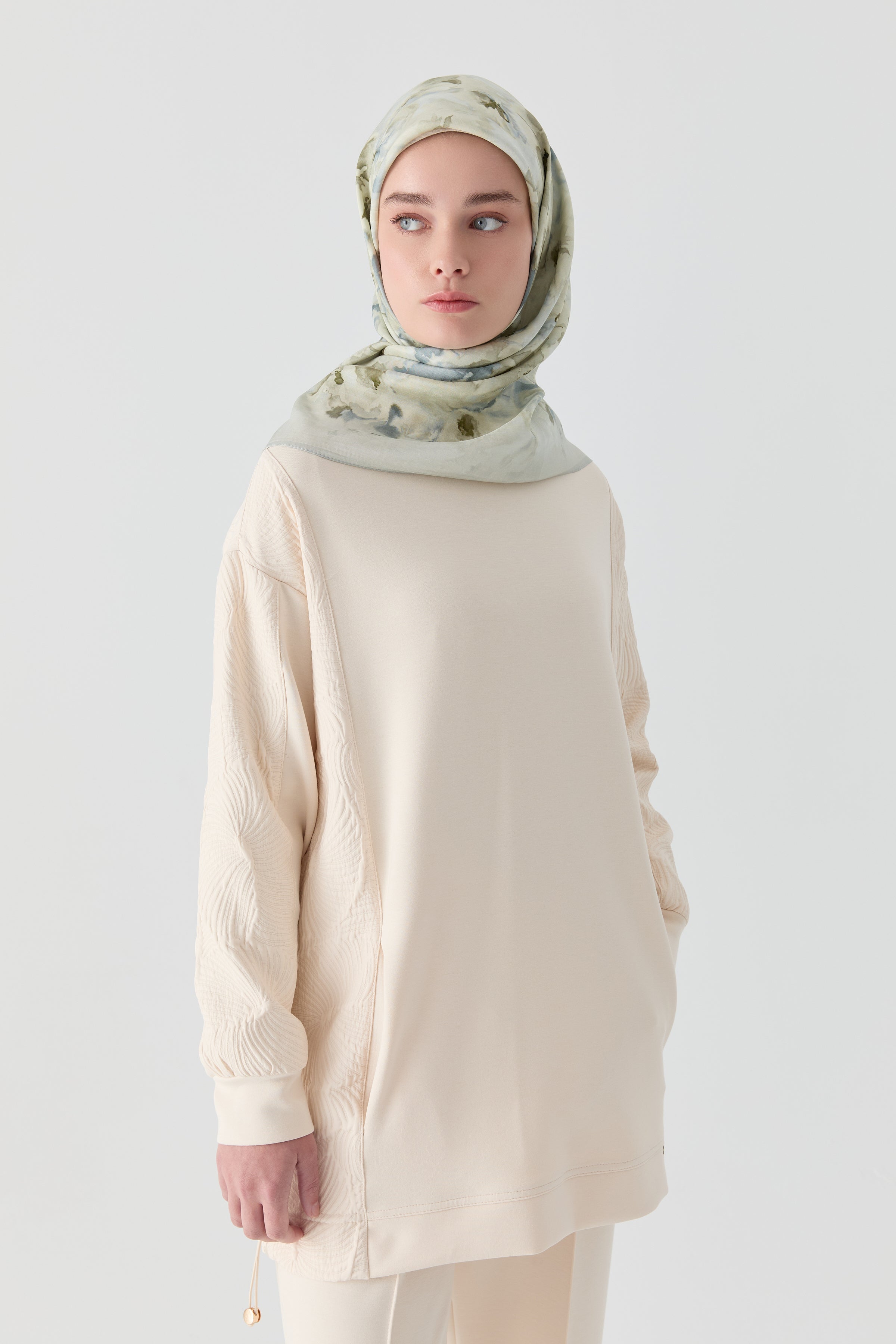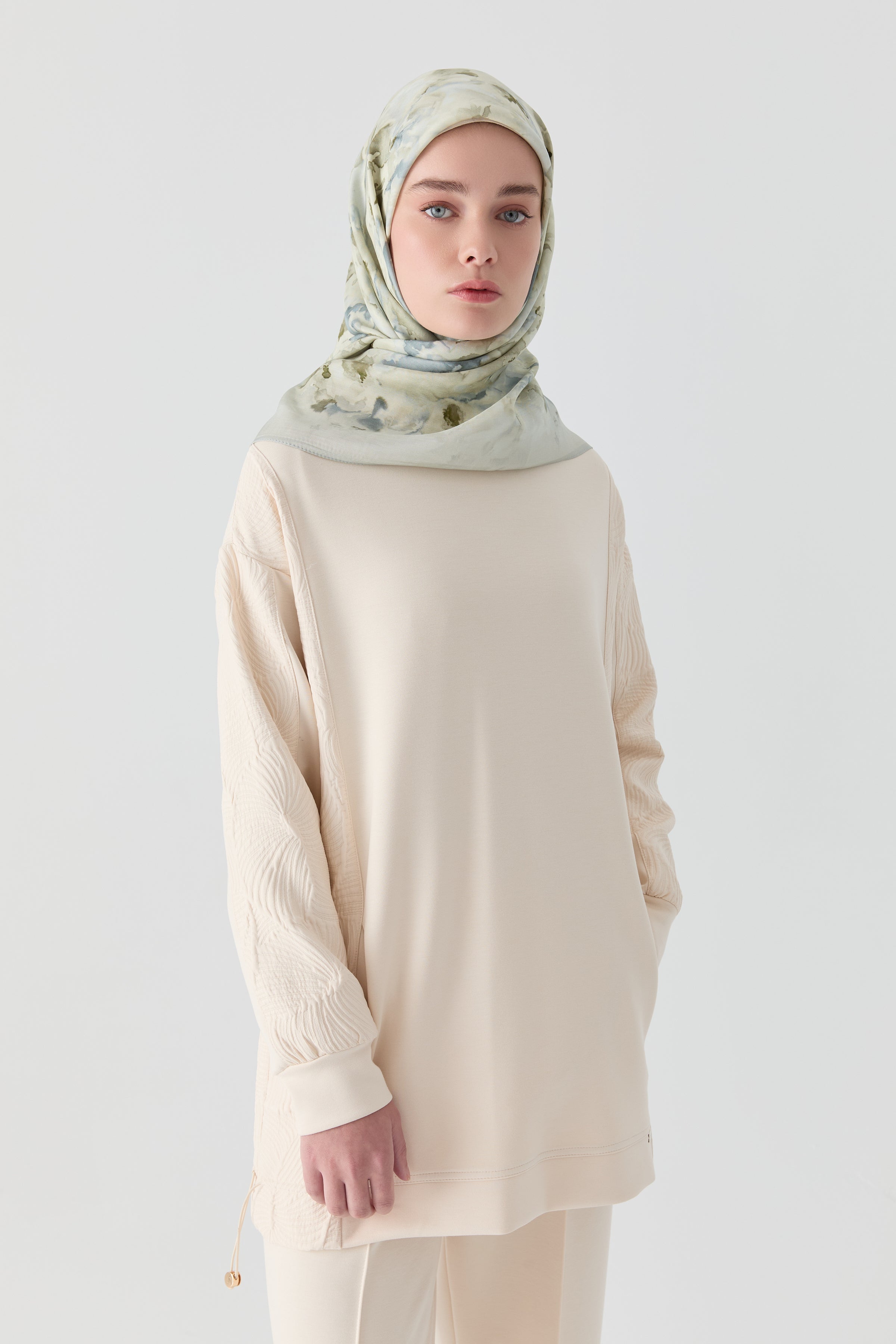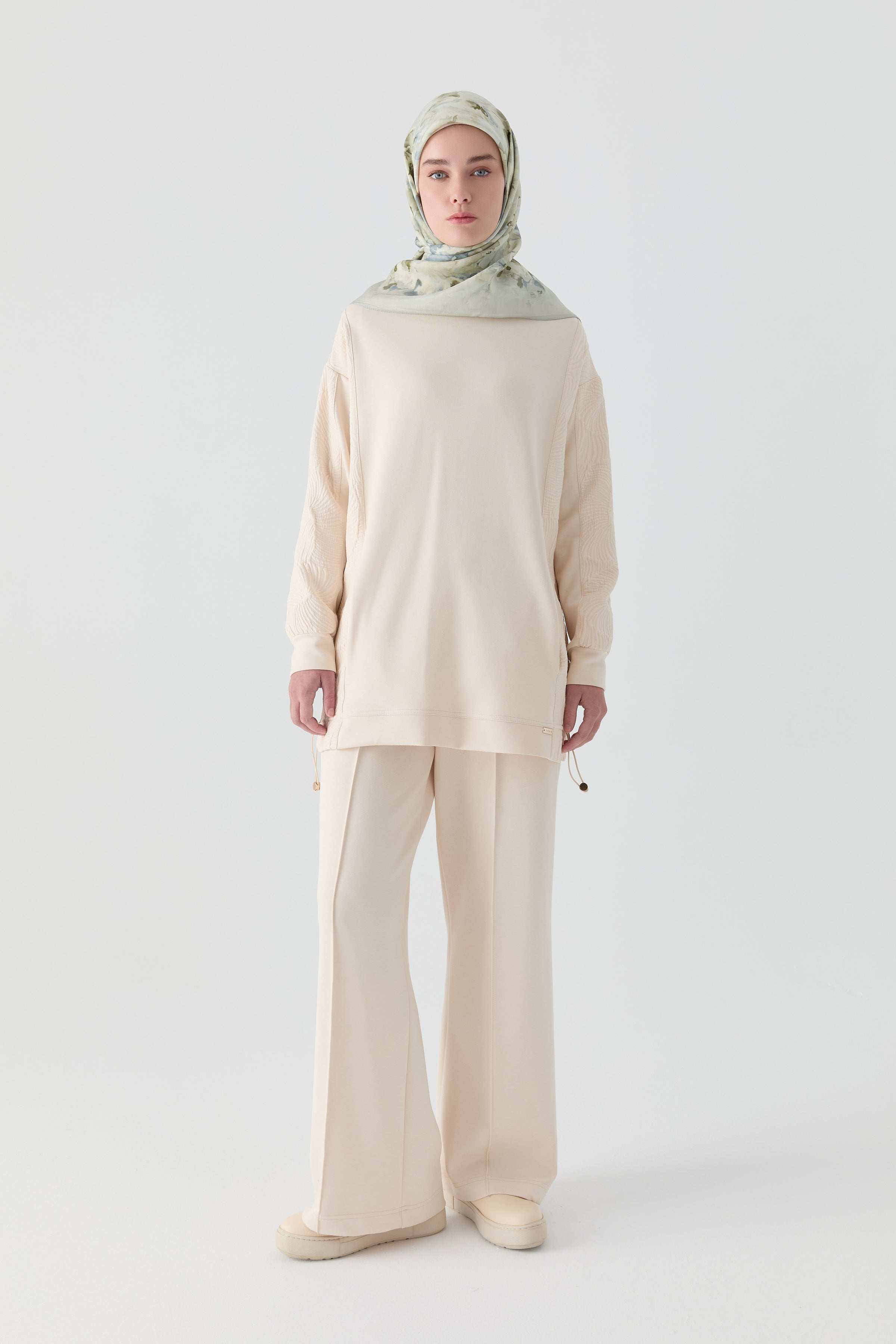 Sweatshirt matelassé avec combinaison en tricot - Écru