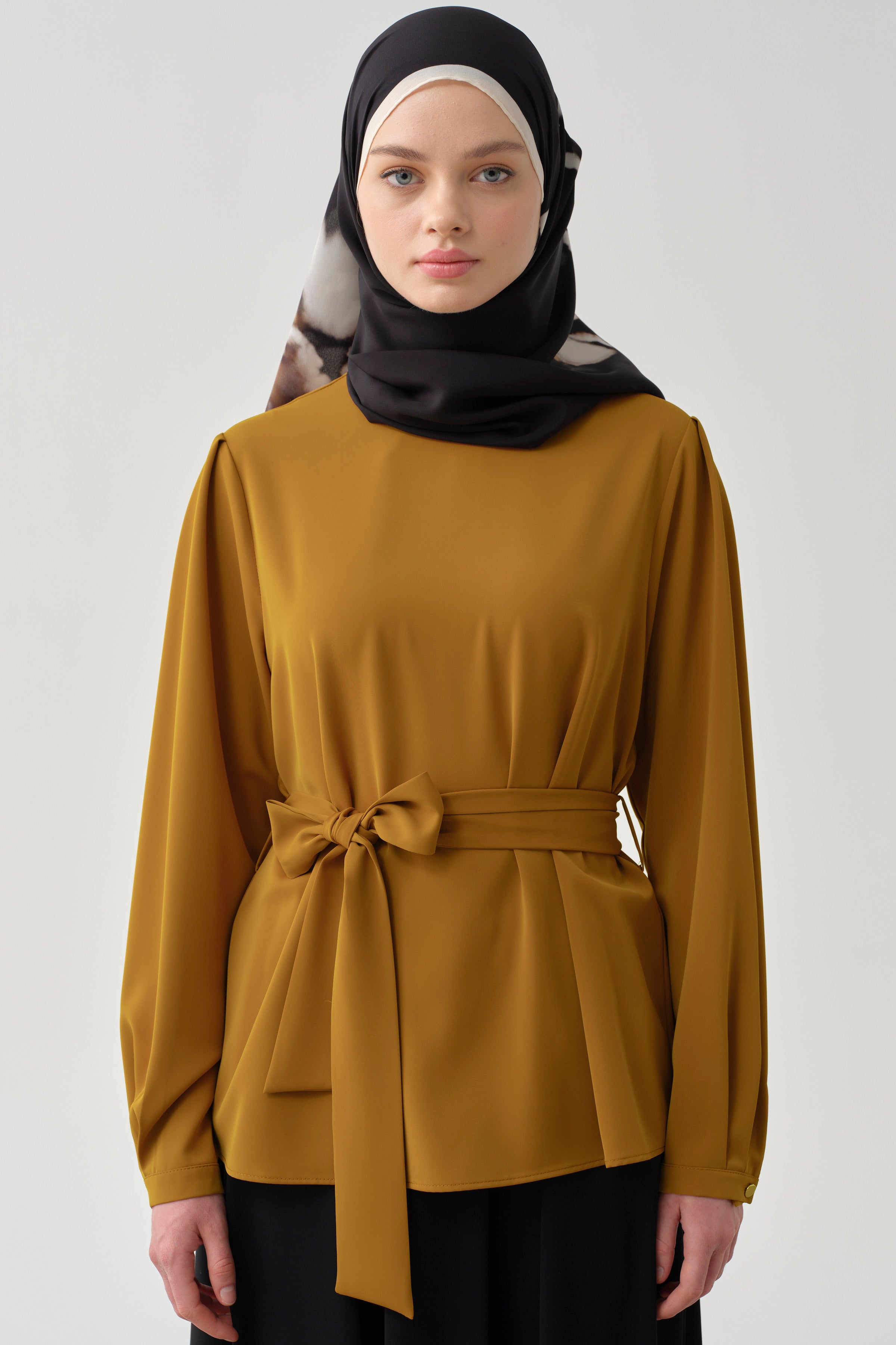 Chemisier ceinturé à col zéro - Moutarde