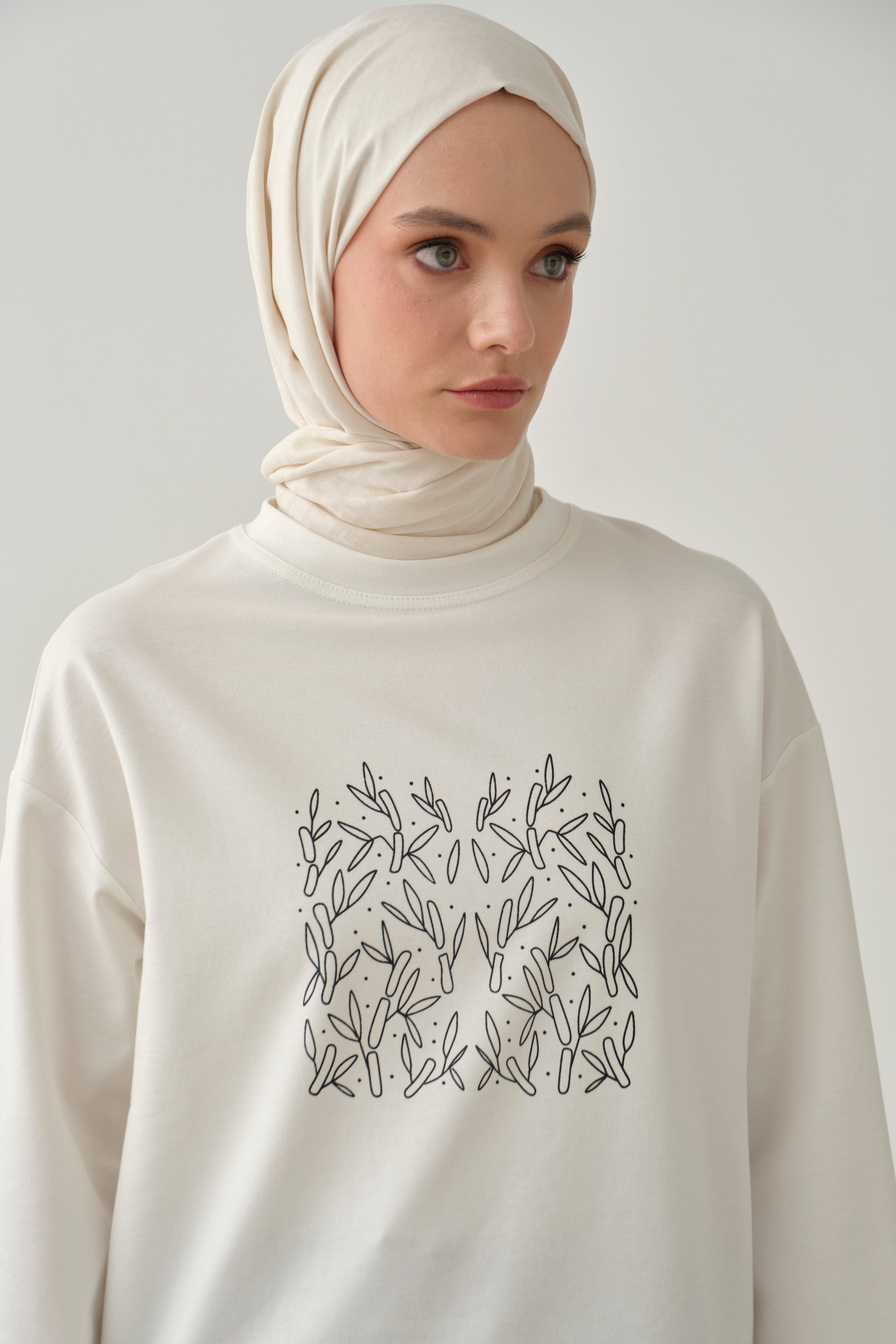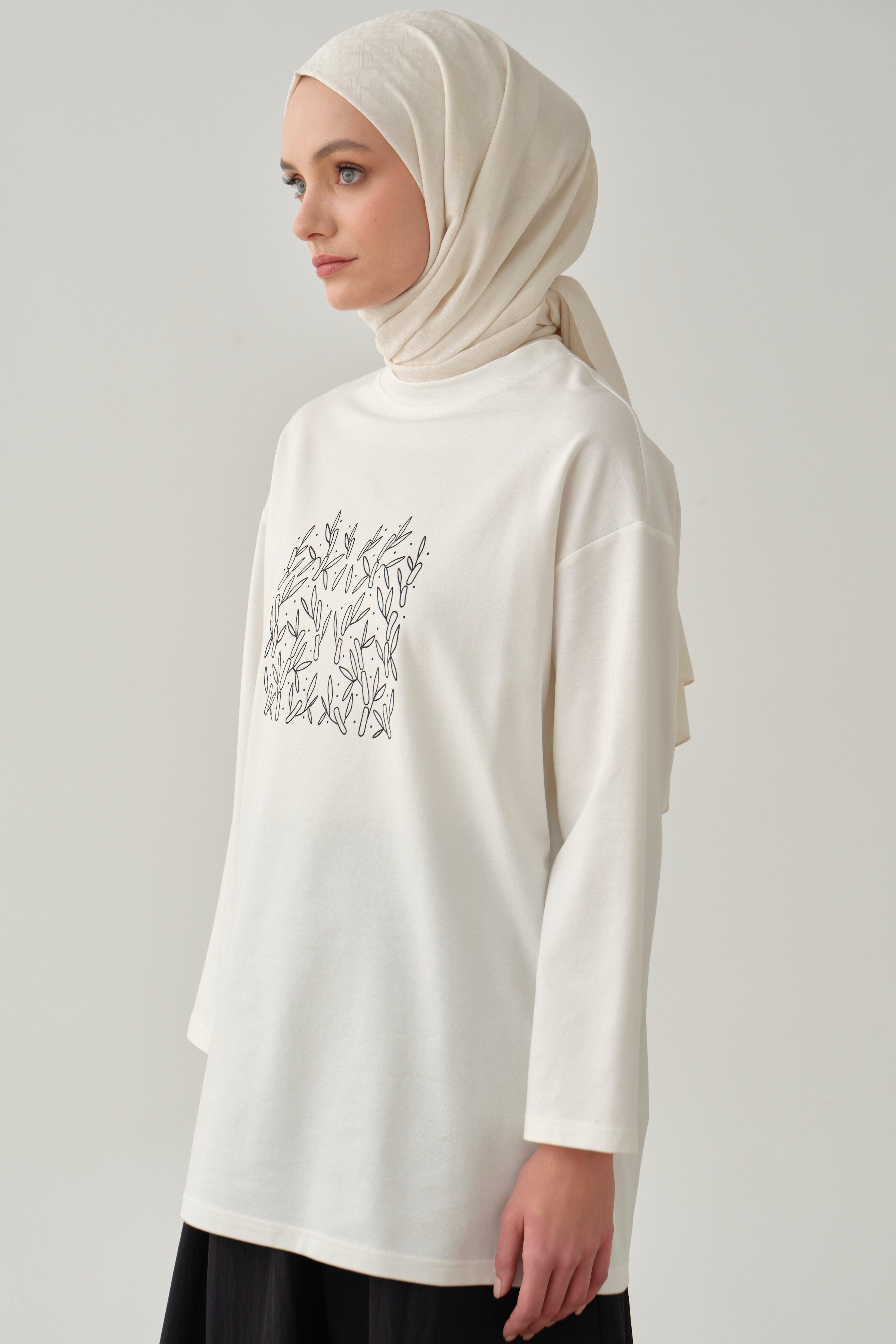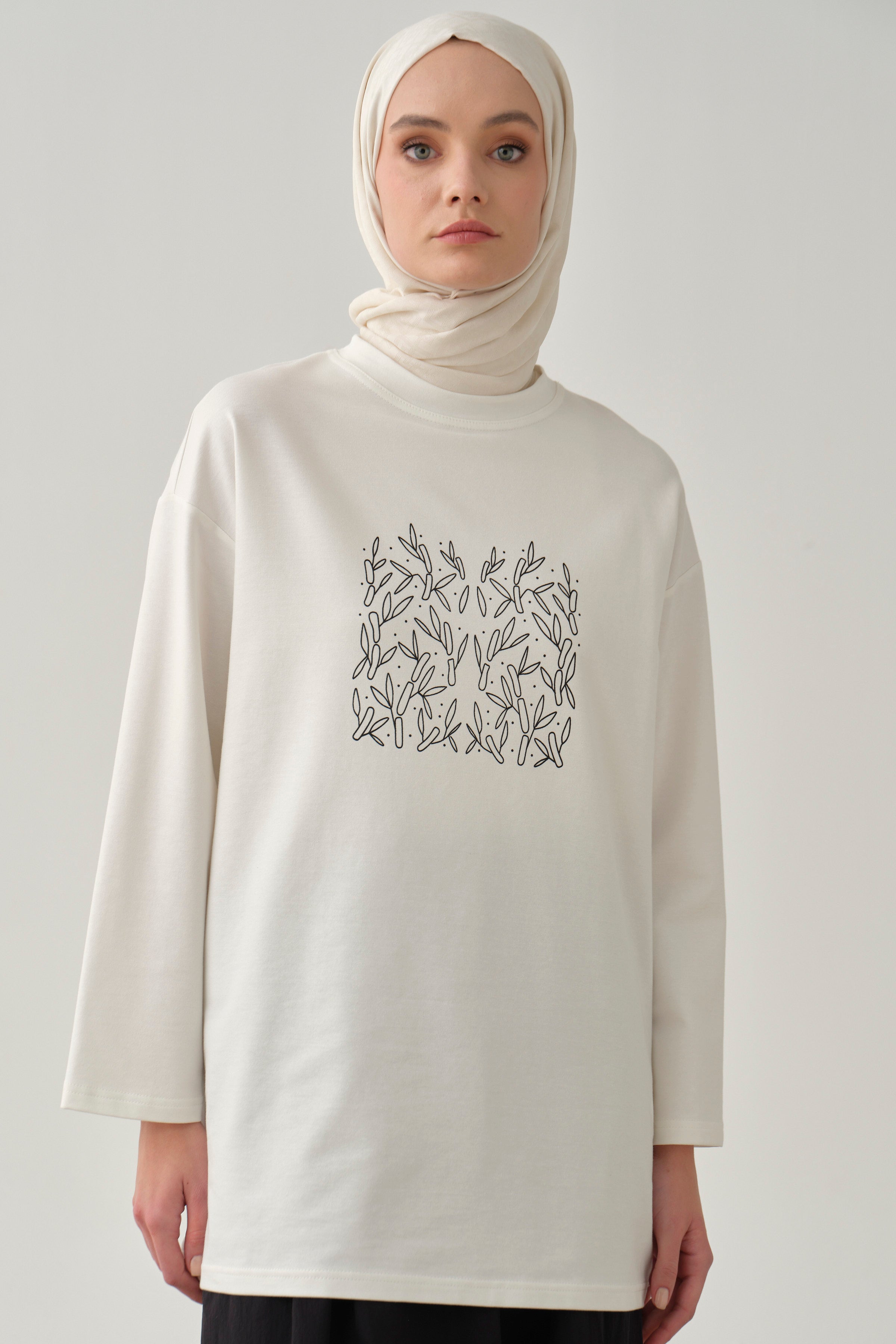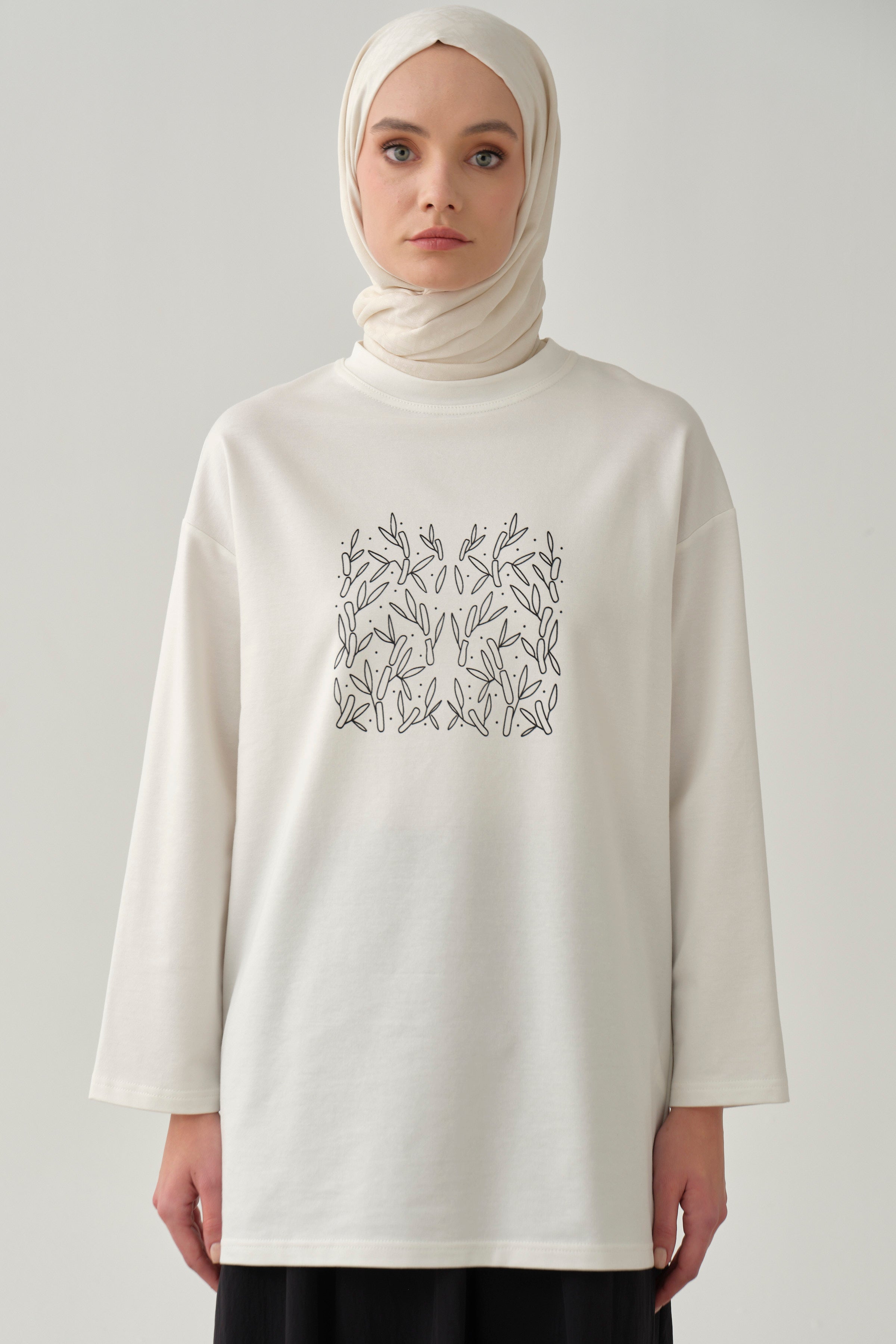 Chemisier en maille avec imprimé sur le devant - Écru