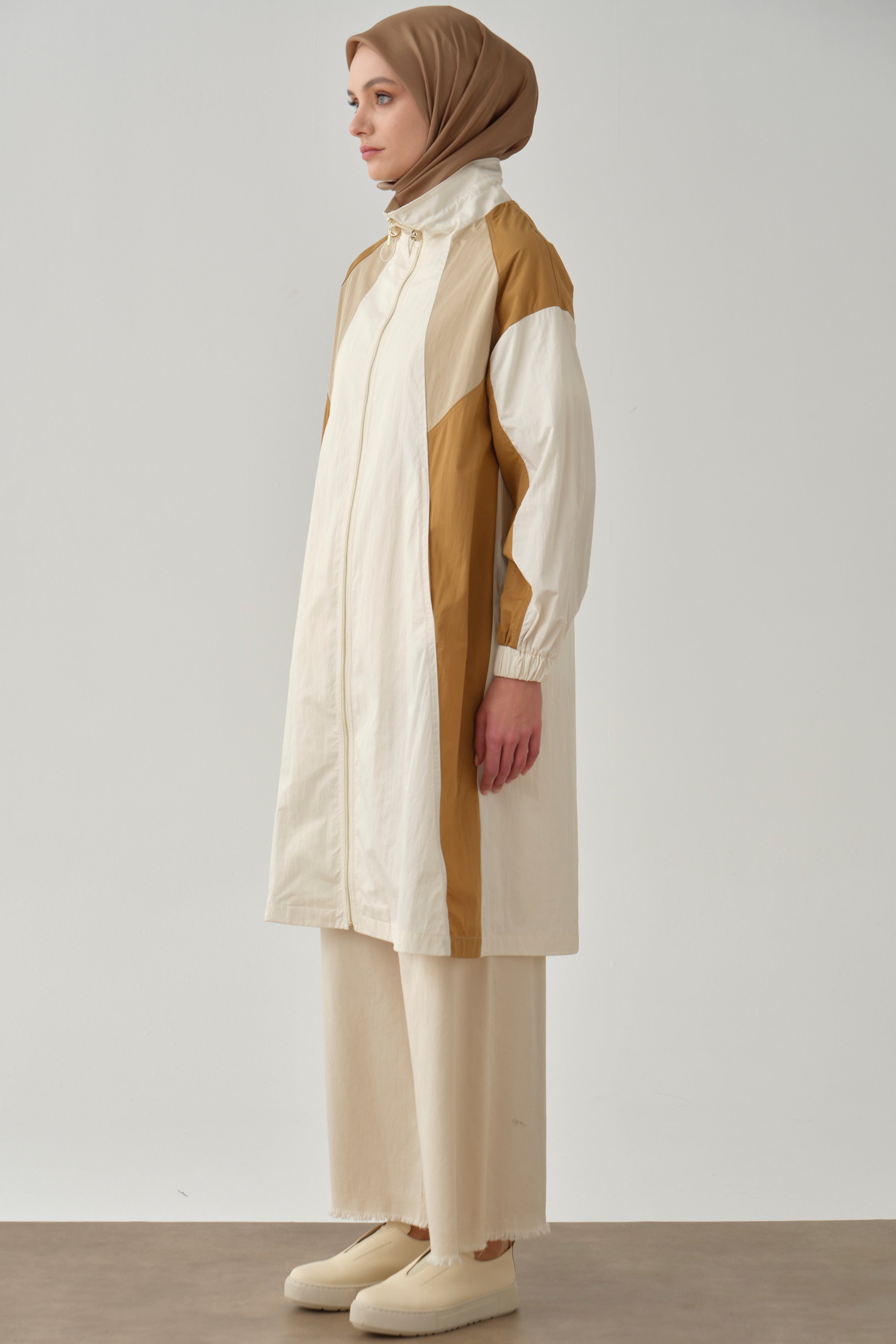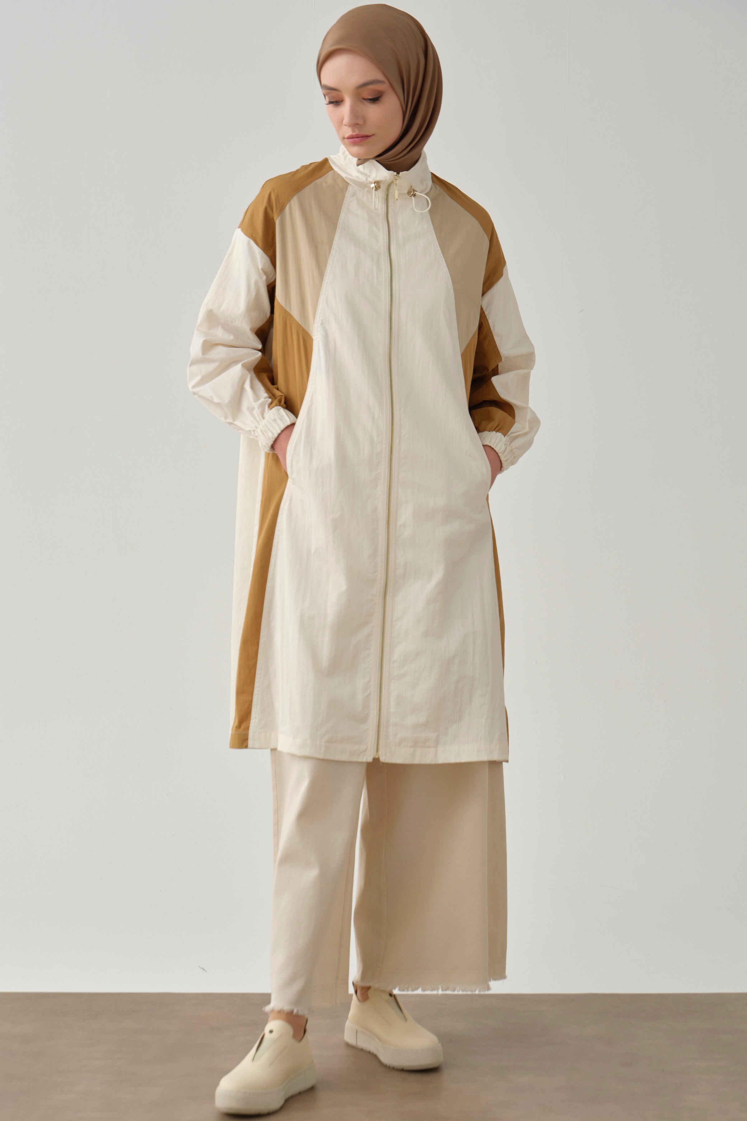 Imperméable avec détails découpés - Écru - Chamois