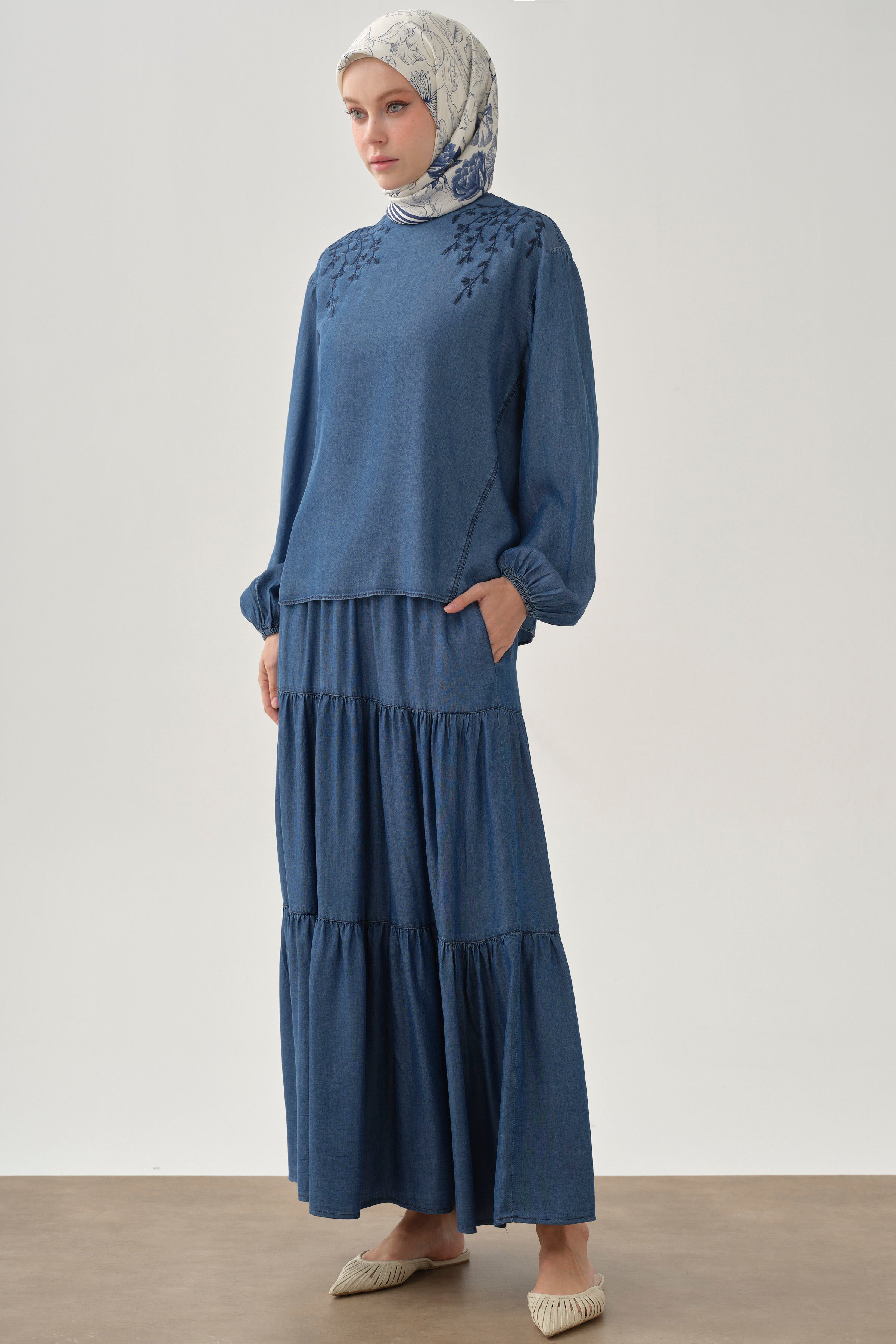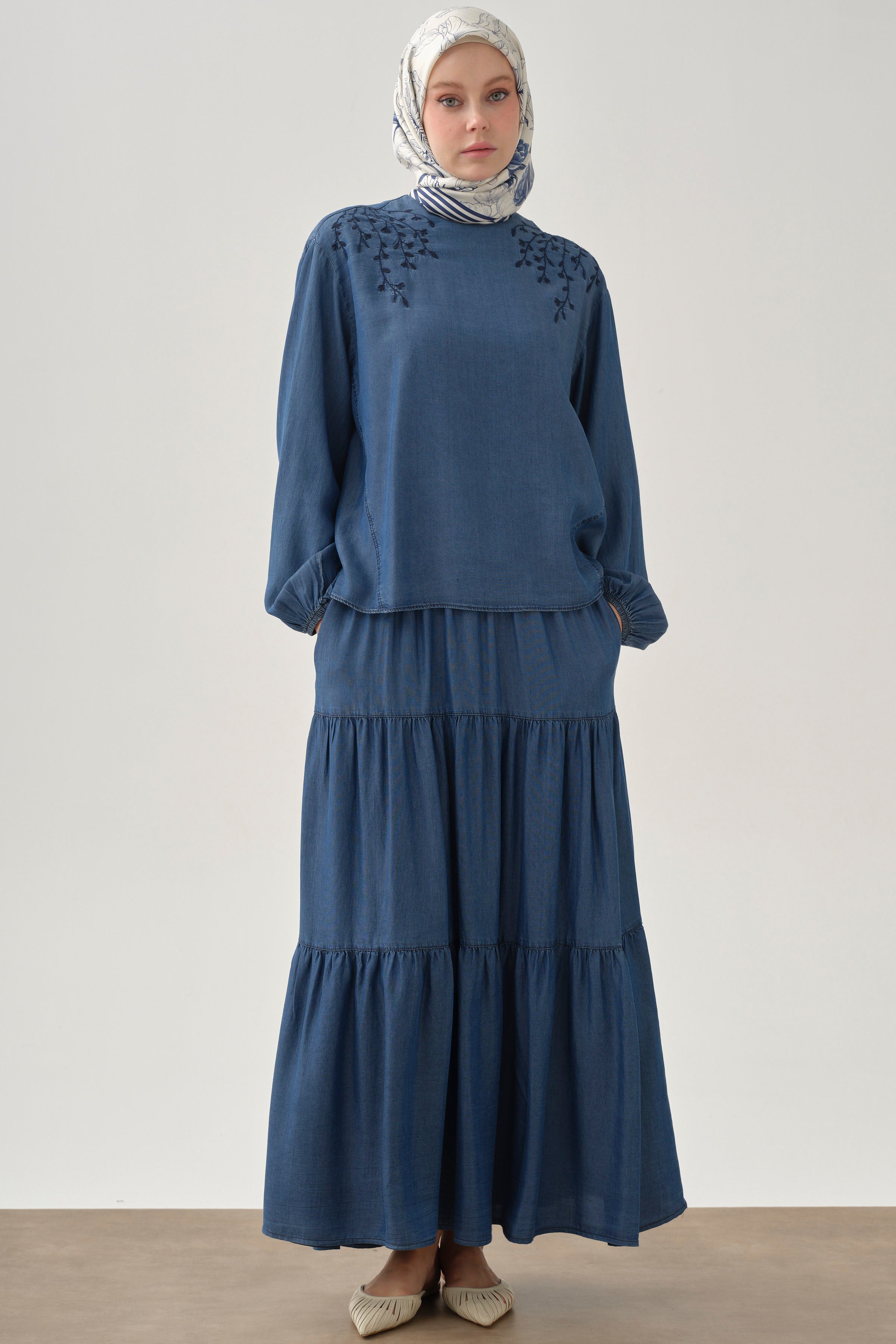 Jupe bohème avec poches cachées - Indigo