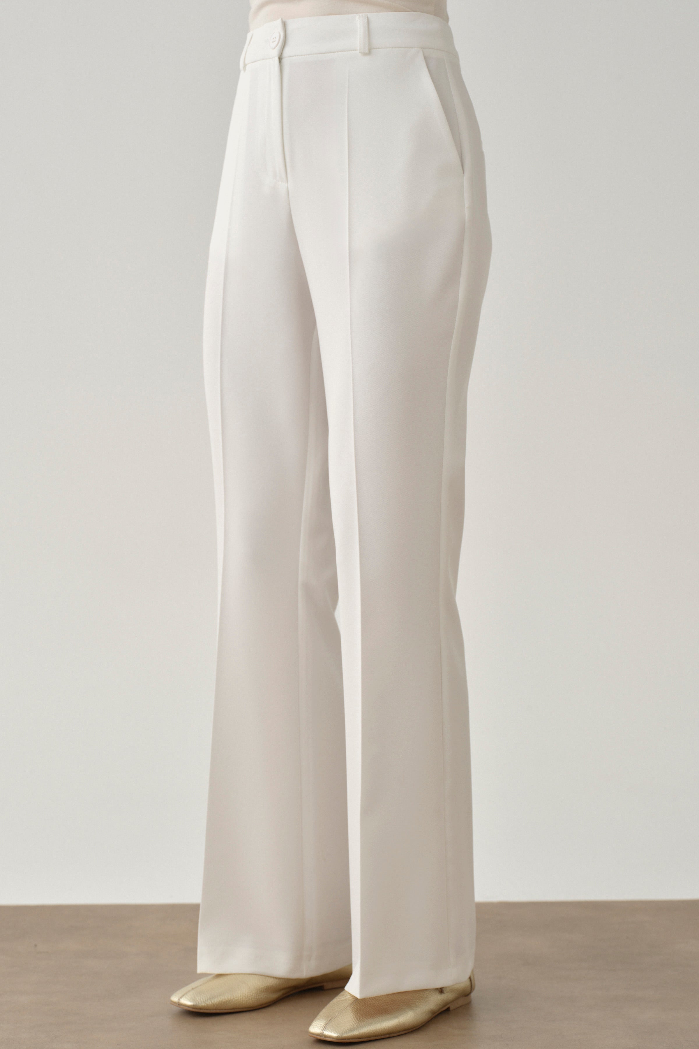 Pantalon basique à jambes évasées - Écru