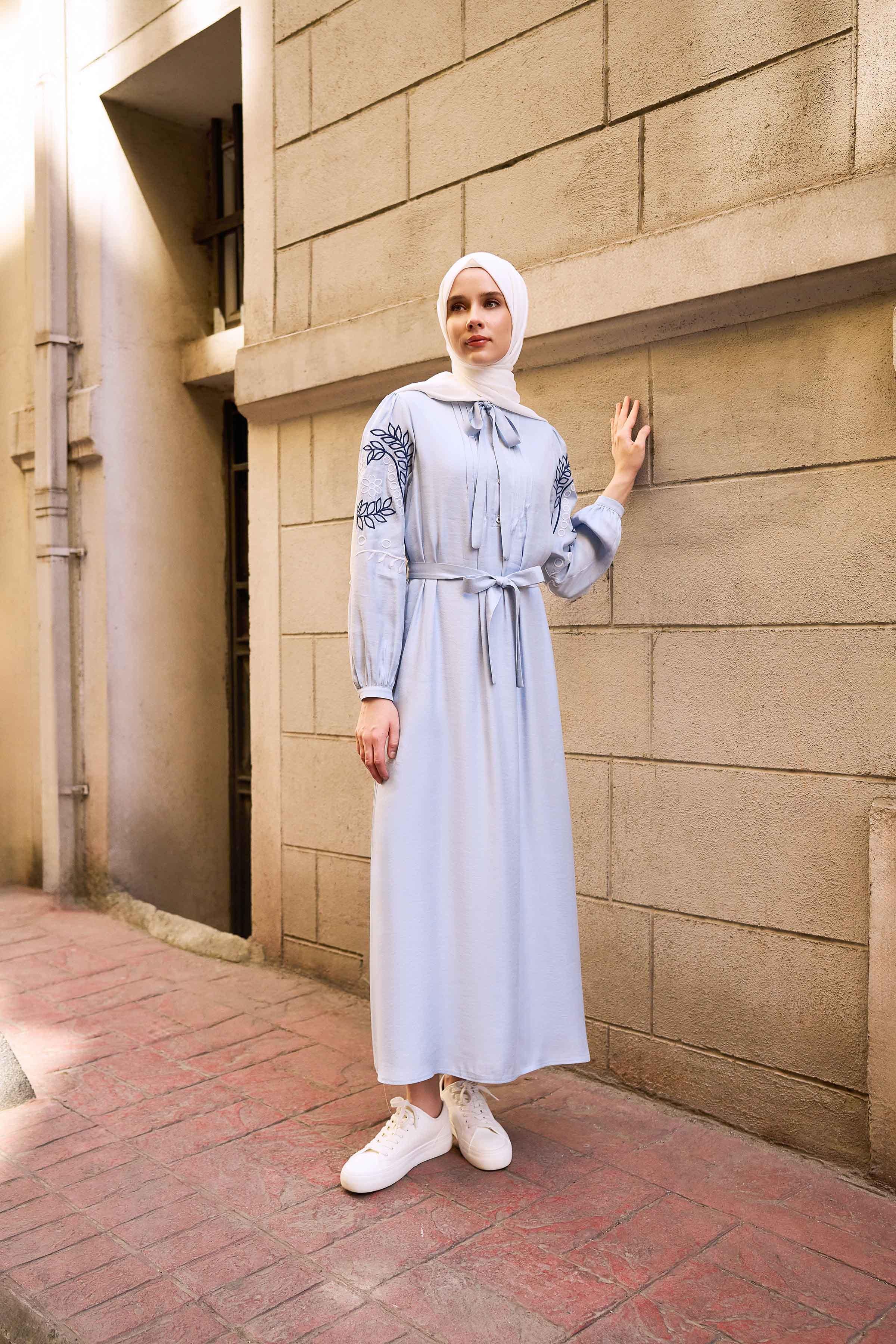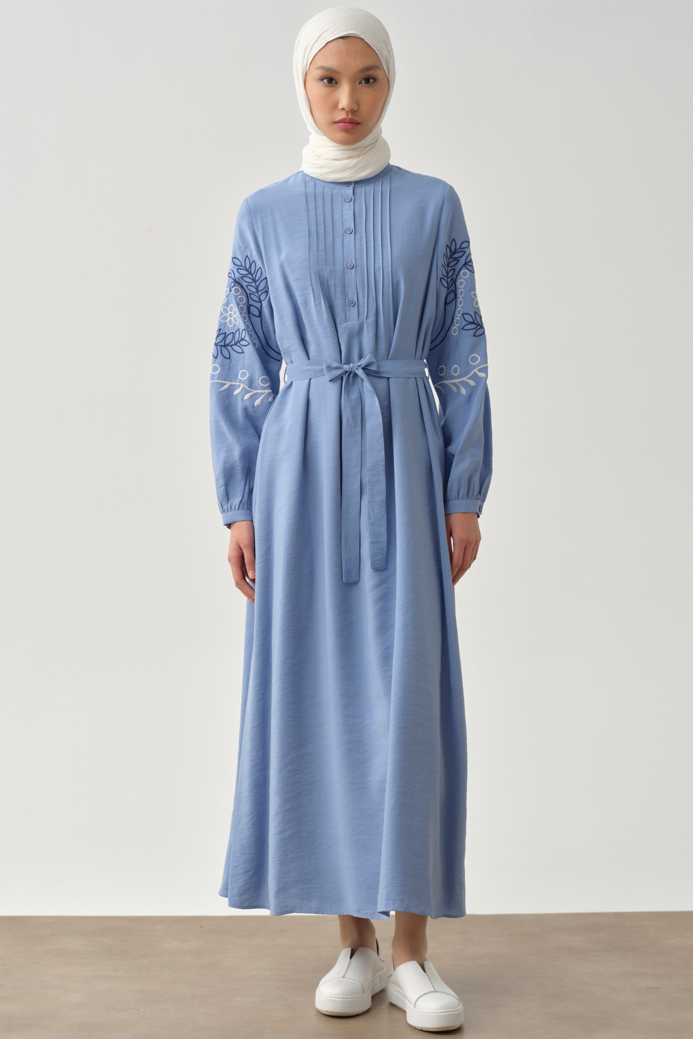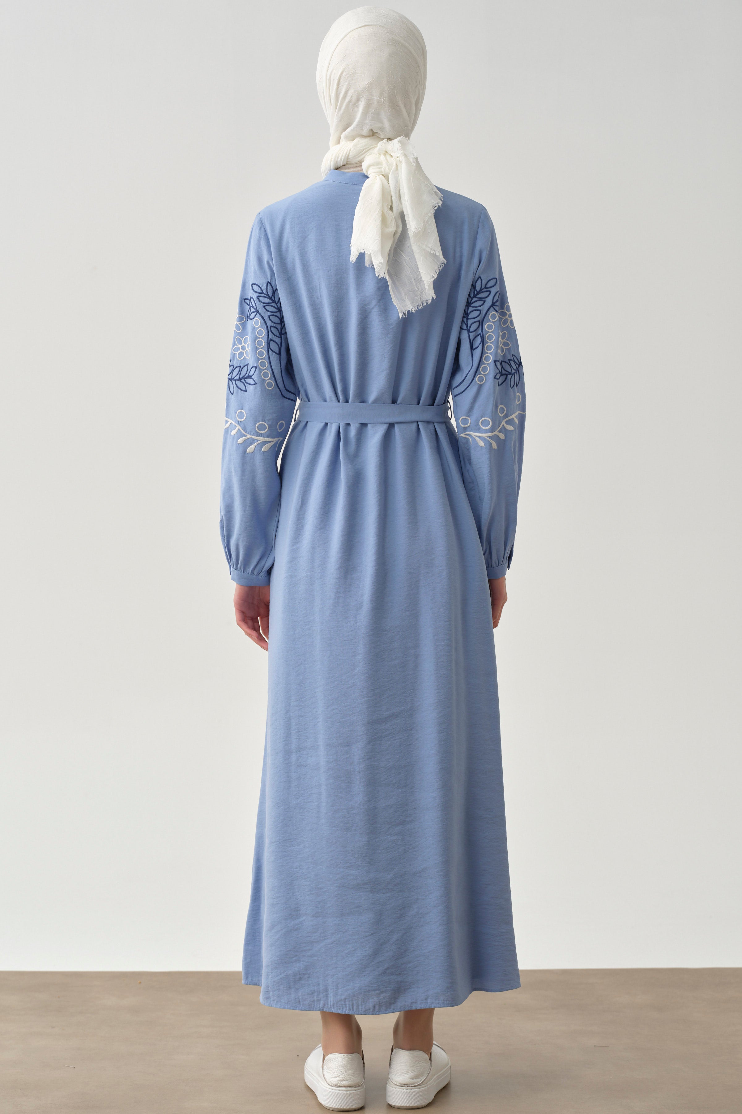 Robe à col Judge et manches brodées - Bleu